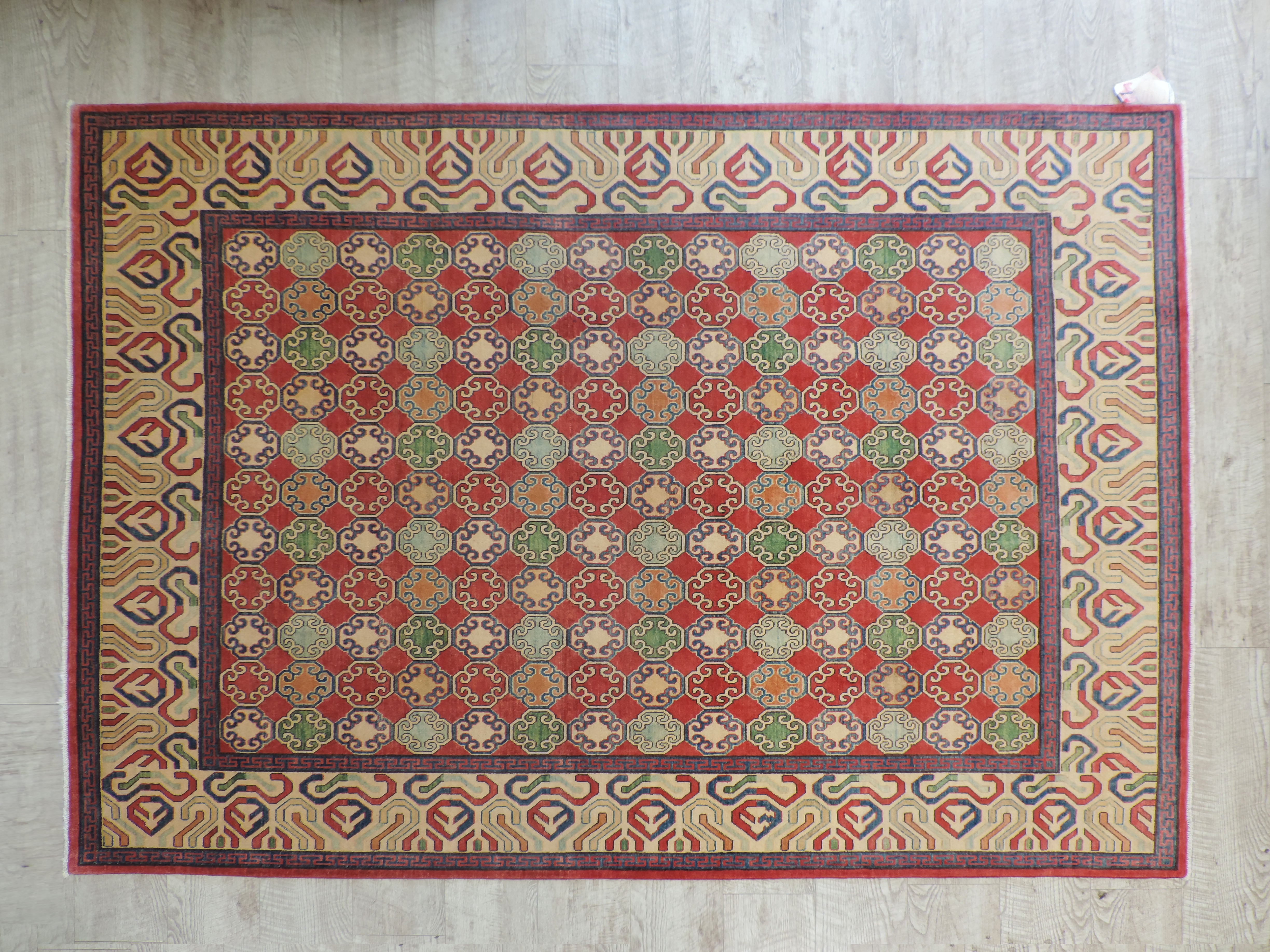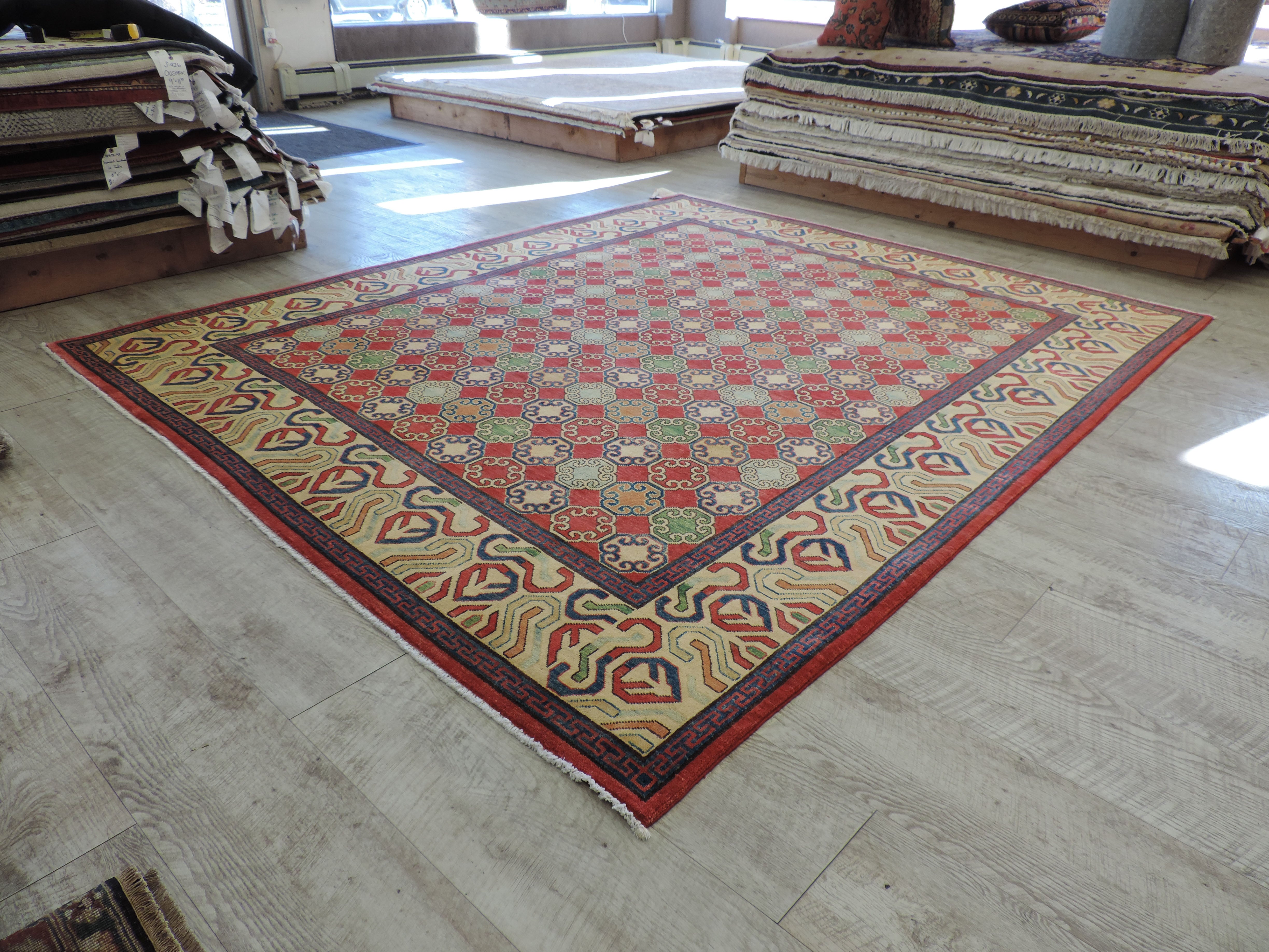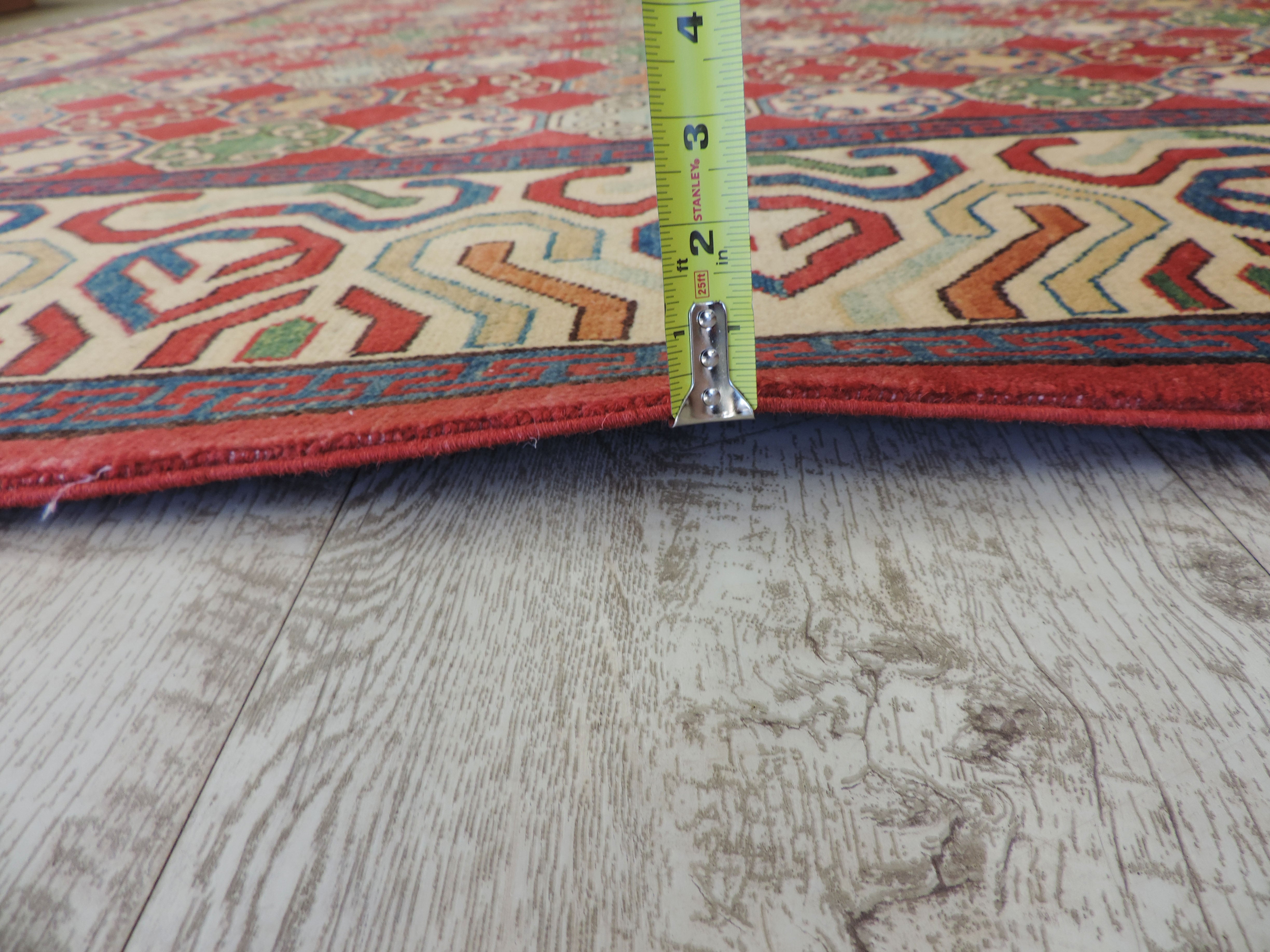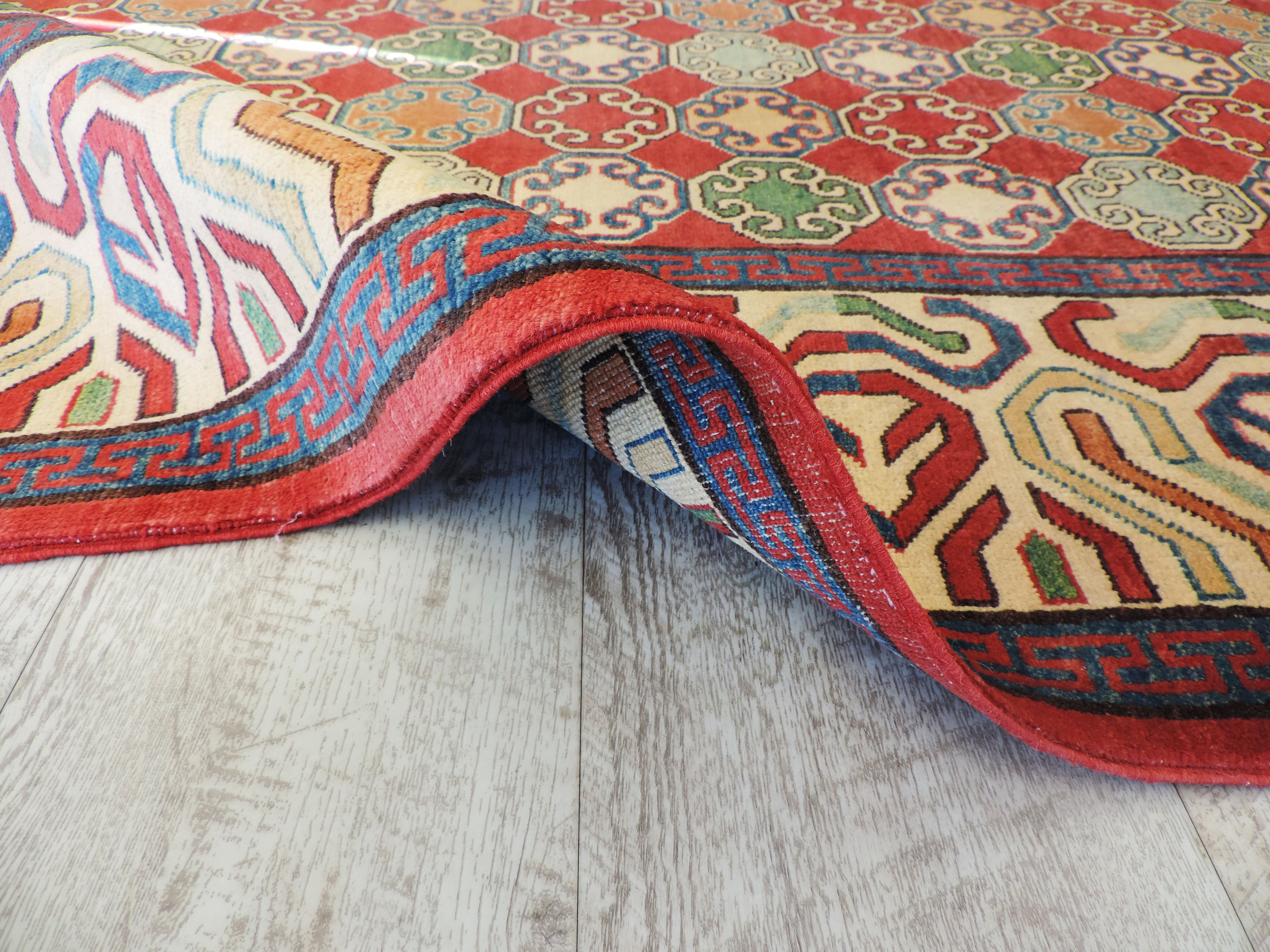 Elevate the charm of your space with this exquisite Kazak rug (code: 10053-177) – a hand-knotted treasure from the heart of Afghanistan. With its luscious red coloring, this rectangular wool rug exudes a rich, vibrant appeal that's sure to catch eyes. At an unbeatable sale price of $1950, this brand new, plush piece promises to bring a dash of oriental magic to any room it graces.