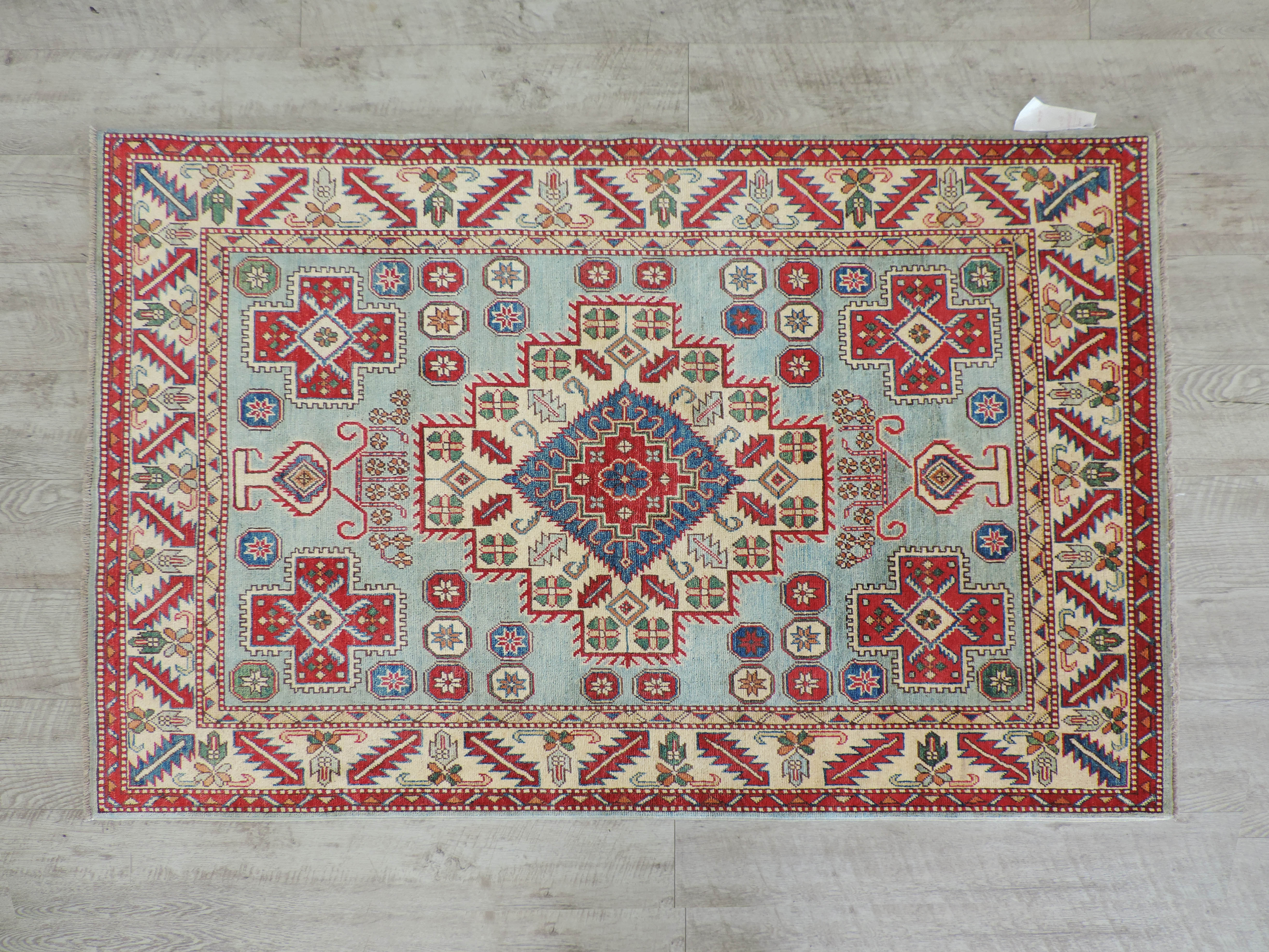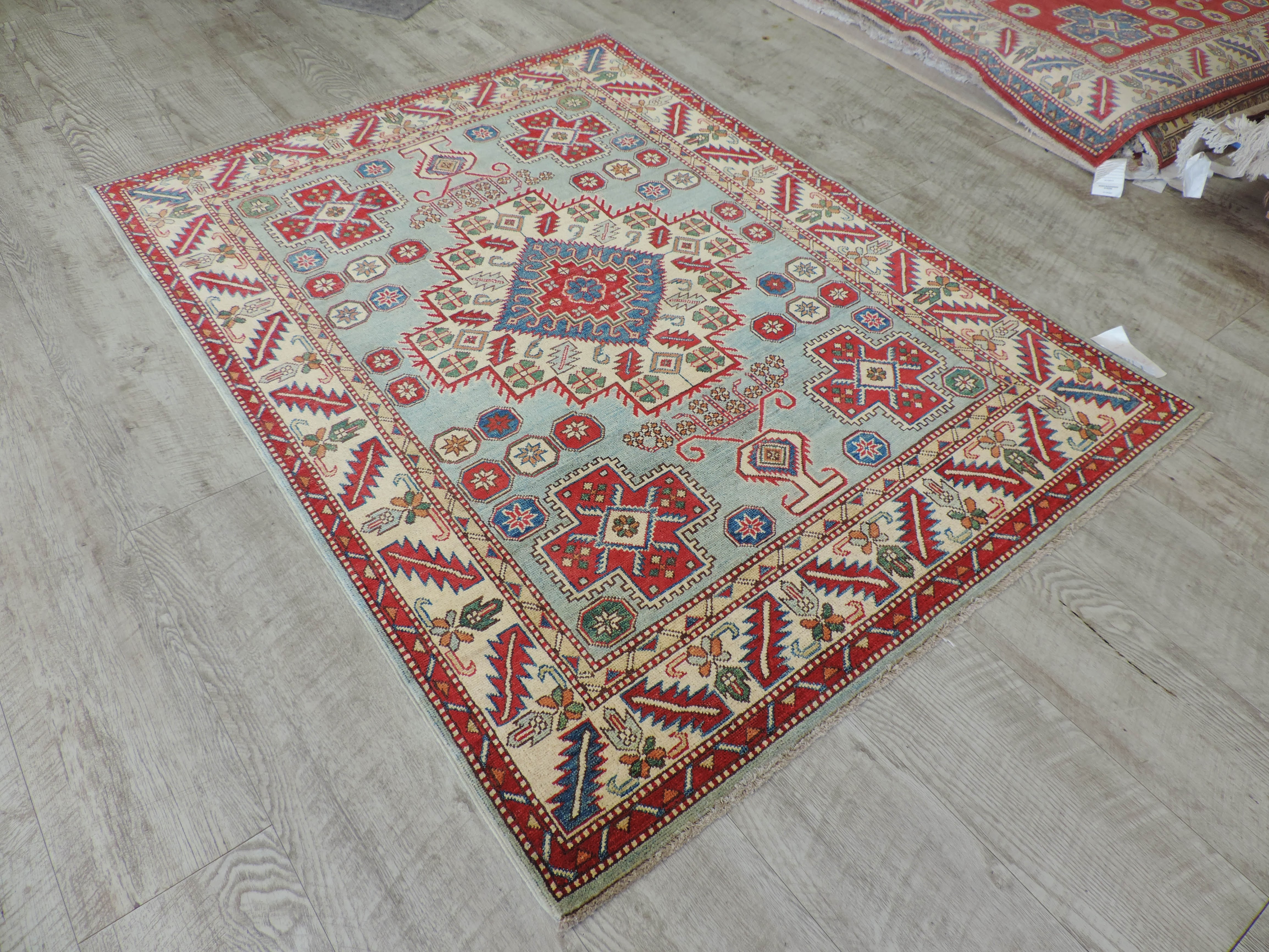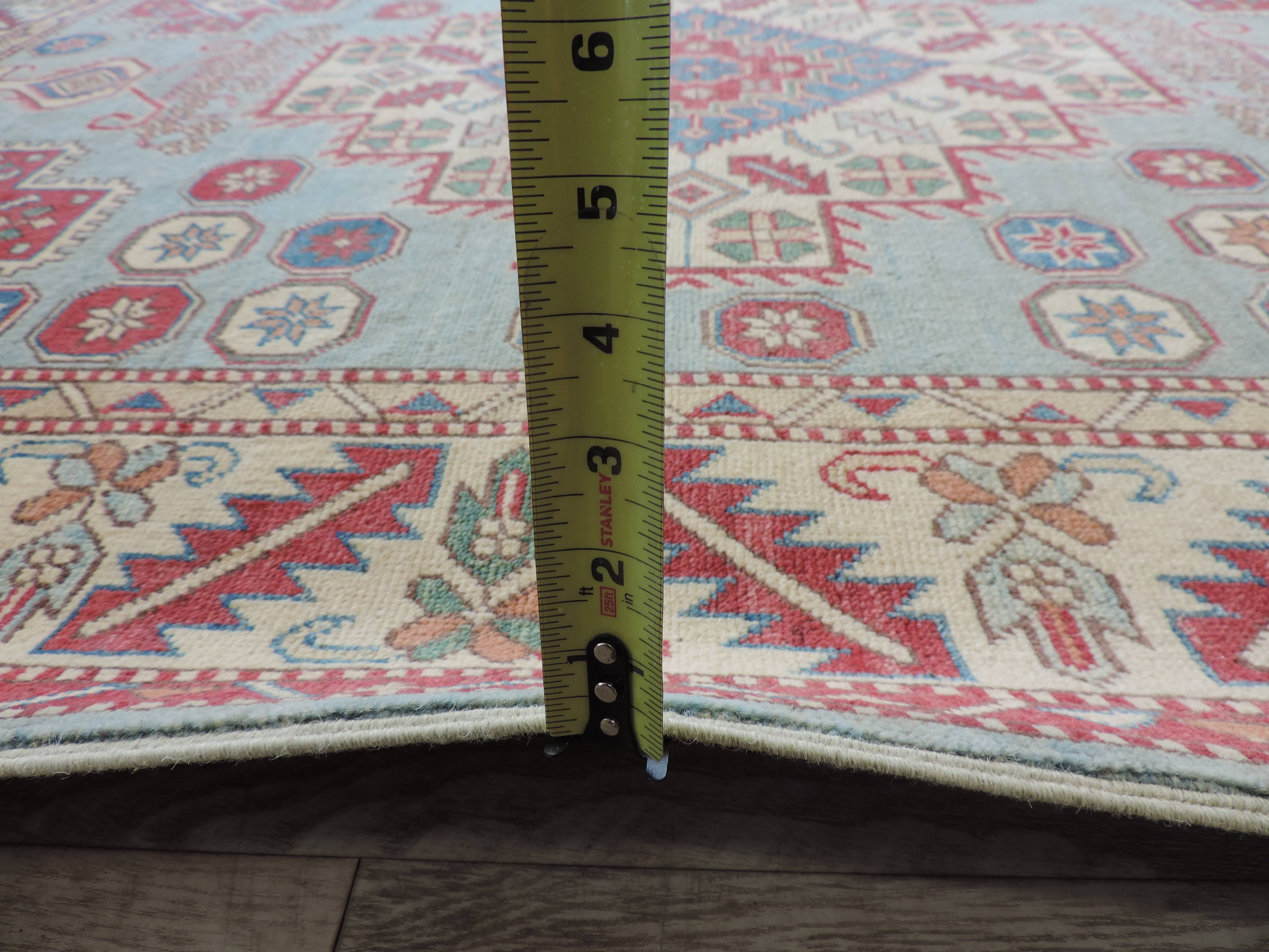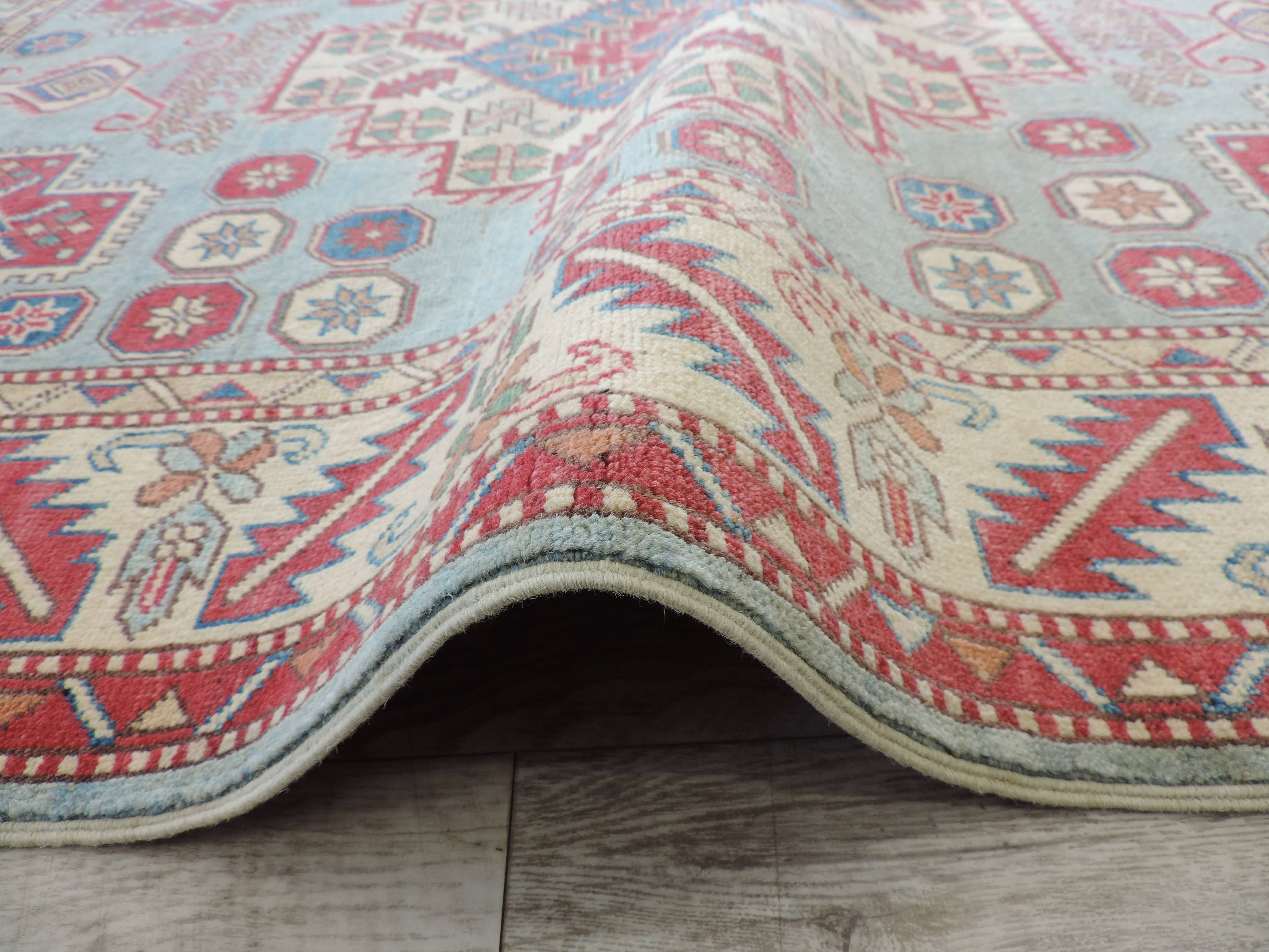 Step into a world of tradition and artistry with our hand-knotted Super Kazak rug, crafted from premium wool and featuring a striking geometric design. Hailing from Afghanistan, this rectangular rug boasts a fiery red primary color that commands attention and adds instant warmth to any room. Now available at an unbeatable sale price, this exceptional piece is more than just a rug – it's a testament to timeless style.