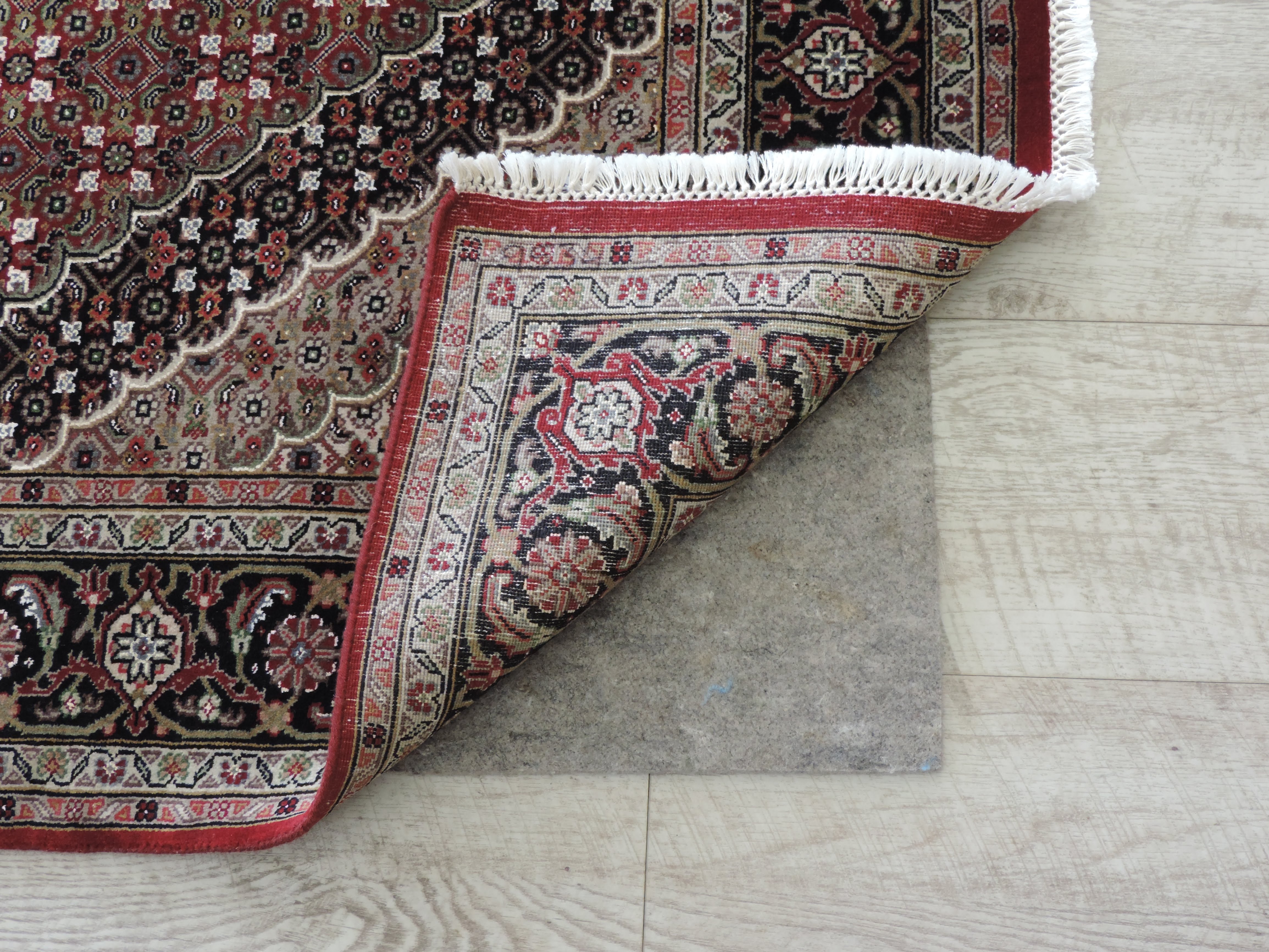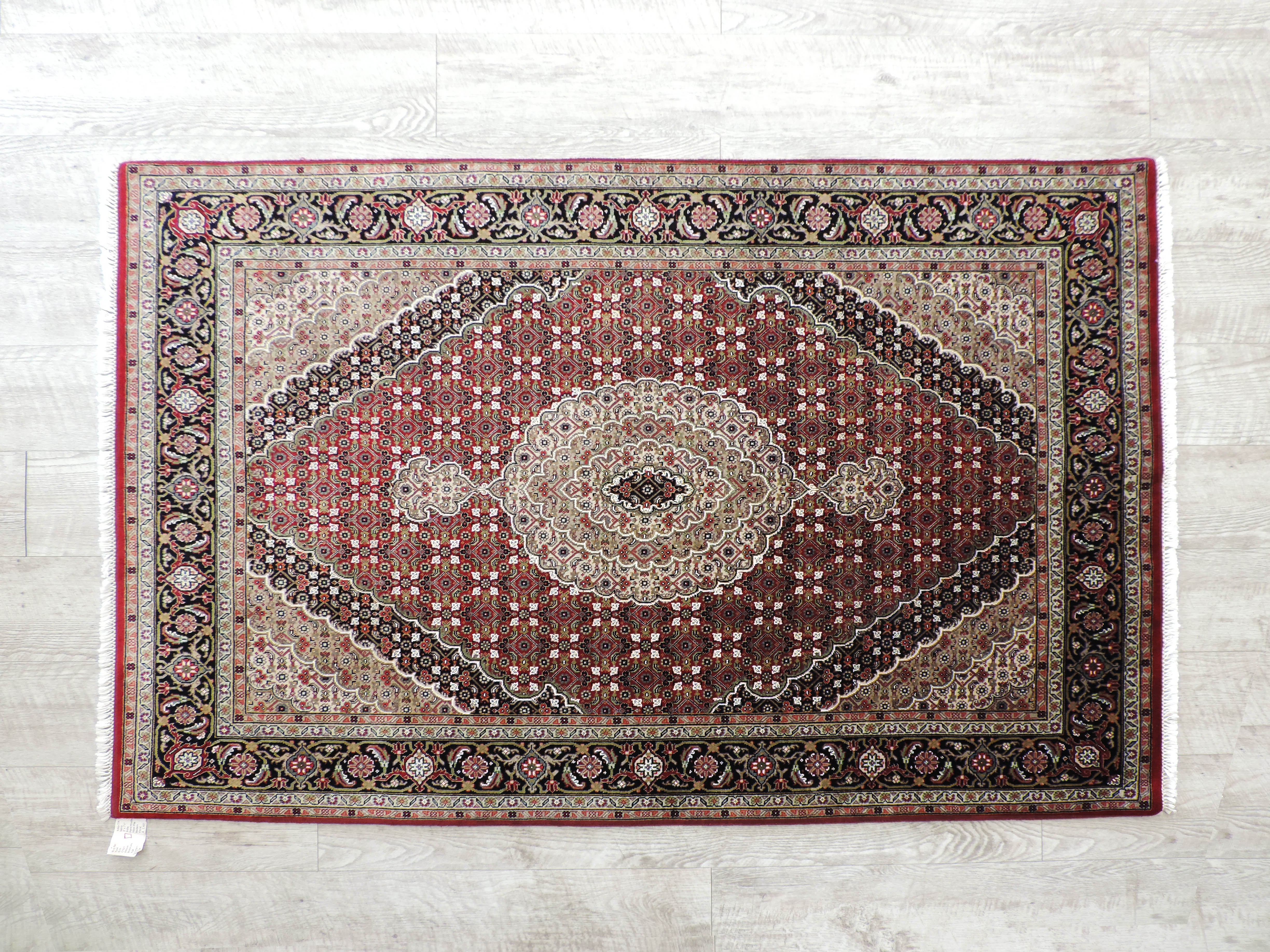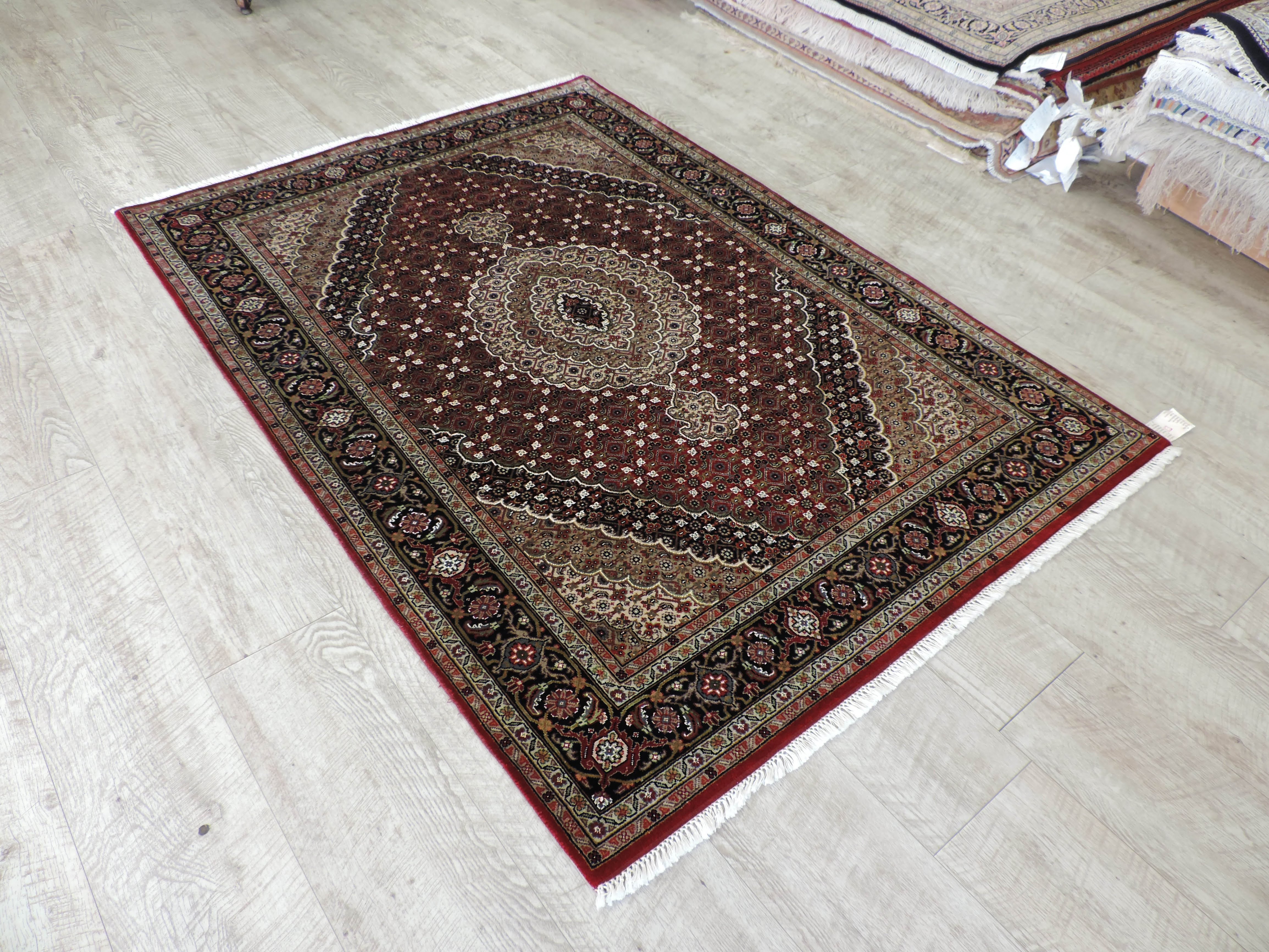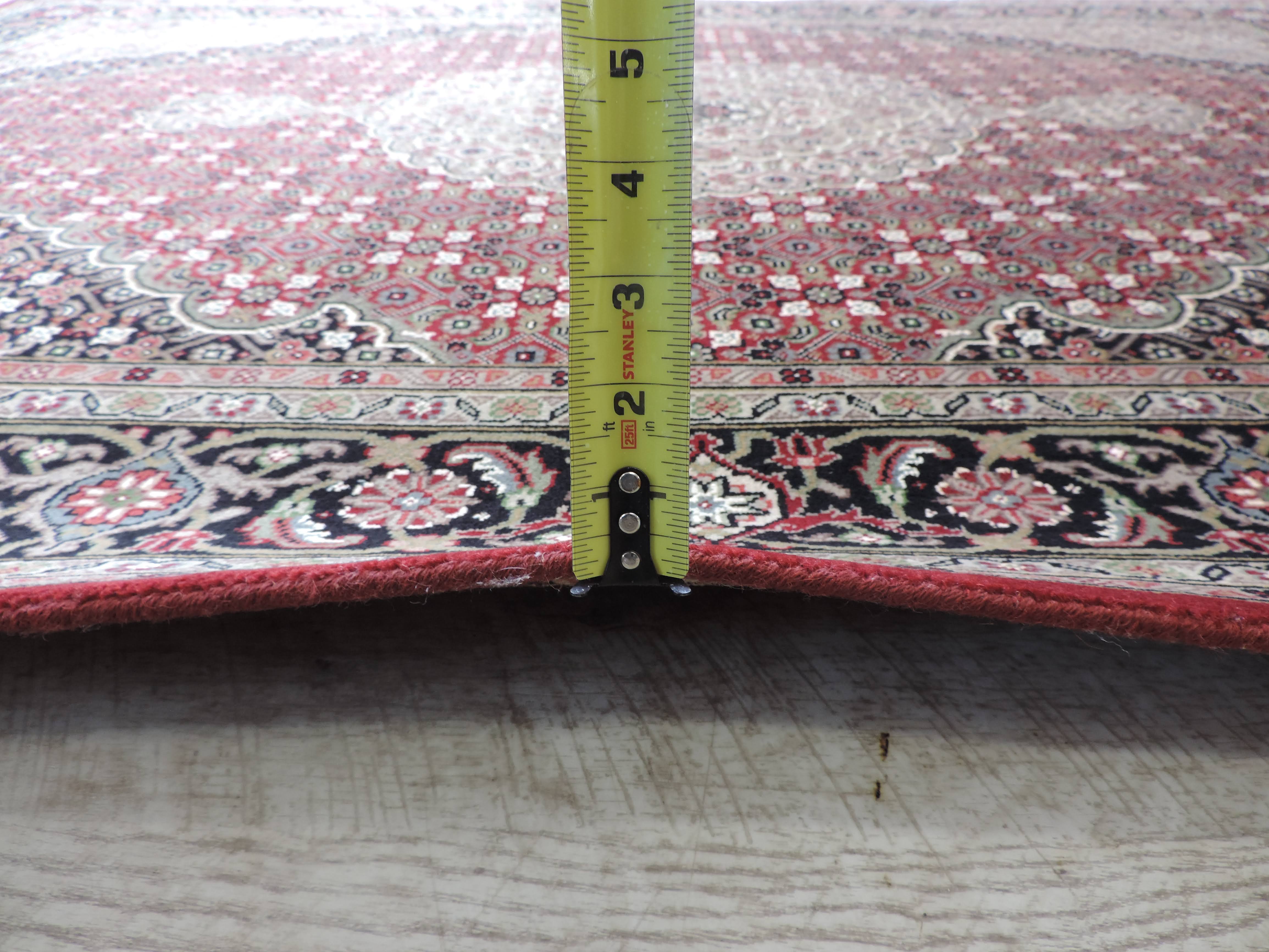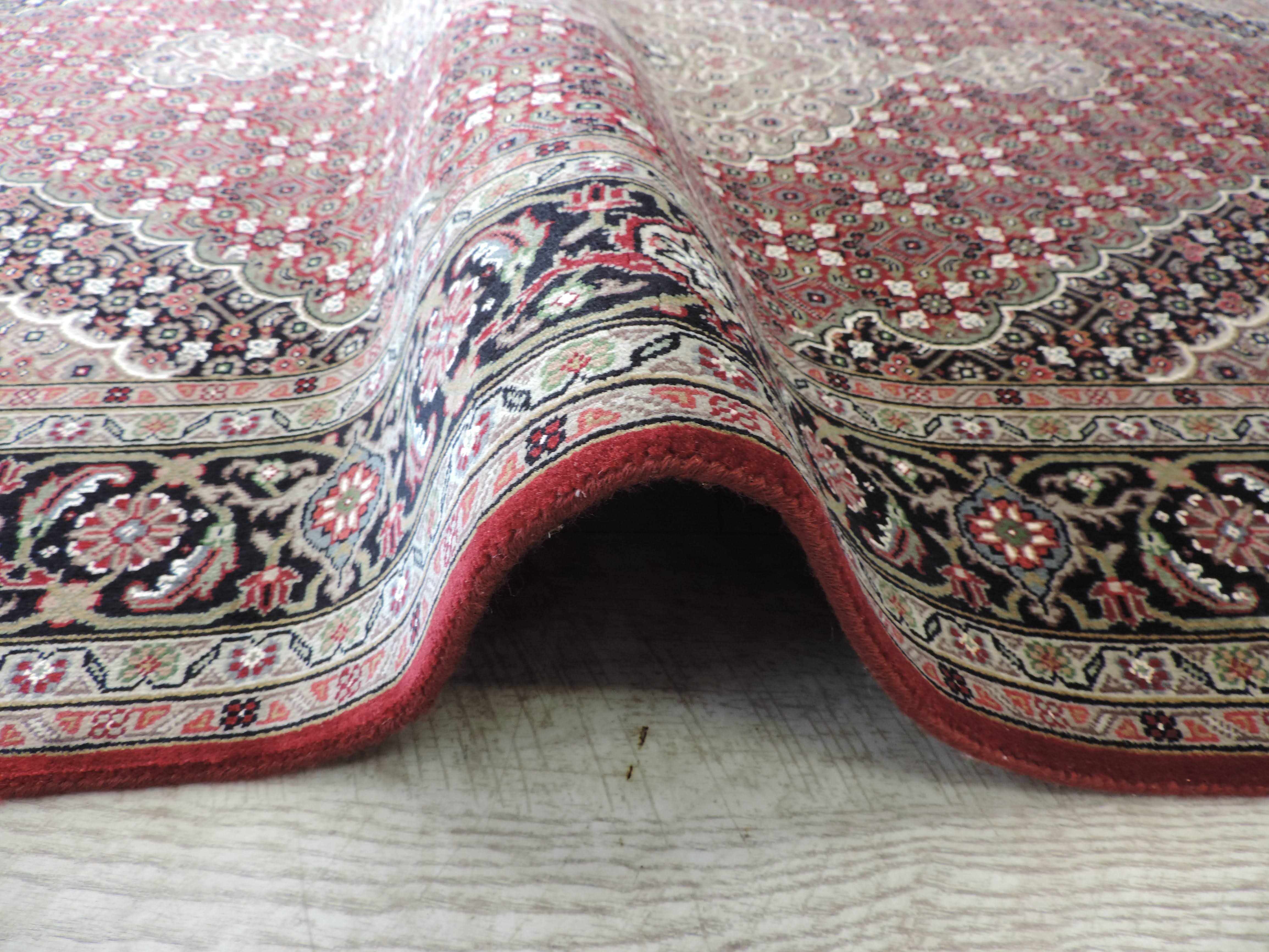 Add a touch of luxury to your living space with the koko-114 Tabriz rug. Hand-knotted in India from pure wool, this rug showcases an intricate floral design in a rich burgundy hue on a cotton foundation. This new and artfully crafted rectangular rug, regularly priced at $3200, is now available at a special sale price of $1600. Don't miss out on adding this elegantly woven piece of art to your home decor.