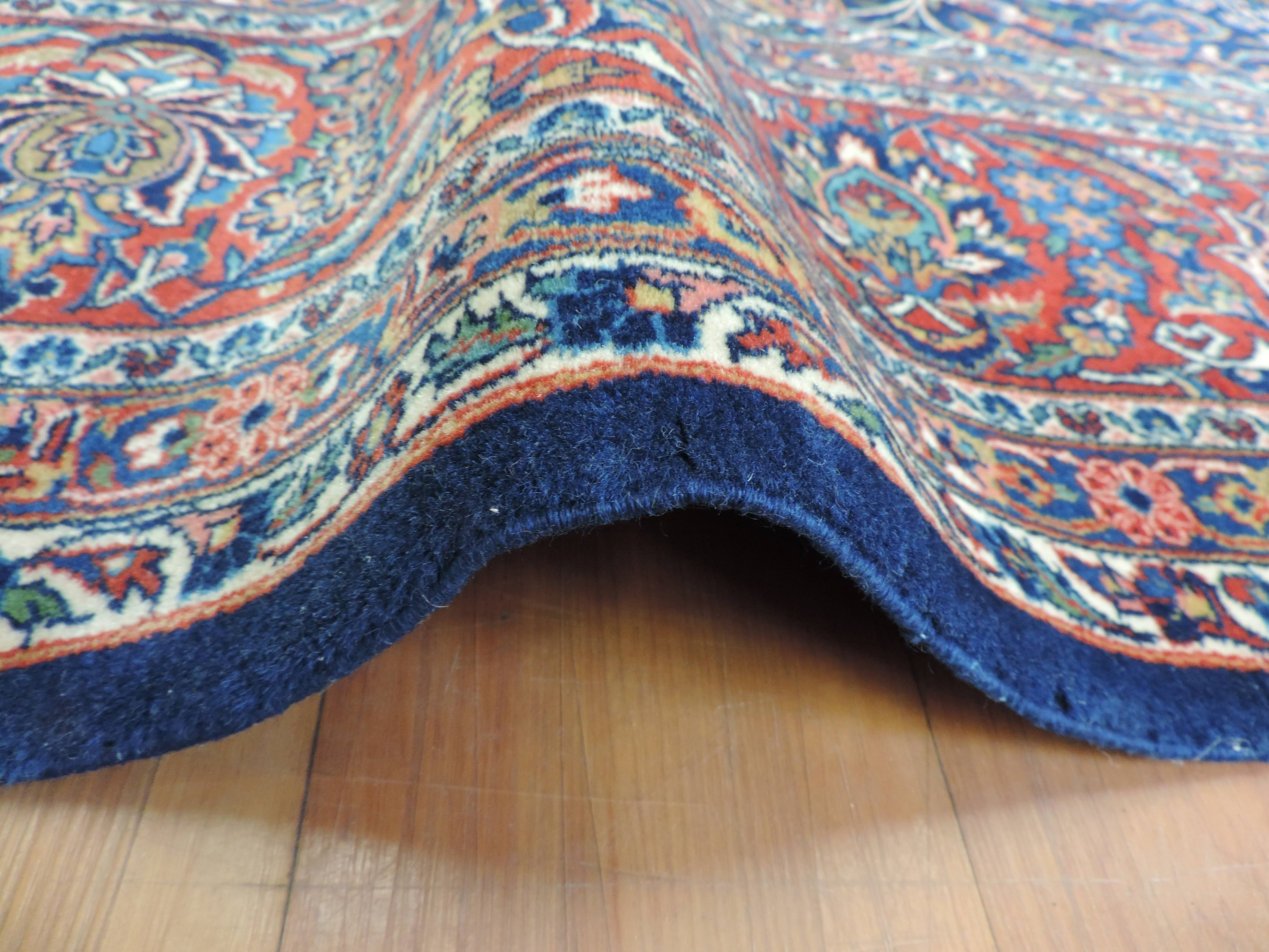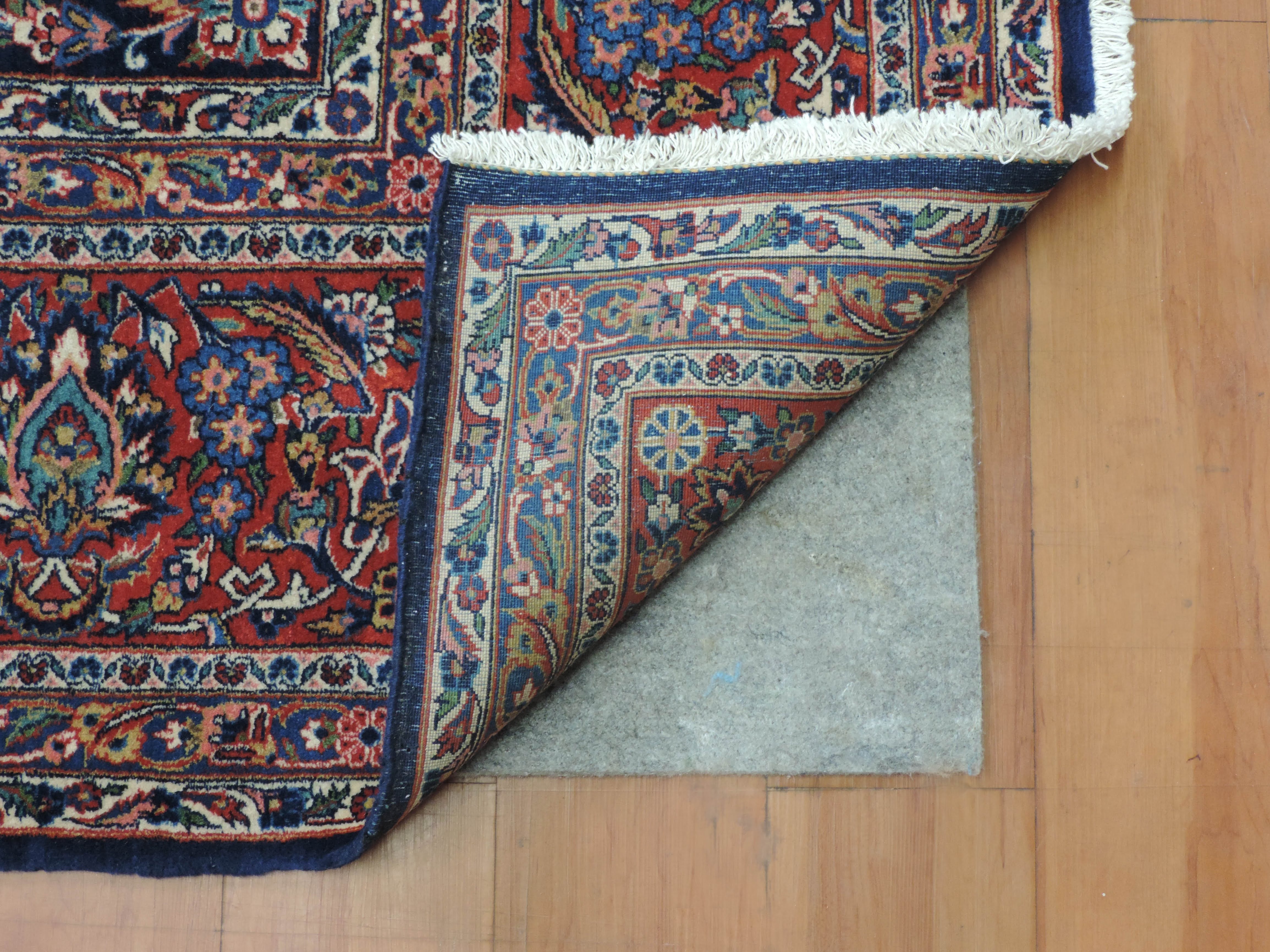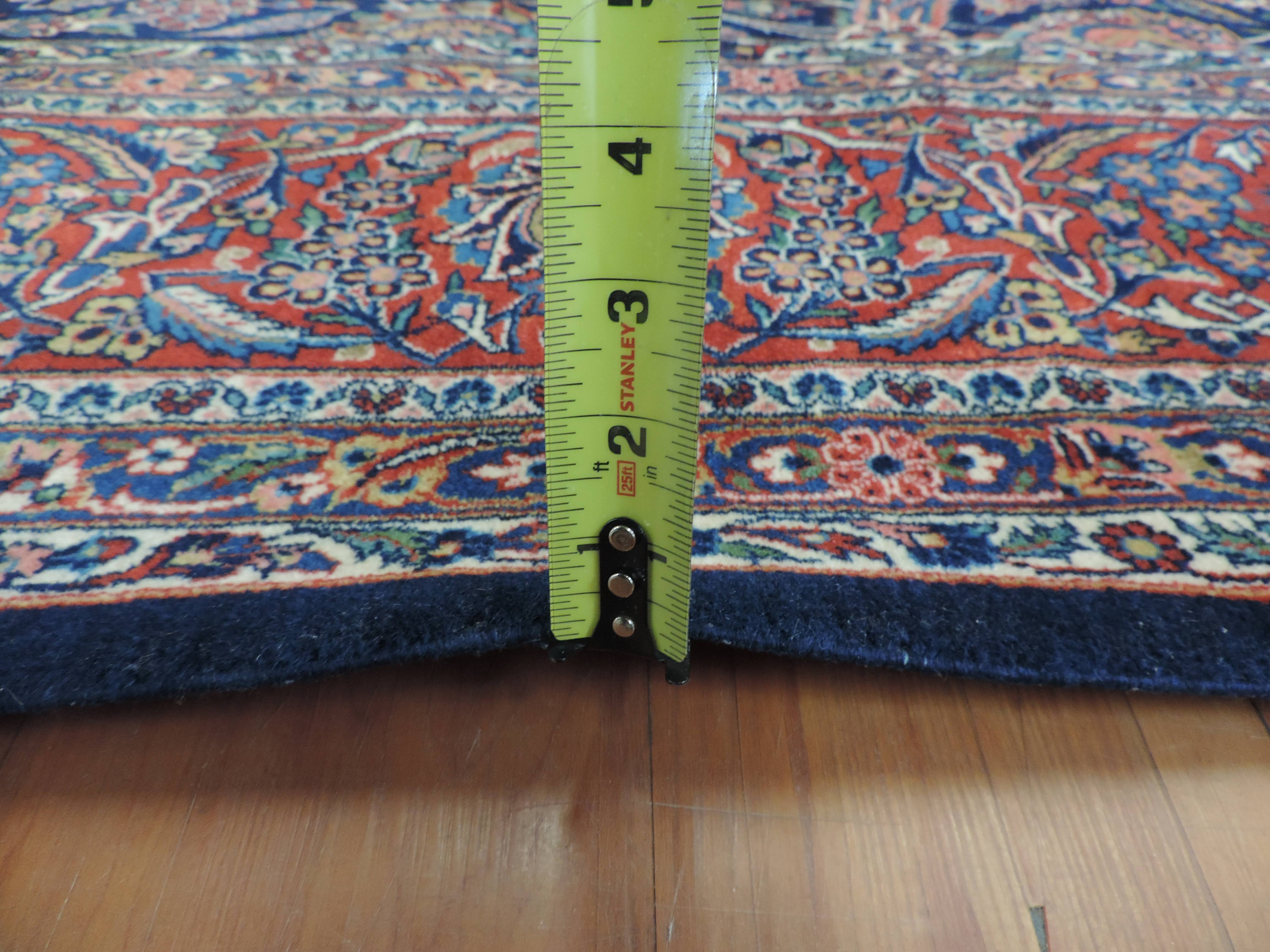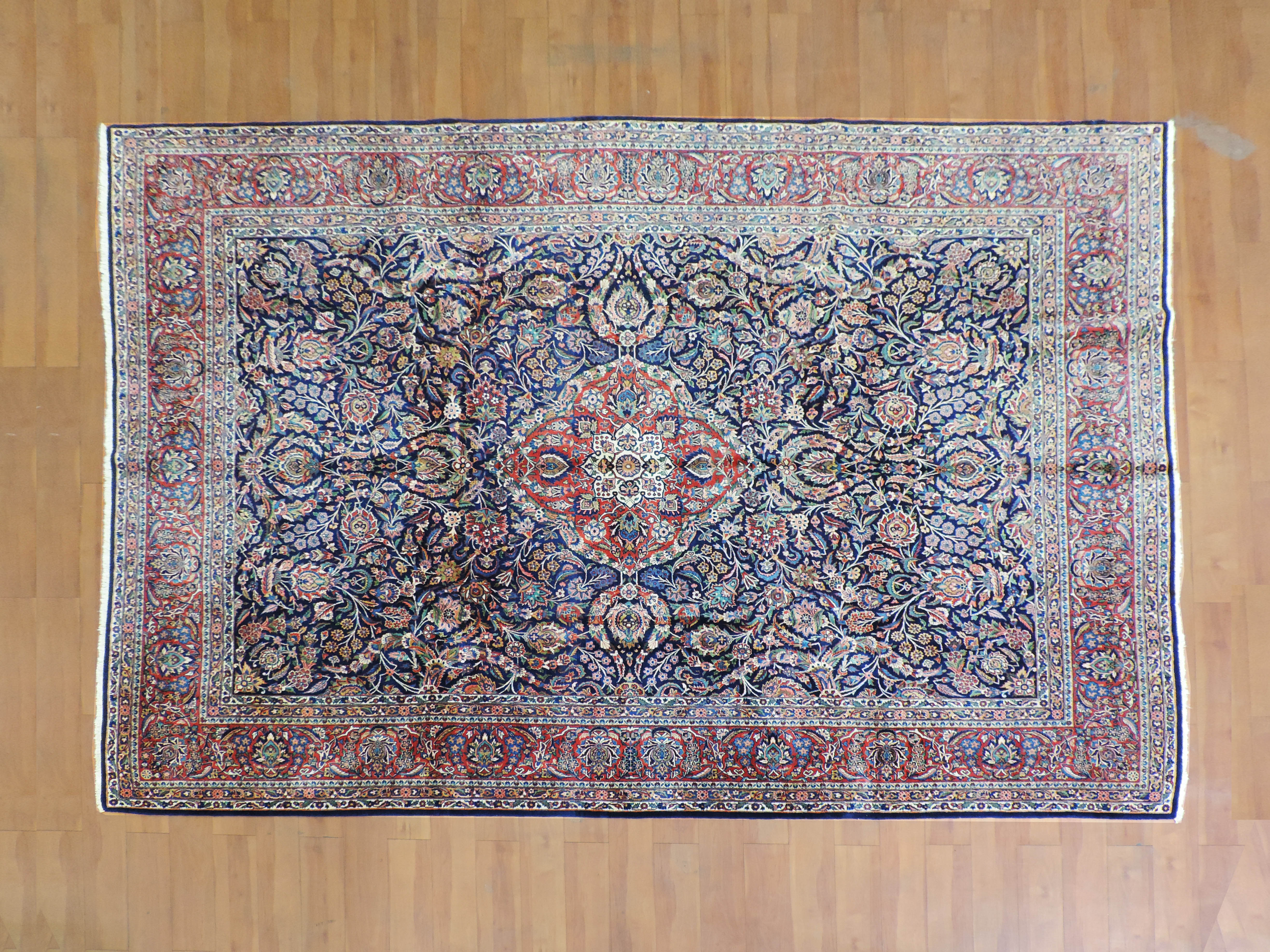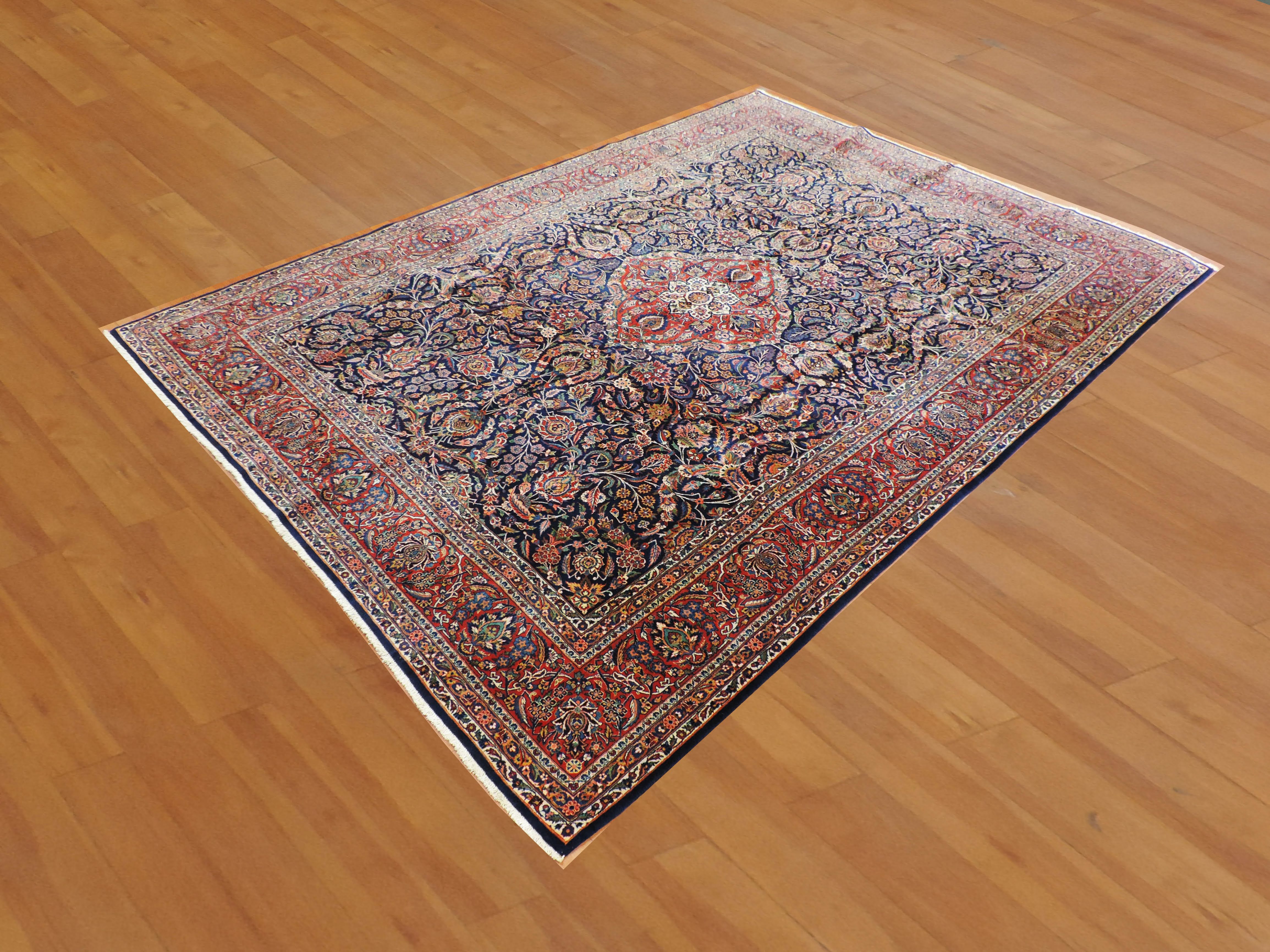 Add a touch of class to your interior with the antique koko-134 Dabir Kashan rug, expertly hand-knotted in Iran from the finest wool. This stunning 9.0x12.1 ft rectangular rug showcases an exquisite floral design set against a rich navy backdrop. Available for a limited time at an irresistible price, this unique piece brings together traditional craftsmanship and timeless style.