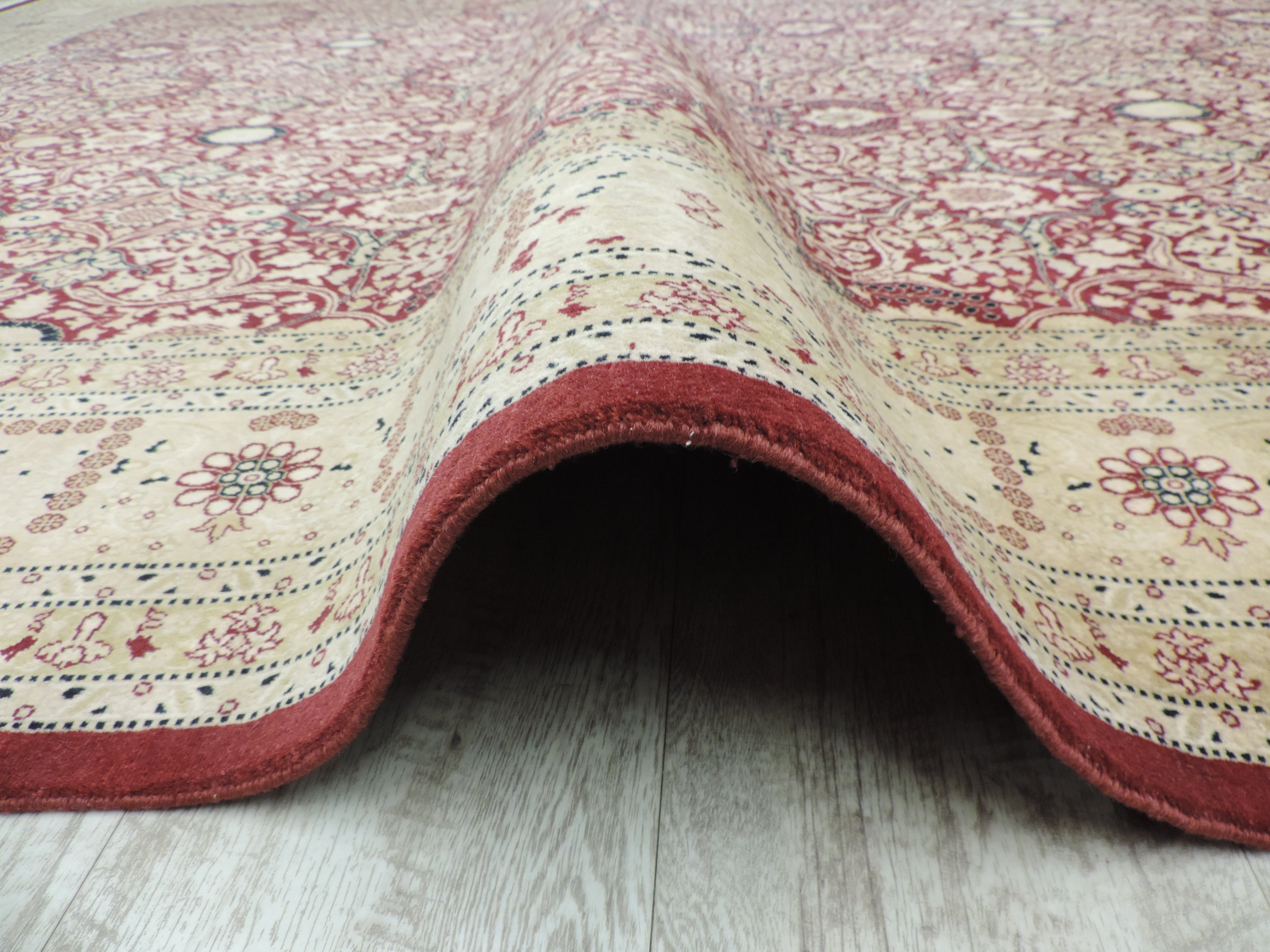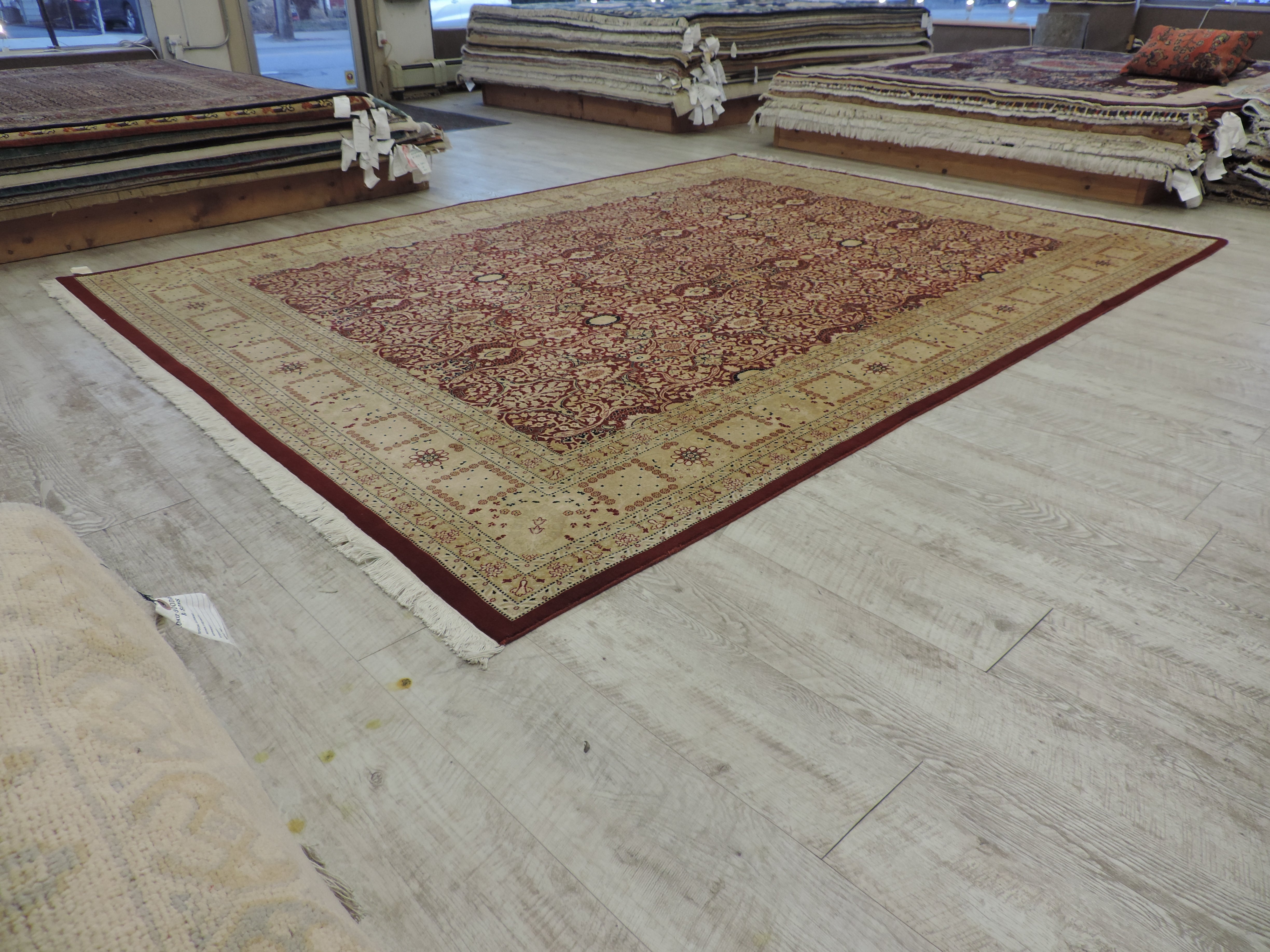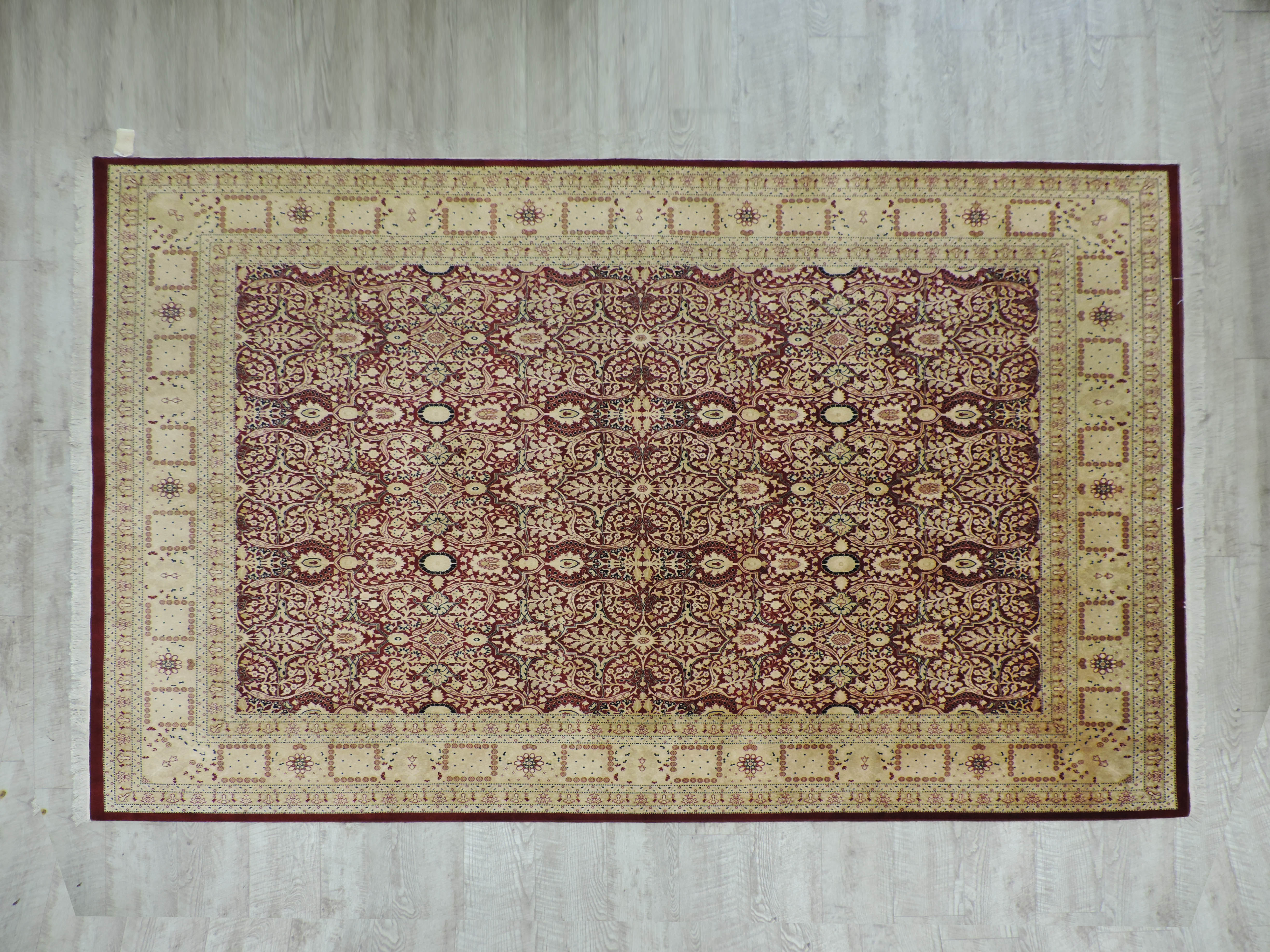 Add an aura of elegance to your living space with the Koko-140 rug. This Pakistani treasure boasts a stunning maroon floral design, hand-knotted into luxurious wool on a sturdy cotton foundation. A perfect blend of style and durability, this magnificent Tabriz rug, available for a reduced price, is sure to steal the show in any room.