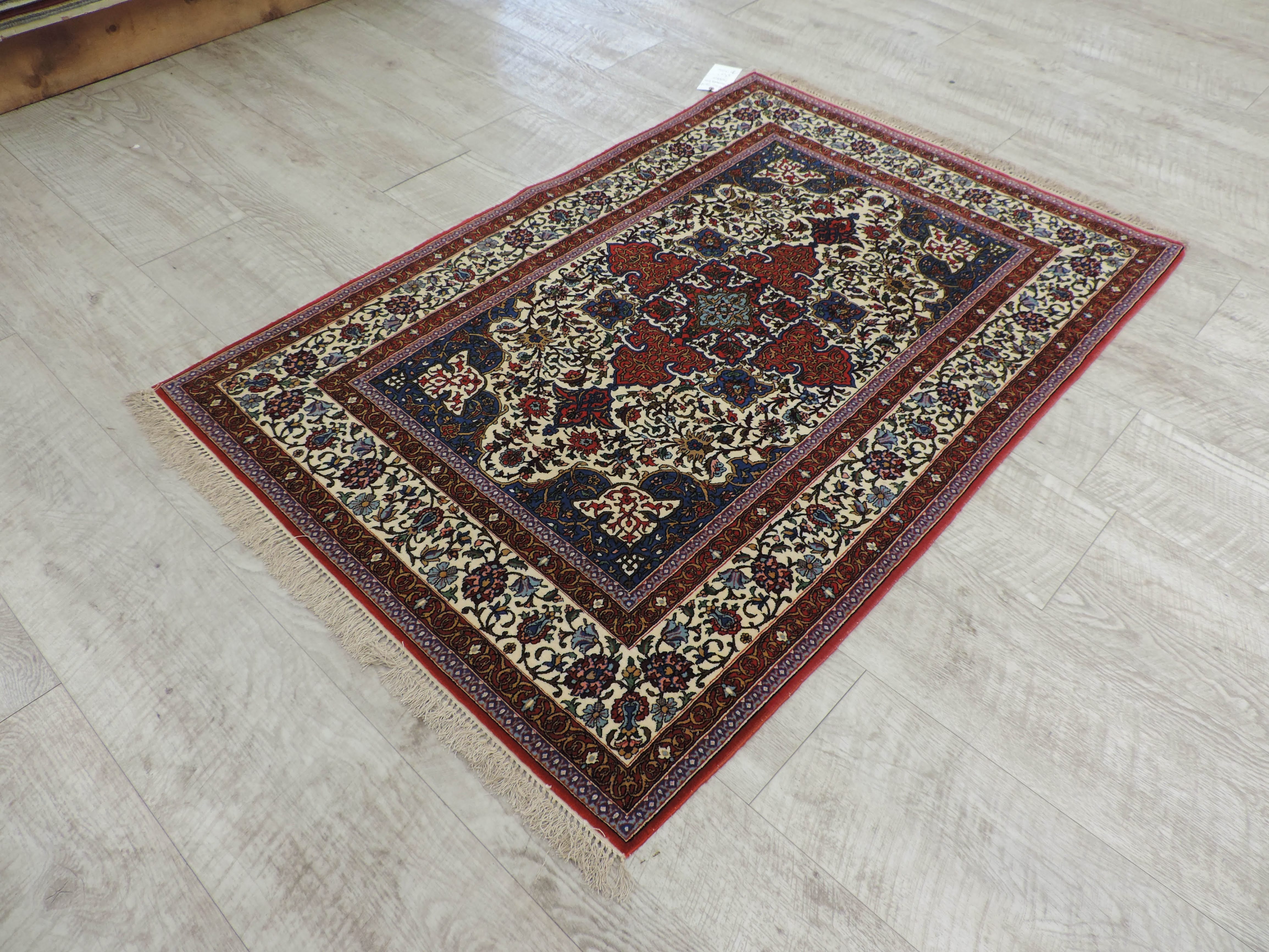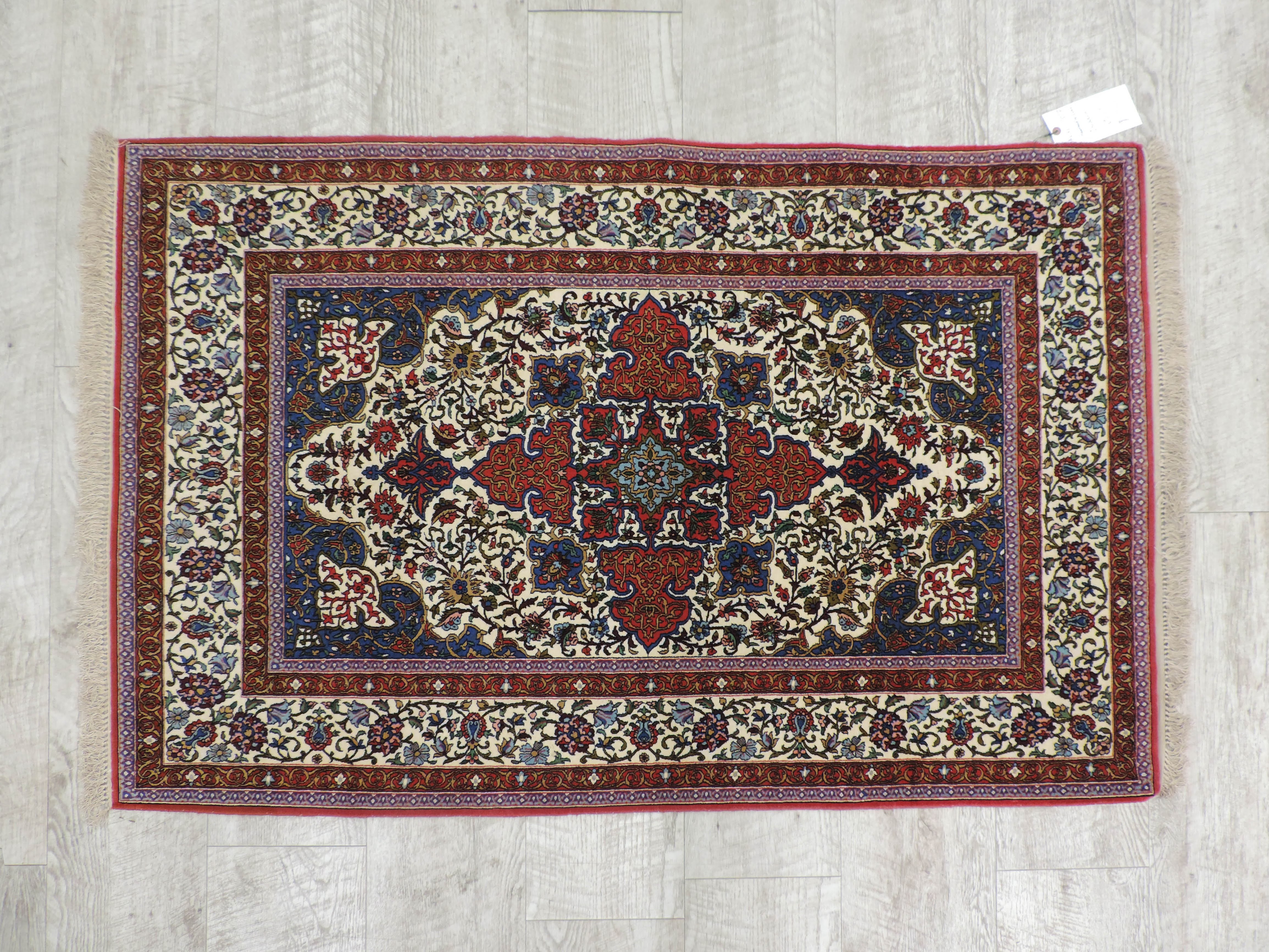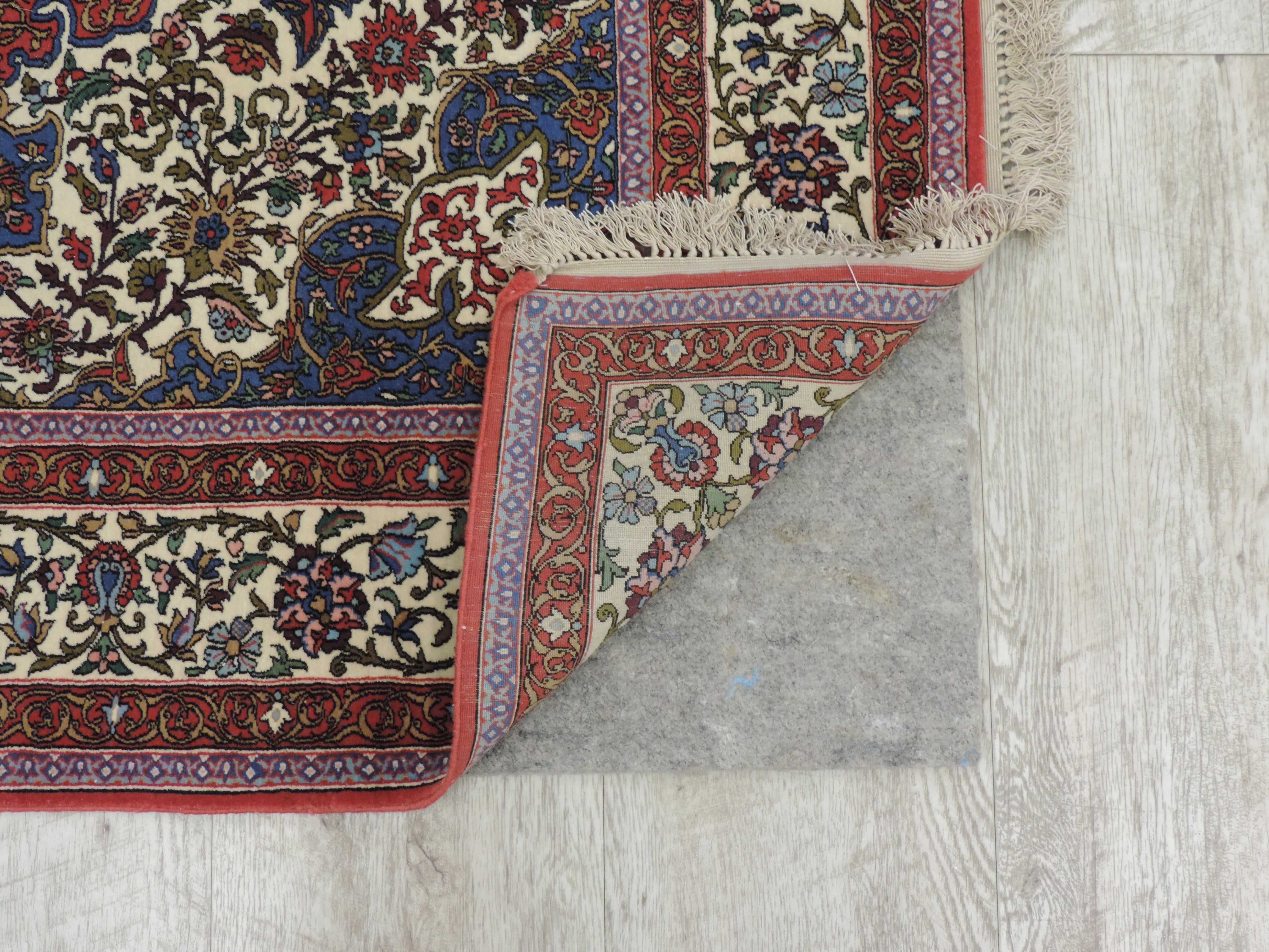 Immerse your living space in the timeless elegance of the Ivory ISFAHAN KOKO-2017 rug. This hand-knotted treasure, originating from Iran, delights with its intricate floral design woven from the finest wool on a sturdy cotton foundation. Its rectangular silhouette, coupled with the soft ivory tone, adds a touch of sophistication to any decor style. Now available at a special sale price, indulge in this unique piece that flawlessly blends tradition and luxury.