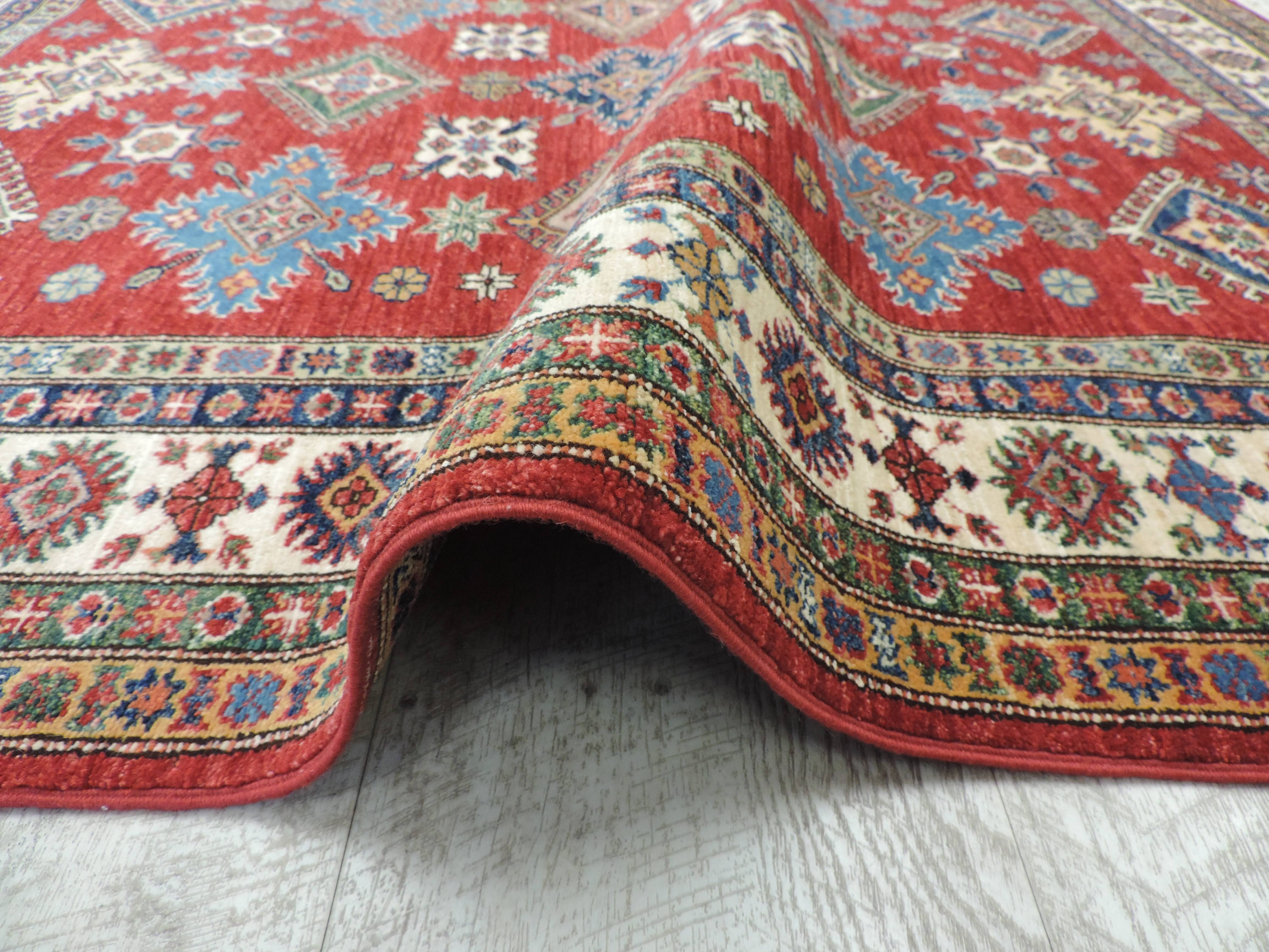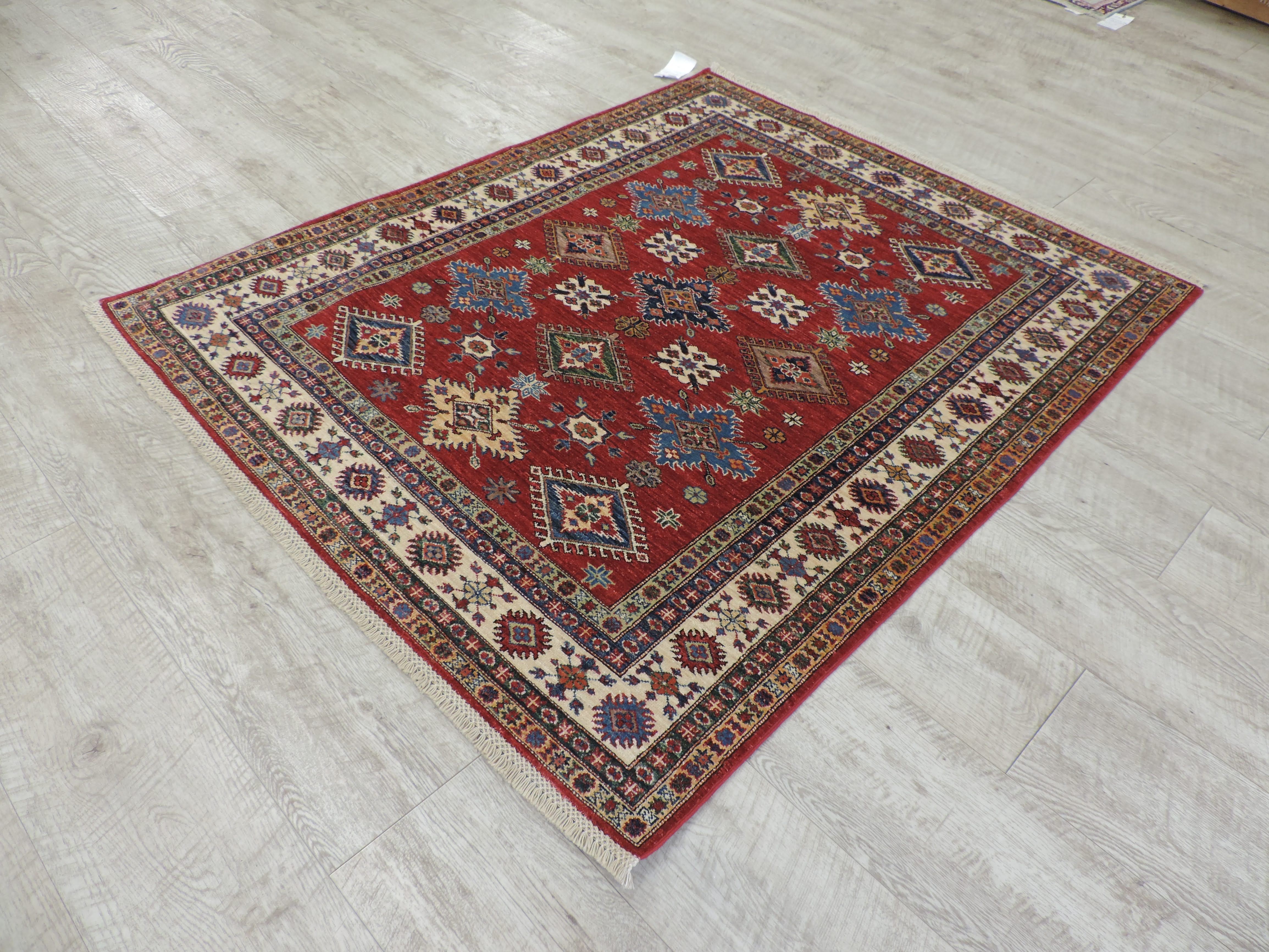 Experience the marriage of tradition and elegance with the KOKO-2023 rug. Hand-knotted in Afghanistan from high-quality wool, this distinctive square rug captivates with its intricate floral design, set against a vibrant red backdrop. Currently on sale, this one-of-a-kind Kazak rug offers an authentic and luxurious touch to any room, promising durability and unmatched style.