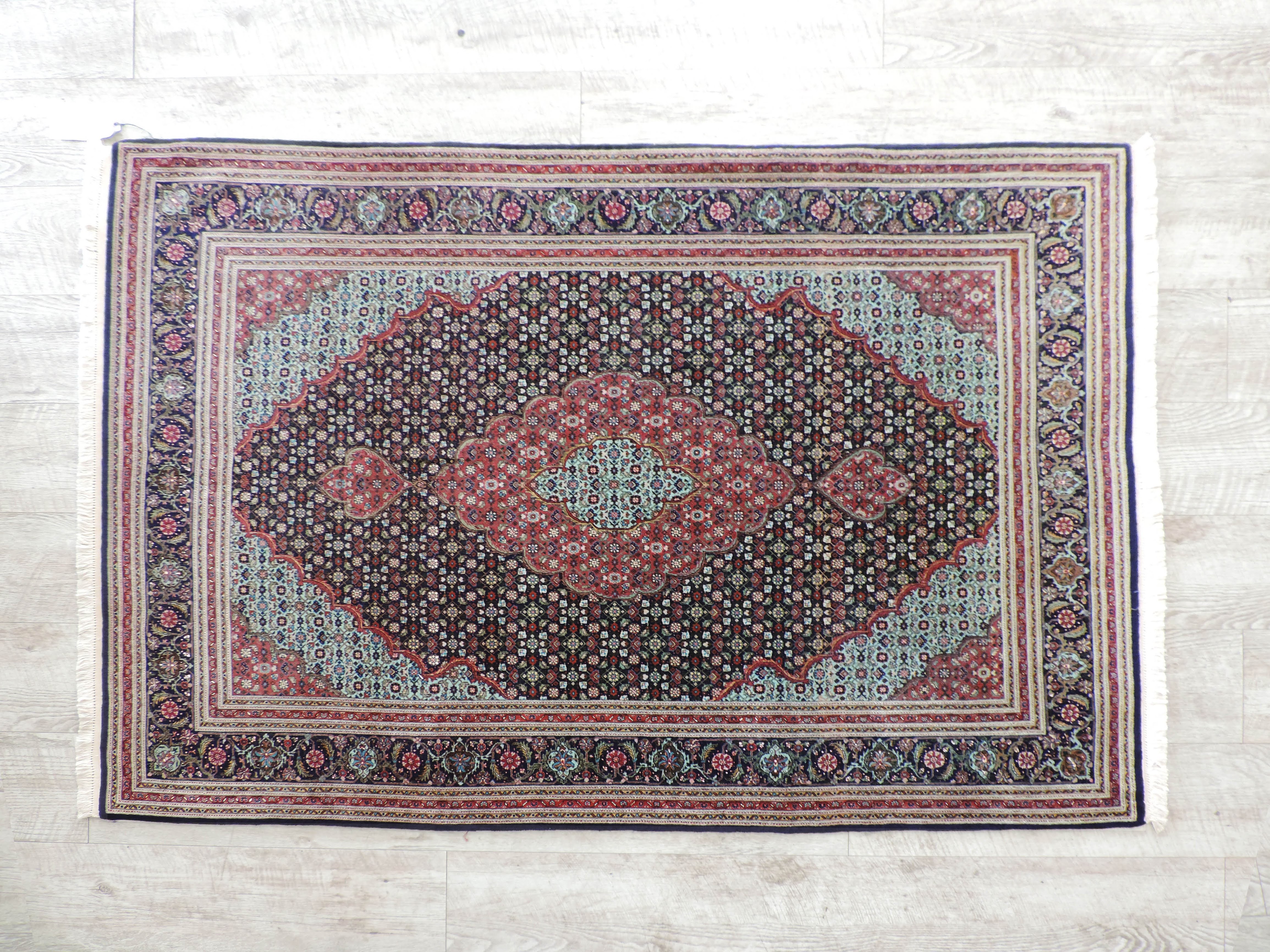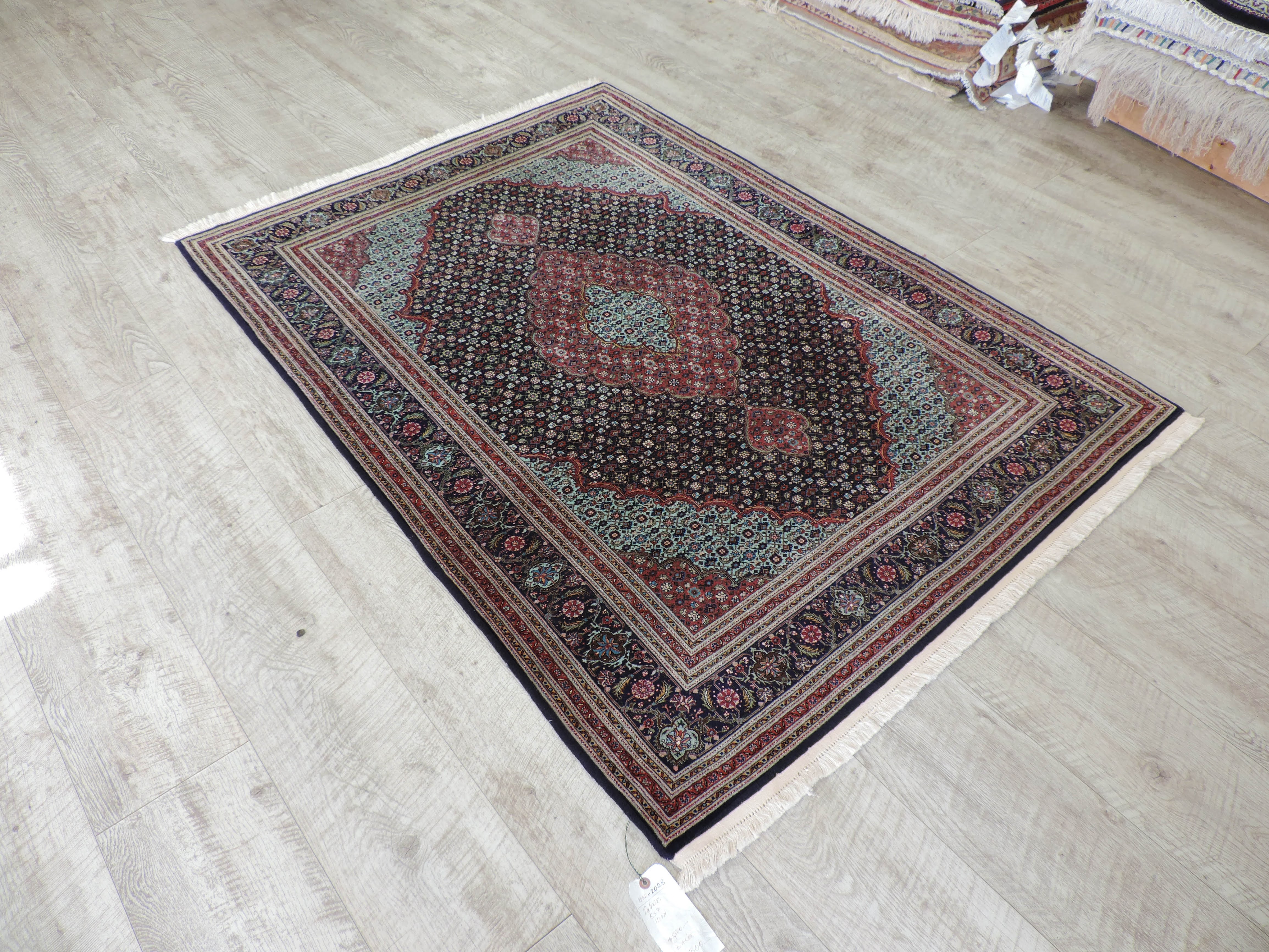 Experience the opulence and craftsmanship of Iran with the KOKO-2028 rug. This hand-knotted beauty, crafted from premium wool with a cotton foundation, showcases a captivating floral design in a rich blue palette. Perfectly sized at 5.0 by 7.0 feet, its rectangular shape is ideal for enhancing any space with elegance. Immerse in the luxury of a new, authentic Tabriz rug at a spectacular sale price.