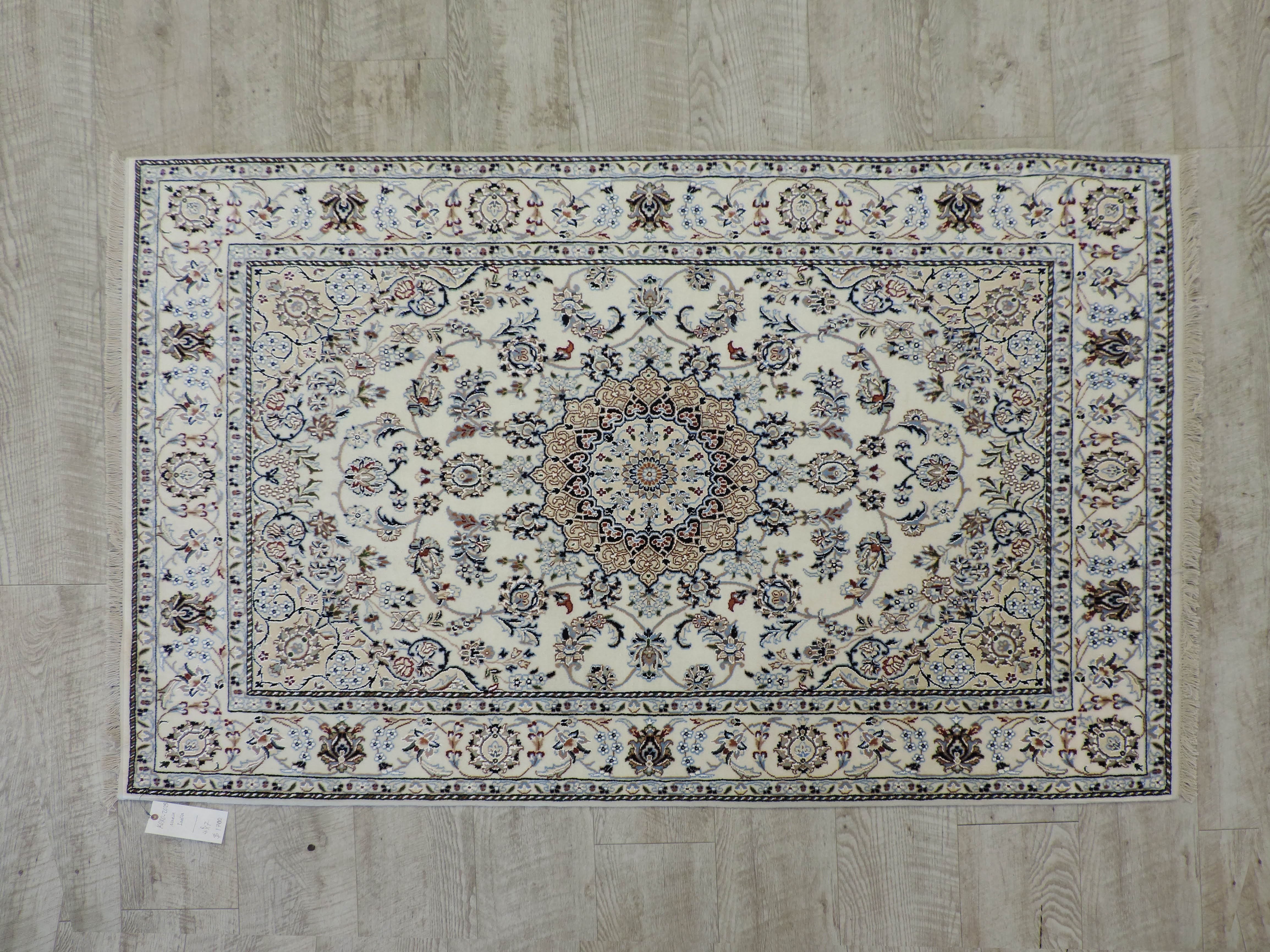 Introduce an element of timeless elegance to your home with our KOKO-2025 rug. This exquisite piece, hand-knotted in India from premium wool and silk, boasts a gorgeous ivory floral design that will effortlessly complement any décor. Now available for half its original price, this exquisite rug offers both unparalleled comfort and sophistication to any space it graces.