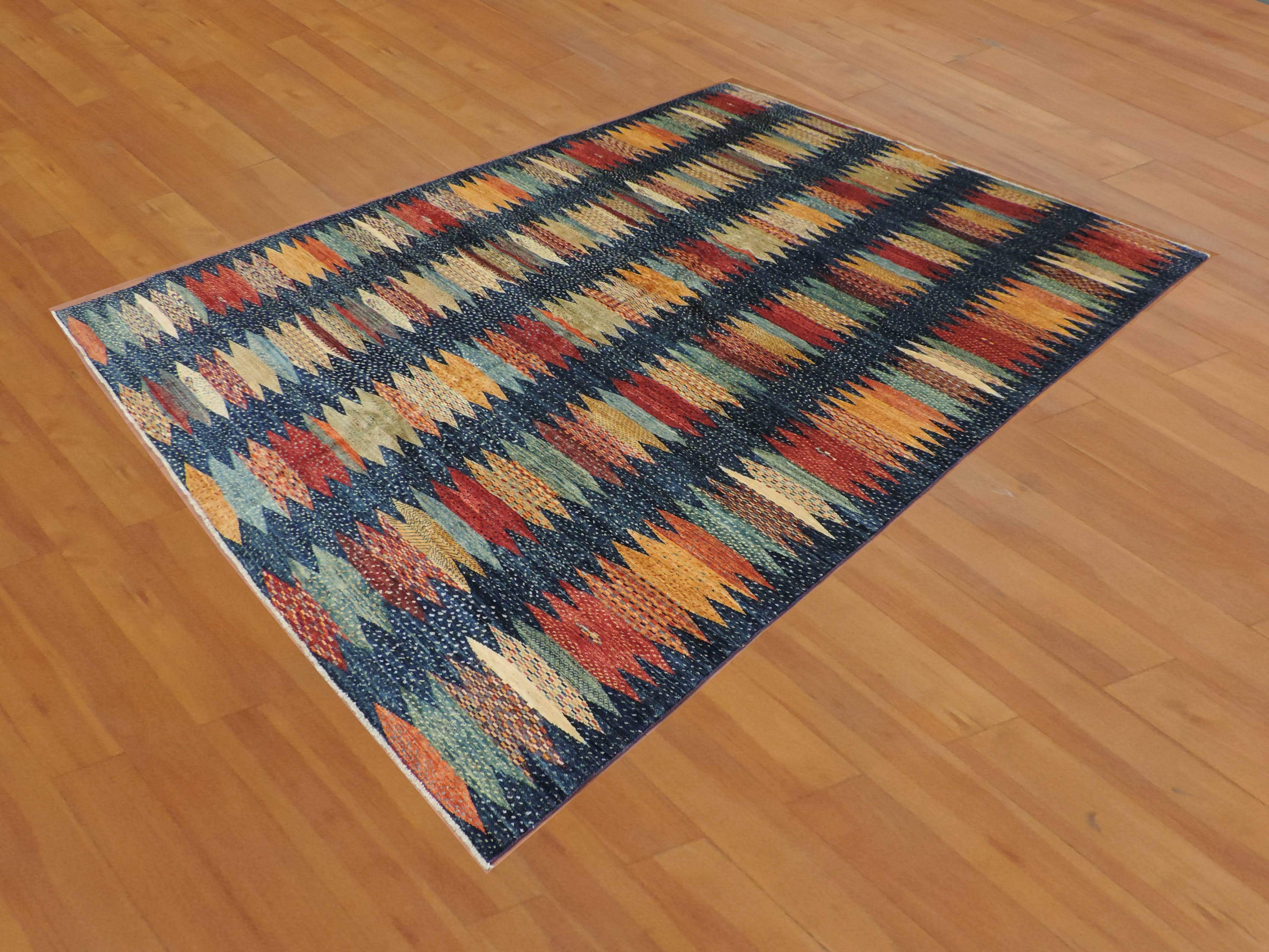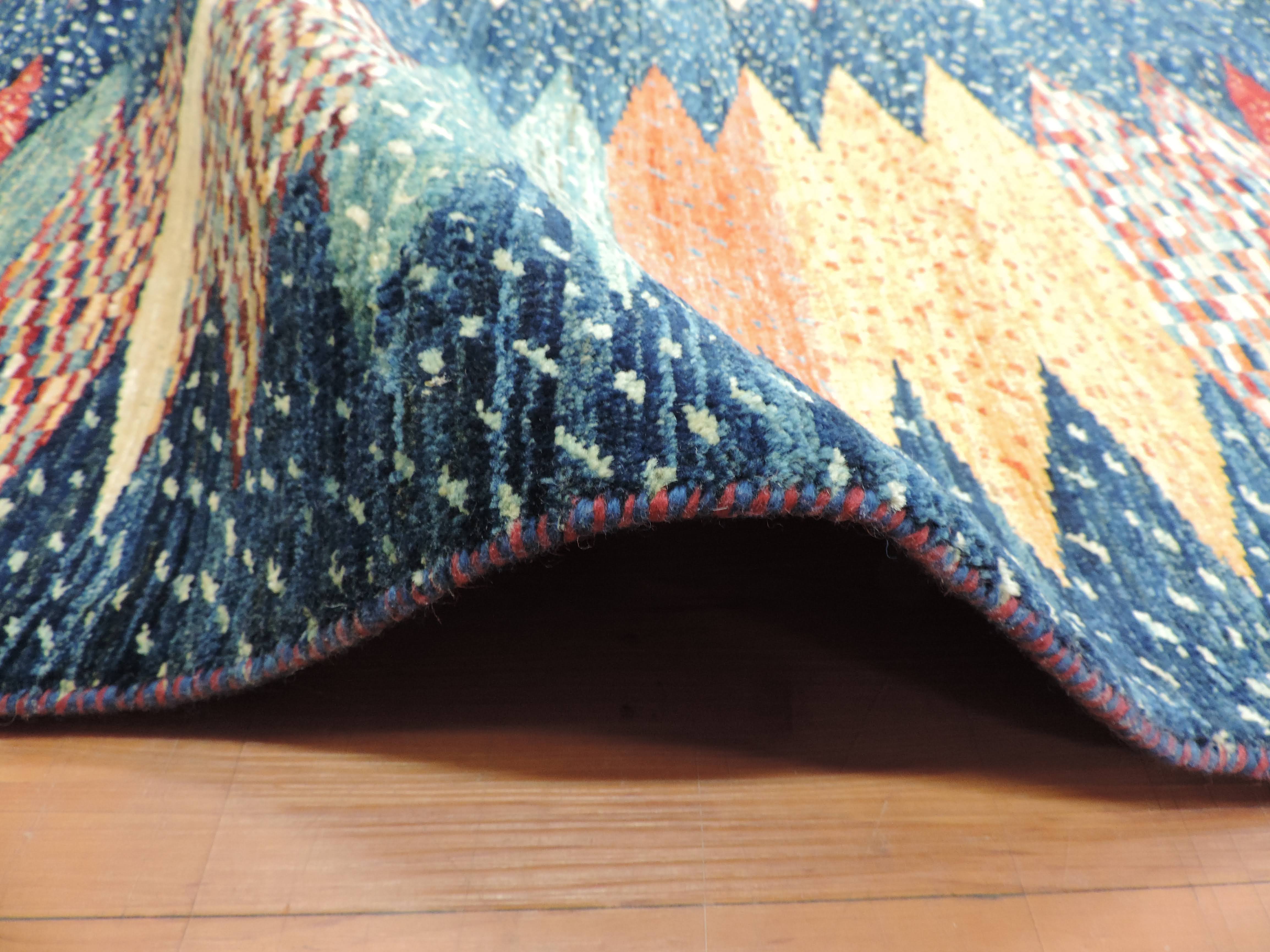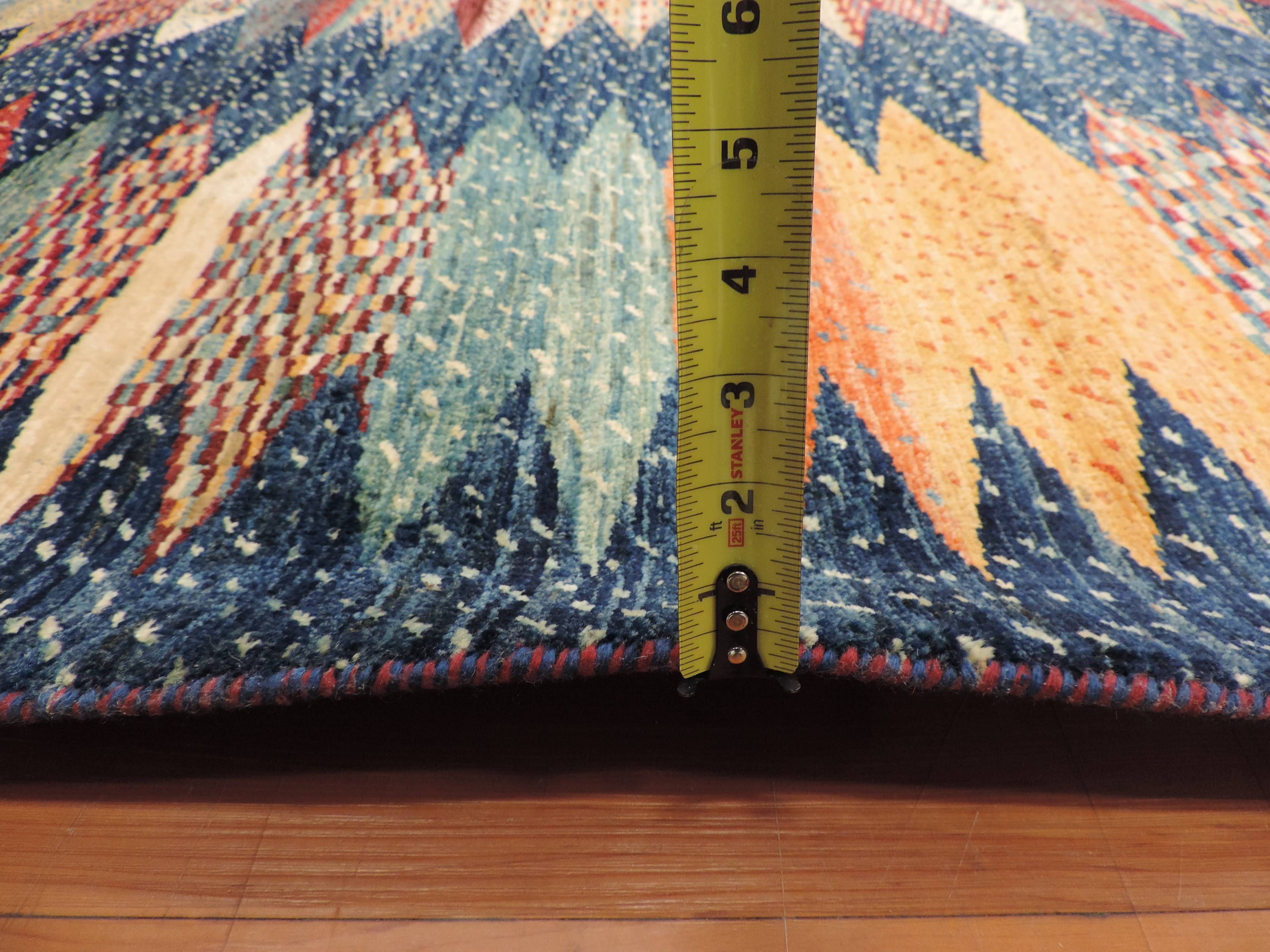 Add a touch of exquisite elegance to your home with this hand-knotted, geometric design, SAVANAH rug (KOKO-2108). Crafted from high-quality wool with a sturdy cotton foundation, its vibrant blue hues and captivating geometric patterns are sure to enhance any space. With an impressive size of 9.10 by 12.10, this rug, originating from India, offers plush comfort and a unique style that is now available at a tempting sale price.