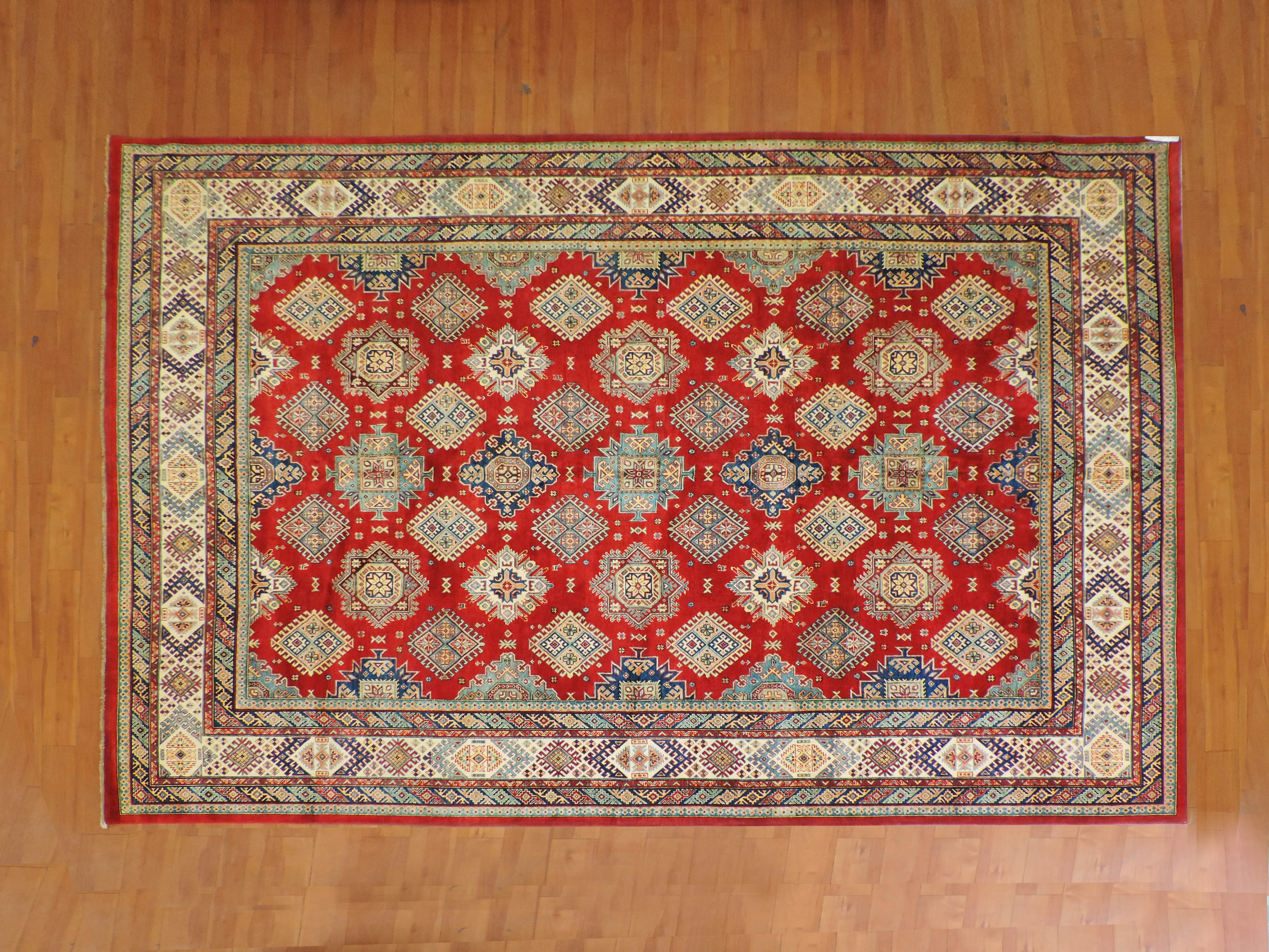 Infuse an aura of vibrant sophistication into your living space with our Koko-2109 Kazak rug. Hand-knotted from wool in Afghanistan, and boasting a vibrant red hue with a distinctive geometric design, this rectangular oriental rug is the epitome of enduring style and remarkable quality. Now available at a stunning discount, this elegant piece is a must-have for discerning collectors and style enthusiasts alike.