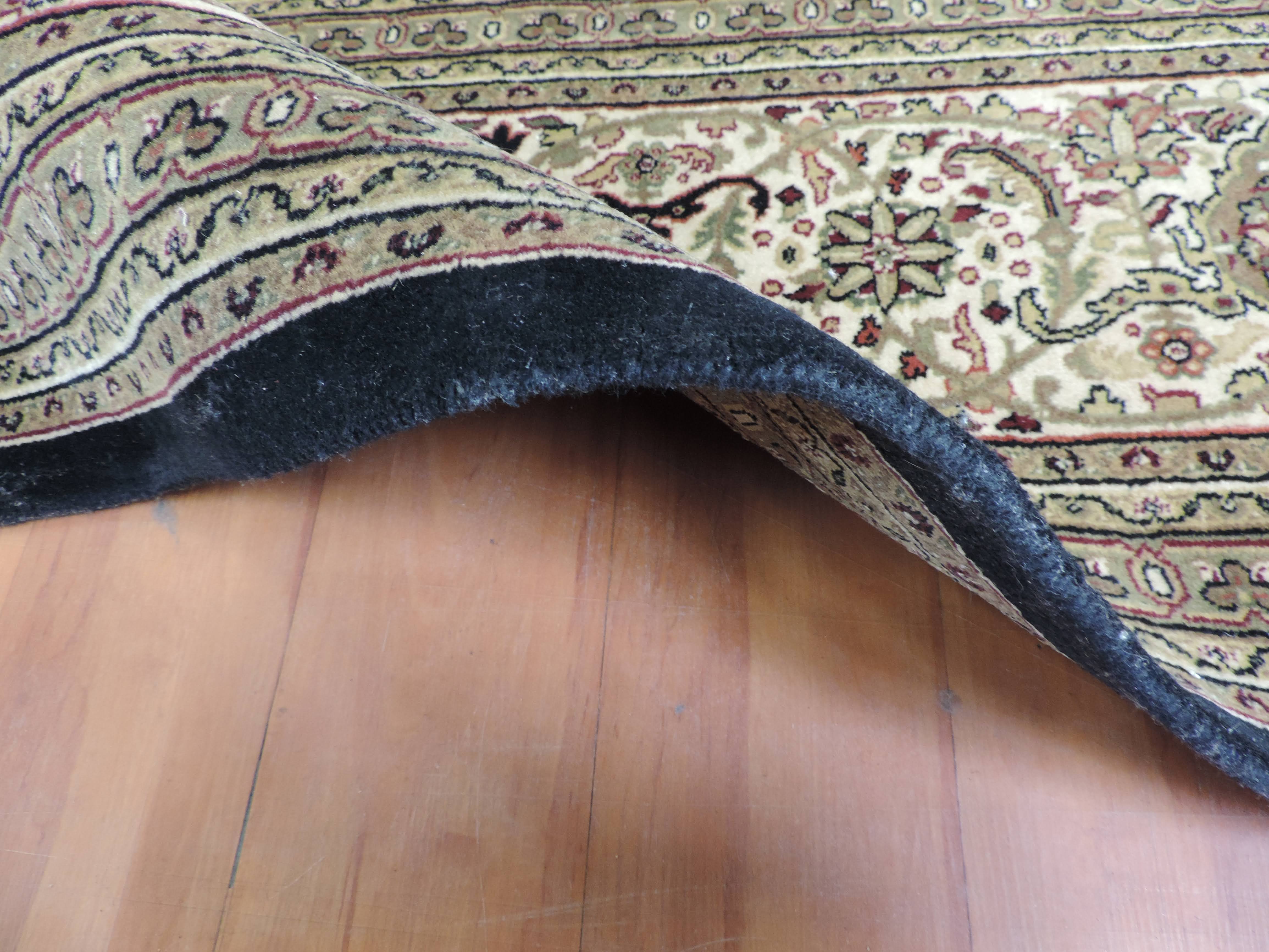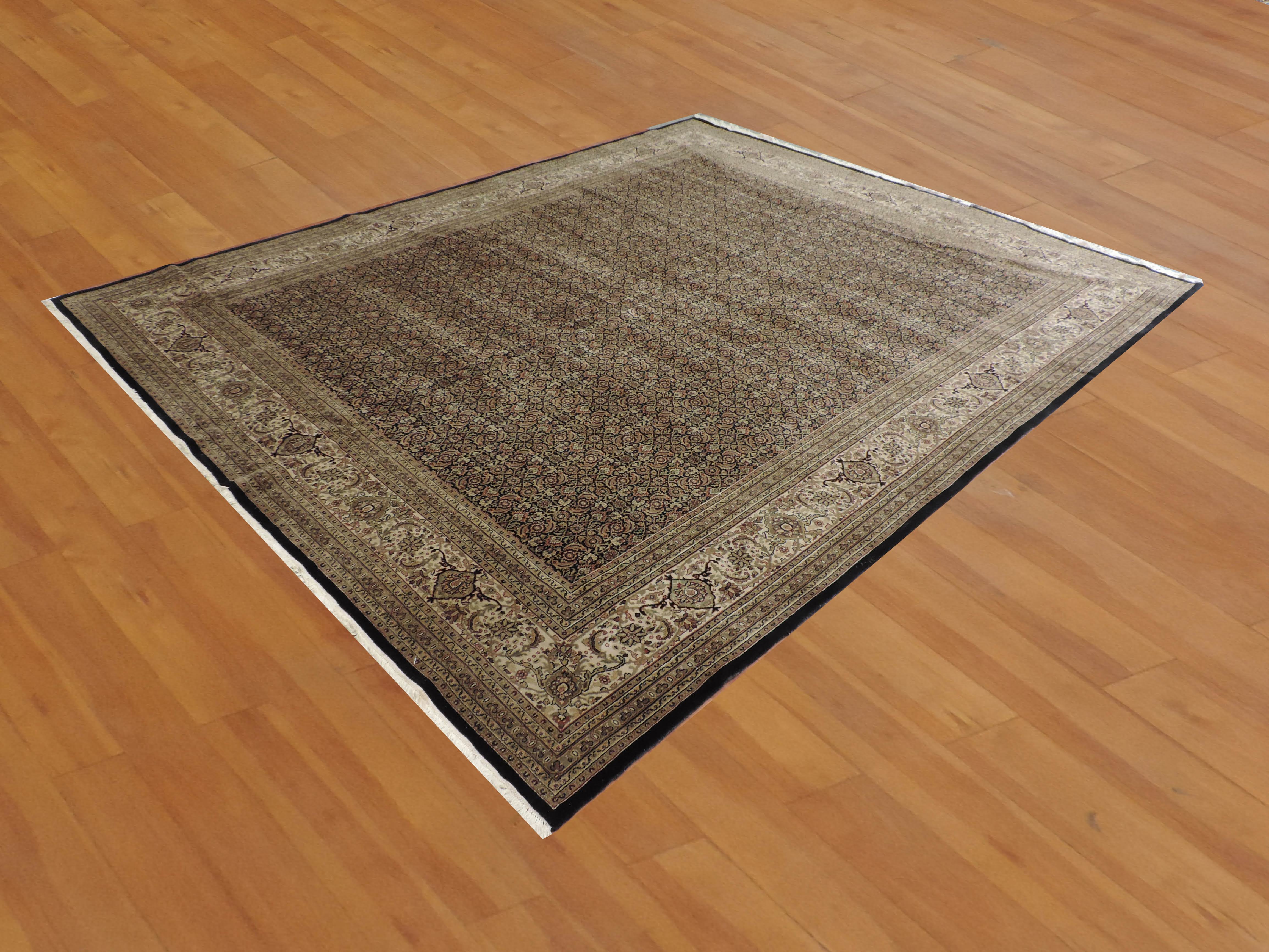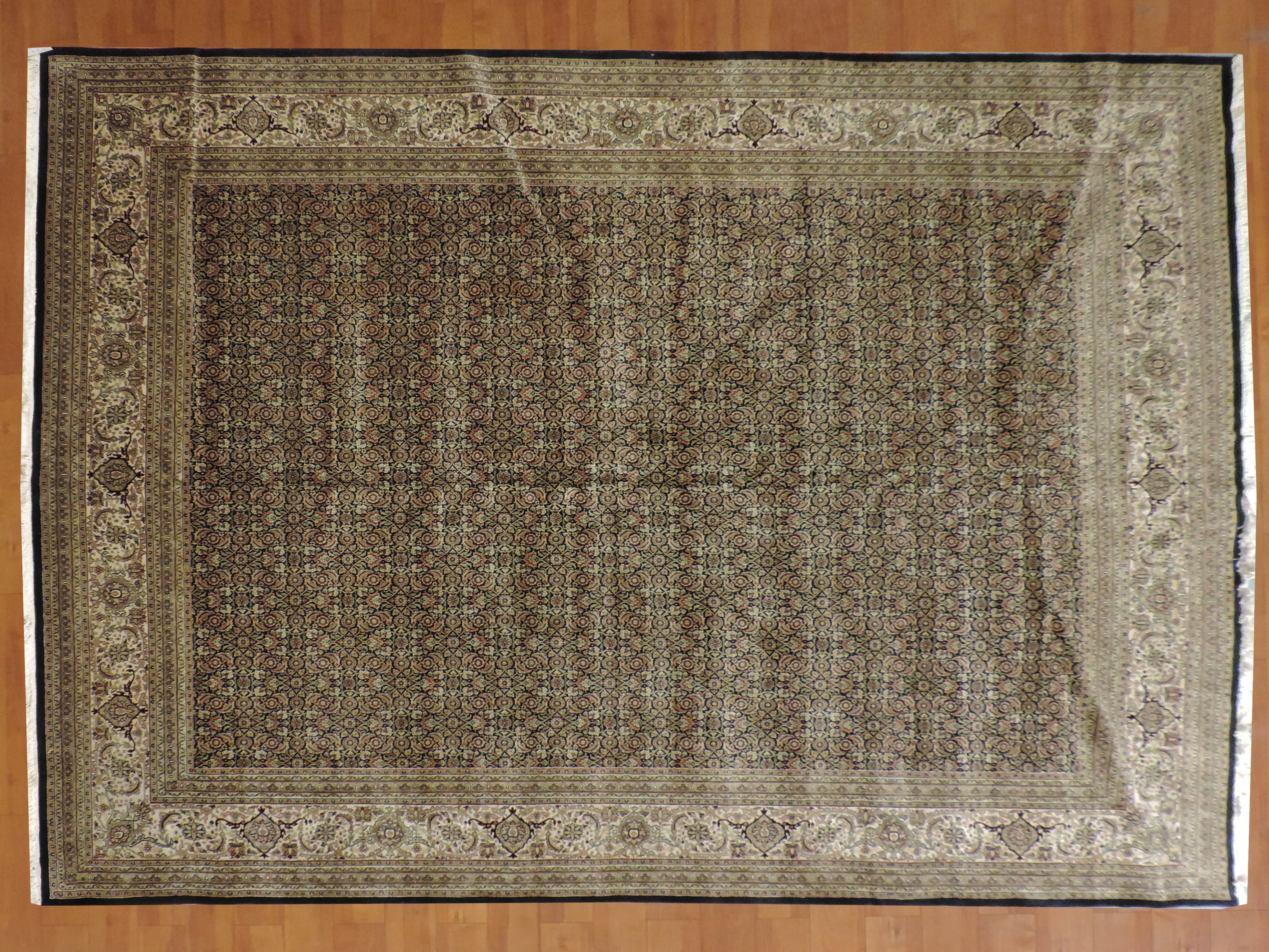 Introduce a touch of elegance to your living space with our Koko-2114 rug. Expertly hand-knotted in India, this exquisite piece showcases a vibrant green hue with an intricate geometric design, all woven from high-quality wool onto a sturdy cotton foundation. Now available at half price, this luxurious Tabriz-style rug, measuring 12.1 x 14.8 feet, adds an exquisite touch of oriental charm that's sure to captivate your guests.