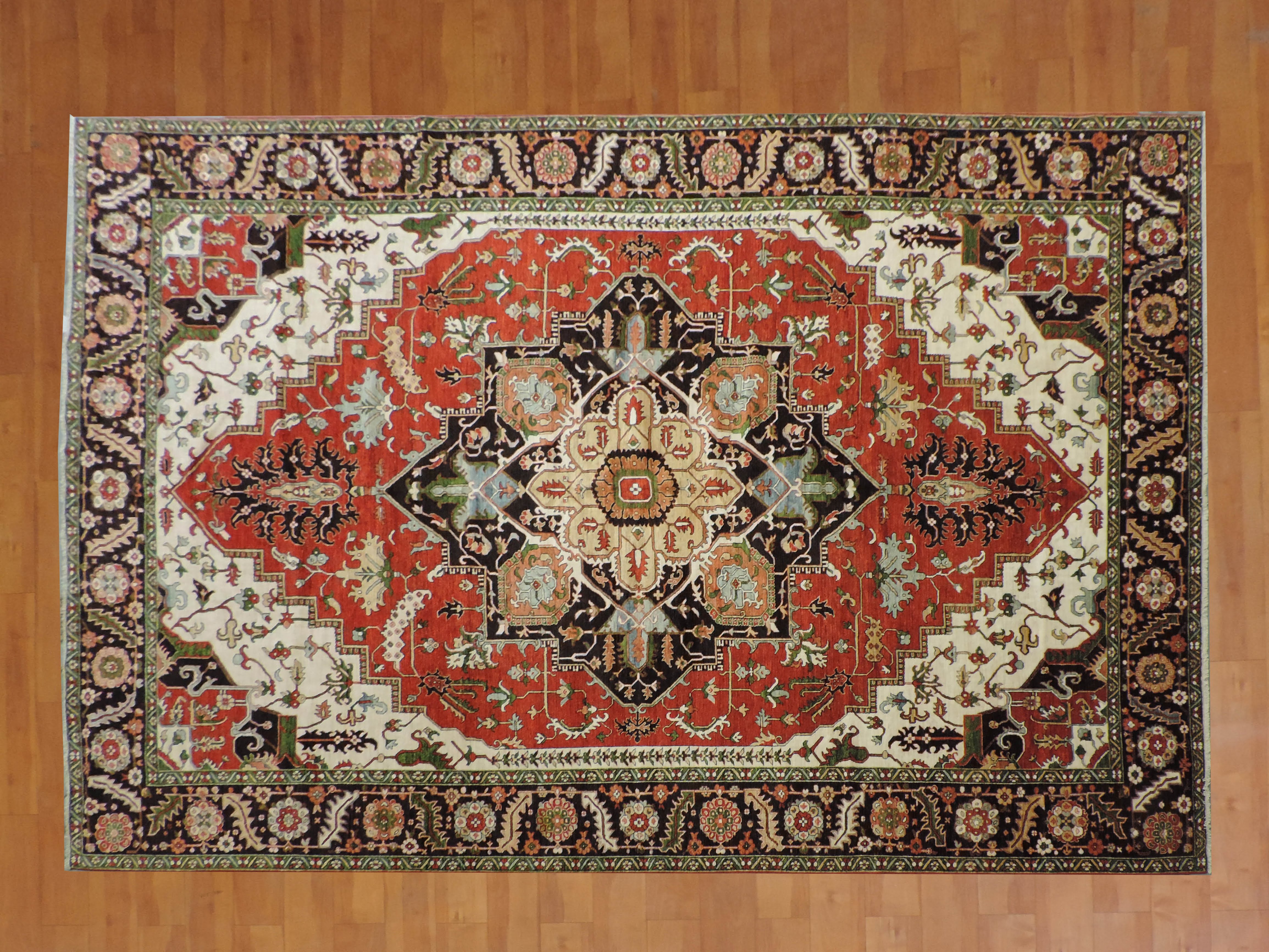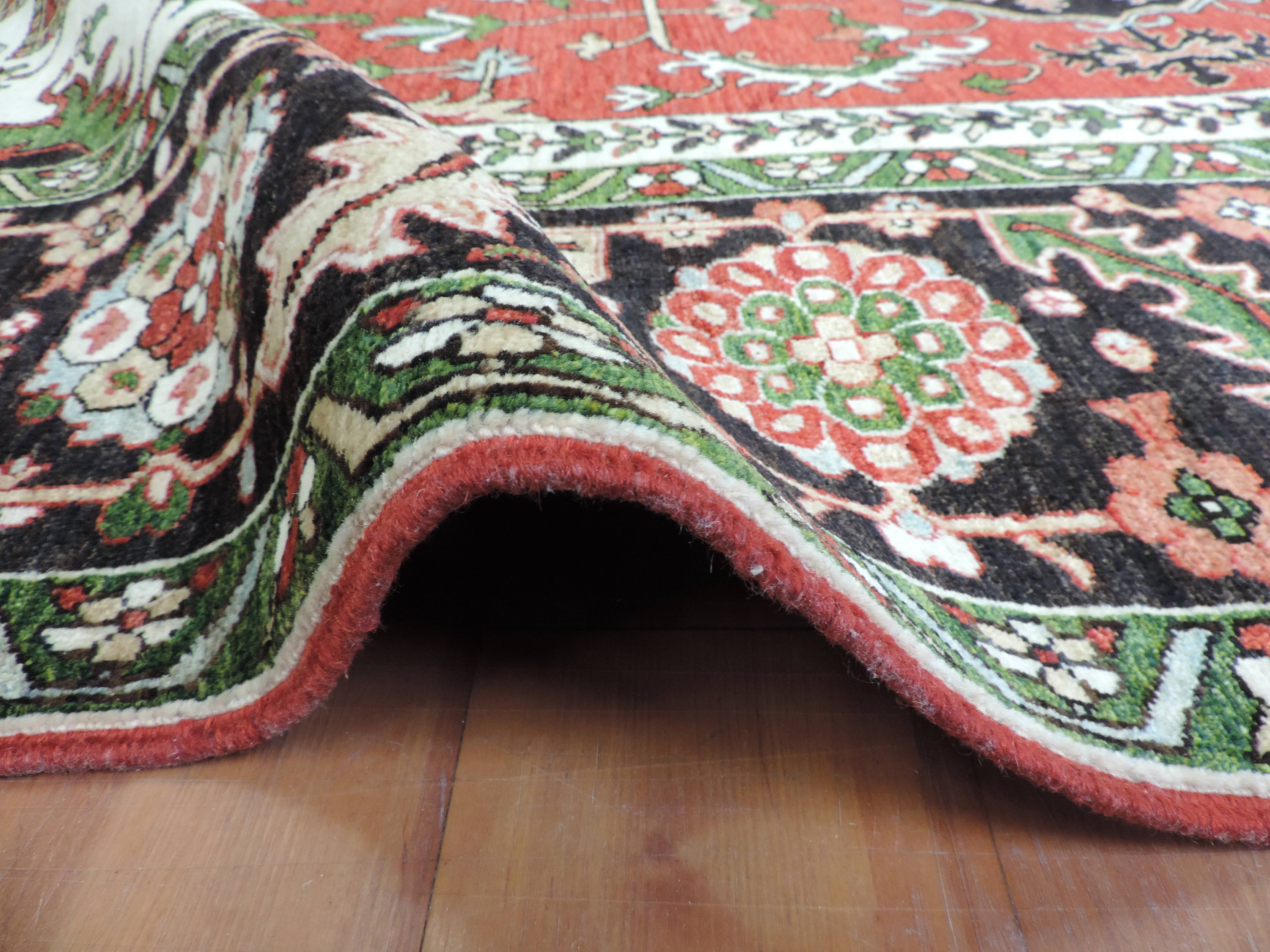 Indulge in the rich allure of our Koko-2117 Serapi rug, hand-knotted in India from premium wool, and framed perfectly by a geometric design. Its rust-colored base promises to warm up any room, providing an inviting canvas for its intricate geometric patterns. Currently available at a fantastic sale price, this one-of-a-kind, rectangular rug is an investment in timeless style and unrivaled quality.