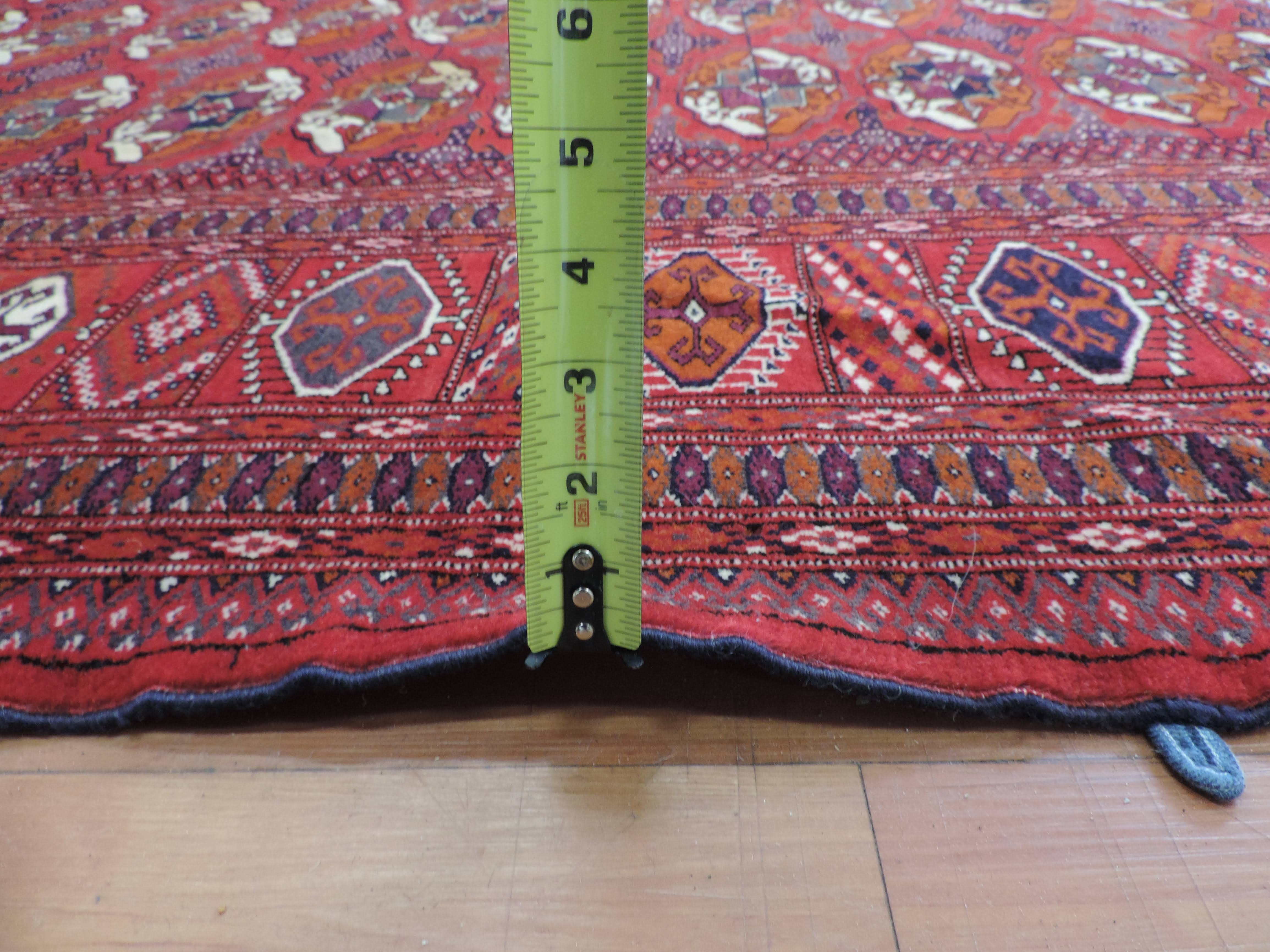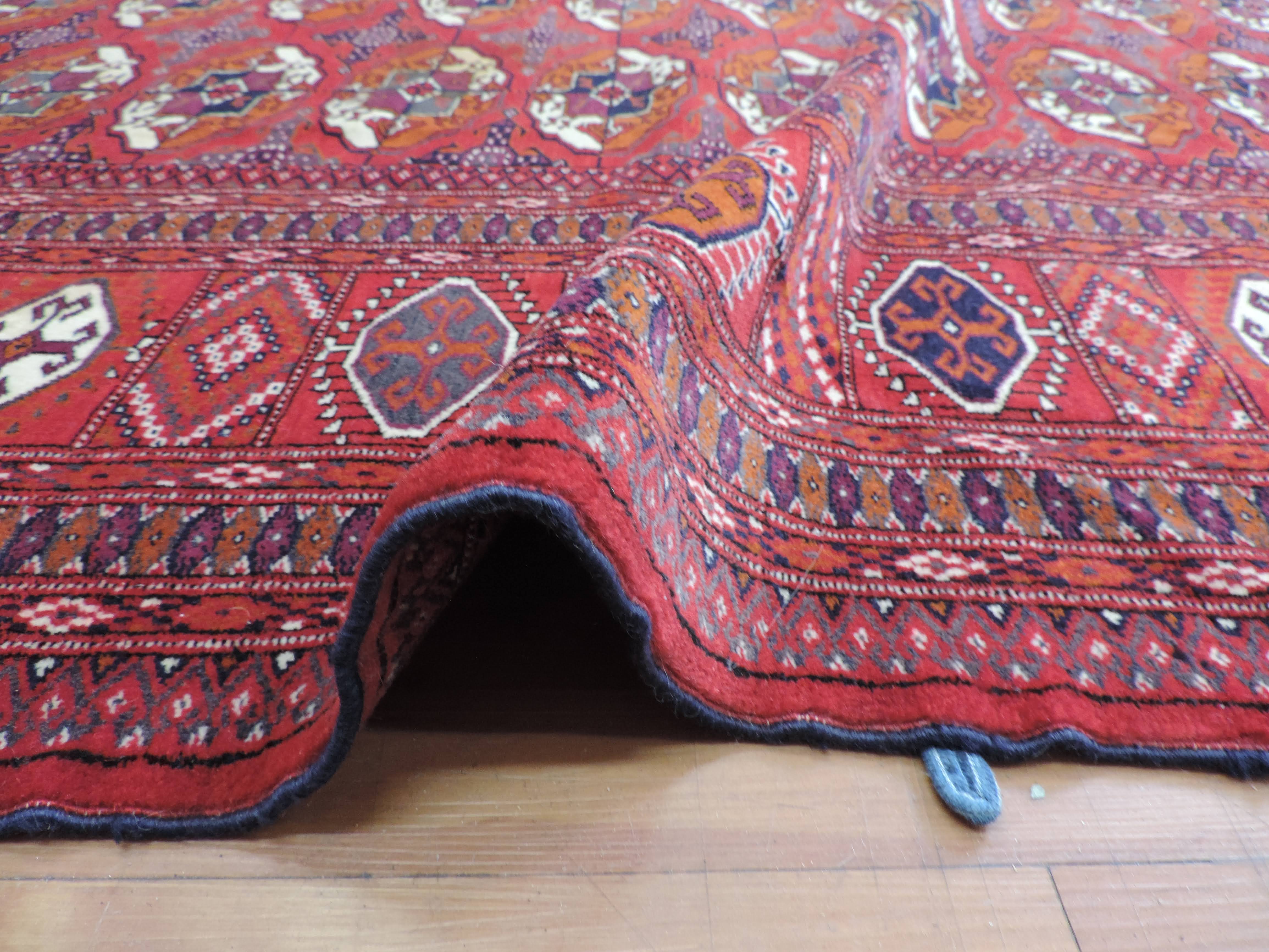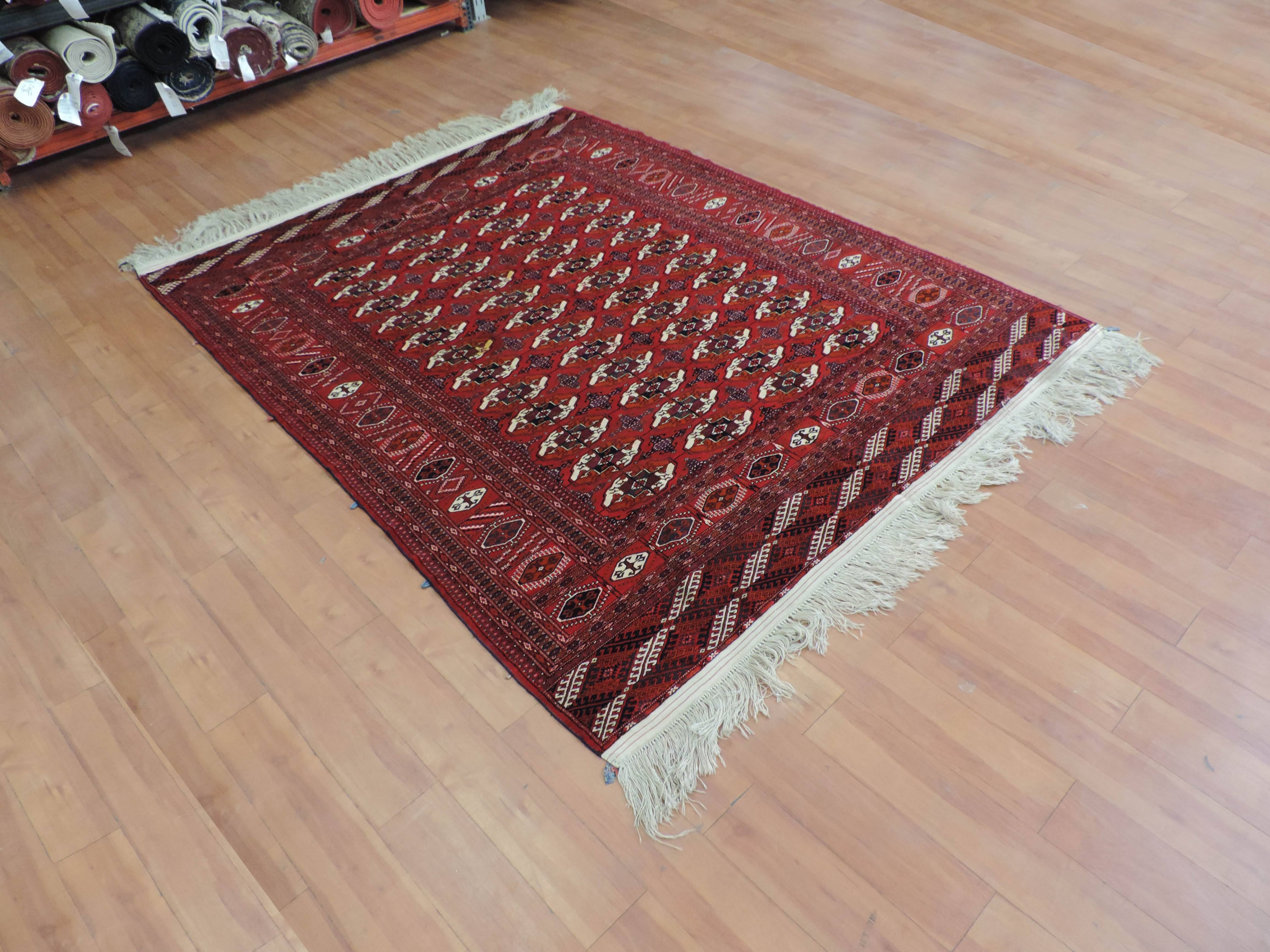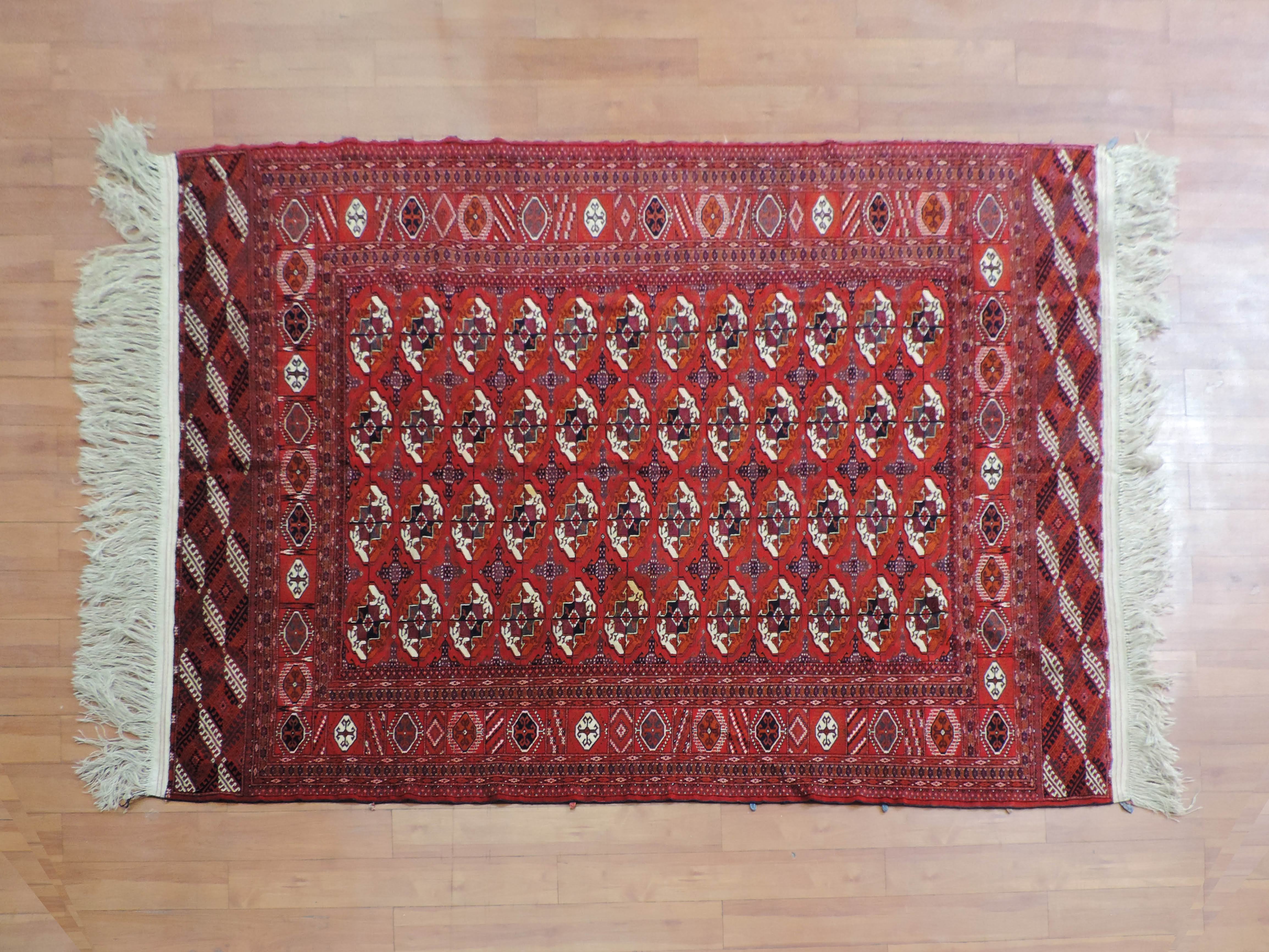 Experience the allure of the East with our Koko-2163 rug, a hand-knotted masterpiece straight out of Turkmenistan. Crafted from premium wool with a cotton foundation, this stunning piece showcases a bold, geometric design bathed in a rich, vibrant red hue. Its unique blend of traditional craftsmanship and modern appeal is yours at an unbeatable sale price.