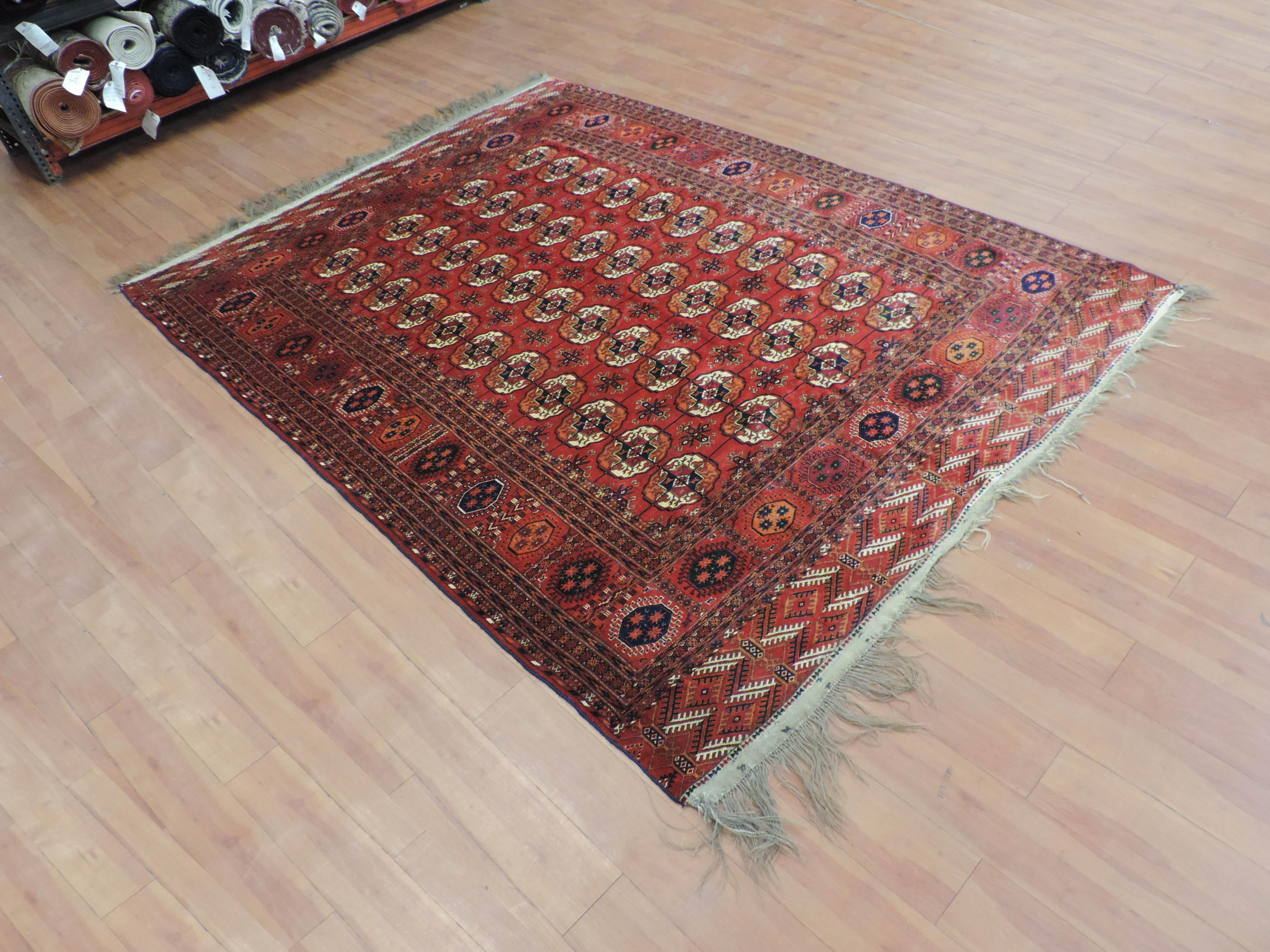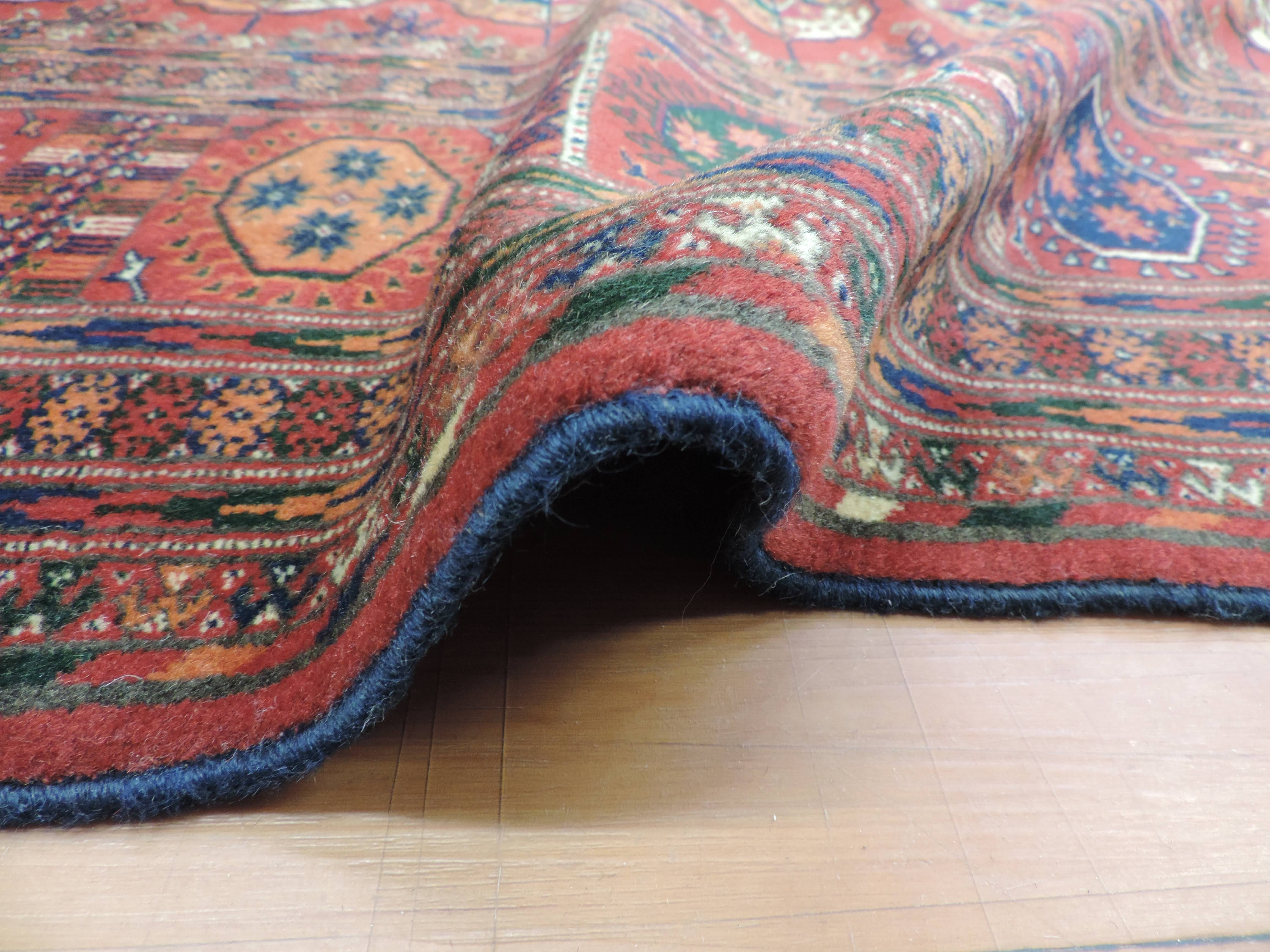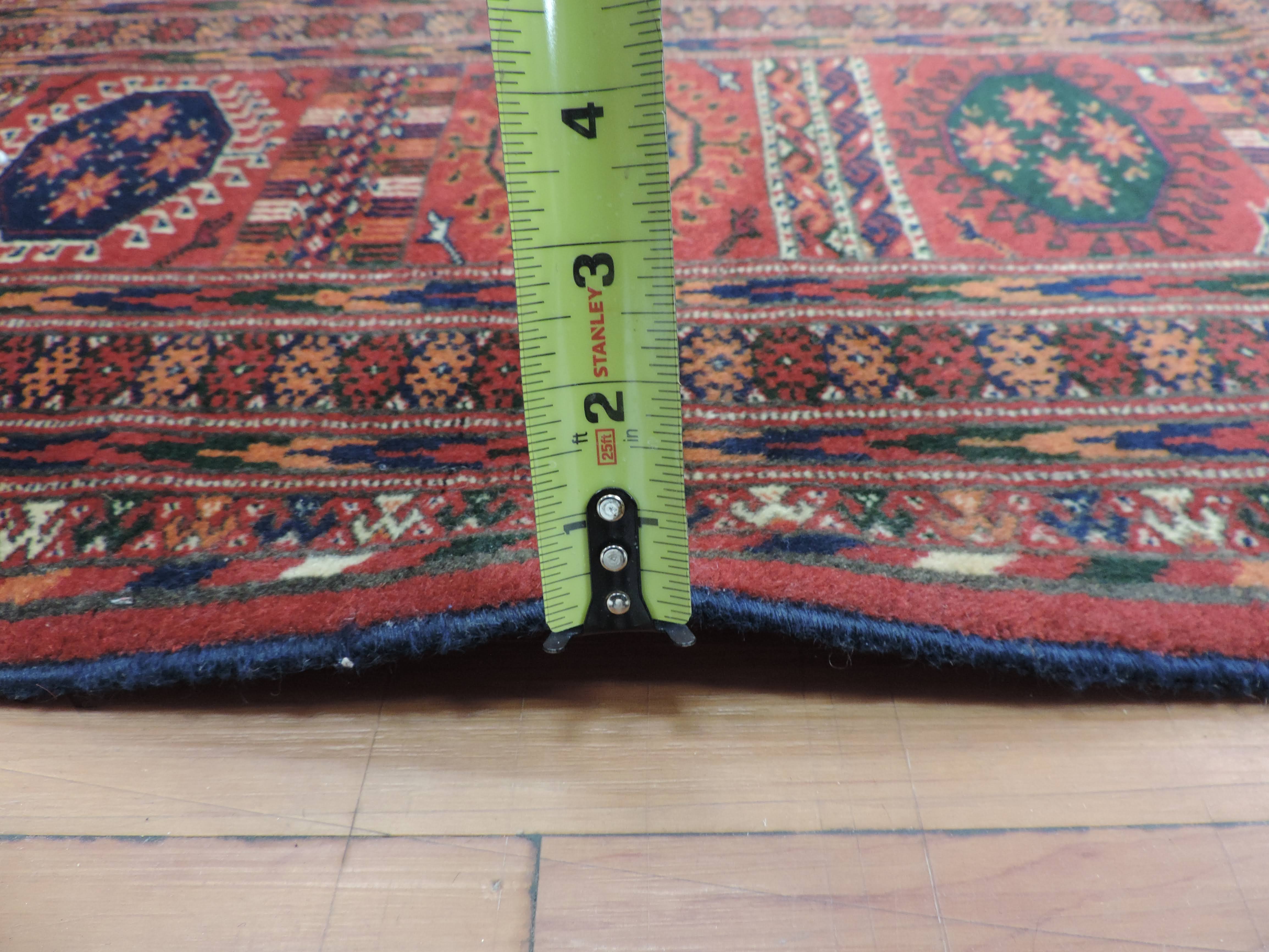 Add a pop of color and a touch of history to your living space with our Koko-2168 antique Turkman rug! Expertly hand-knotted from wool, this stunning rug features a vibrant red hue and a timeless geometric design. With origins from Turkmenistan and available at a discounted price, this unique piece offers both luxury and craftsmanship that's sure to captivate guests and elevate your decor.