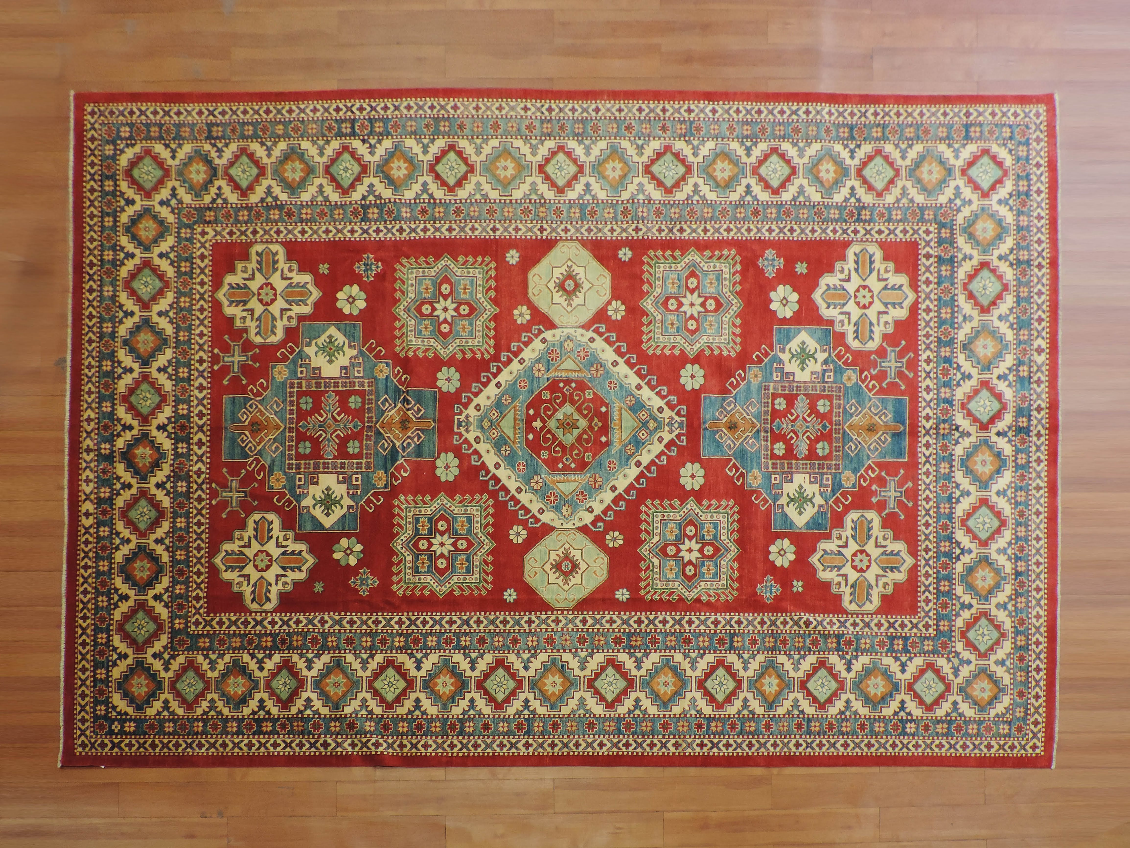 Experience the allure of the east with our stunning Koko-2170 rug! Hand-knotted from superior quality wool in Pakistan, this piece showcases a captivating geometric design in a vibrant red hue. Its large rectangular shape makes it a grand addition to any space, and with a 50% off sale price, it's an unmissable luxury. Embrace timeless elegance with this exquisite Kazak rug.