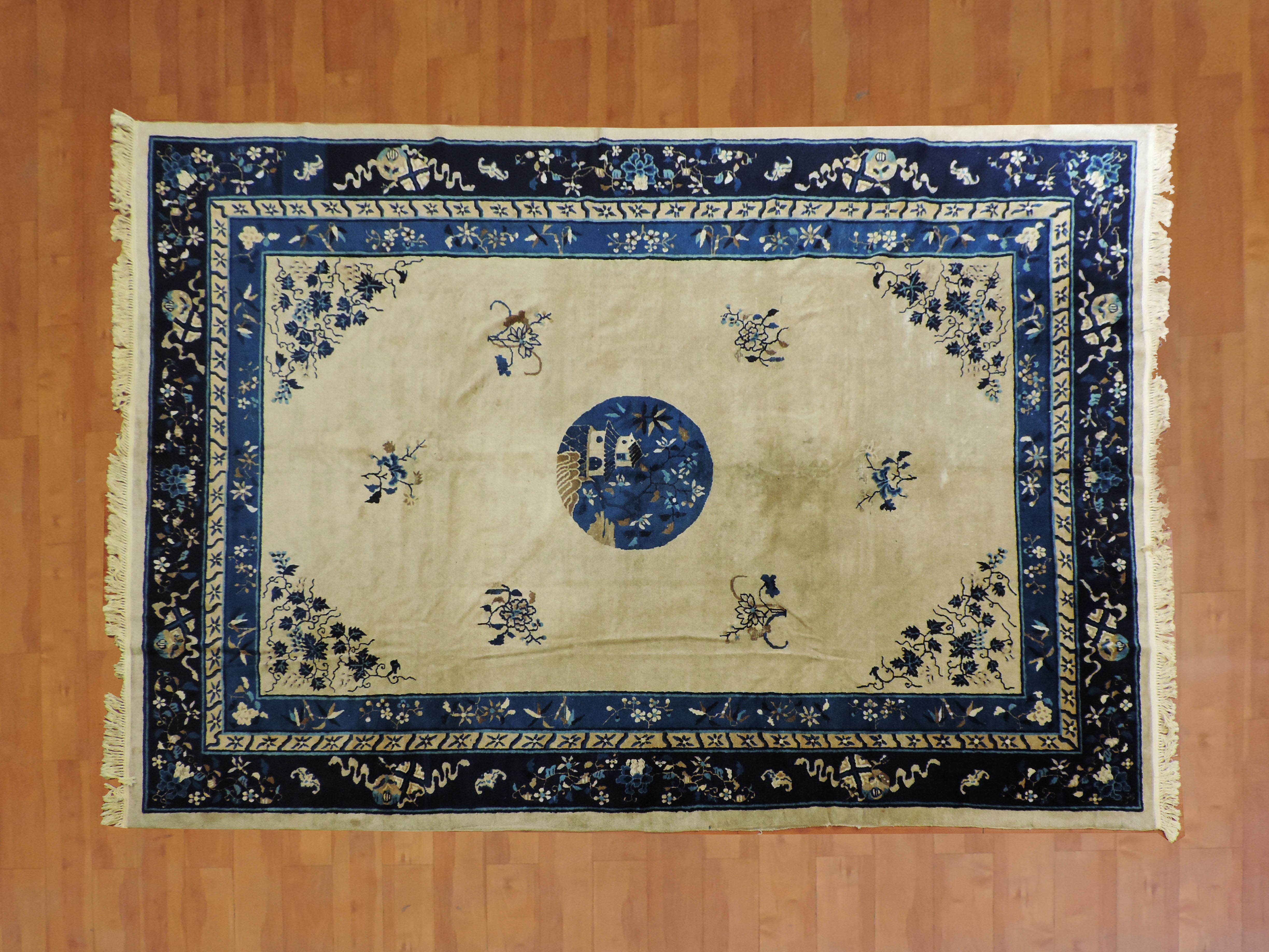 Experience the allure of the Orient with this exquisite KOKO-2185 area rug. This hand-knotted masterpiece, wrought from the finest wool with a durable cotton foundation, showcases a captivating geometric design in a soothing beige color scheme. An authentic Peking Chinese rug from the early 1900s, its antique charm is sure to elevate any room into a sophisticated haven. On sale now for a limited time.