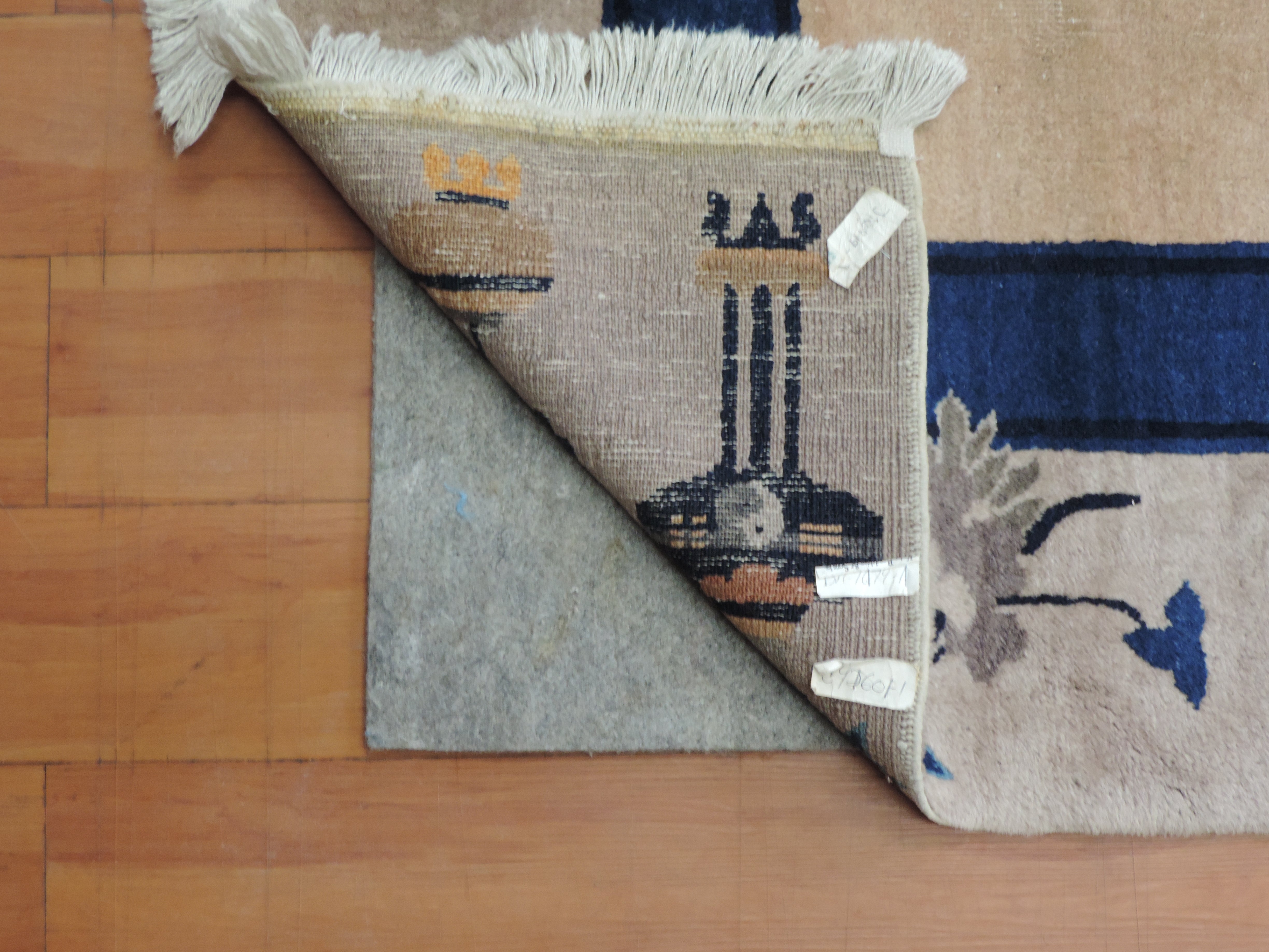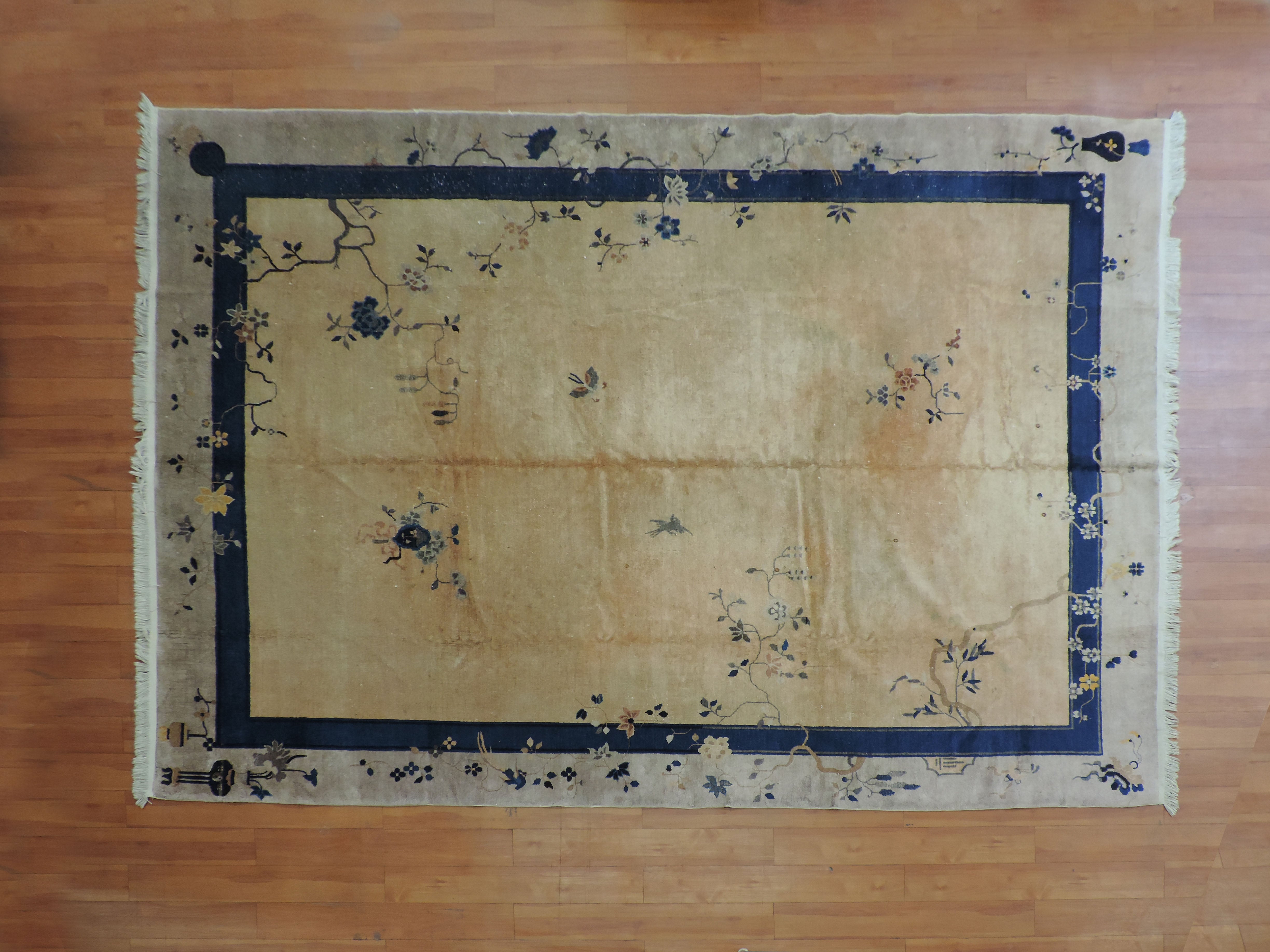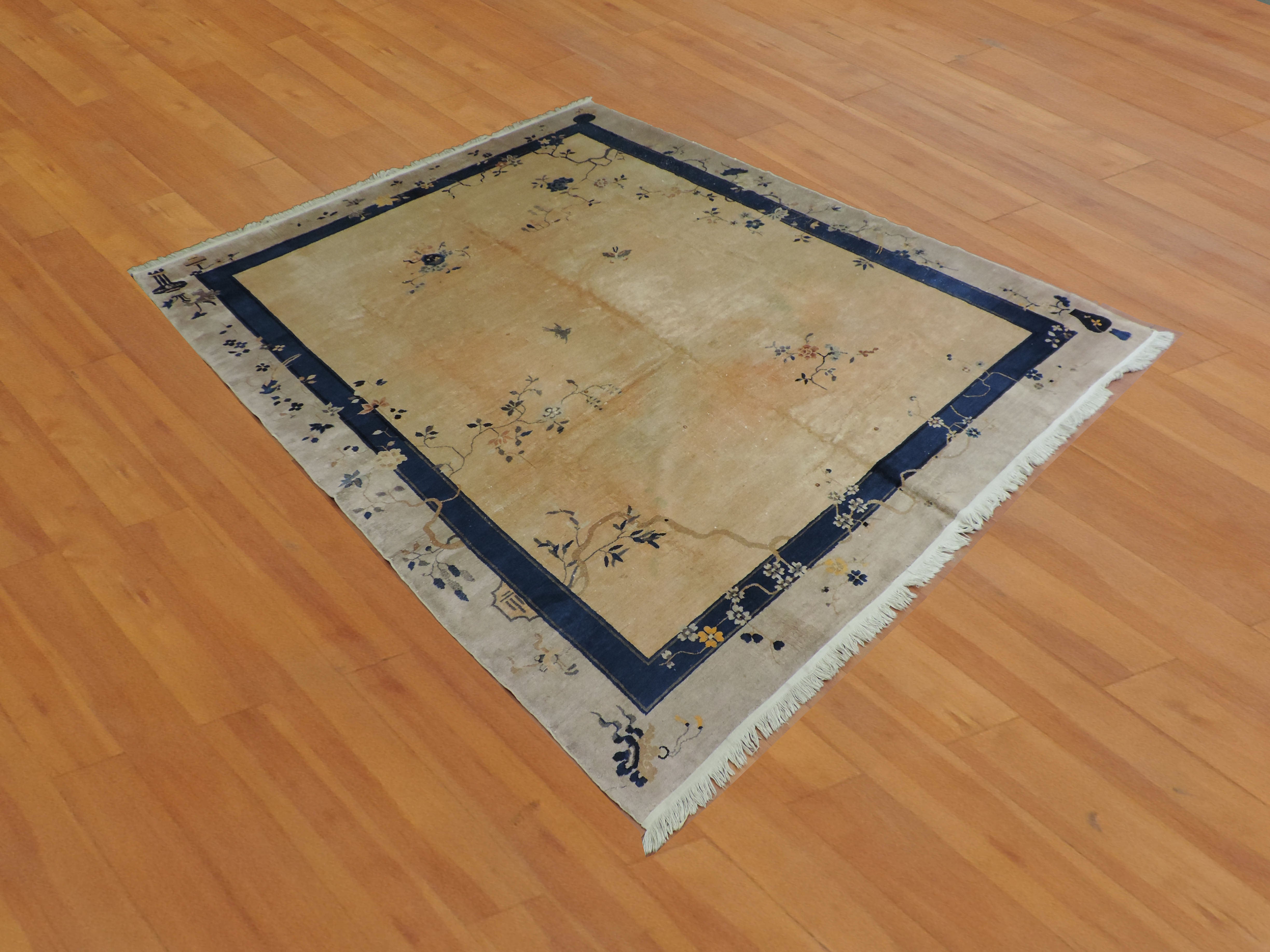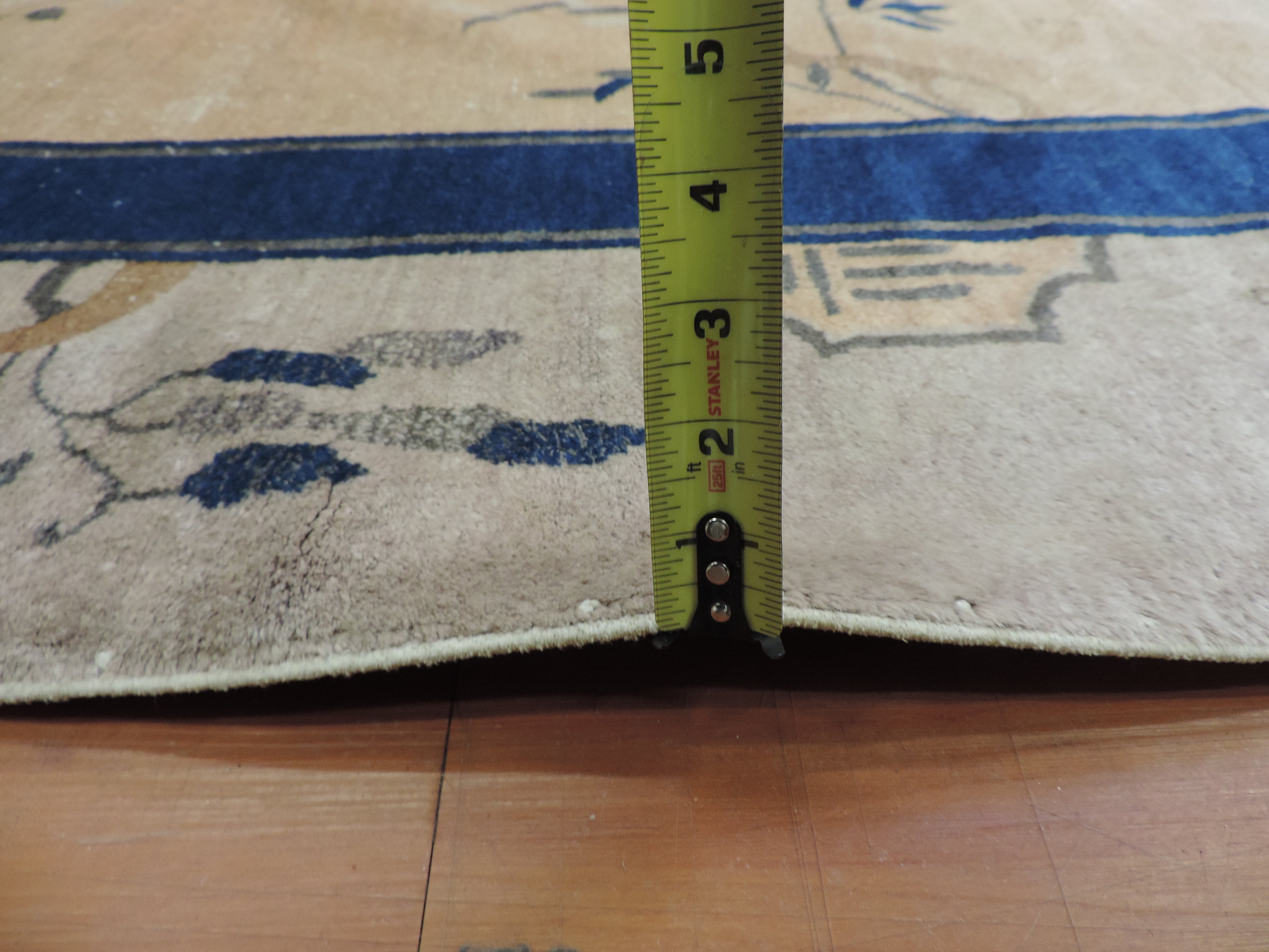 Experience the timeless elegance of this Antique Chinese rug, Koko-2186, hand-knotted from high-quality wool with a soothing beige color palette. This exclusive piece boasts an intricate floral design that reflects its origin's rich history; its century-old charm is a testament to its impeccable craftsmanship. Now offered at a significant discount, this antique rug, with its durable cotton foundation and generous size, is the perfect statement piece to enhance any living space.