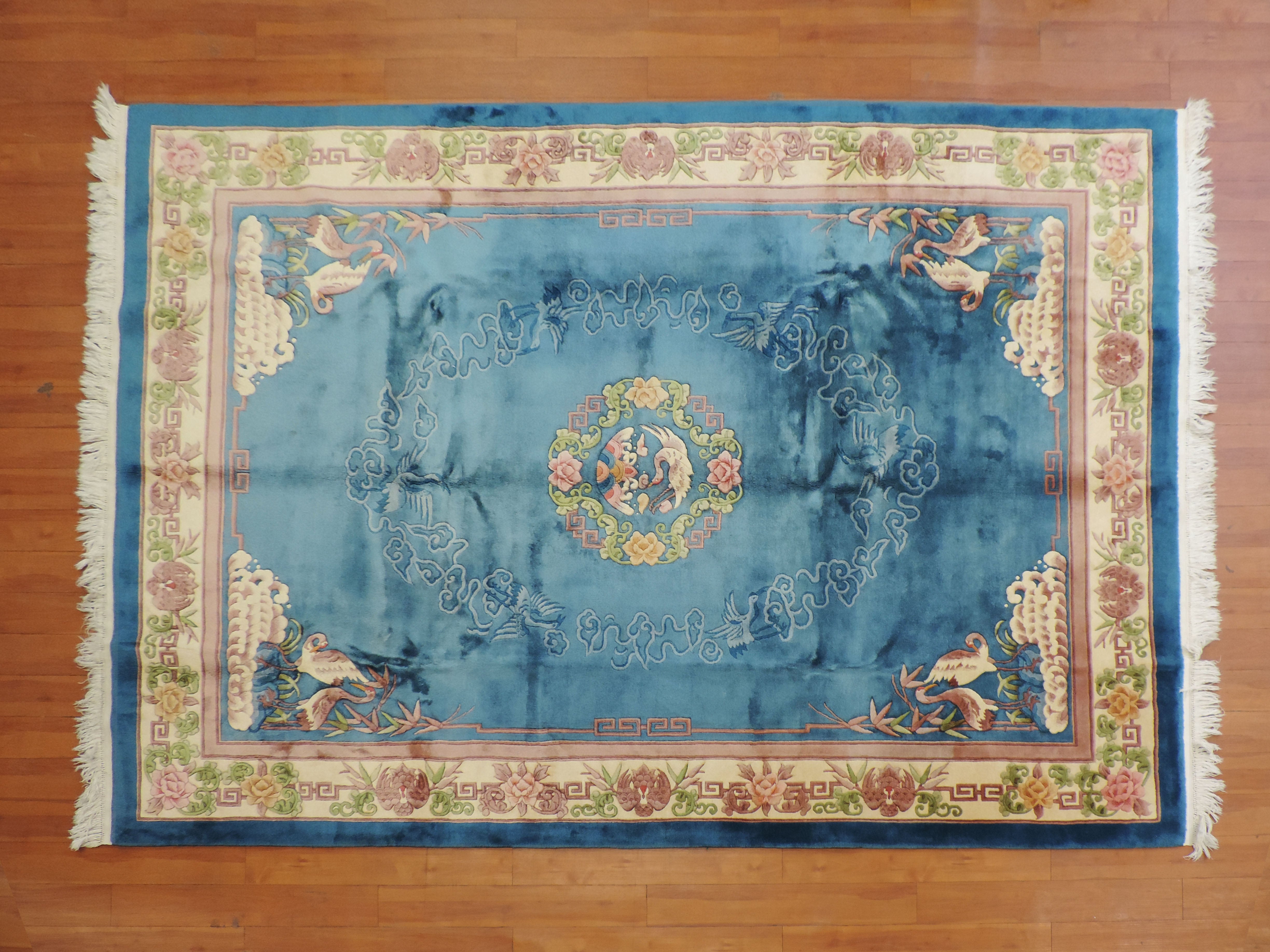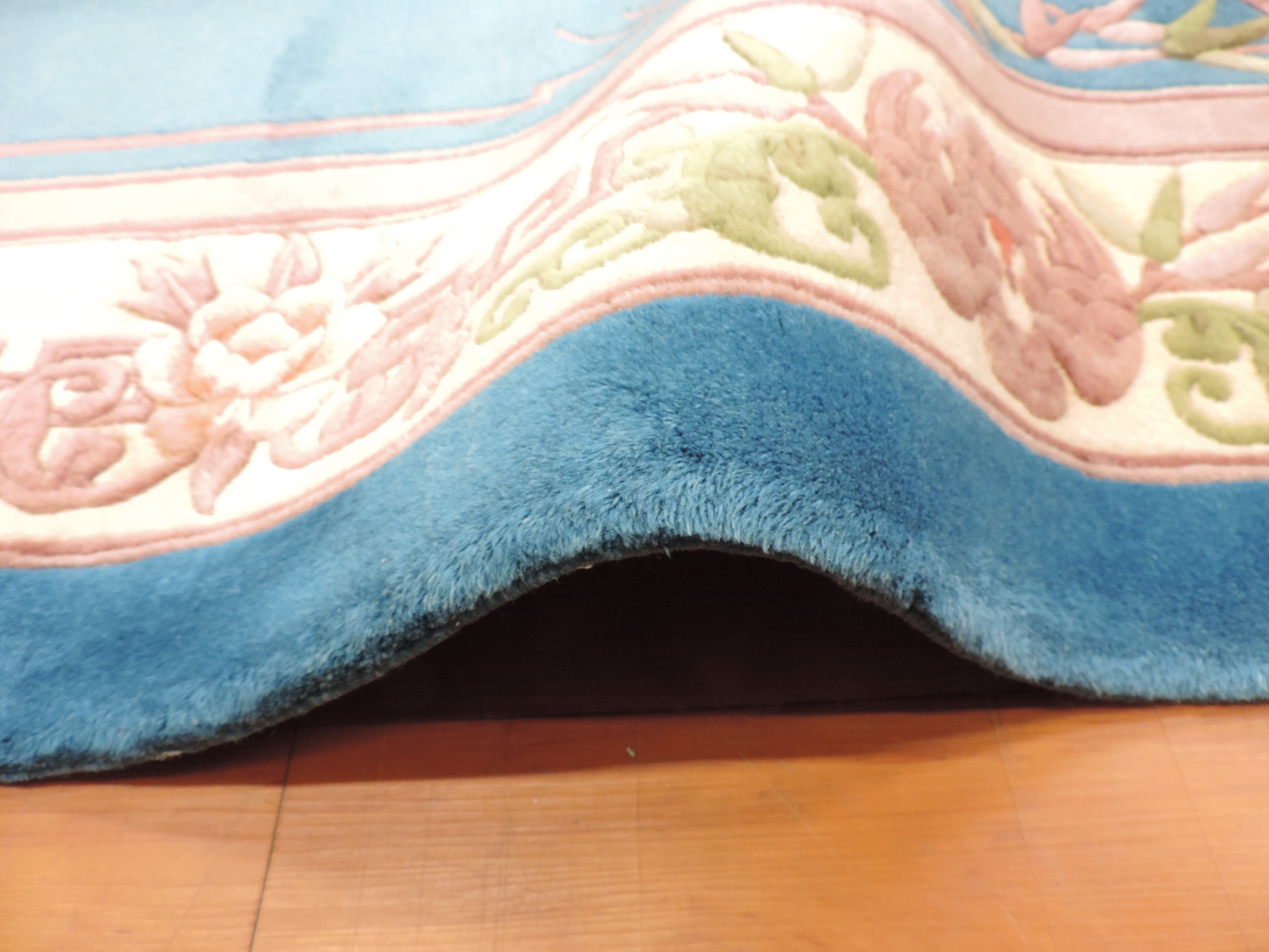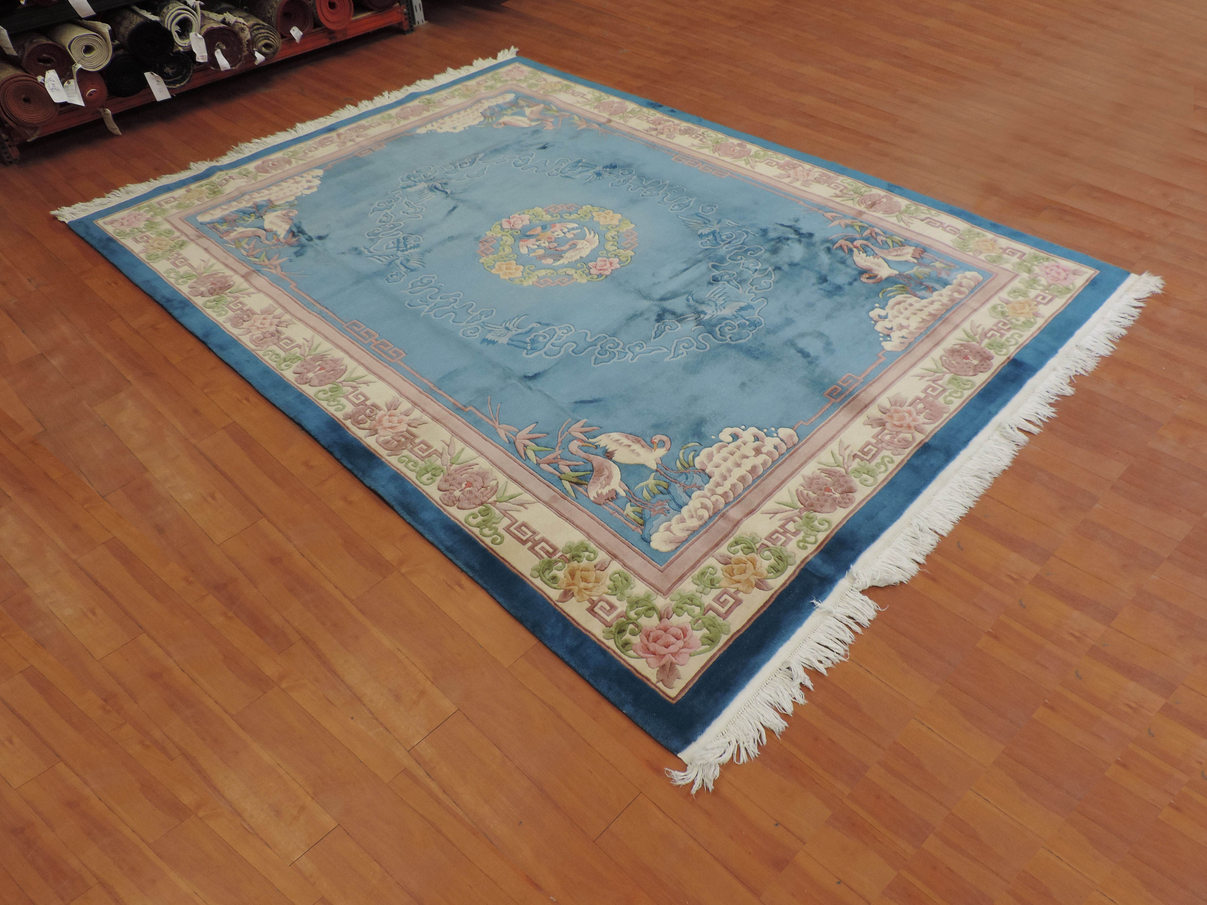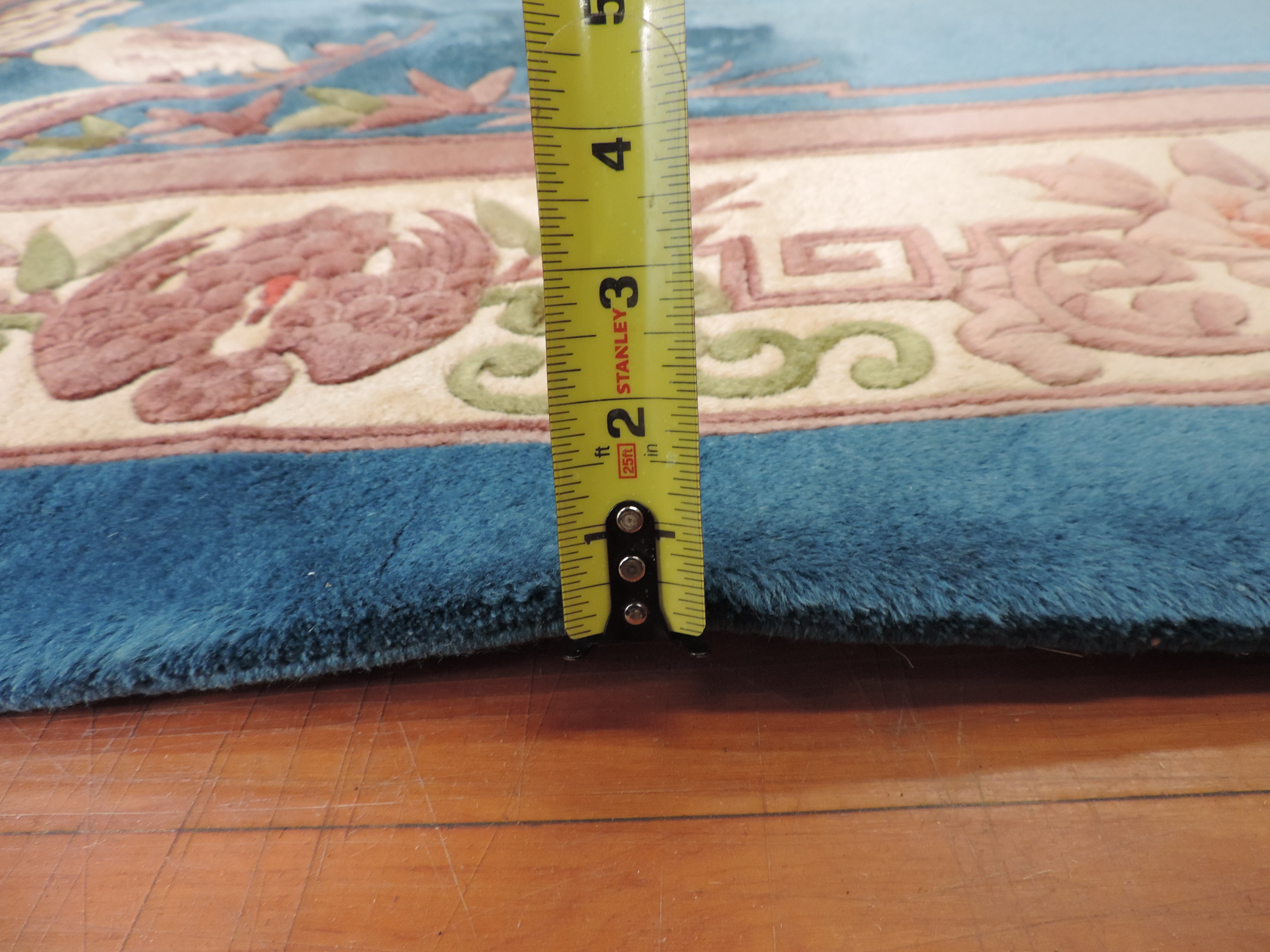 Indulge in the timeless allure of our Koko-2192 oriental rug. Hand-knotted from premium wool with a cotton foundation, this vintage masterpiece boasts an intricate floral design in a soothing blue tone. From its prized origin in China to its unique shape and texture, this 1960's rug is a captivating blend of style and history, now available at half its original price. A unique gem to enhance any living space.