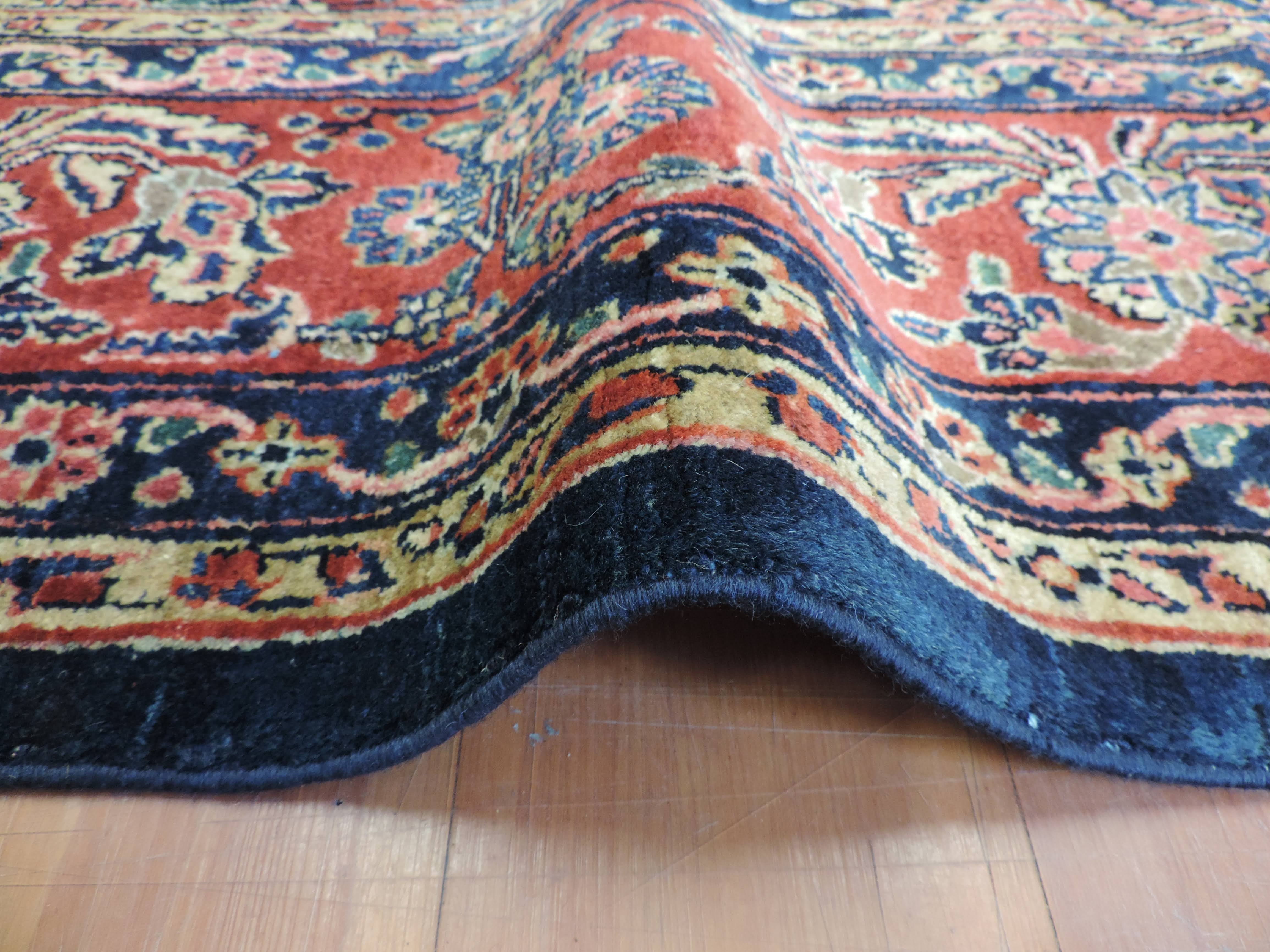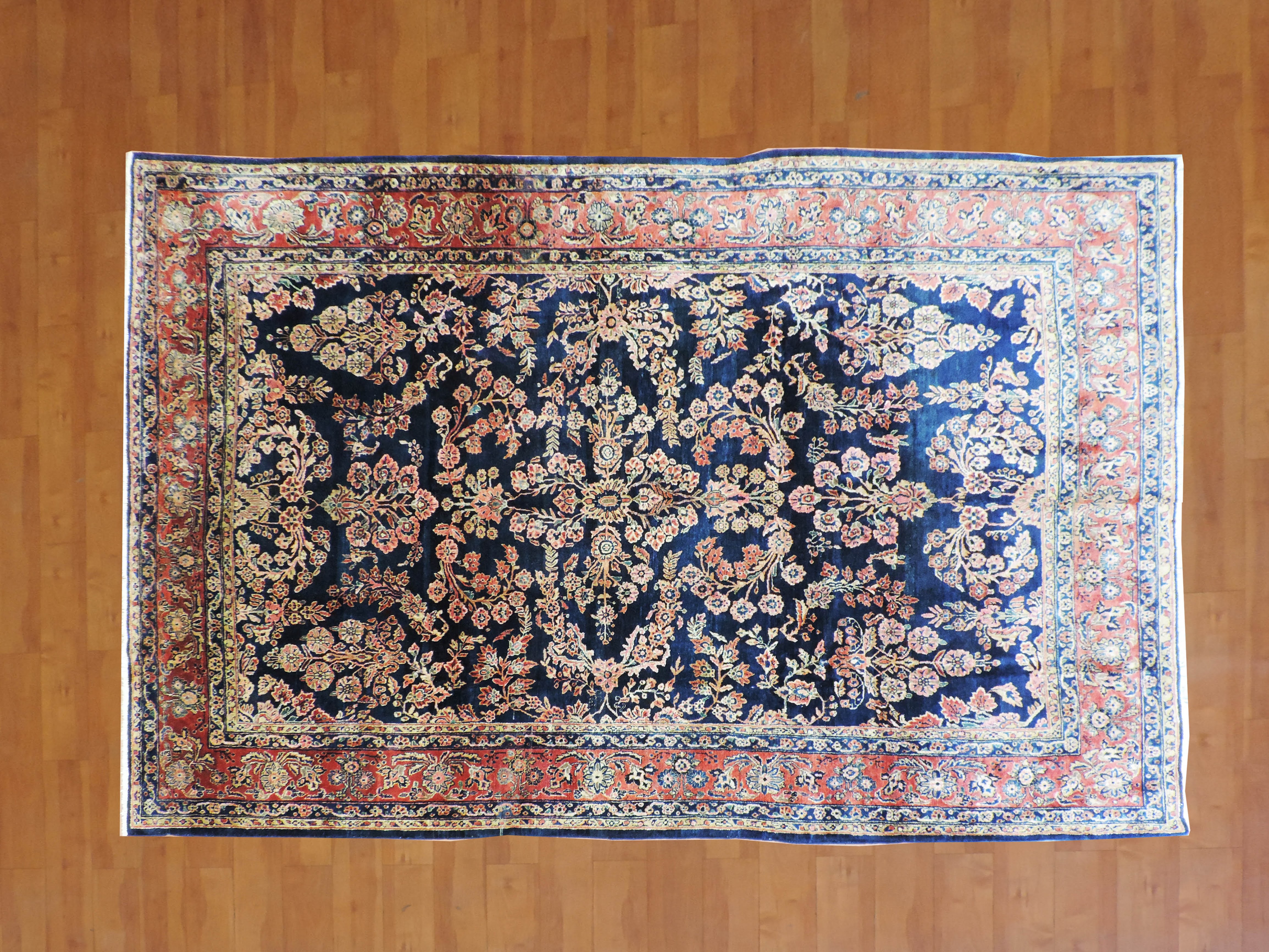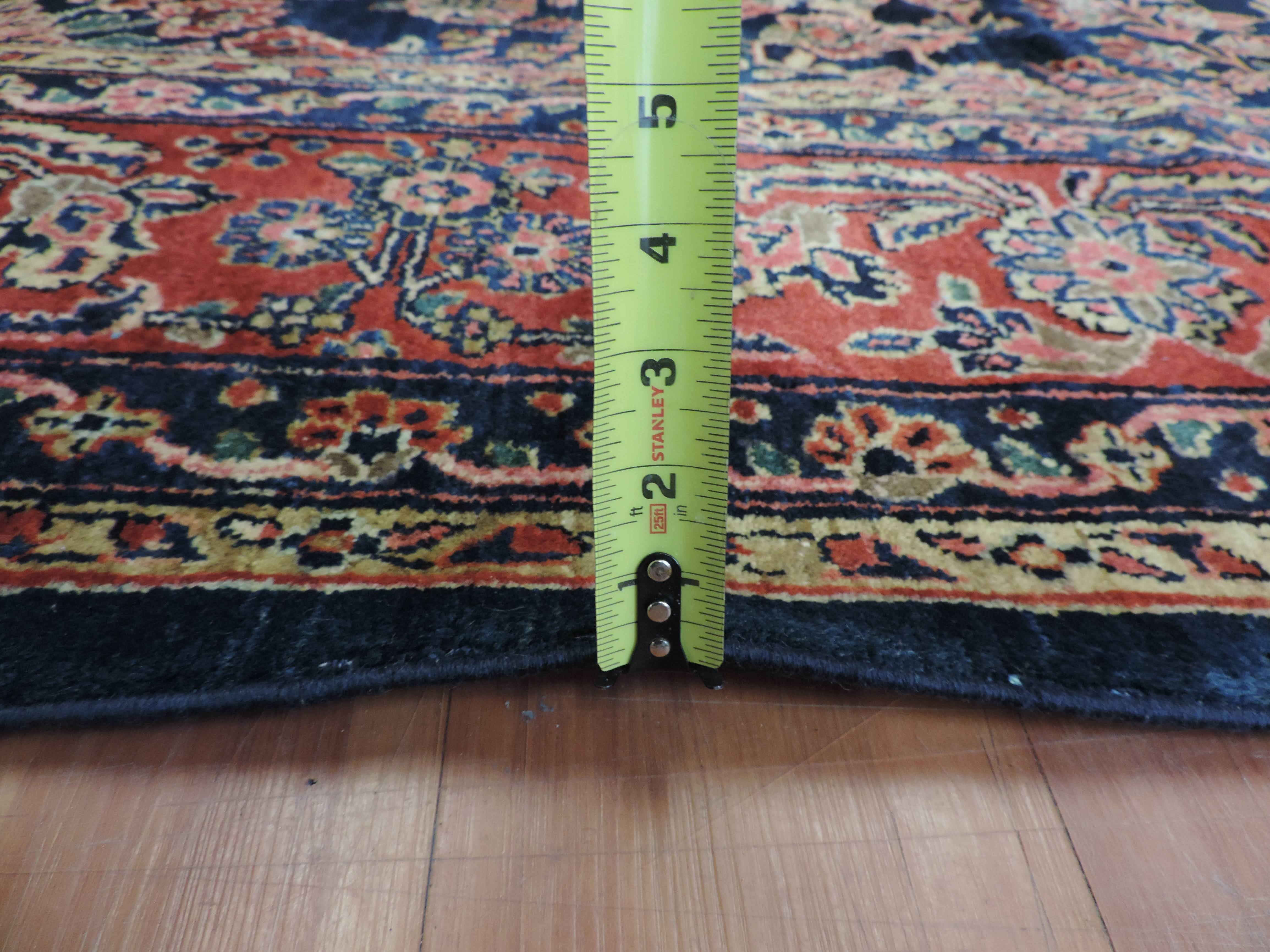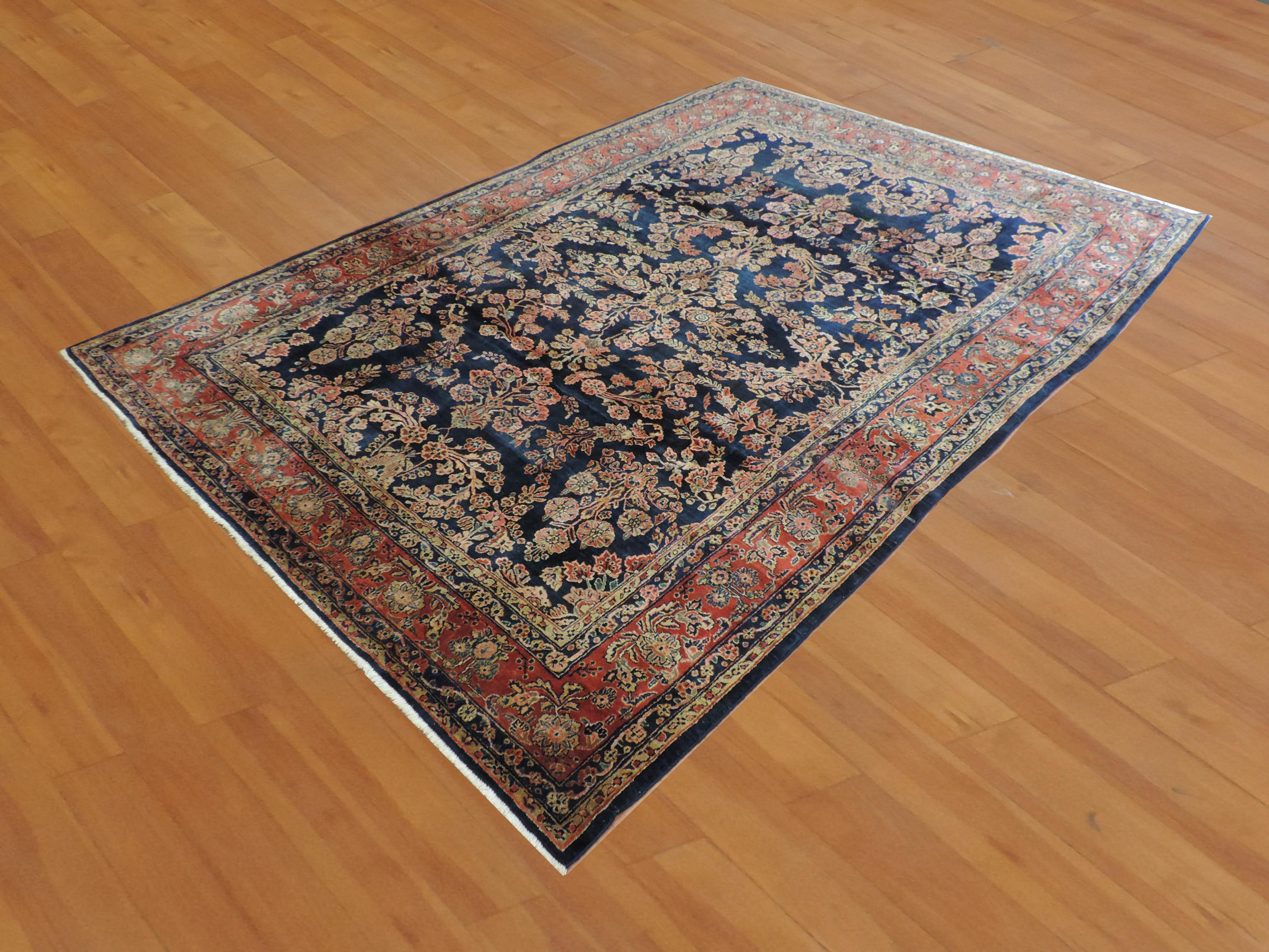 Add a touch of timeless elegance to your home with our KoKo-2227 Sarouk rug. Hand-knotted in Iran using high-quality wool on a cotton foundation, this exquisite antique rug showcases a stunning floral design on a navy backdrop, adding a rich, vibrant accent to any room. Now available exclusively at a special sale price, don't miss out on owning a unique piece of 1910's oriental craftsmanship.