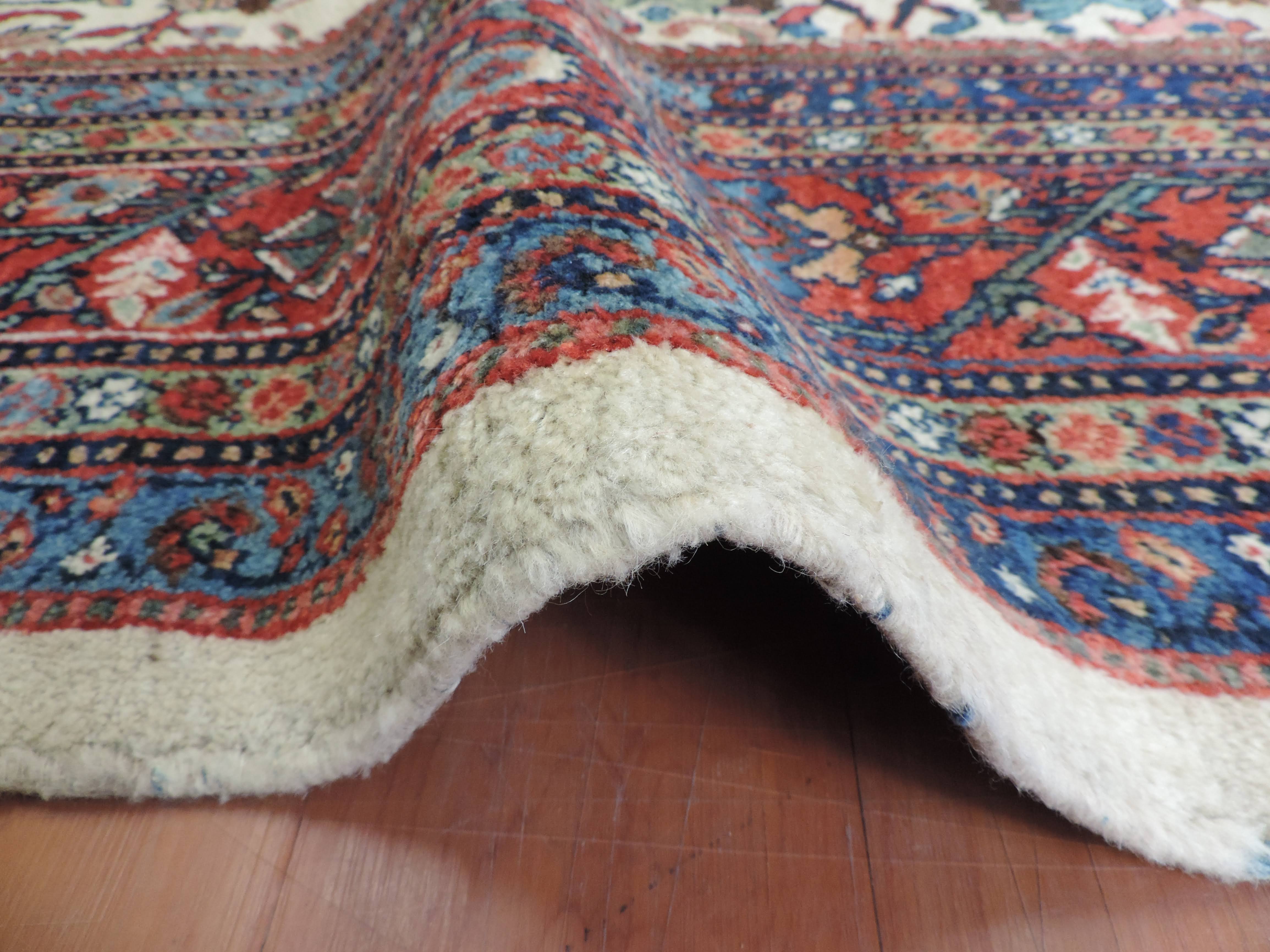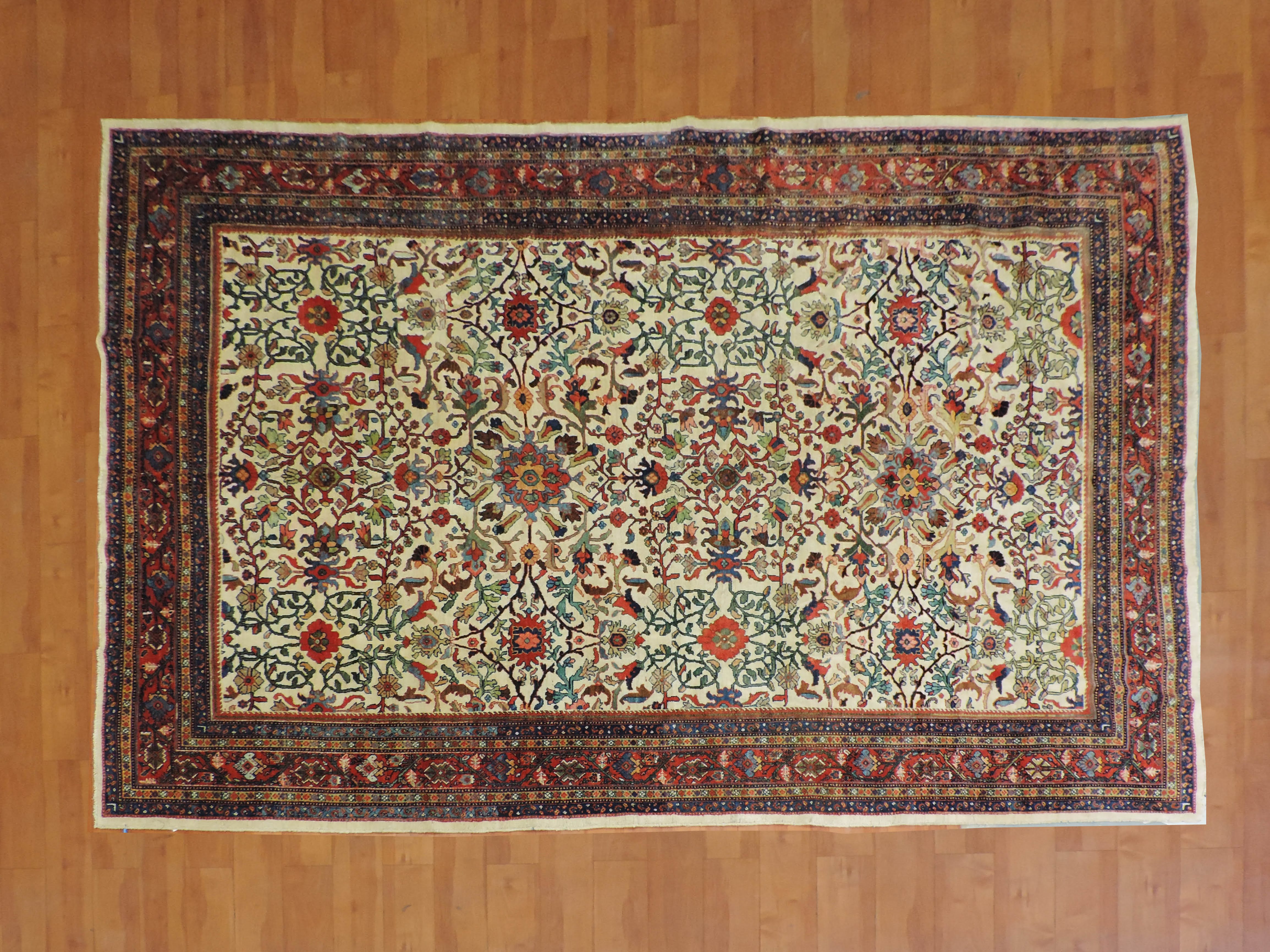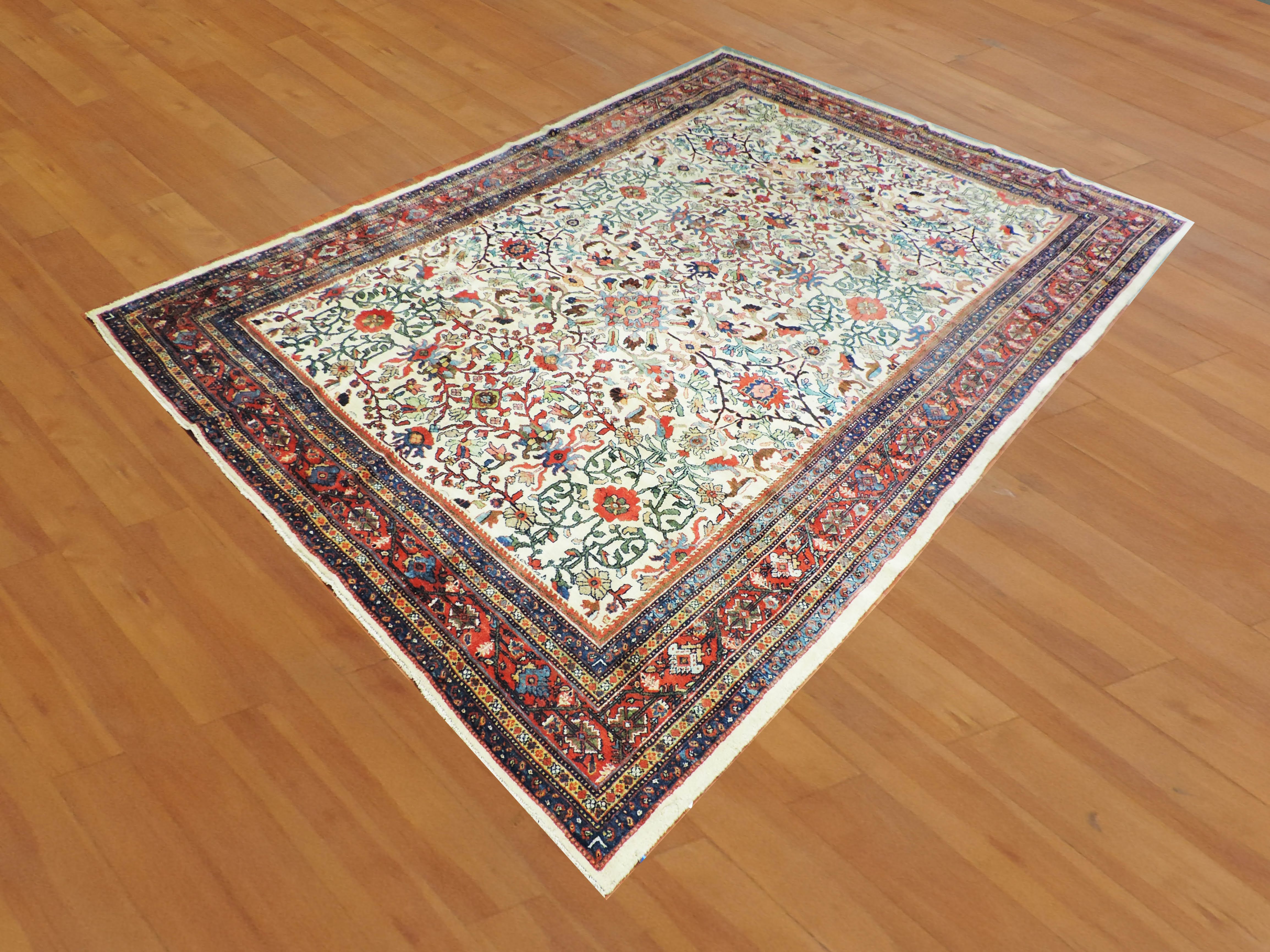 Indulge in the elegance of the past with this stunningly crafted Sultanabad rug. Hand-knotted from pure wool and set on a cotton foundation, this antique masterpiece from Iran features an intricate floral design in a soothing ivory hue. On sale now for $14,950, this regal 11 x 15 foot rectangular rug is a one-off treasure that effortlessly elevates any room with its rich history and timeless charm.