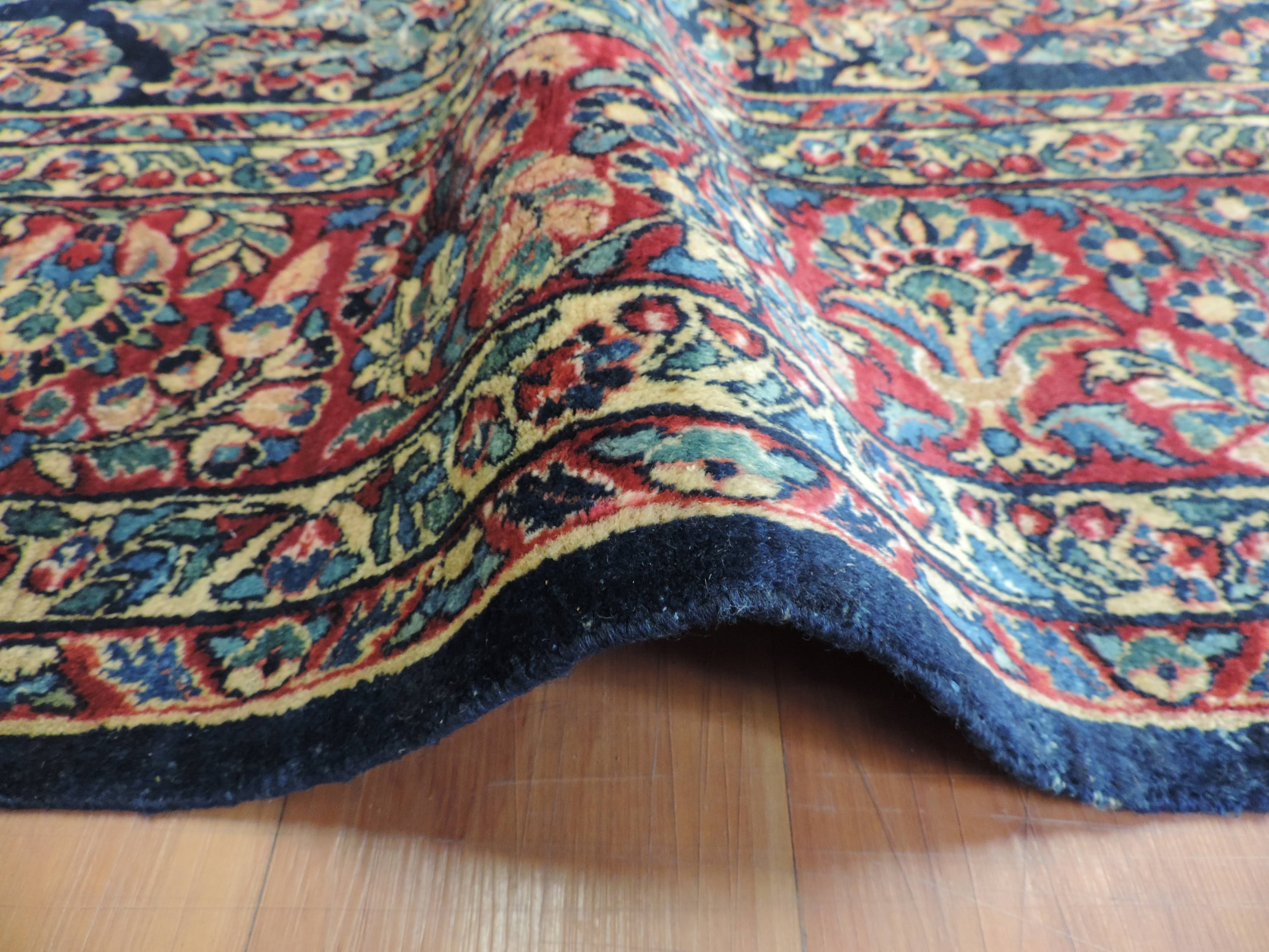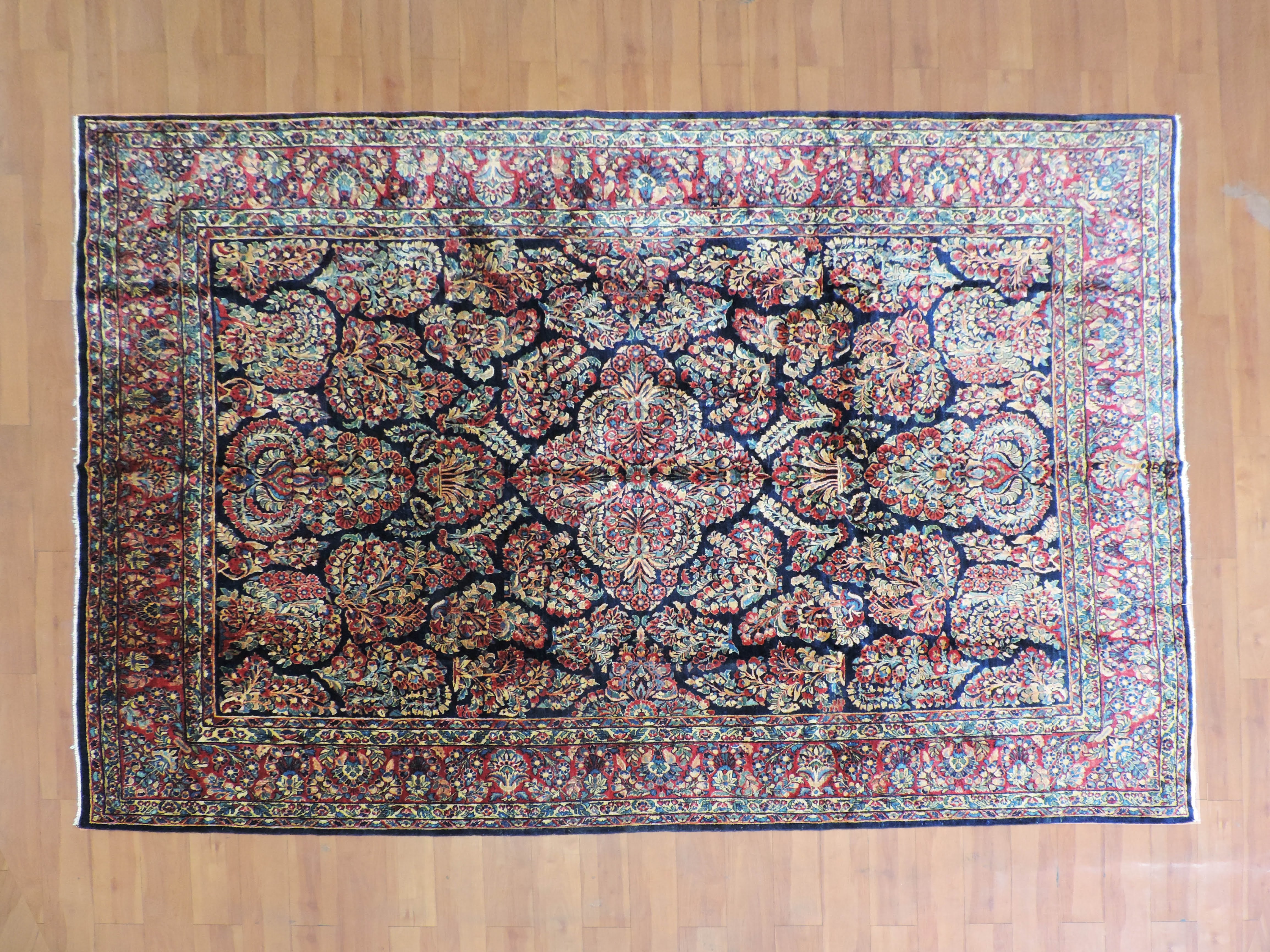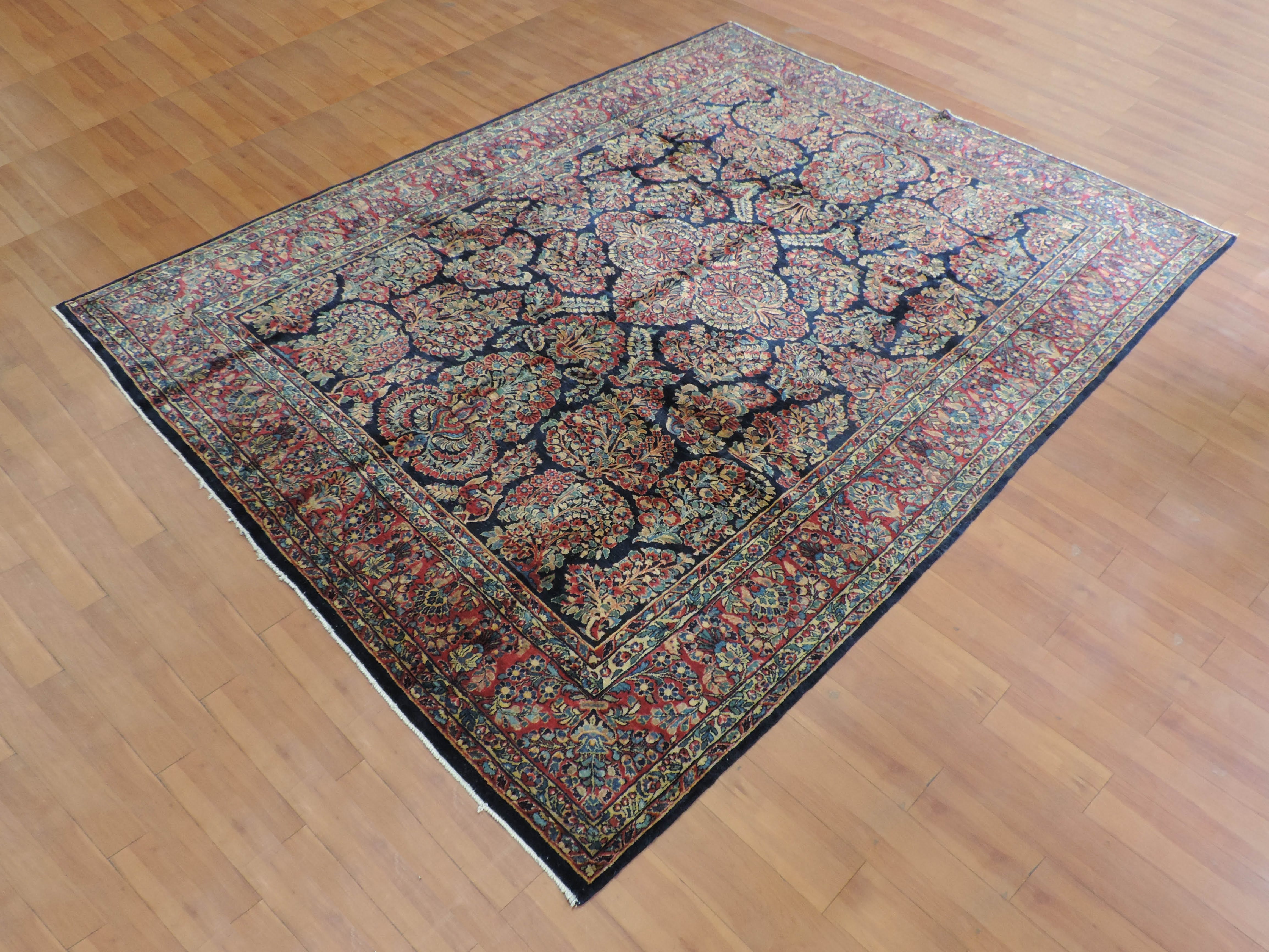 Exude elegance and timeless style with the Koko-2249 Sarouk rug, a breathtaking piece of antique Iranian craftsmanship. This hand-knotted wool rug, dating back to 1920, showcases a lavish floral design set against a striking navy background. Offering sensational quality at the discounted price of $5200, this rectangular beauty will become the centerpiece of any room, promising comfort with its cotton foundation and a touch of exotic charm.