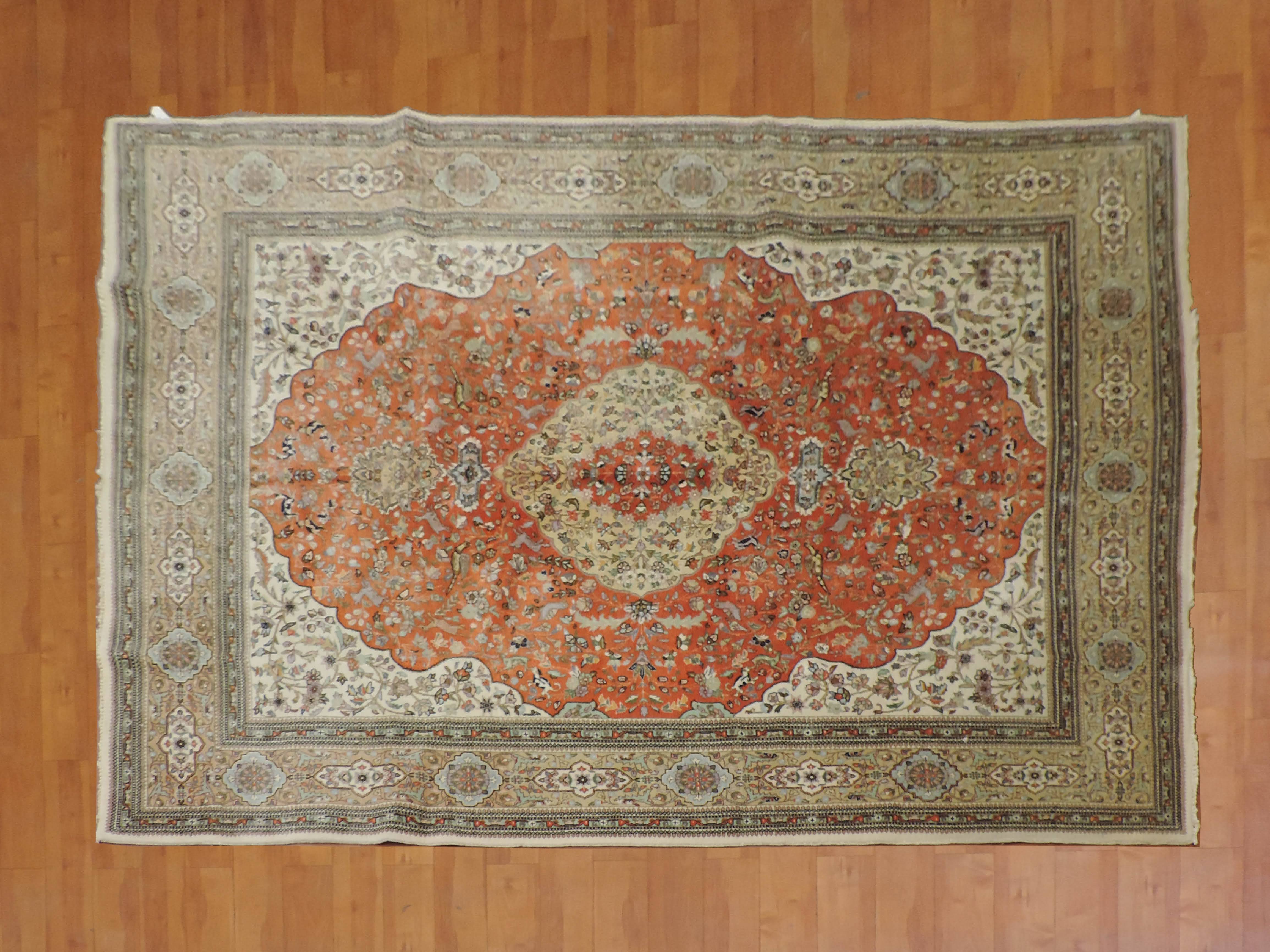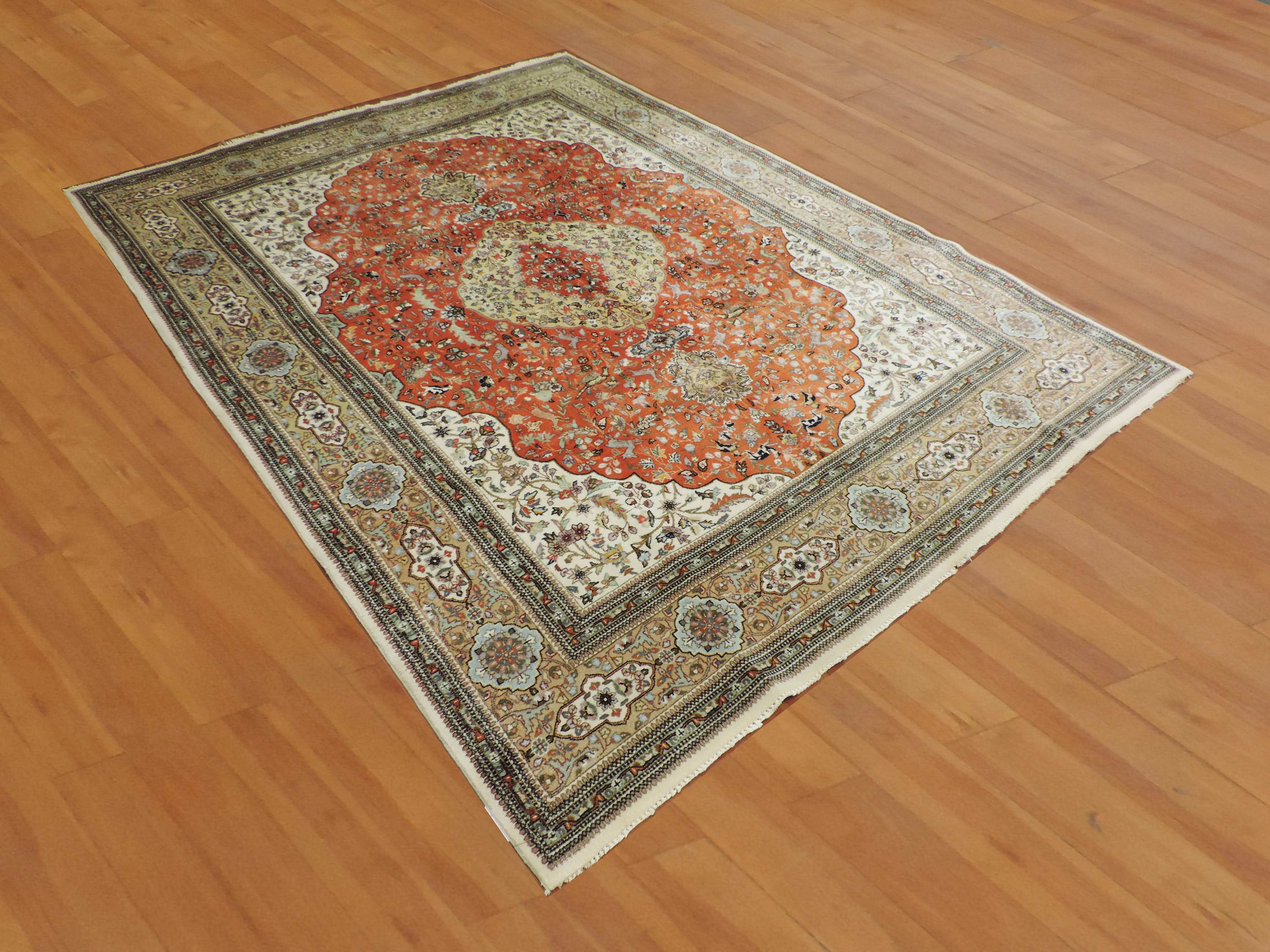 Experience the timeless allure of the East with the Koko-2326 rug, a vintage treasure from Iran. Hand-knotted with care using superior quality wool on a robust cotton foundation, this exquisite piece boasts an enchanting floral design set against a rich, rust background. Its generous 10x14 size and unique Tabriz style make it an irresistible find for discerning collectors. Currently on sale for $2600, get it now and infuse your space with an aura of authentic oriental charm.