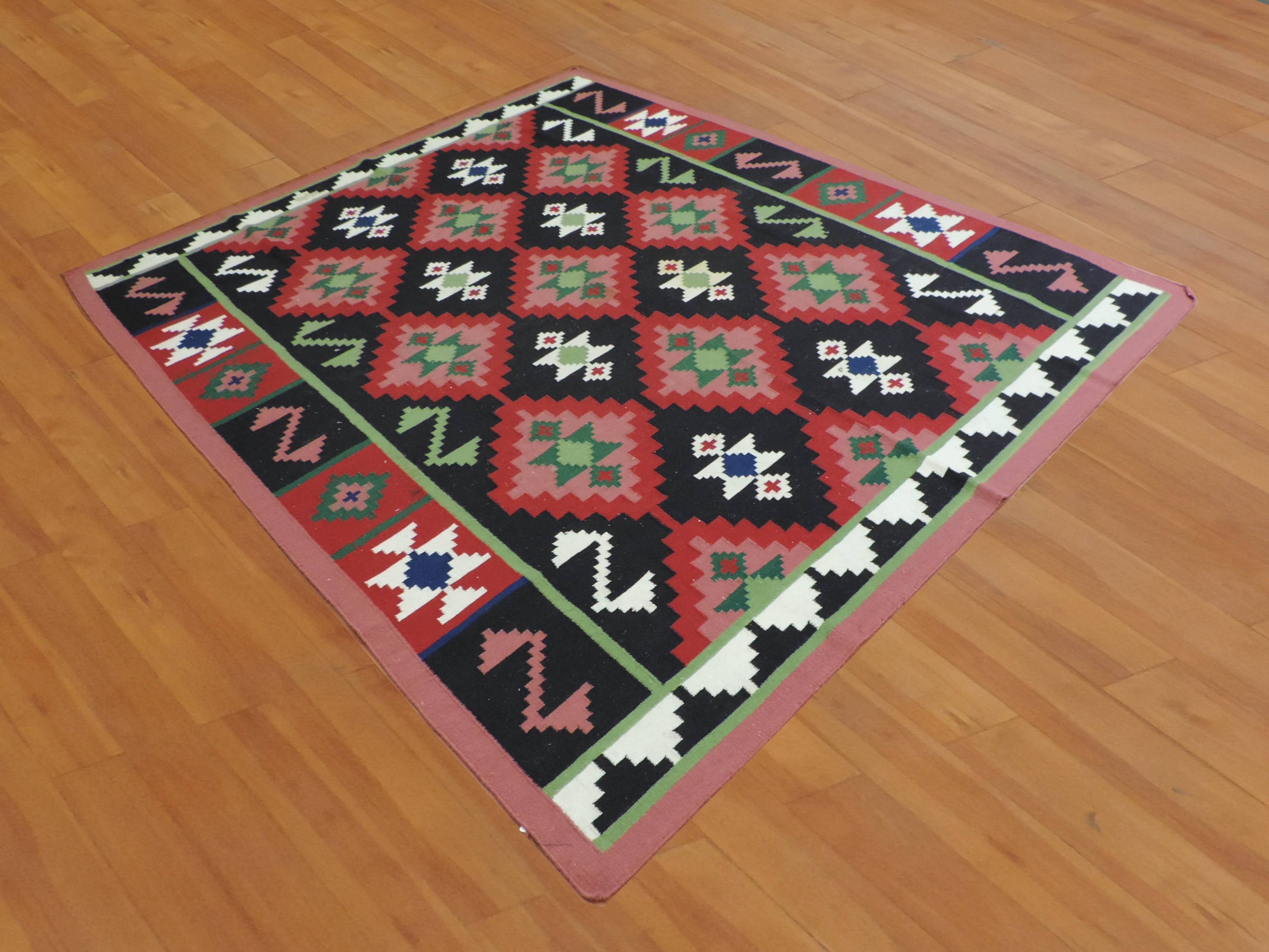 Enhance your space with the vibrant Koko-2337 oriental rug. Woven by hand in Iran, this brand-new Kilim rug showcases a striking geometric design in a bold red hue, blending both tradition and modernity. Made from premium wool on a sturdy cotton foundation, it promises both durability and comfort. Now available at an unbeatable sale price, this unique piece is waiting to add warmth and style to your home.