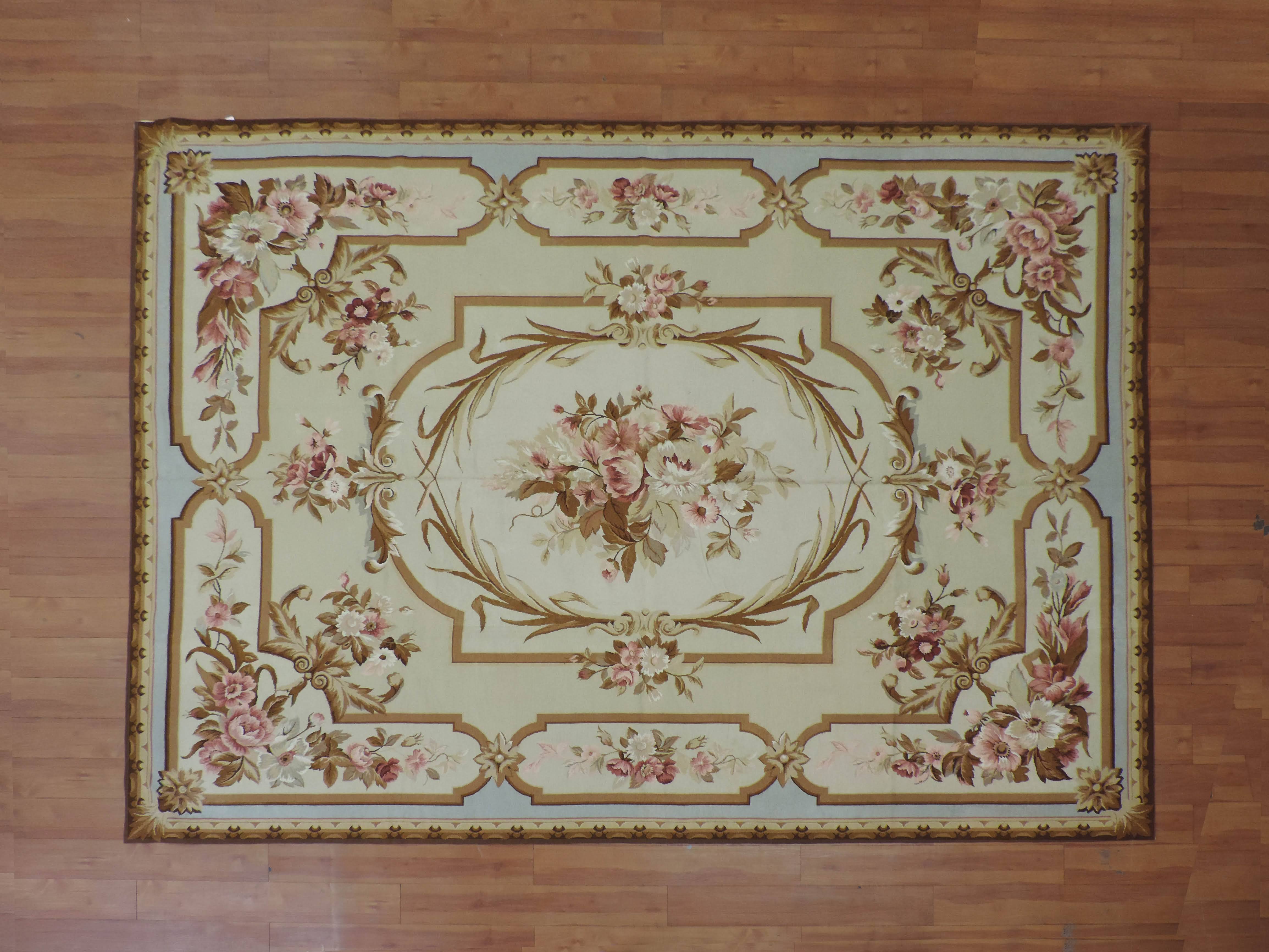 Presenting our vintage Koko-2349 oriental rug, exquisitely hand-knotted in Nepal from warm wool with a cotton foundation. The rug parades a charming floral design on an expansive ivory canvas, shaped elegantly into a 9.1 x 11.9 rectangle. With its captivating needlepoint details and enticing half-price offer, this single-piece marvel promises to add an exotic touch to your decor.