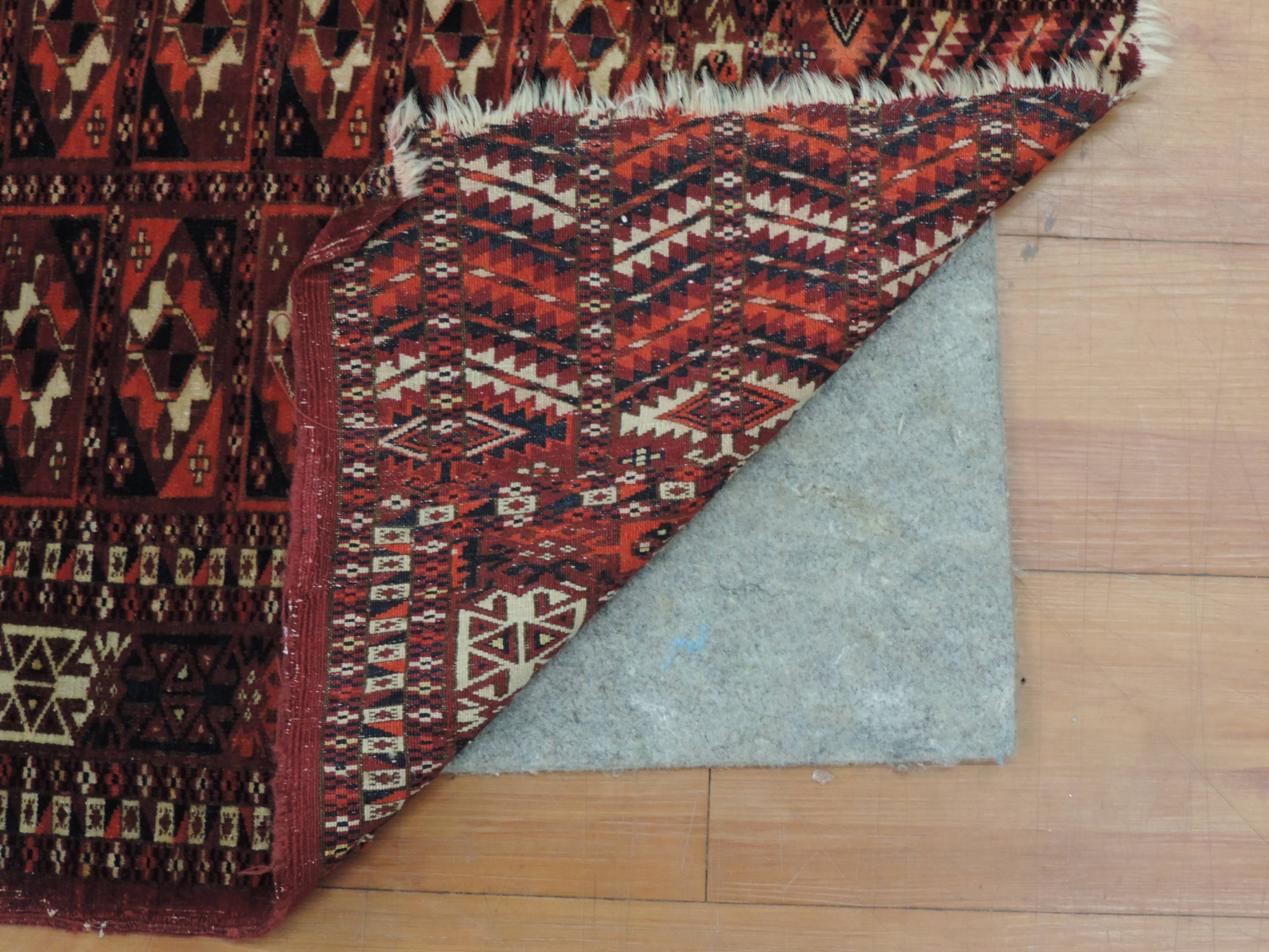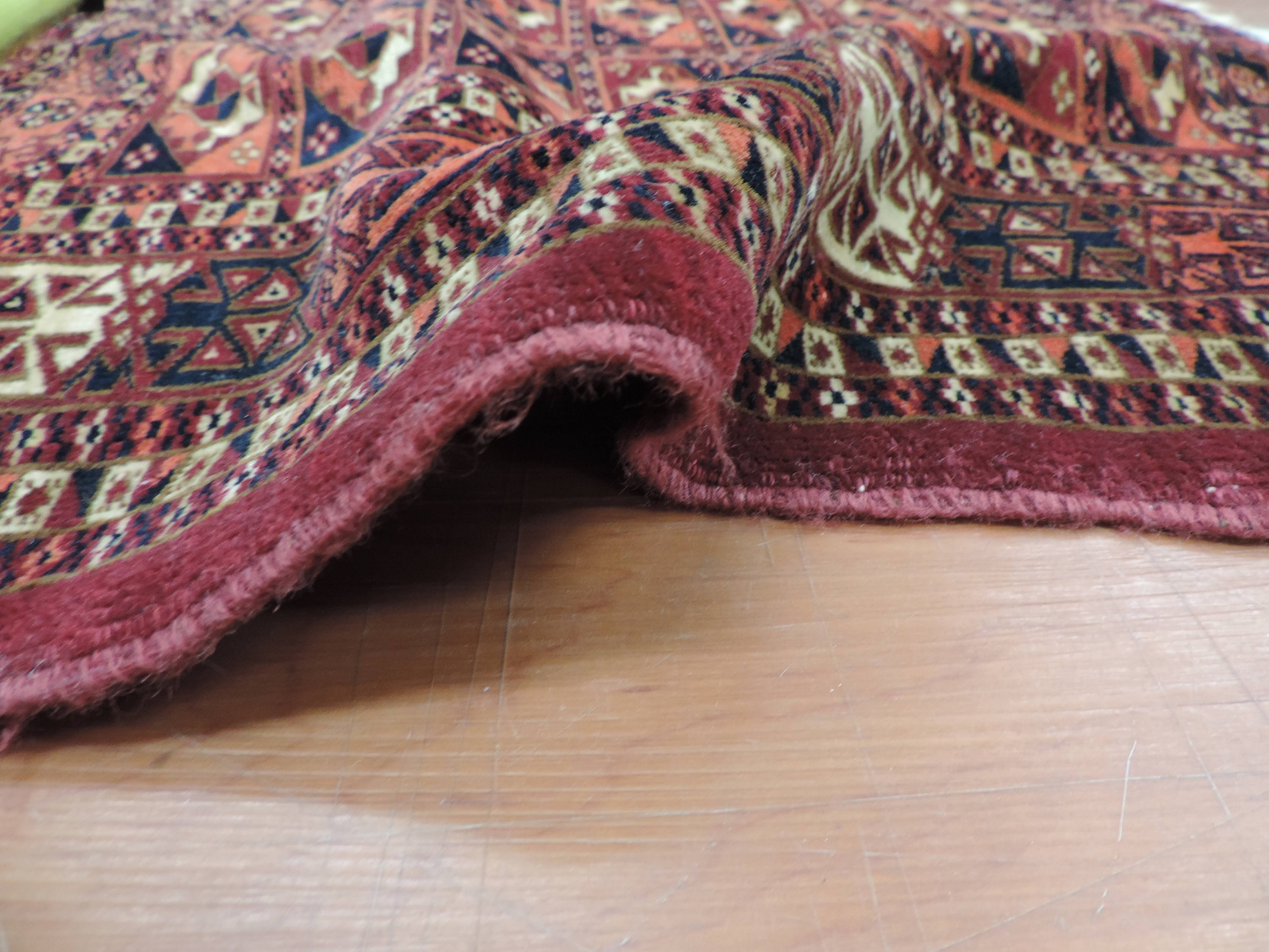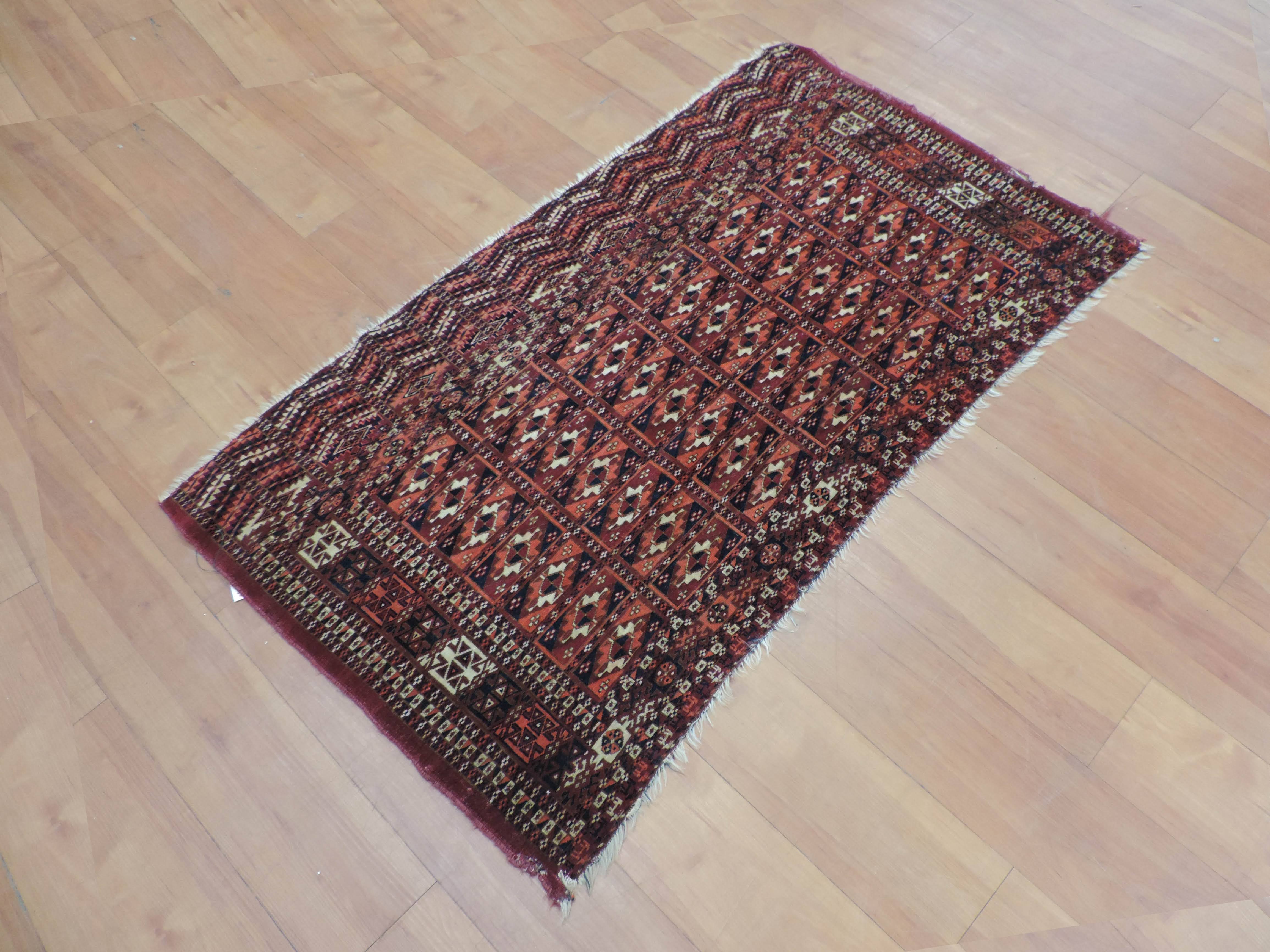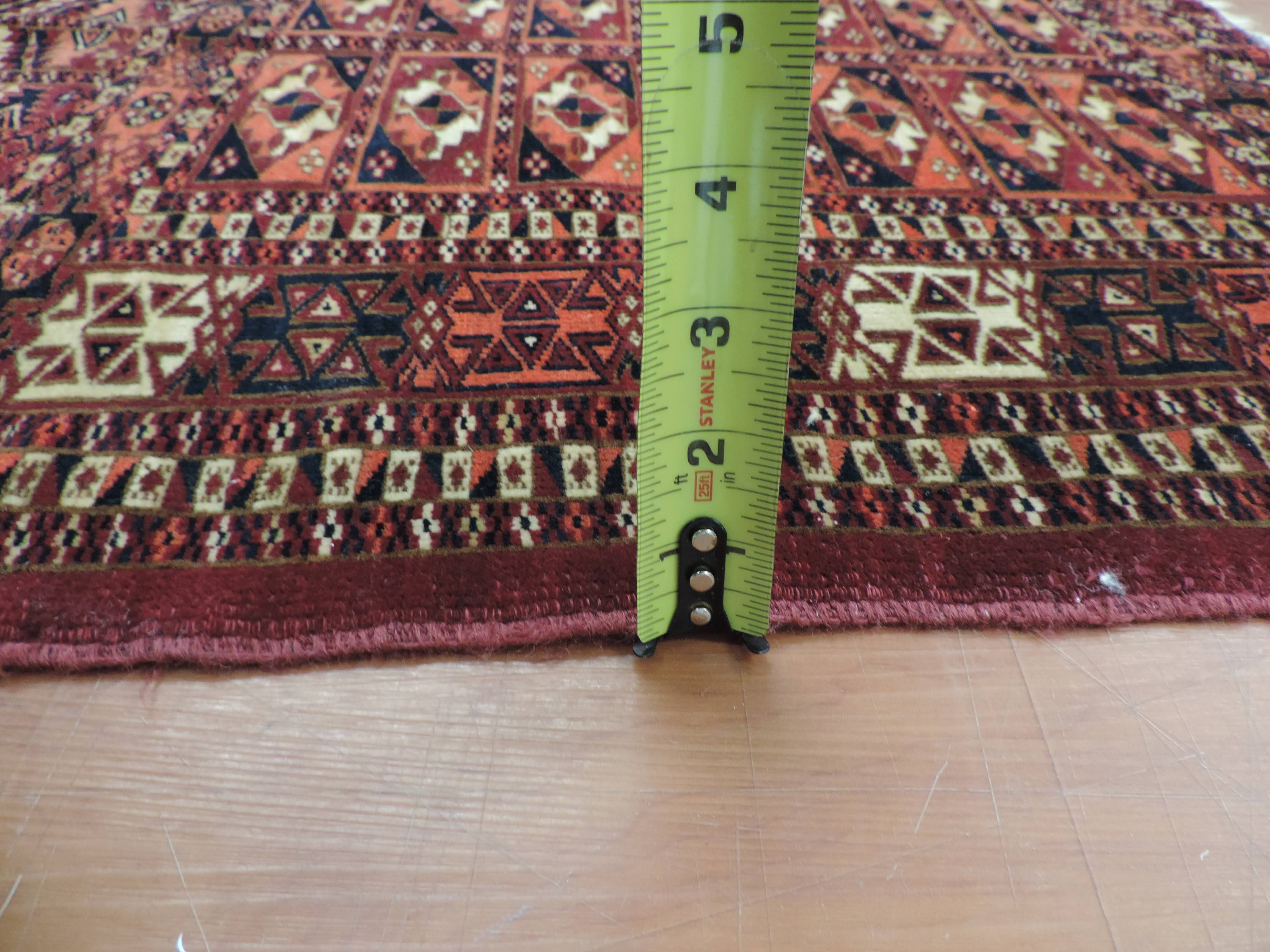 Add a touch of timeless elegance to your home with this antique Turkaman rug. Hand-knotted from wool in Turkmenistan and boasting a vibrant red tone, this rug features a unique geometric design that dates back to 1890. Strikingly beautiful and now available for a bargain price, this rectangular masterpiece will certainly bring an exquisite taste of the Orient into your living space. Don't miss the chance to own this one-of-a-kind piece of history.