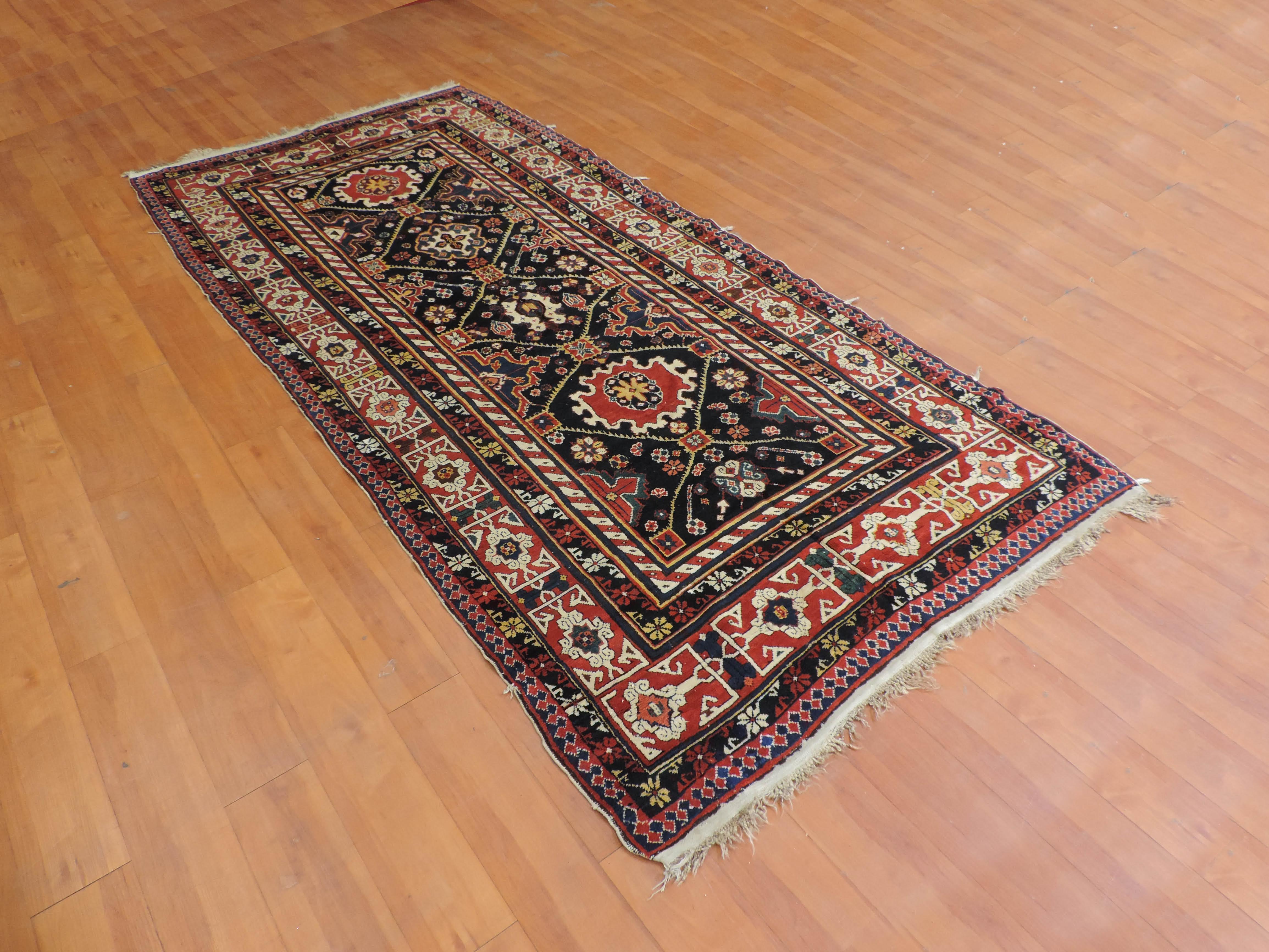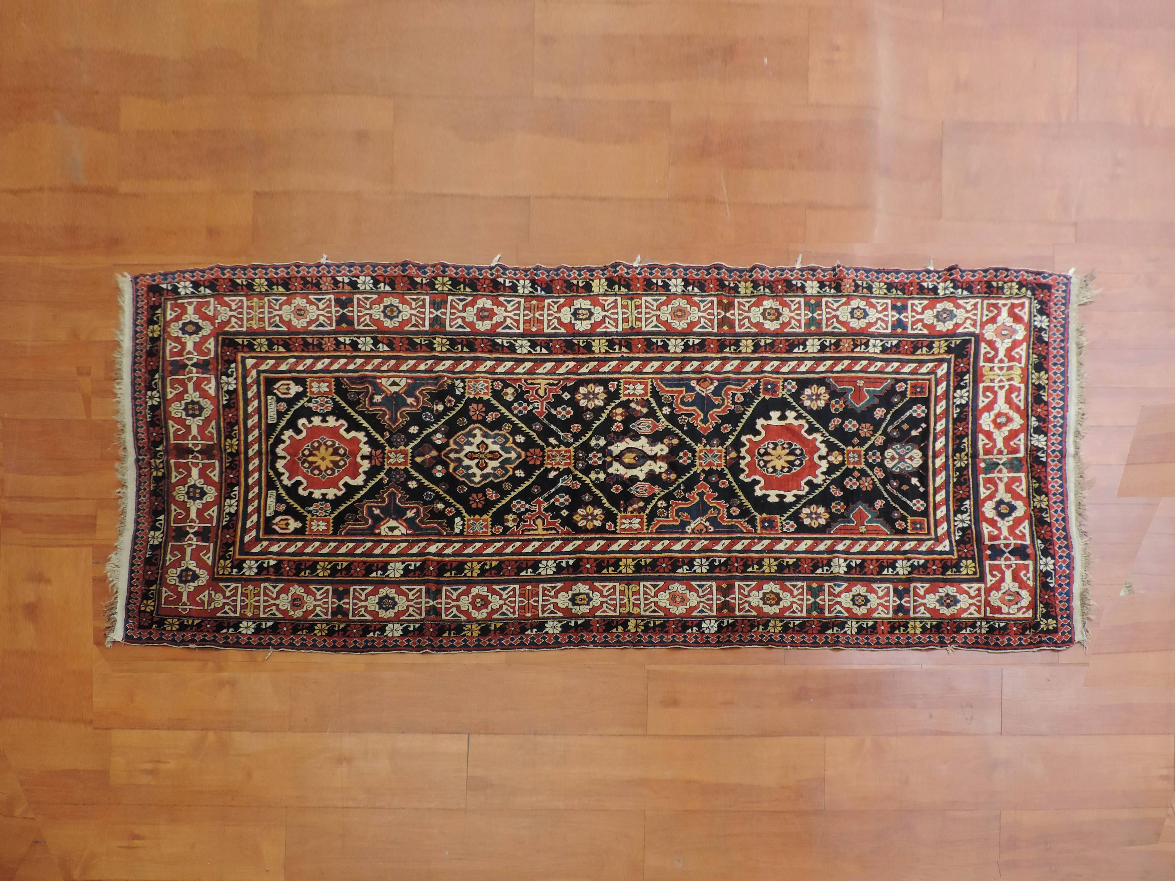 Experience the allure of the 19th Century with the exquisite Koko-2366 oriental rug. Hand-knotted from wool, this antique piece features a unique geometric design in striking black, offering a bold statement for your floor. Enjoy its timeless Caucasian craftsmanship at a special sale price, a stunning addition to your home with a story to tell.