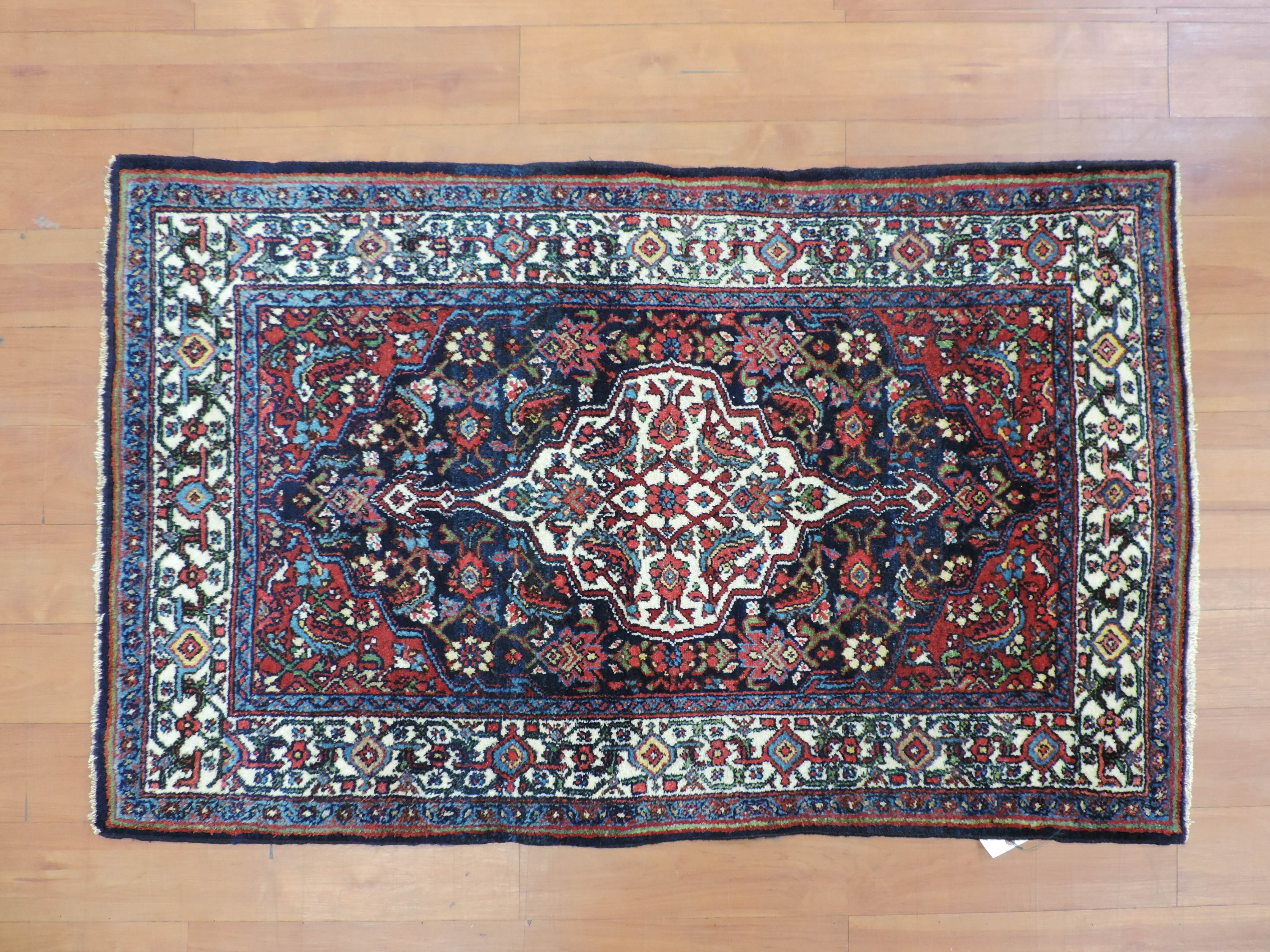 Immerse yourself in the rich history and exquisite craftsmanship of our antique Hamadan rug. Born in the heart of Iran in 1940, this rug (code: koko-2387) features a delicate floral design intricately hand-knotted into luxuriously soft wool. Its stunning navy tone will add a touch of elegance to any room, and with its 50% off sale price, this unique piece is a rare find that deftly combines style, heritage, and value.