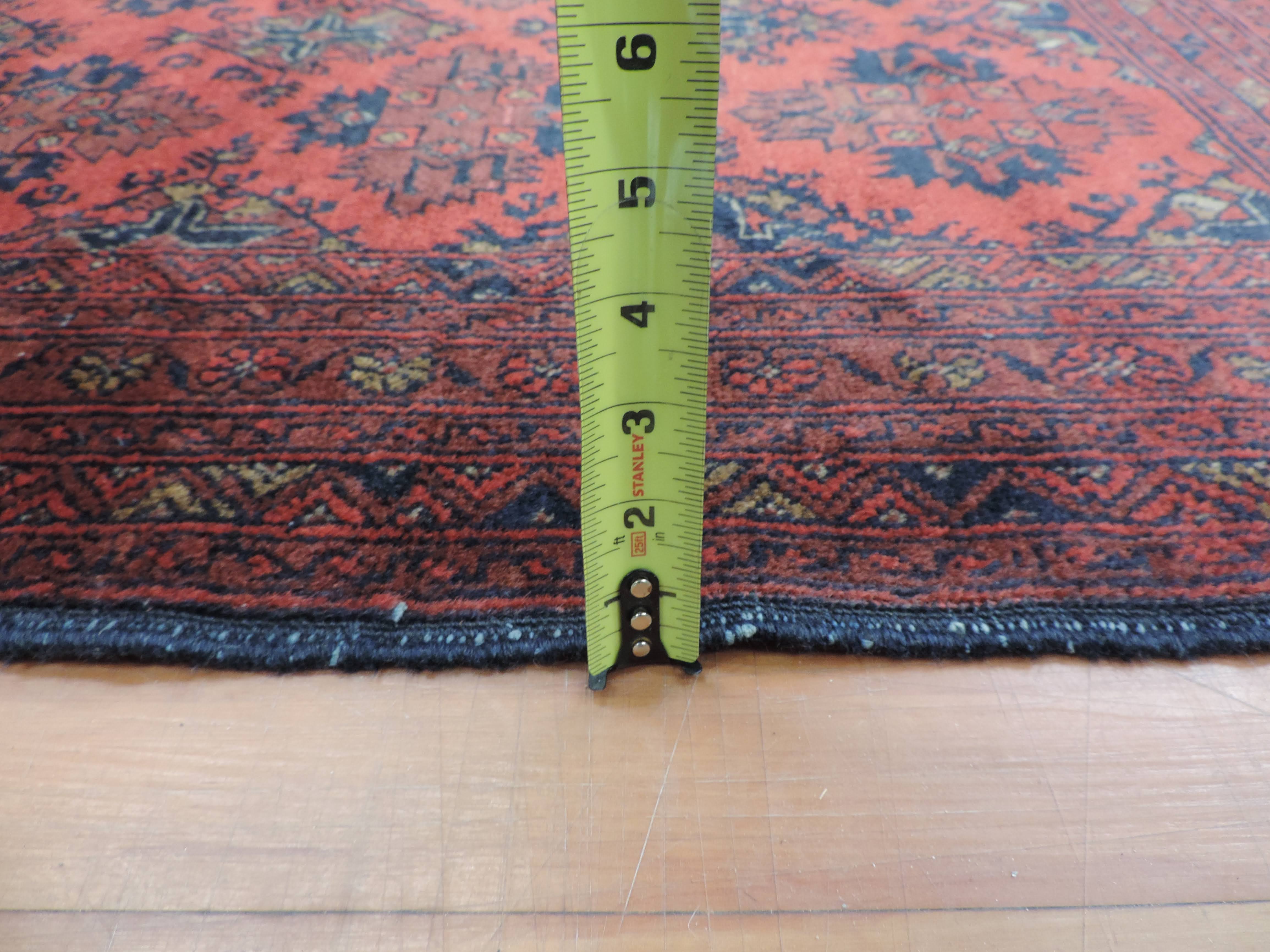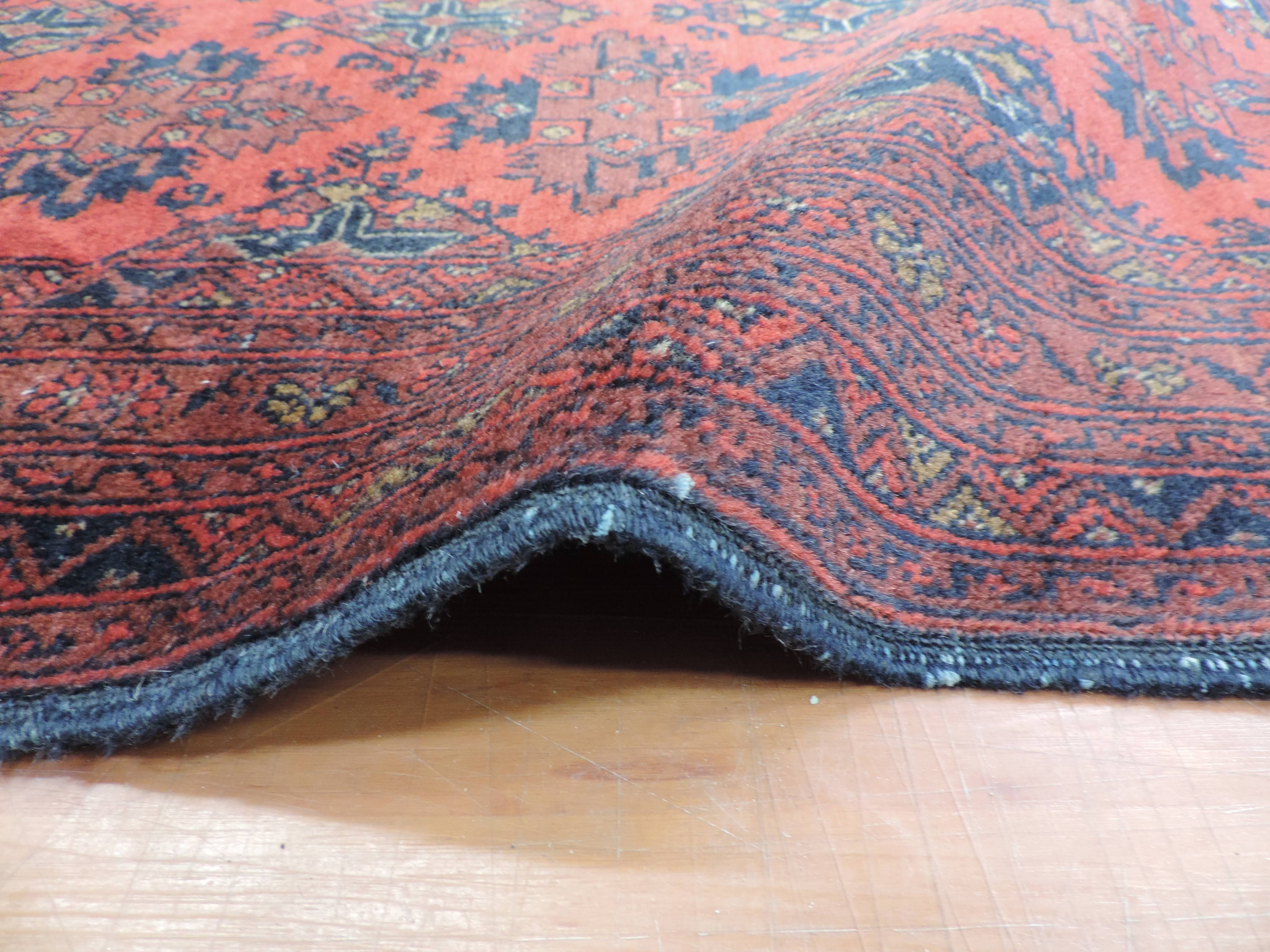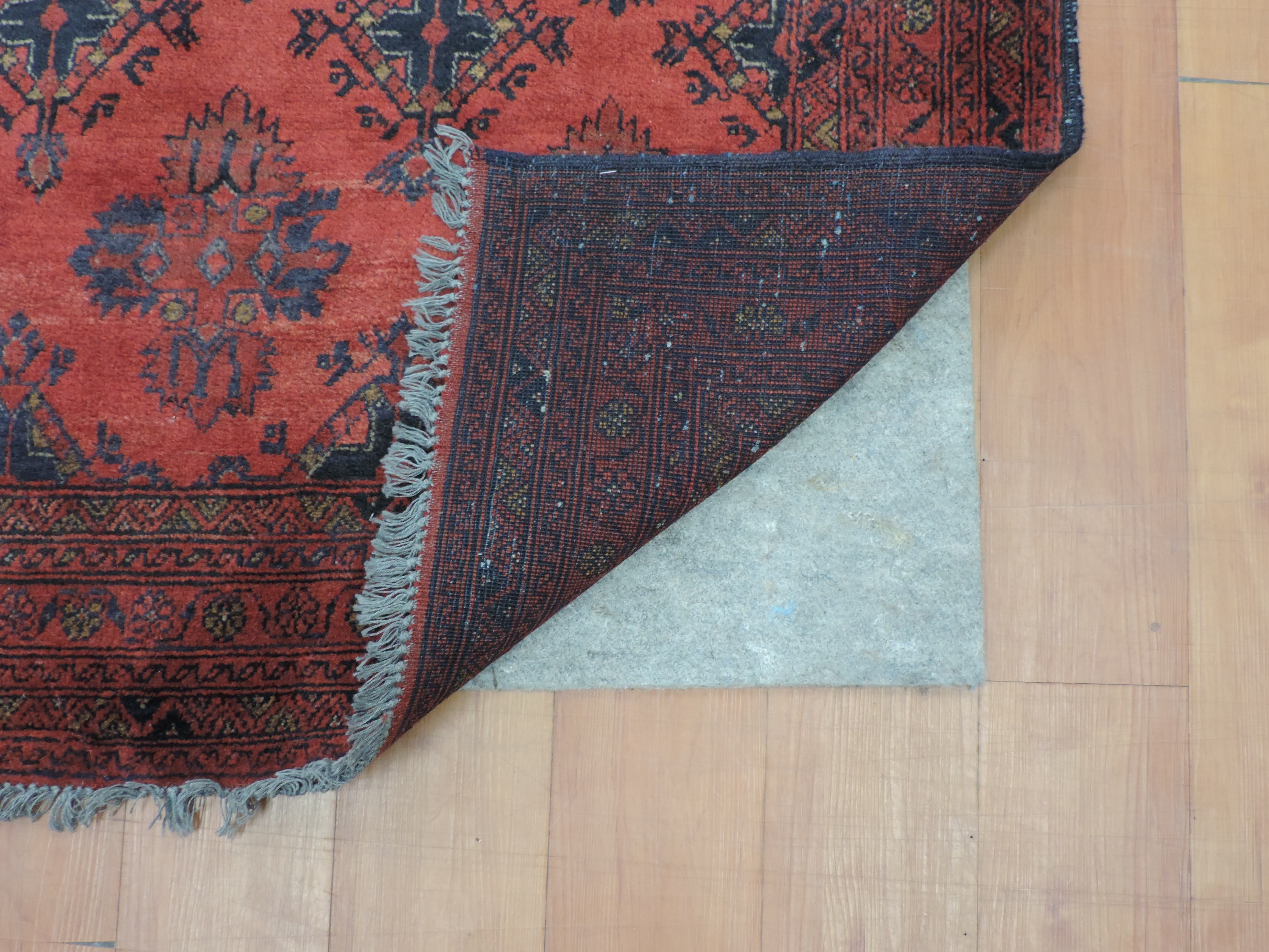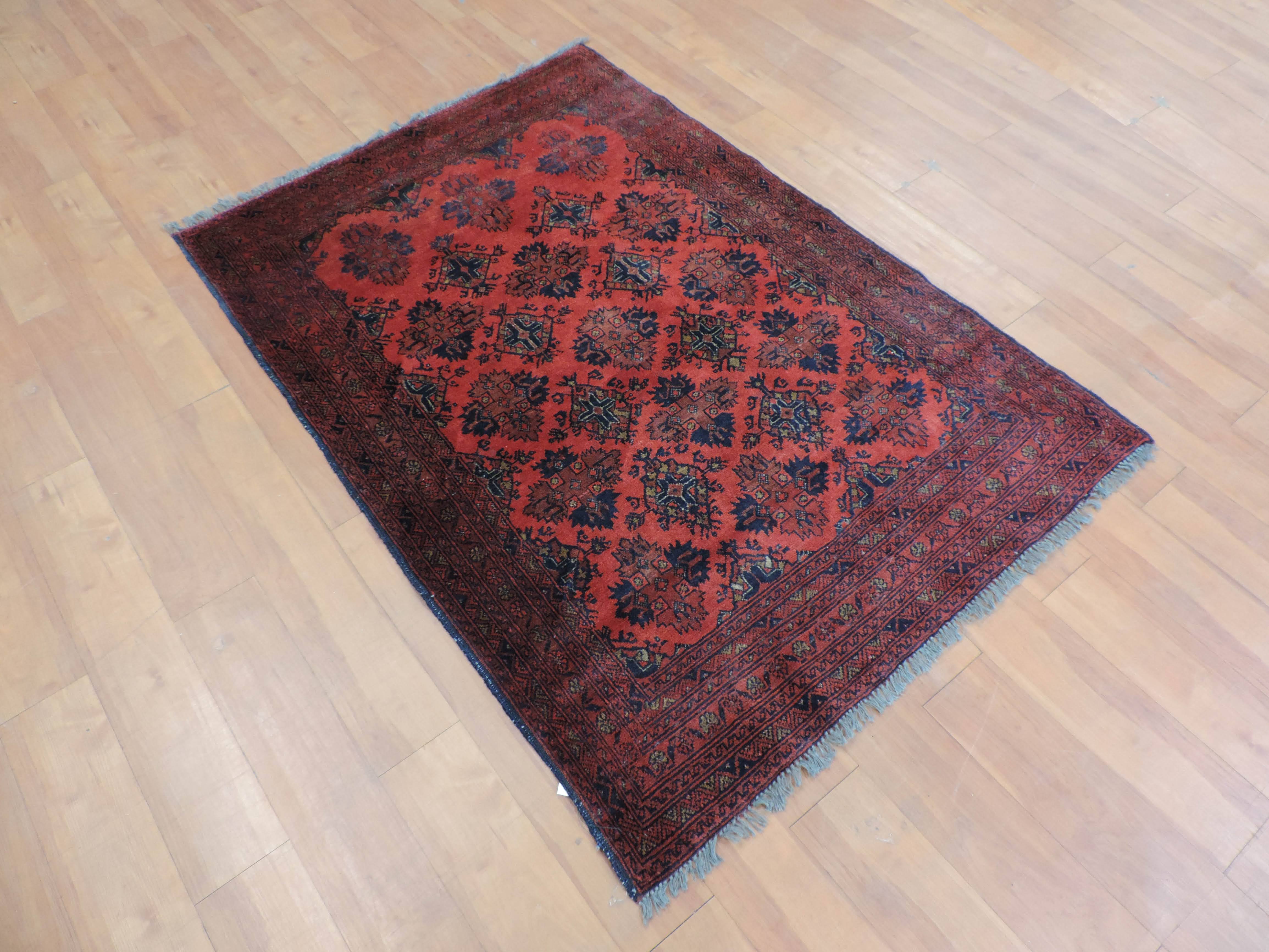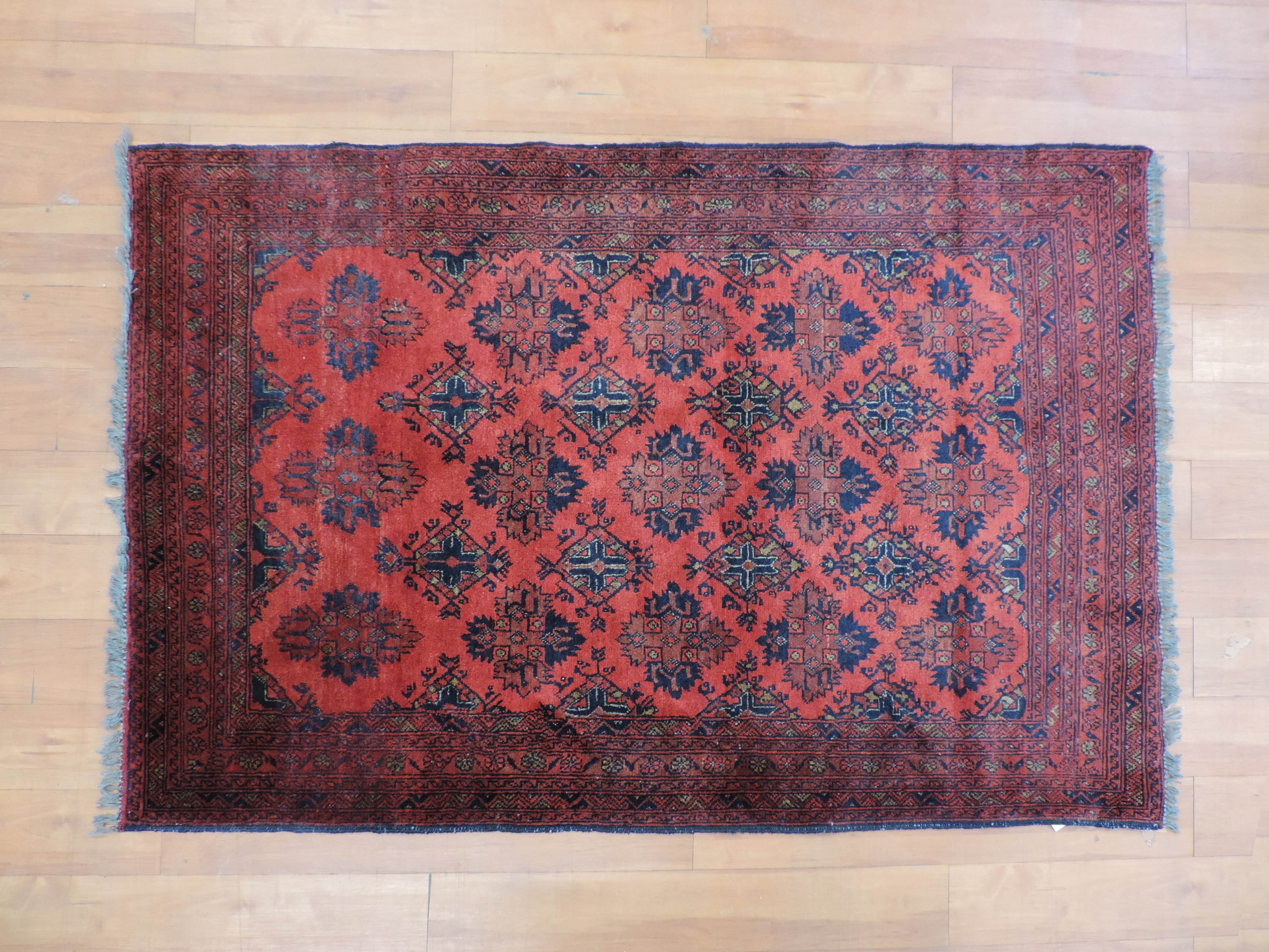 Discover the essence of impeccable craftsmanship with the Koko-2391 Afghan rug. Hand-knotted from high-quality wool with a sturdy cotton foundation, this rug proudly showcases a bold geometric design in a vibrant red hue. Perfect for adding a touch of classic elegance and warm color to any room, this authentic oriental rug from Afghanistan is now available at an irresistible sale price.
