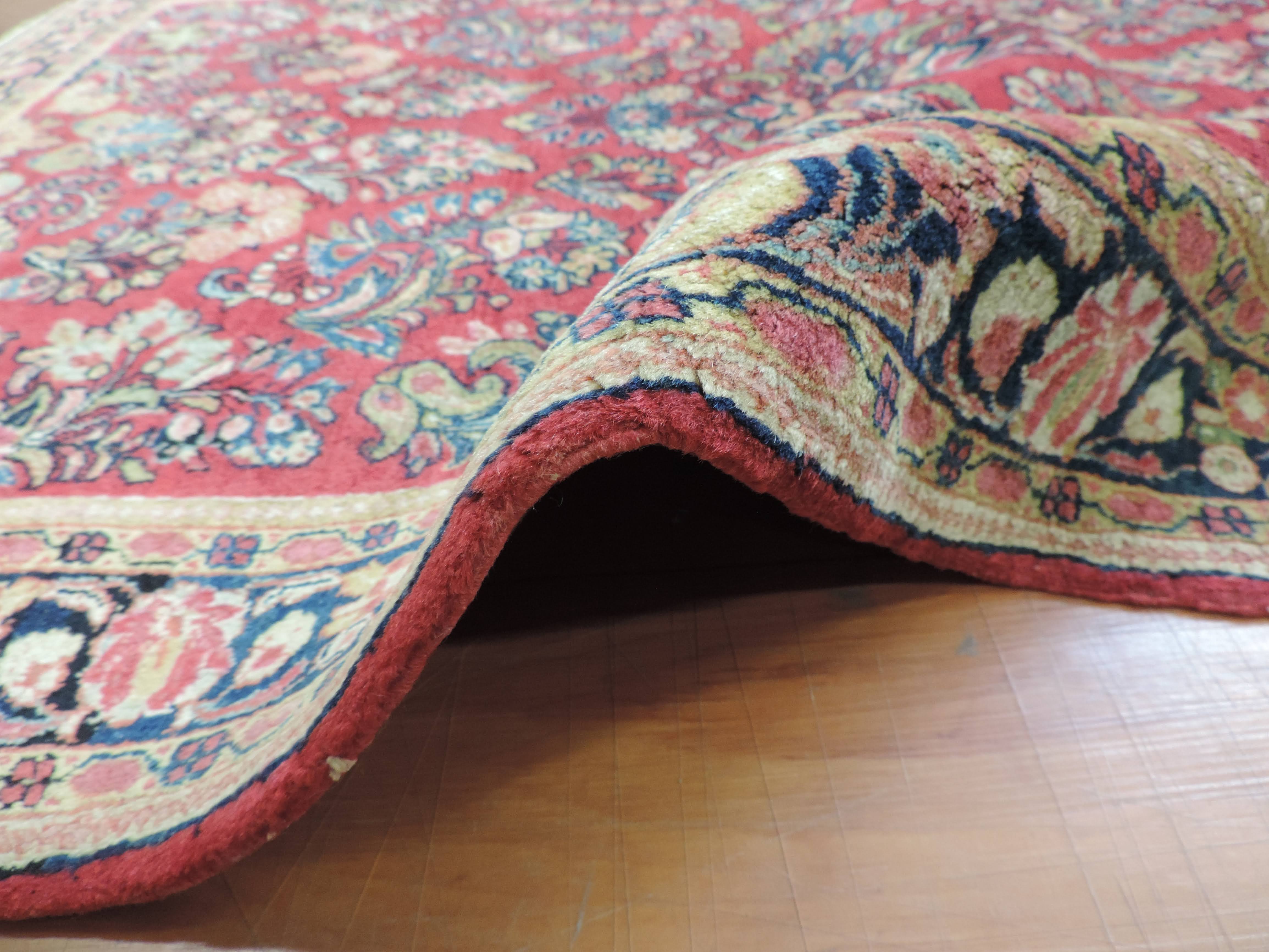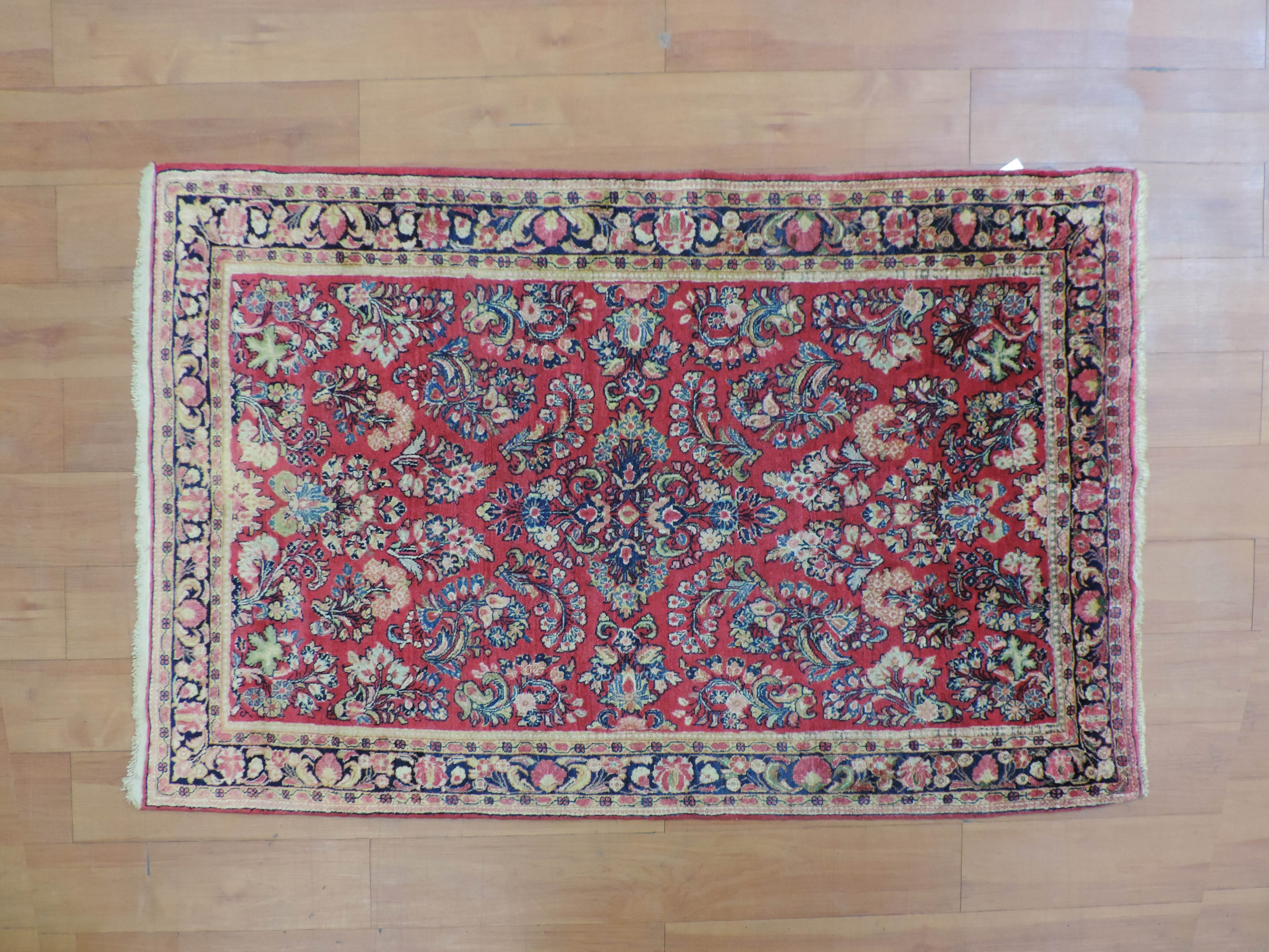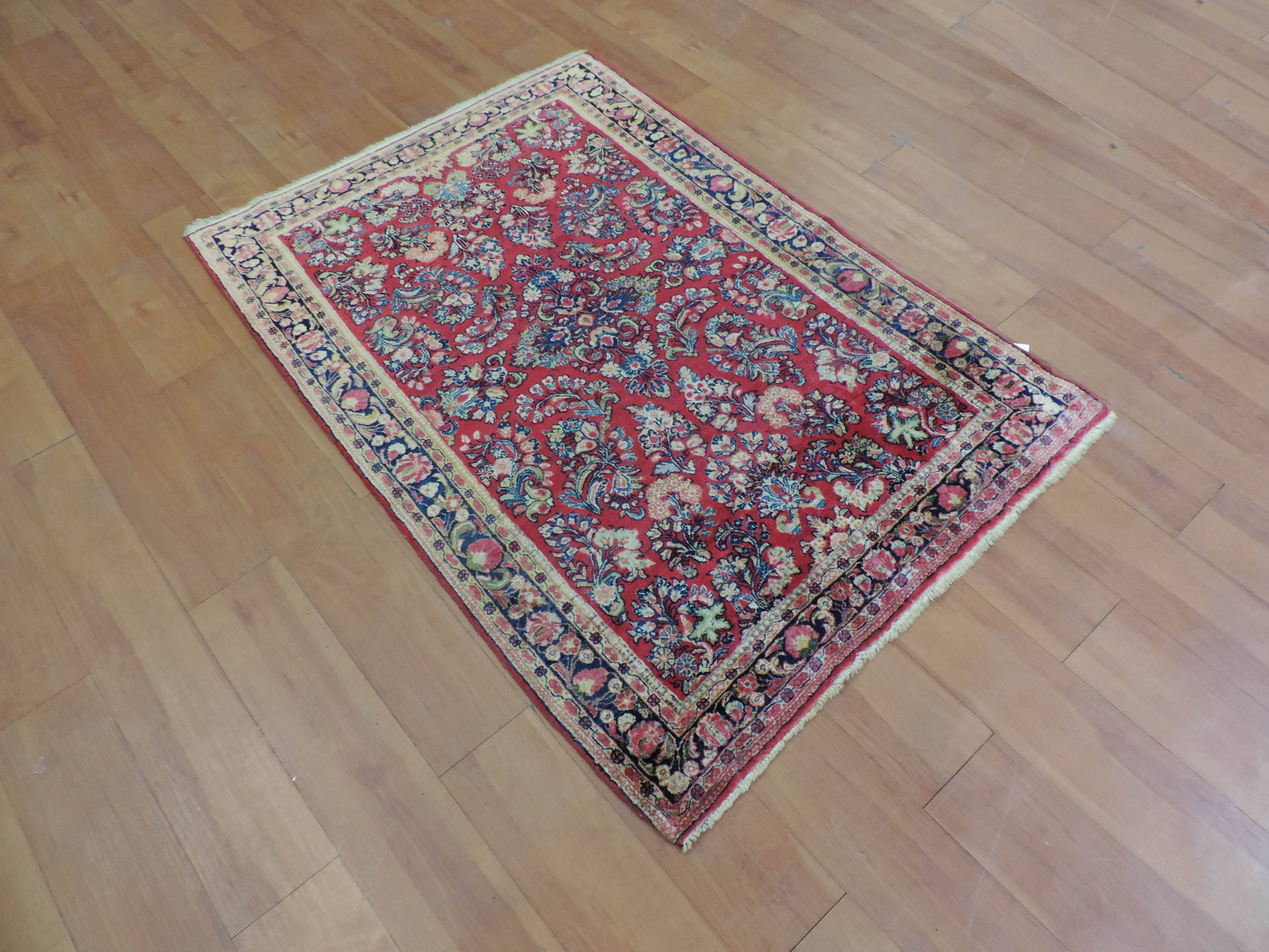 Uncover the charm of the past with our Koko-2400 rug, a hand-knotted masterpiece from Iran. This 1920 antique Sarouk rug showcases a stunning floral design in a delicate rose hue, crafted with the finest wool on a sturdy cotton foundation. Currently on sale for $3250, this rectangular piece, measuring 3.5 by 4.10 feet, will add an authentic touch of oriental elegance to your living space.
