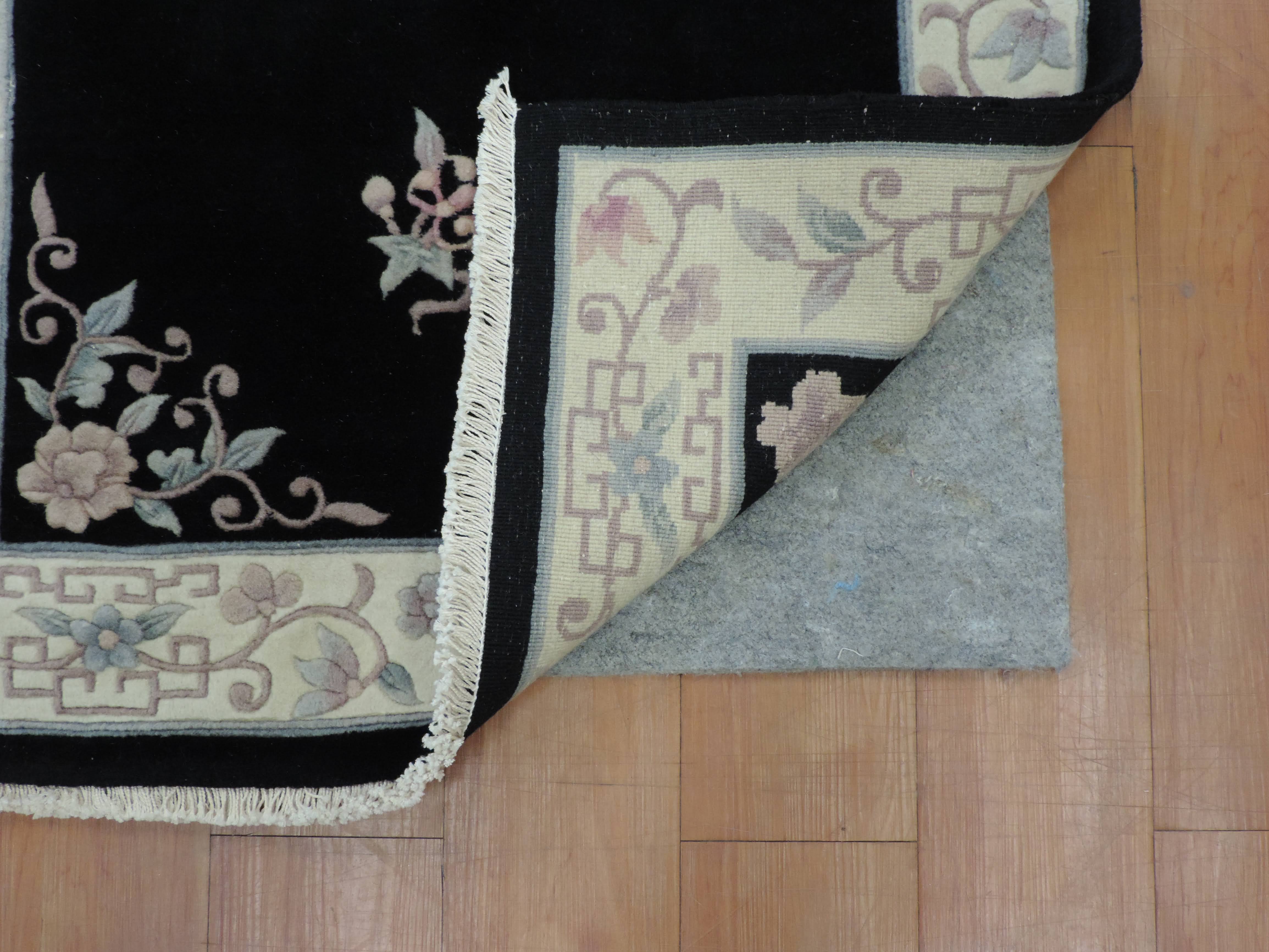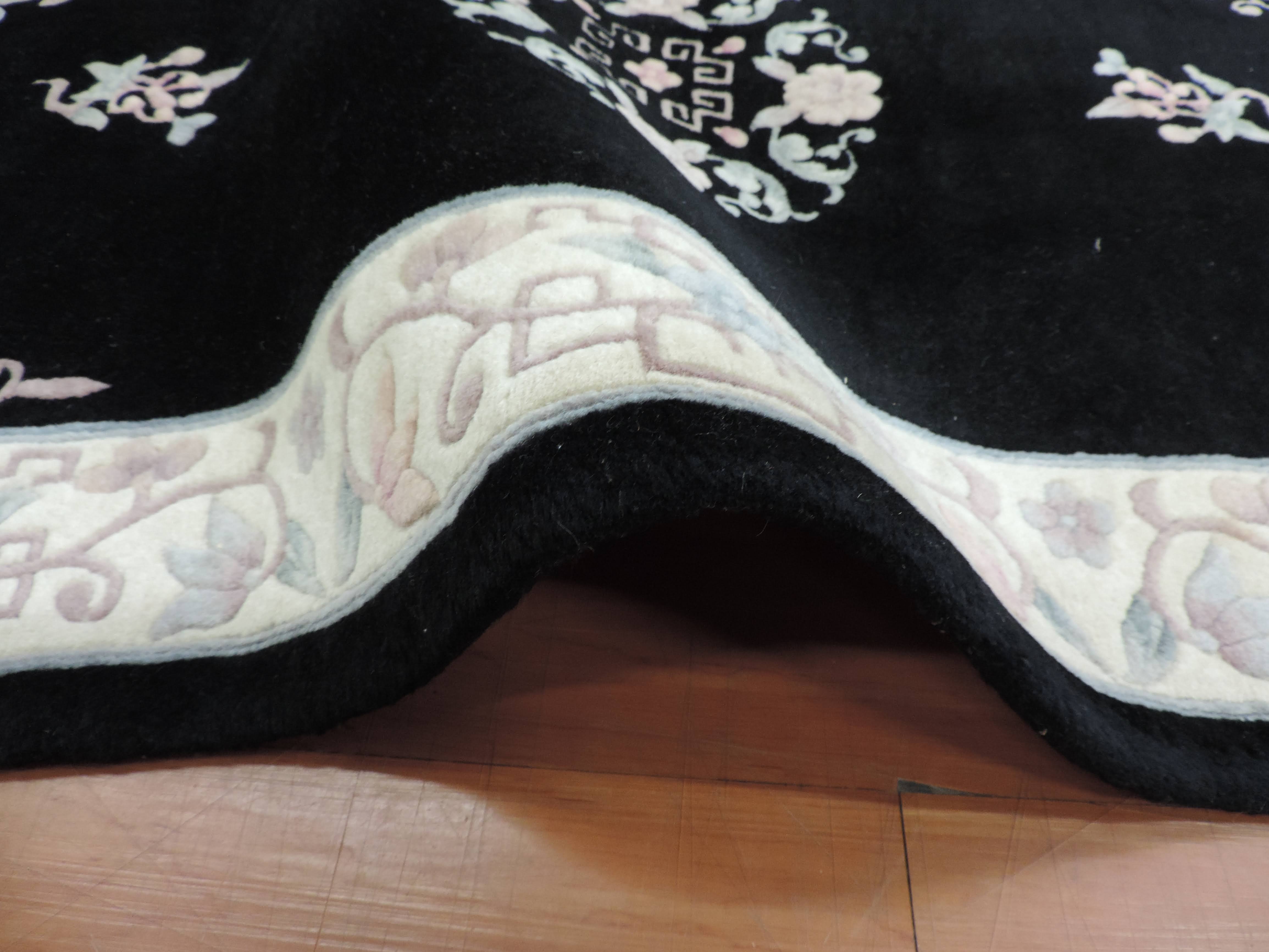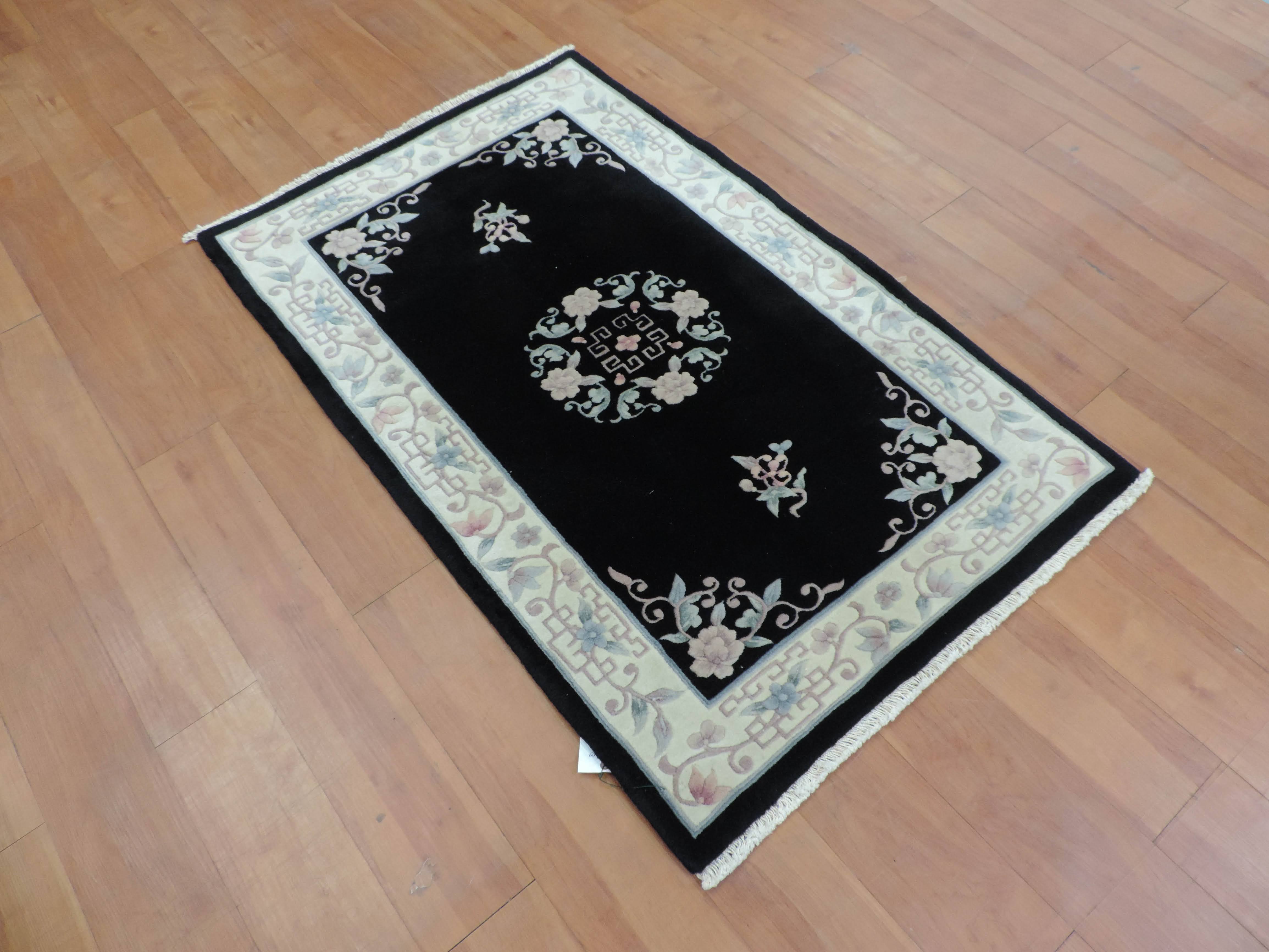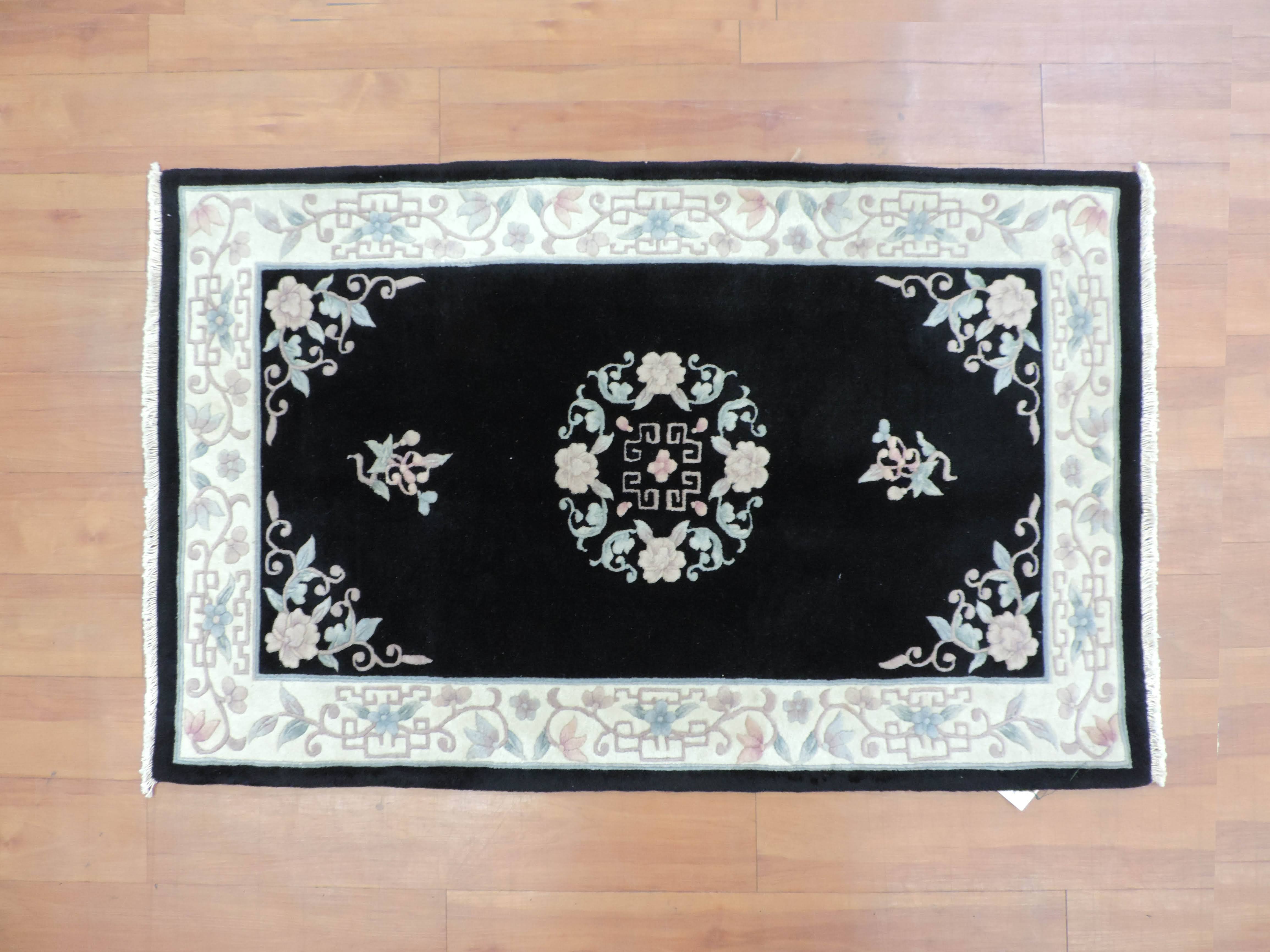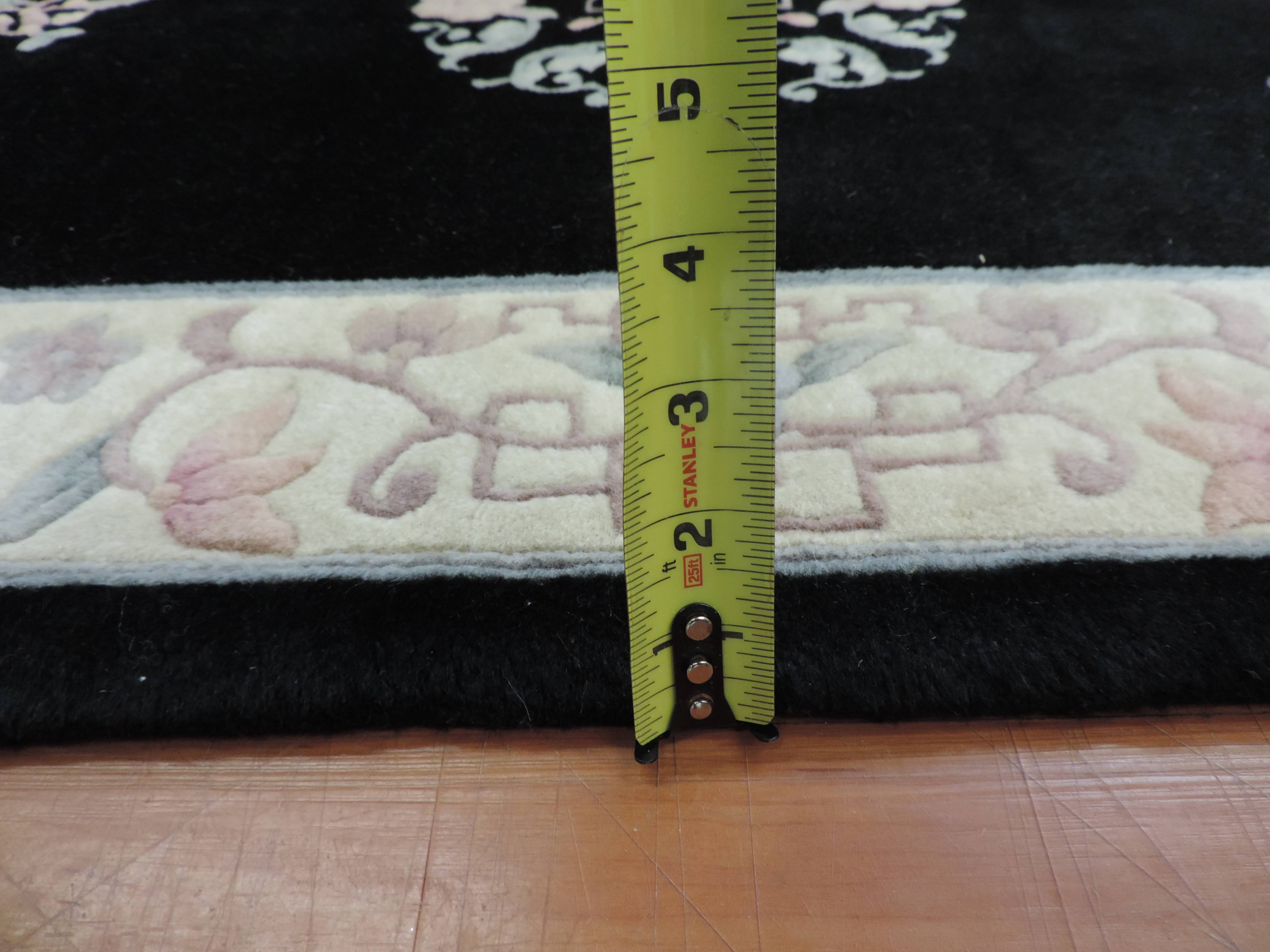 Exude an air of timeless elegance with our vintage Chinese Rug, code Koko-2409. Indulge in the exquisite, hand-knotted wool craftsmanship, adorned with intricate floral designs set against a bold black backdrop. Now priced at a steal, this 1970 rectangular gem, originating from China, adds an enchanting oriental charm to any space.