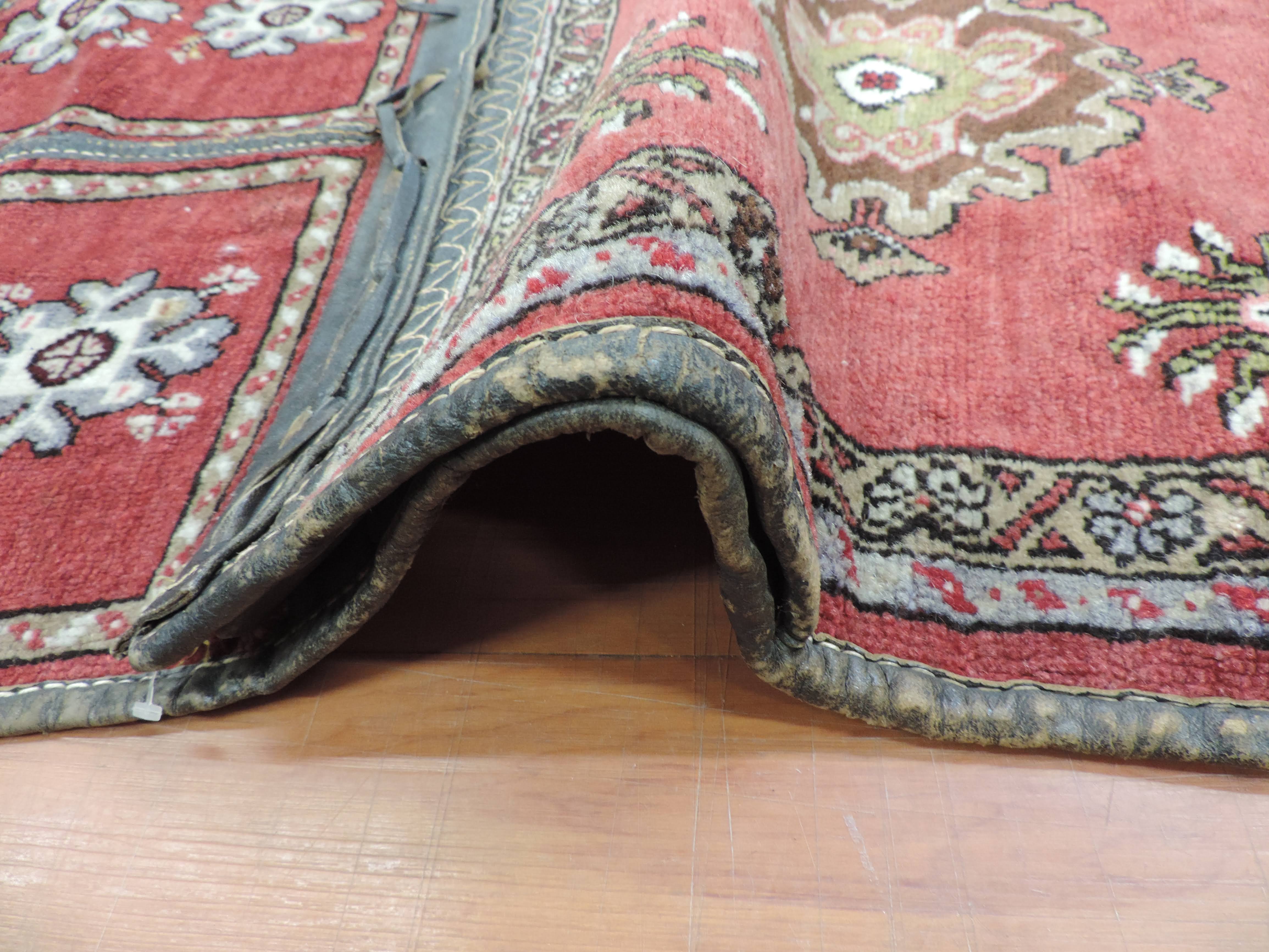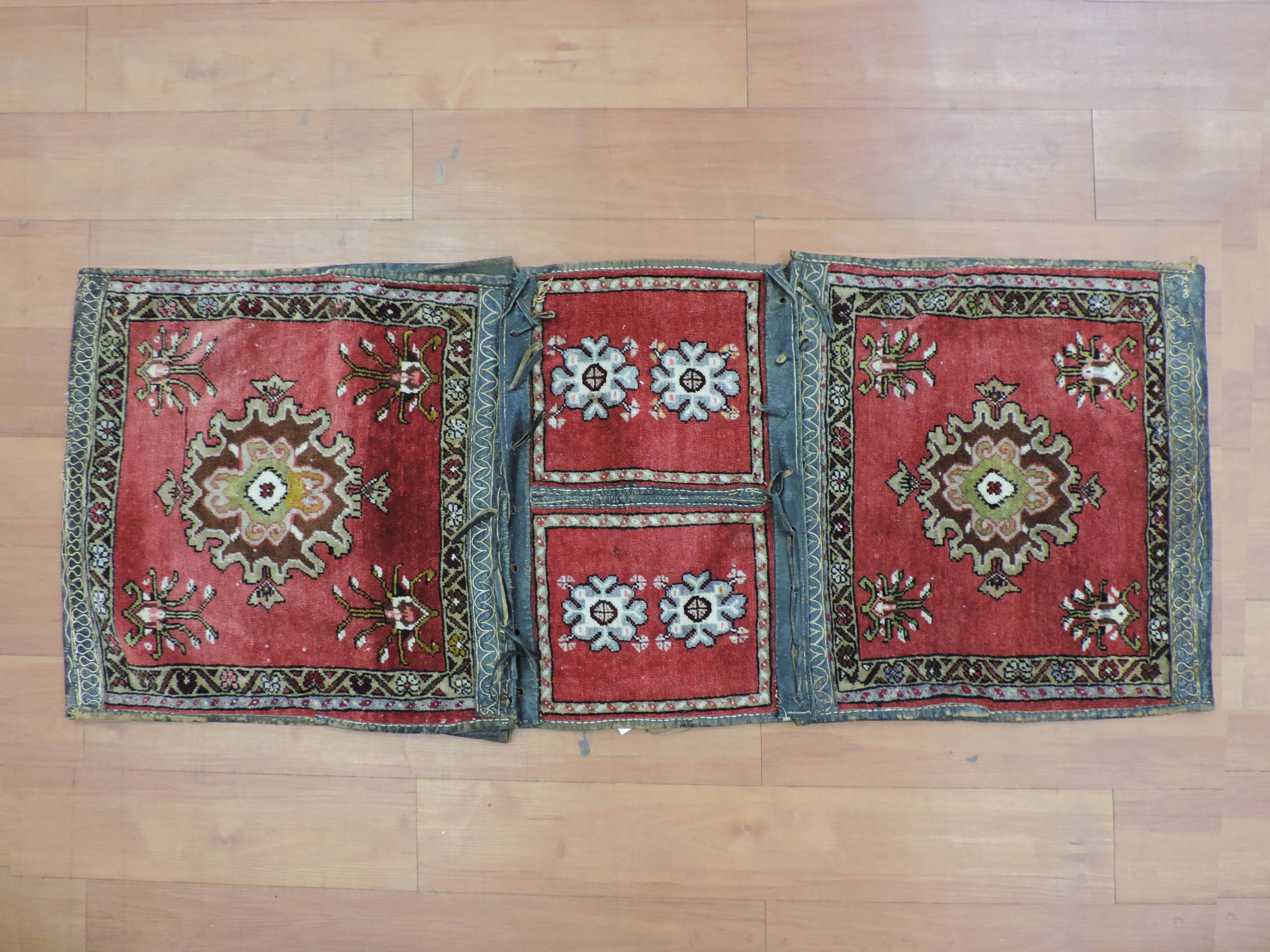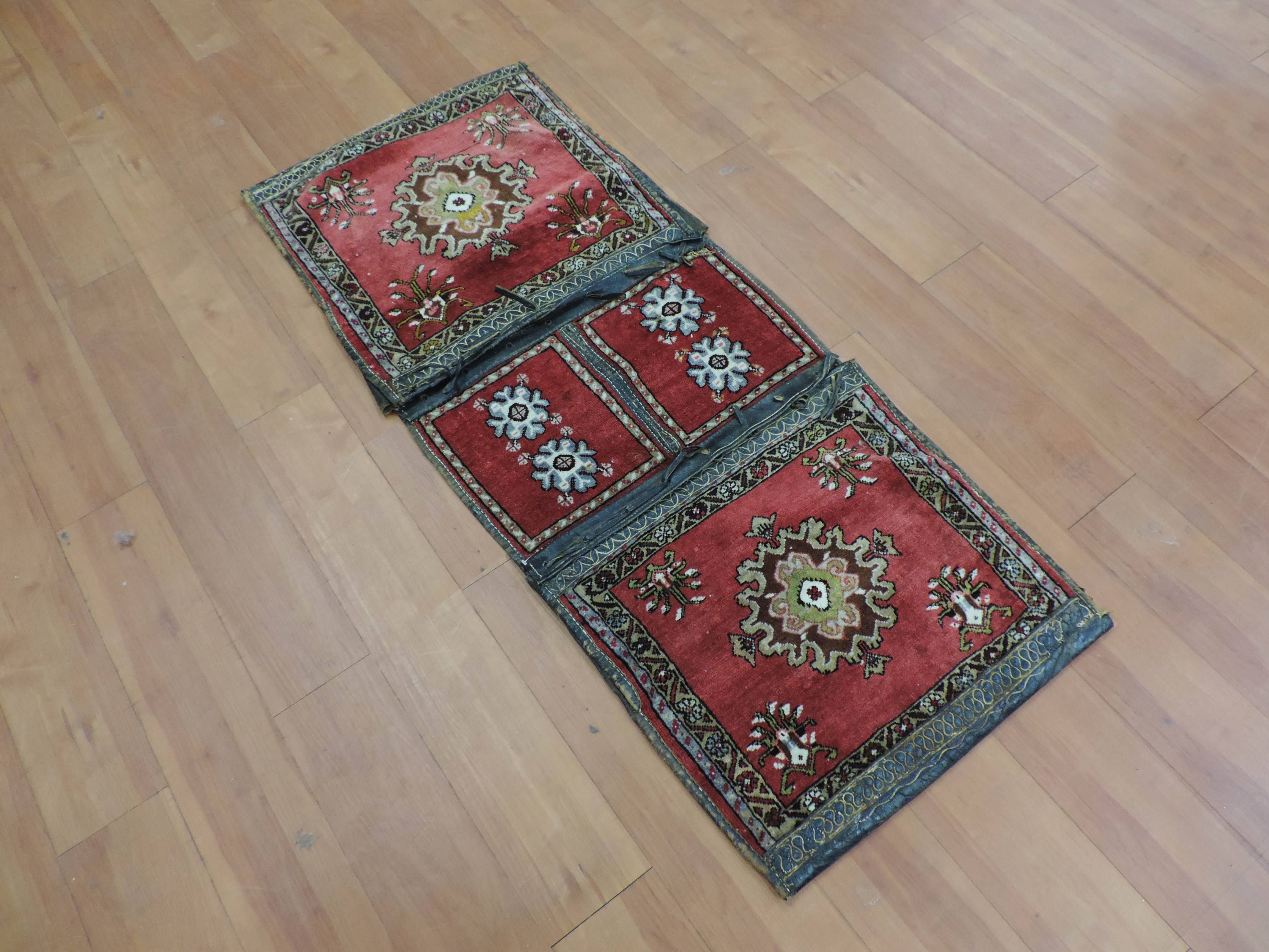 Experience a blend of history and craftsmanship with this antique saddlebag. This antique, hand-knotted wool saddlebag from Turkmenistan, boasts a vibrant red hue and captivating geometric design. Available exclusively, it infuses any space with a touch of exotic elegance and now is offered at an unbeatable sale price.