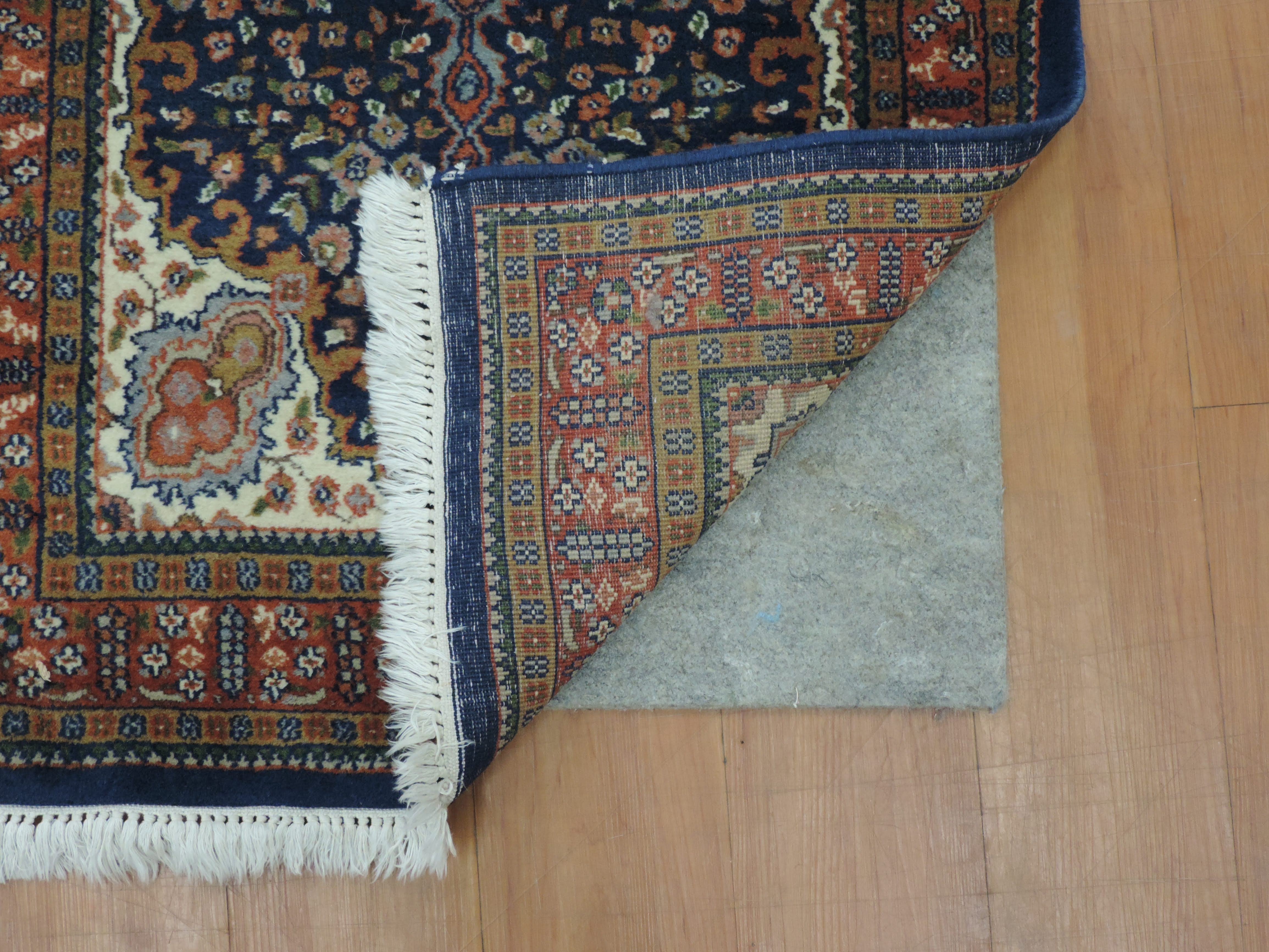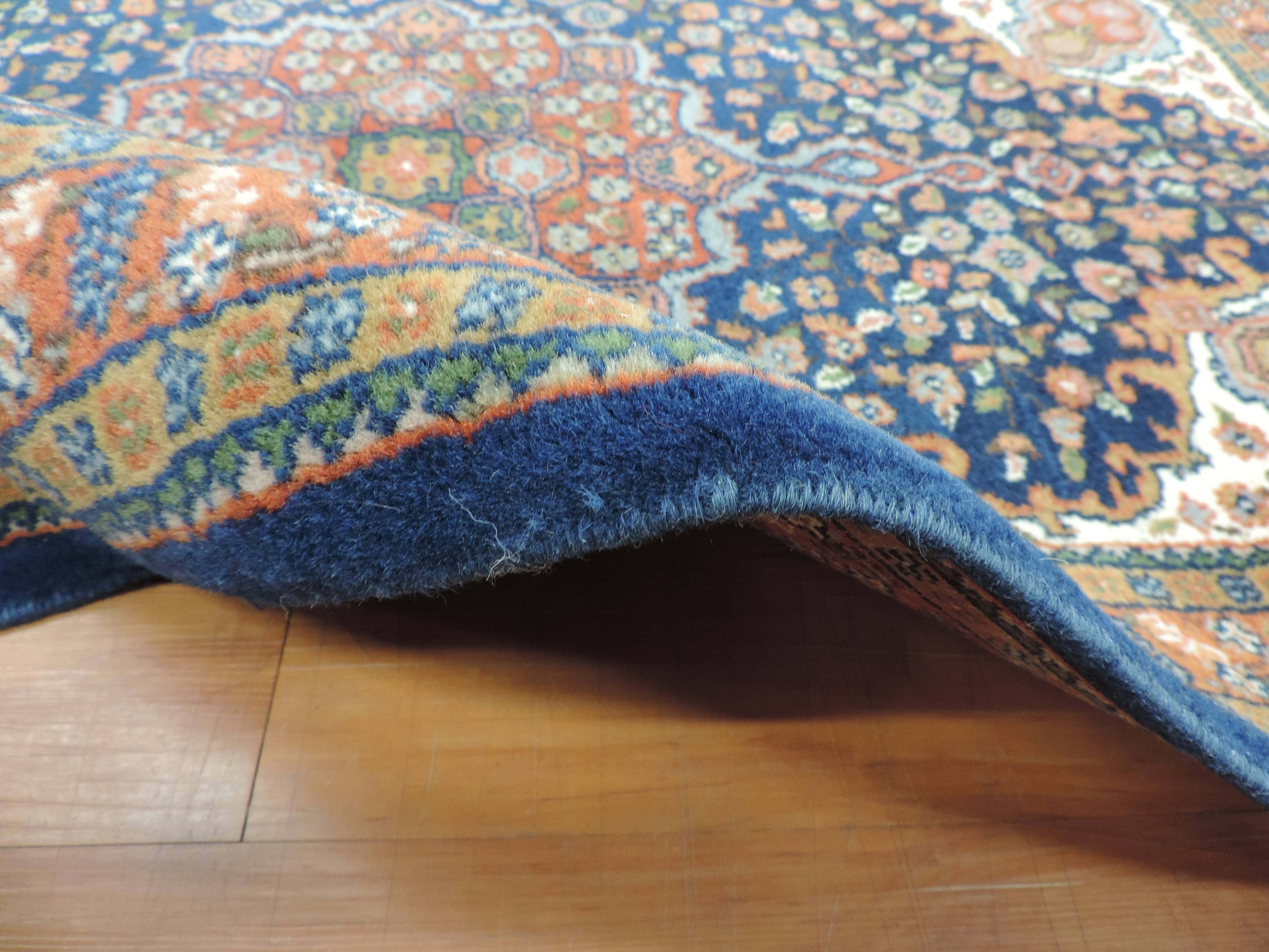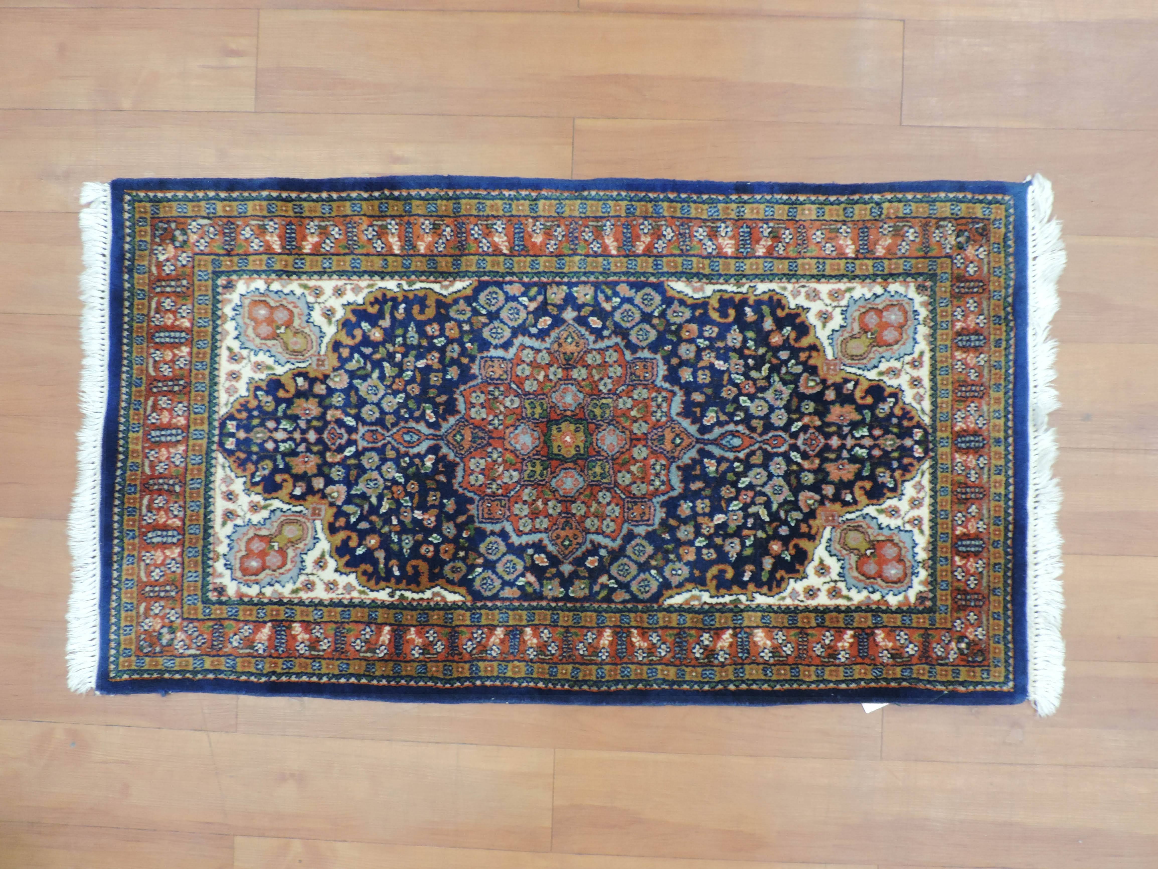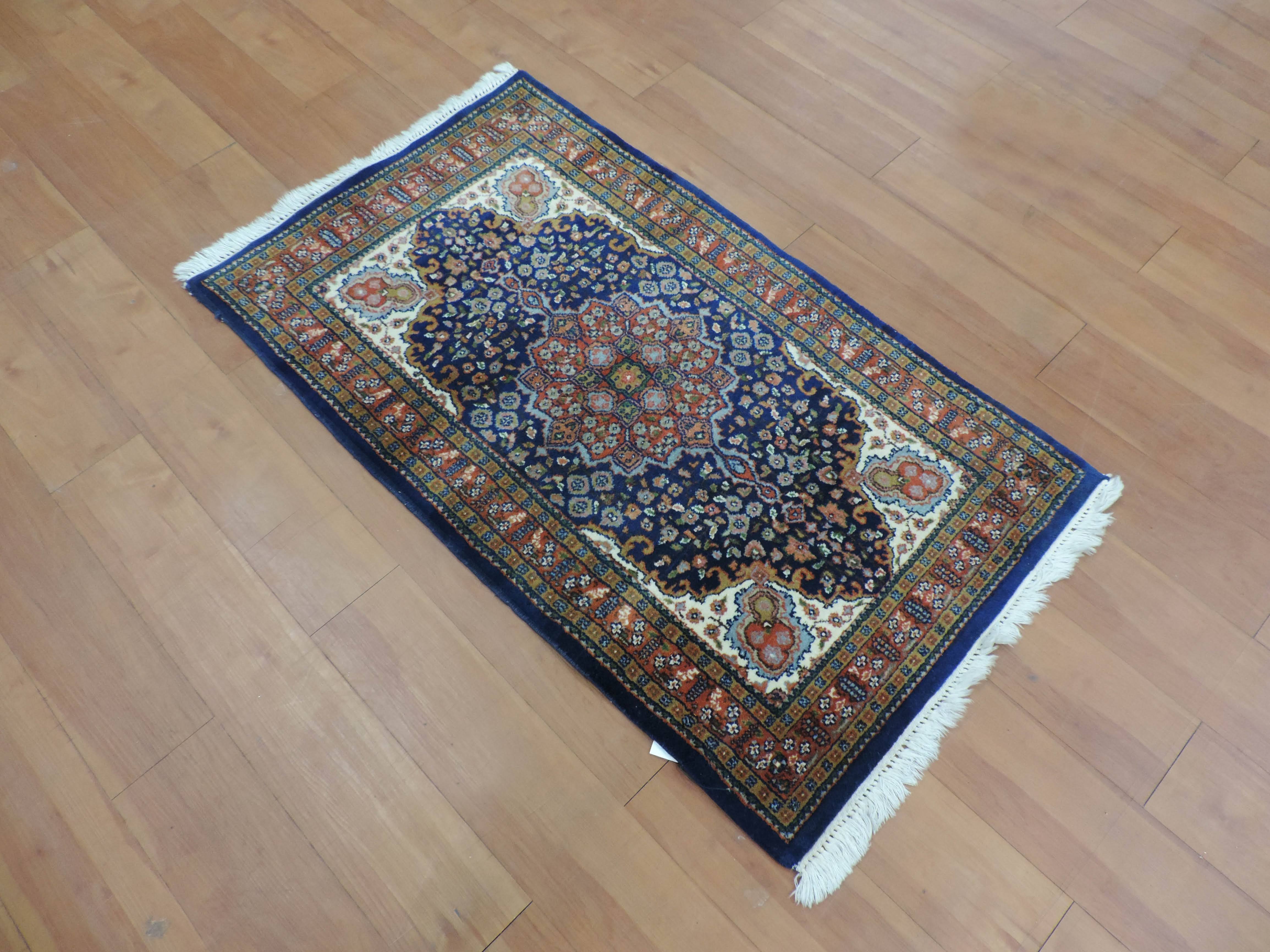 Indulge in the vintage charm of our Indo rug, koko-2418, hand-knotted from pure wool with a sturdy cotton foundation. This 2.6x4.4 ft rectangular beauty, sourced directly from India, flaunts an intricate floral design set against a sophisticated navy backdrop. Now available at a special sale price of $250, make this timeless piece yours and add a touch of exotic elegance to your home.