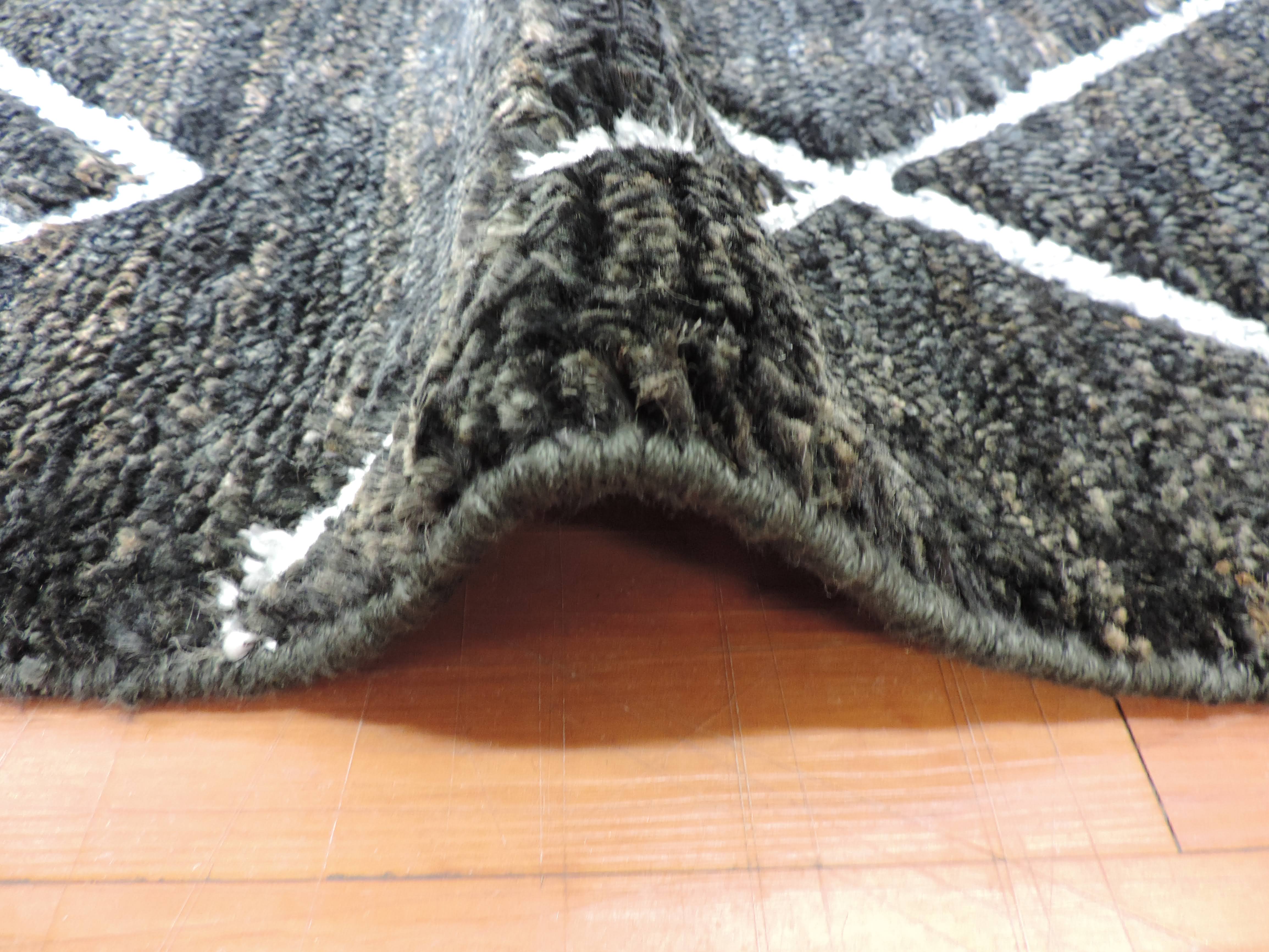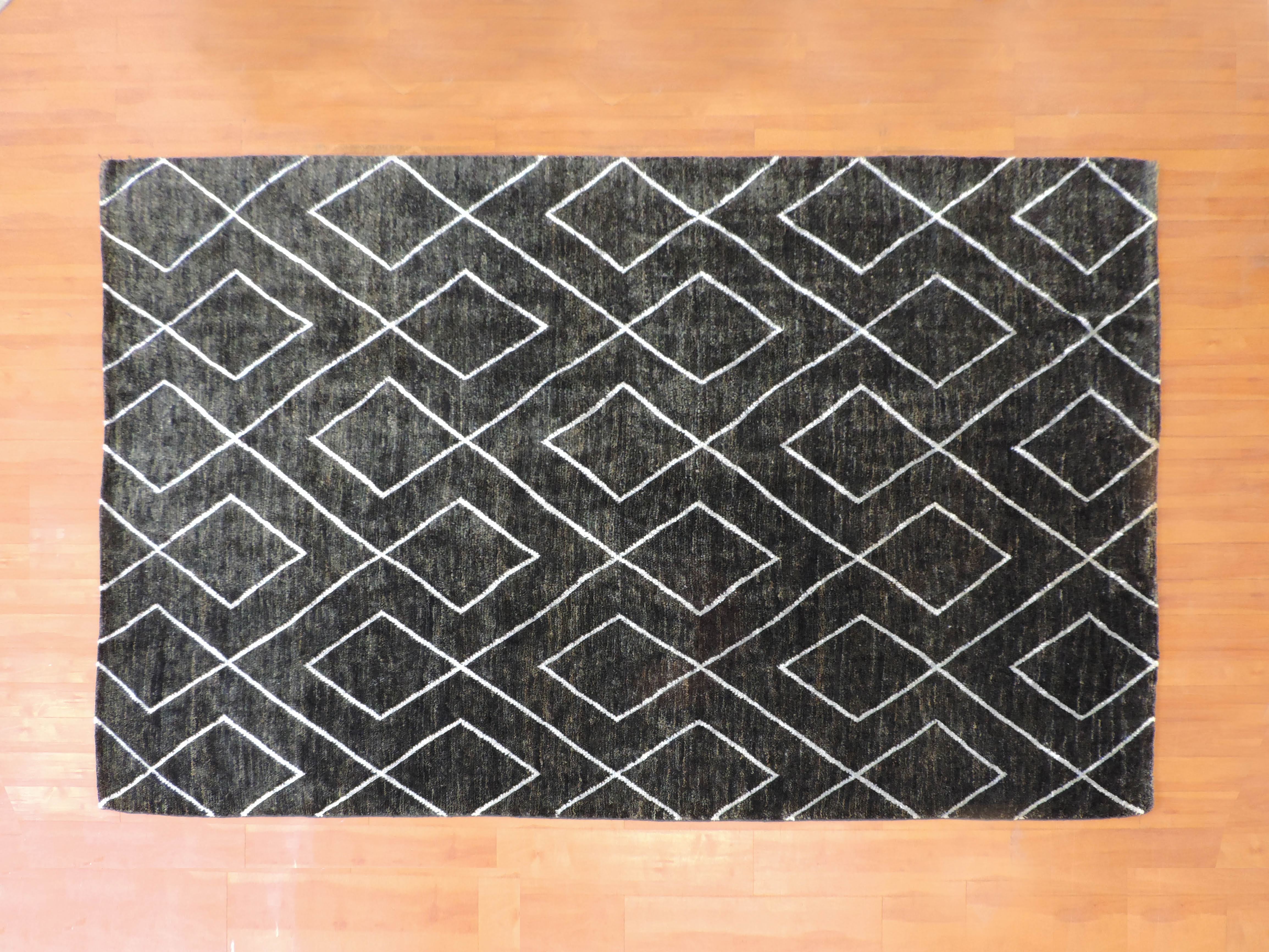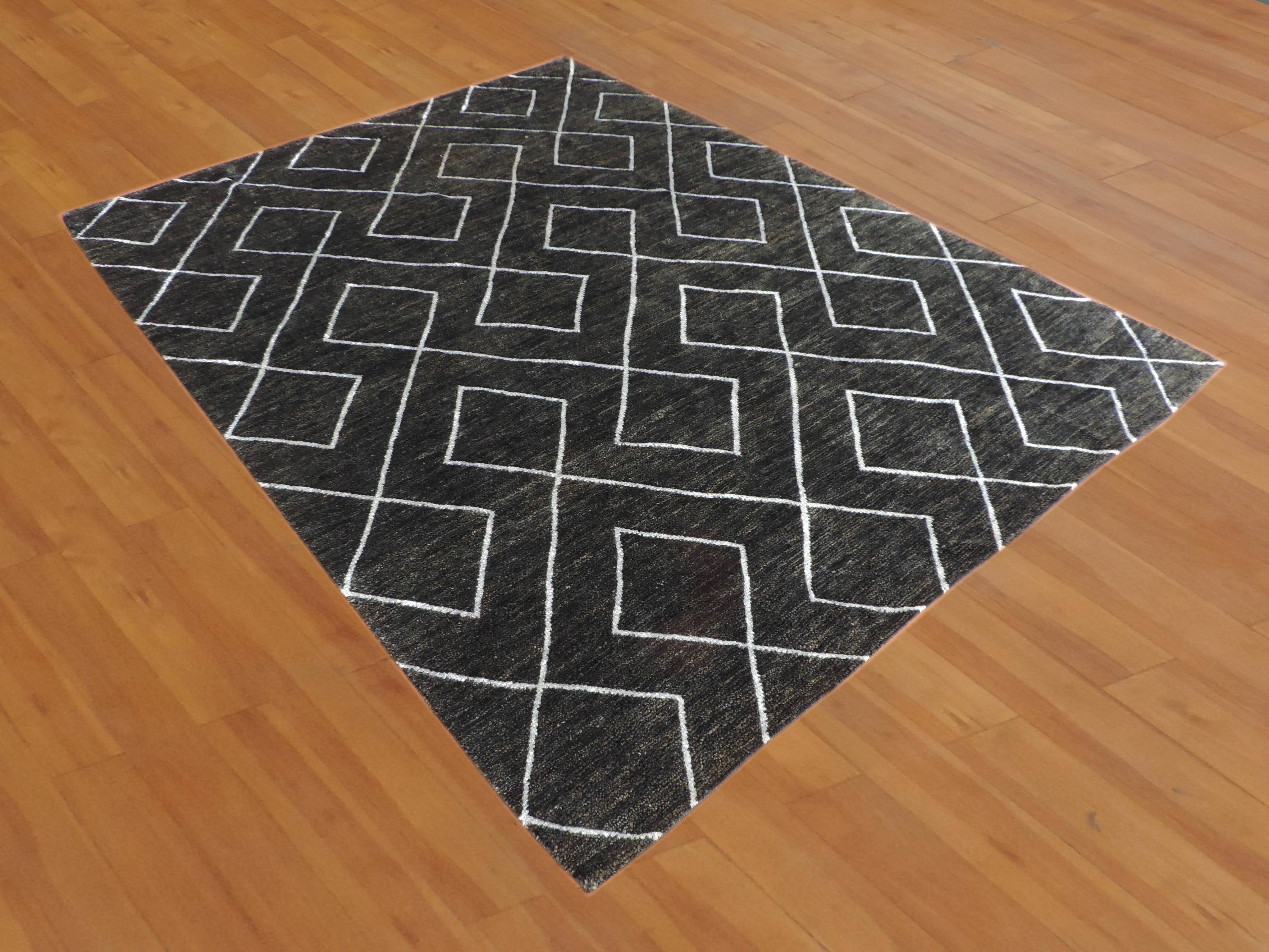 The Koko-2448 Moroccan Modern rug, hand-knotted from premium wool, exemplifies exquisite craftsmanship and contemporary appeal. Boasting an enchanting geometric design set against a bold black backdrop, this rug will enhance any space with charm and sophistication. Take home this rectangular oriental treasure, now at a fantastic sale price, and enjoy the warmth and style of Morocco in your living space.