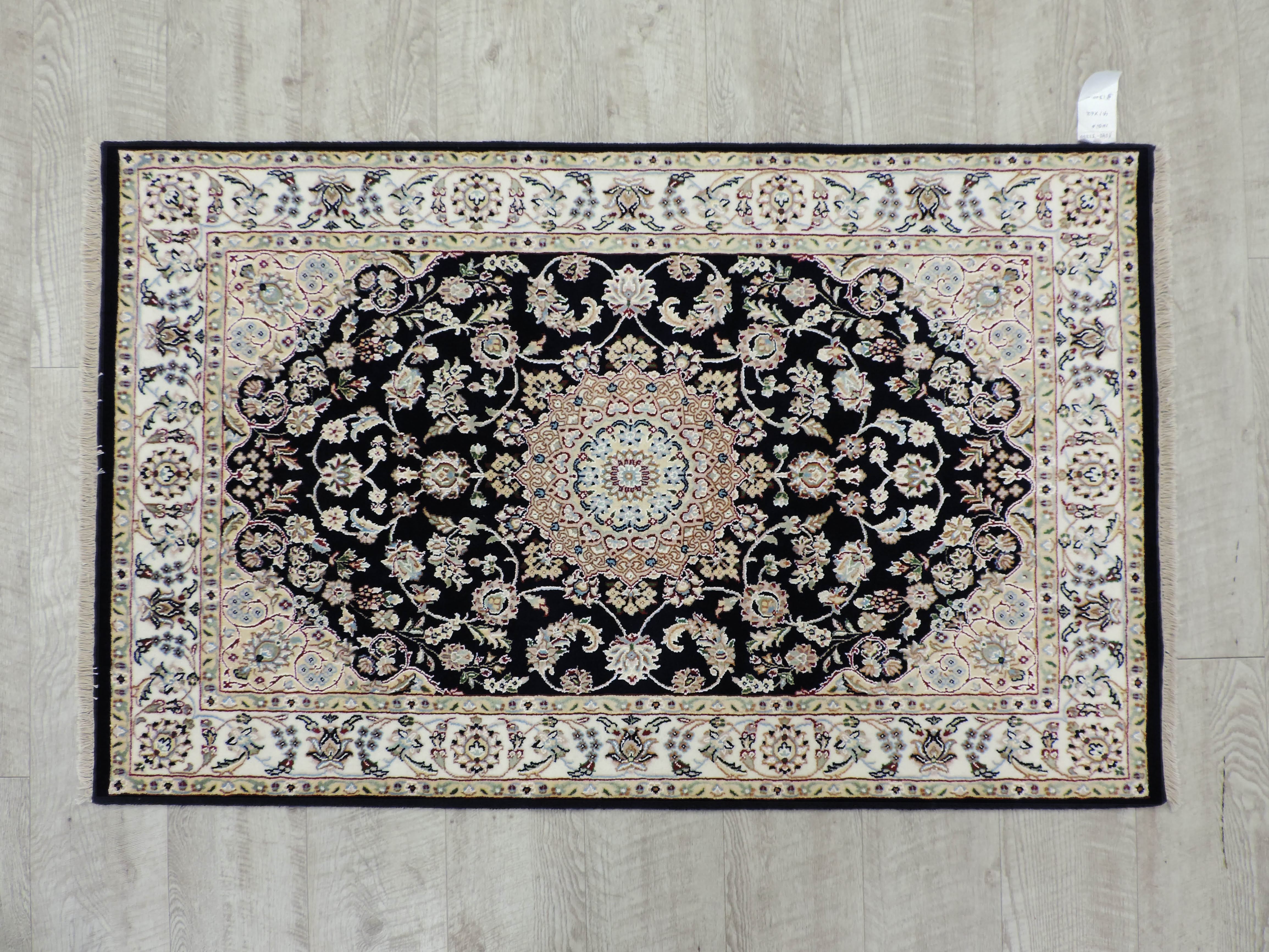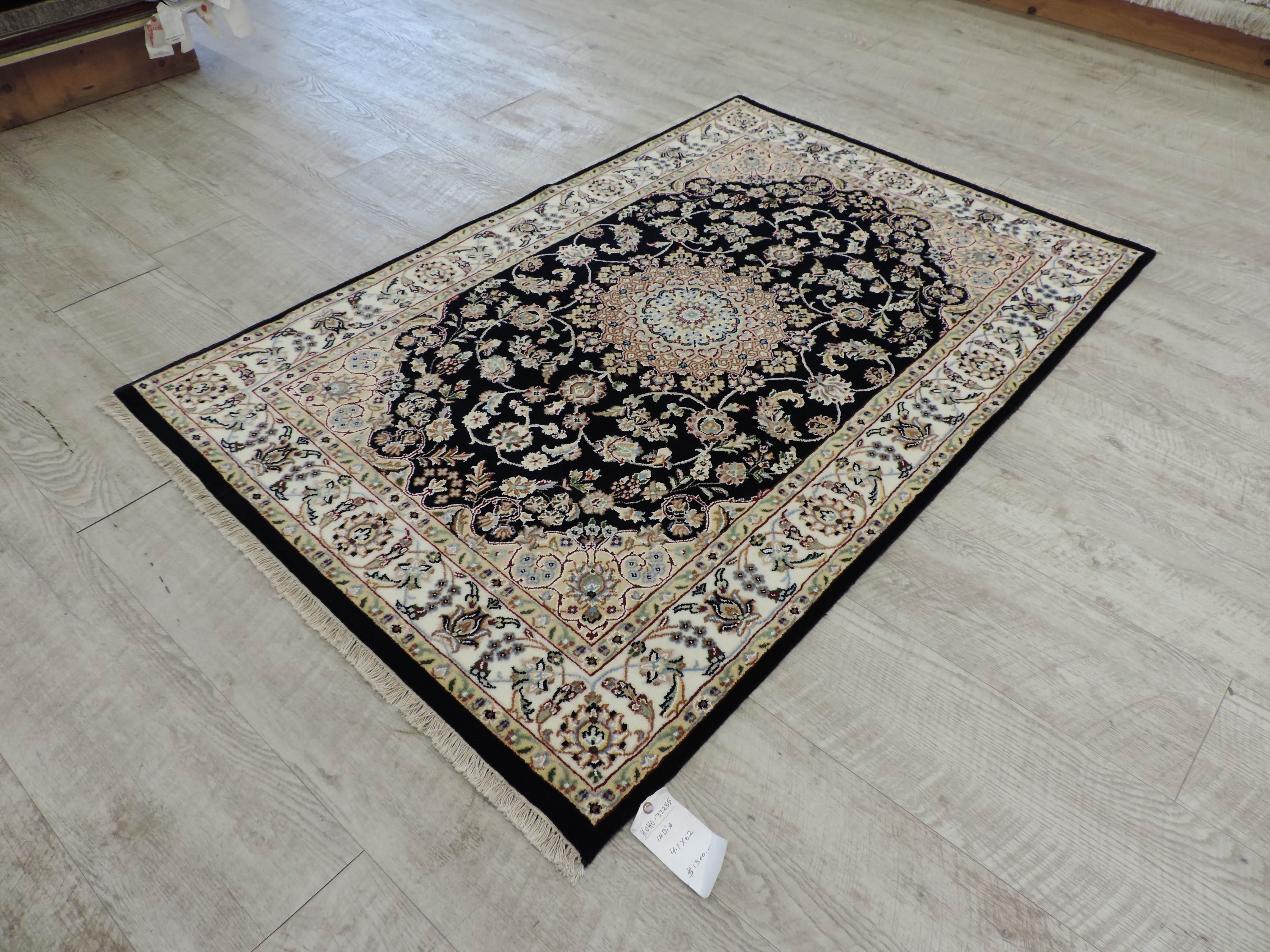Experience the charm of the east with the KOKO-32255 Tabriz rug. Skillfully hand-knotted in India from premium wool with a cotton foundation, this rug showcases a stunning black floral design, giving it a regal allure. Measuring 4.1 x 6.2 feet, this rectangular gem adds an unparalleled level of sophistication to any room, and now at half price, it's a steal you don't want to miss out on.