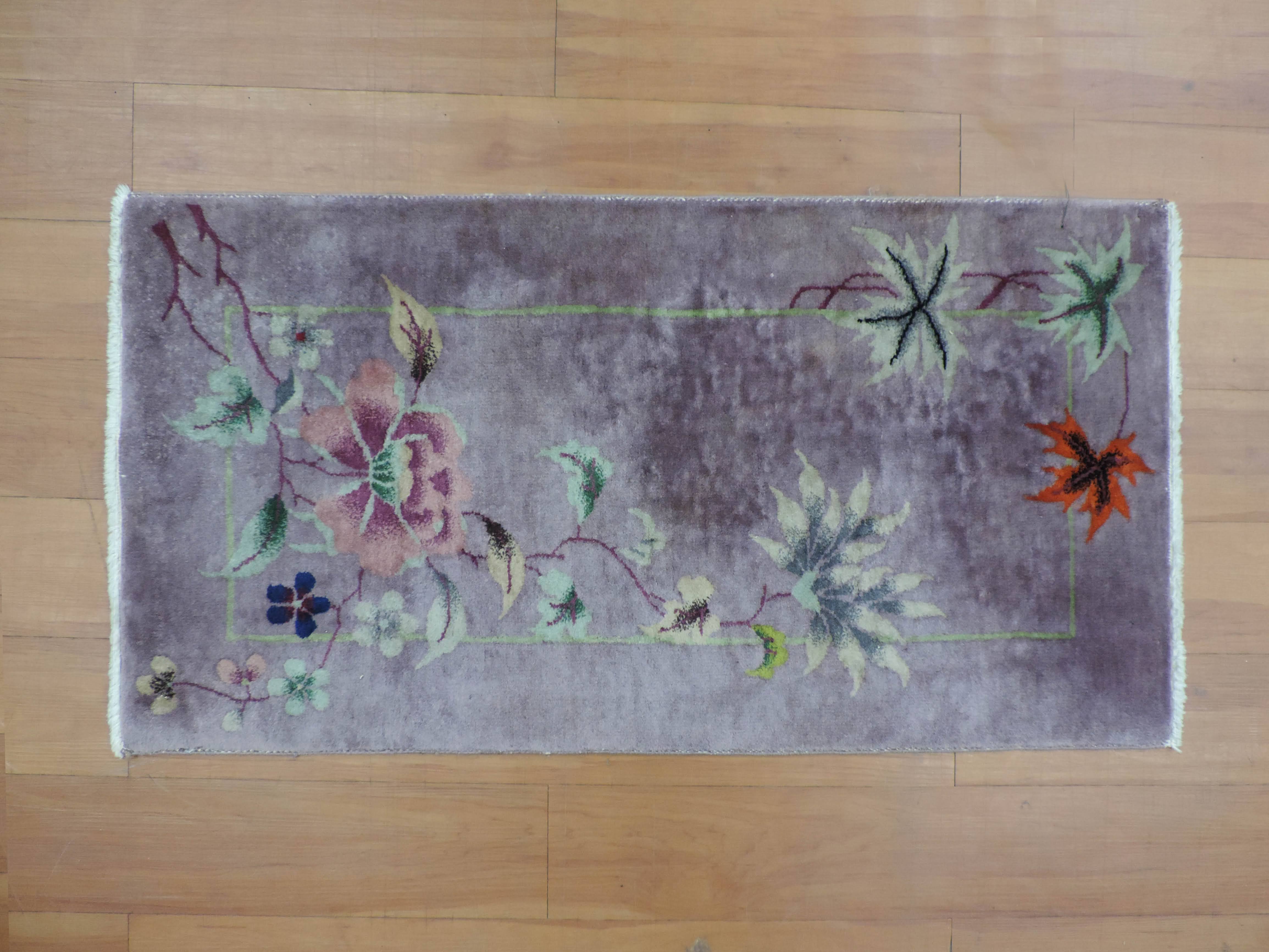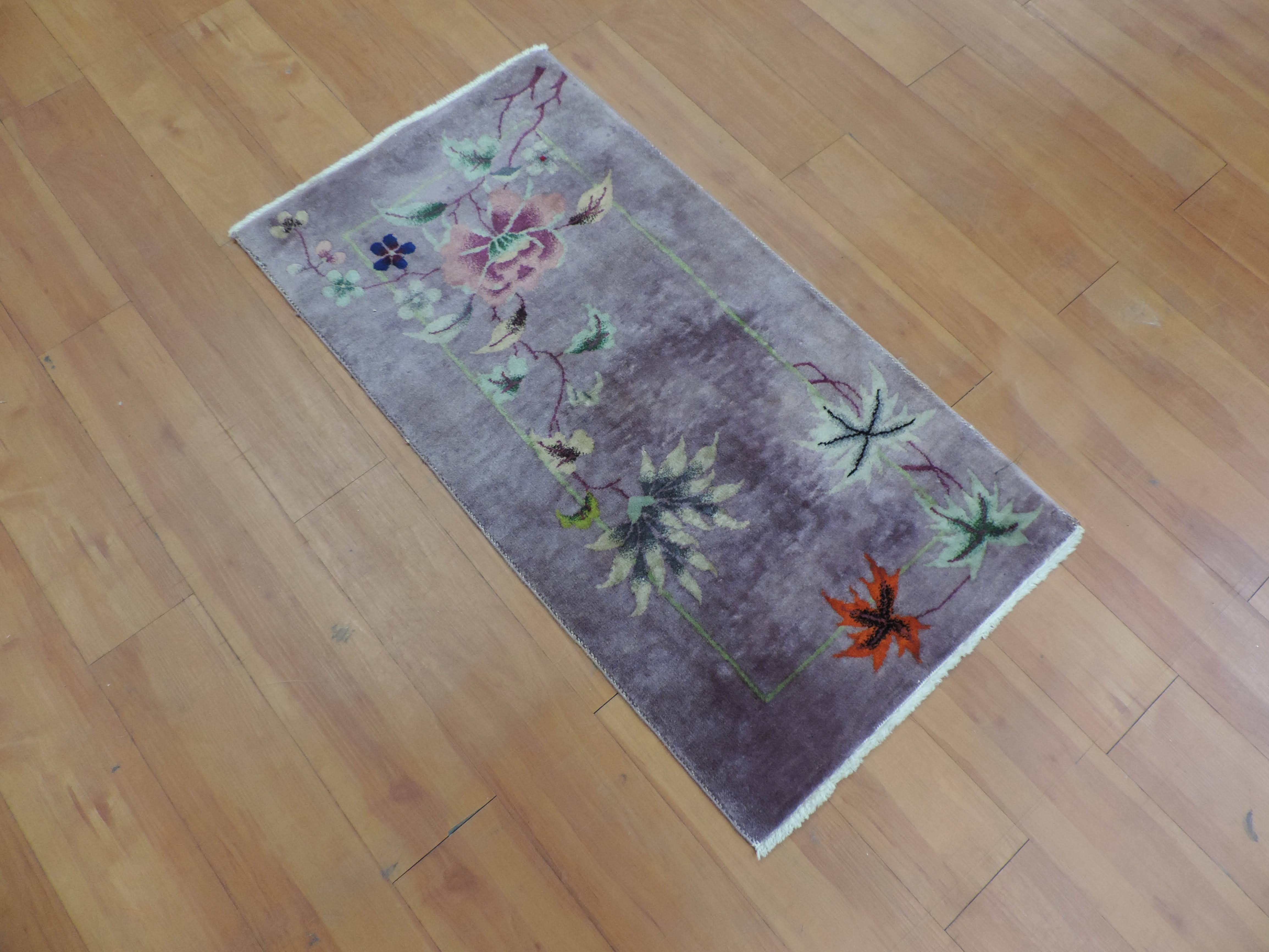 Discover the allure of the East with this exquisite hand-knotted oriental rug (Koko-328). Crafted in China from pure wool with a cotton foundation, this rectangular rug boasts a stunningly intricate floral design in captivating hues of purple. Now available for just $1000, grab this unique piece of history dating back to 1930 and elevate your living space with its timeless elegance and exceptional quality.