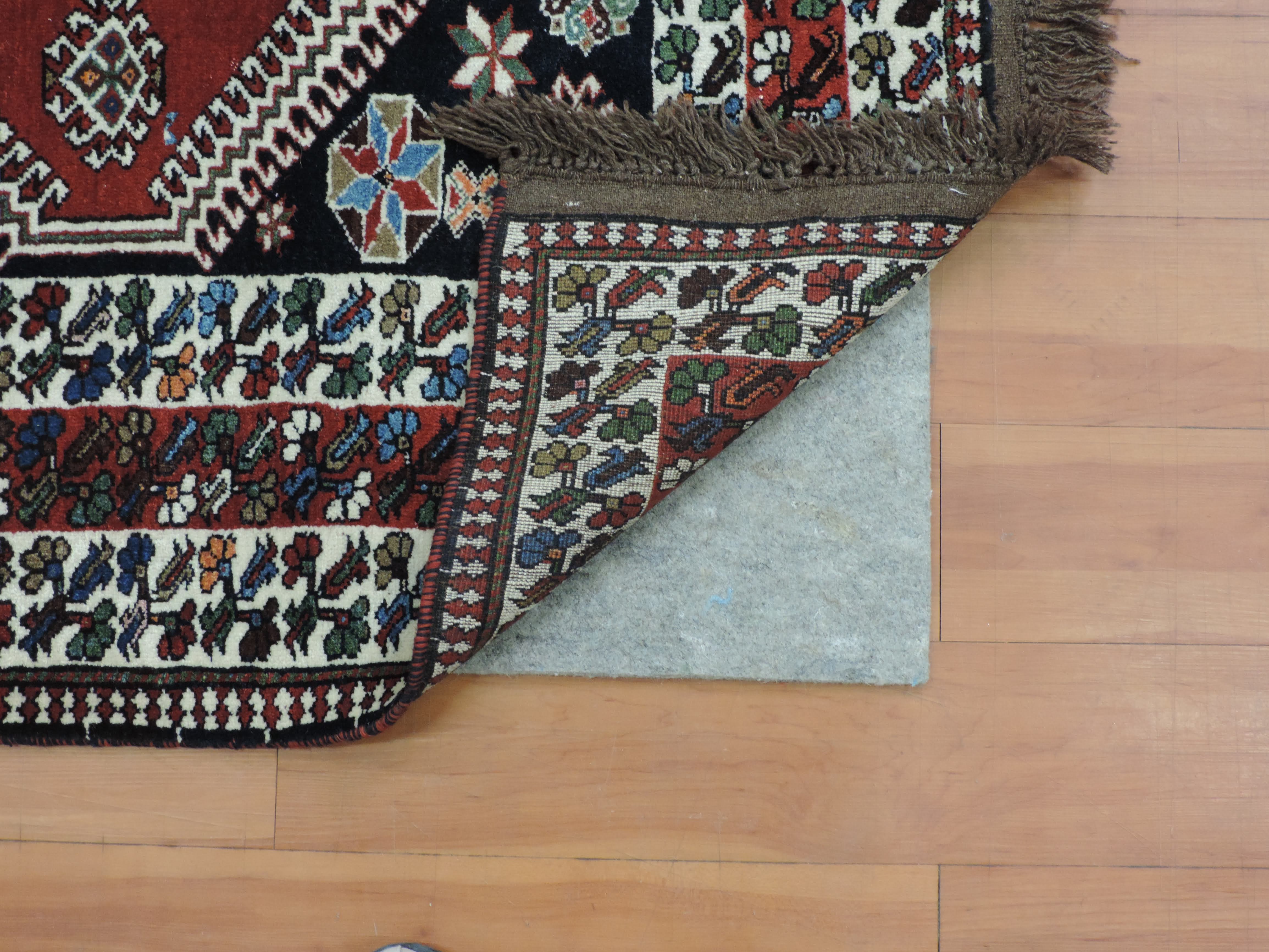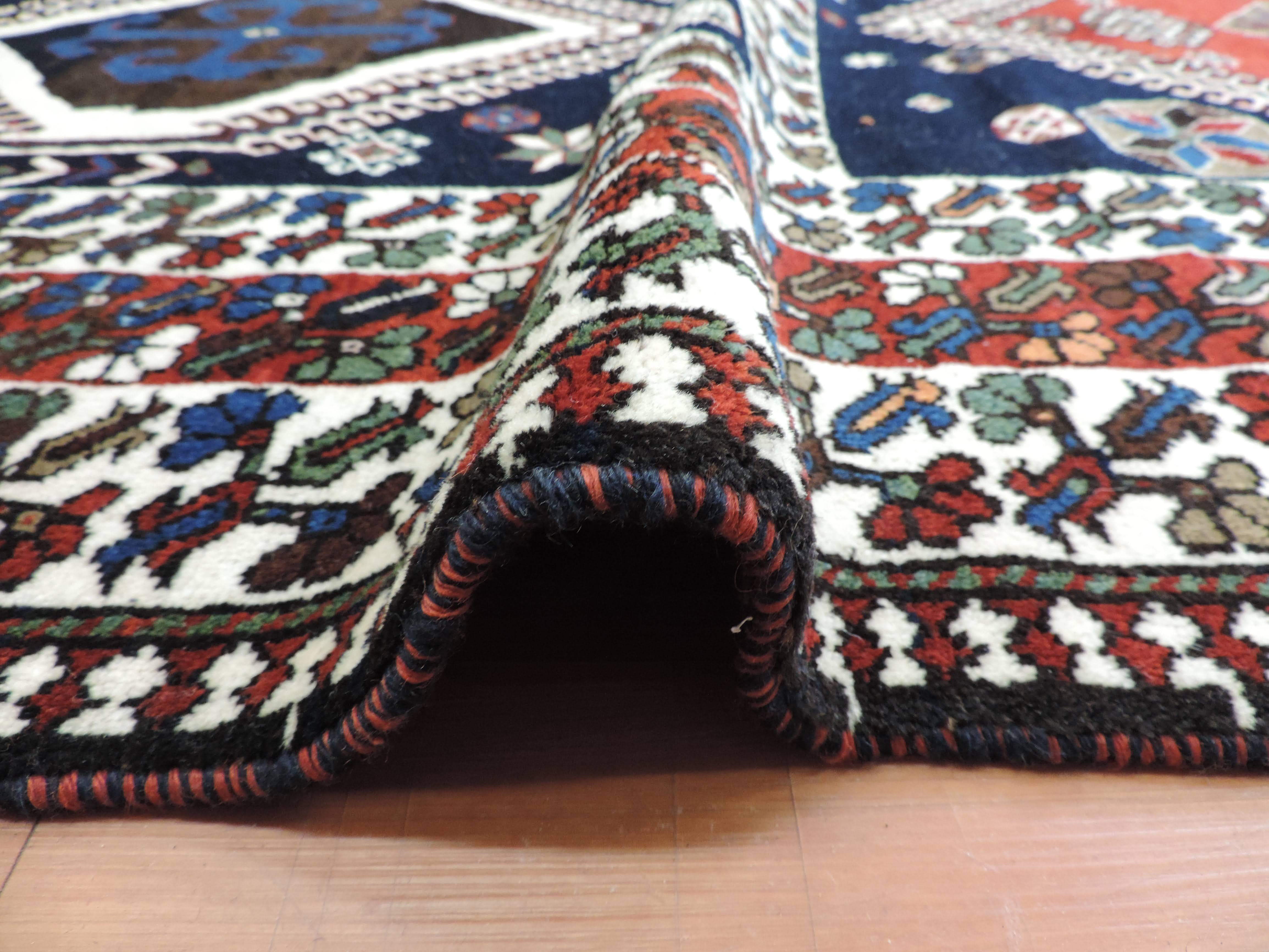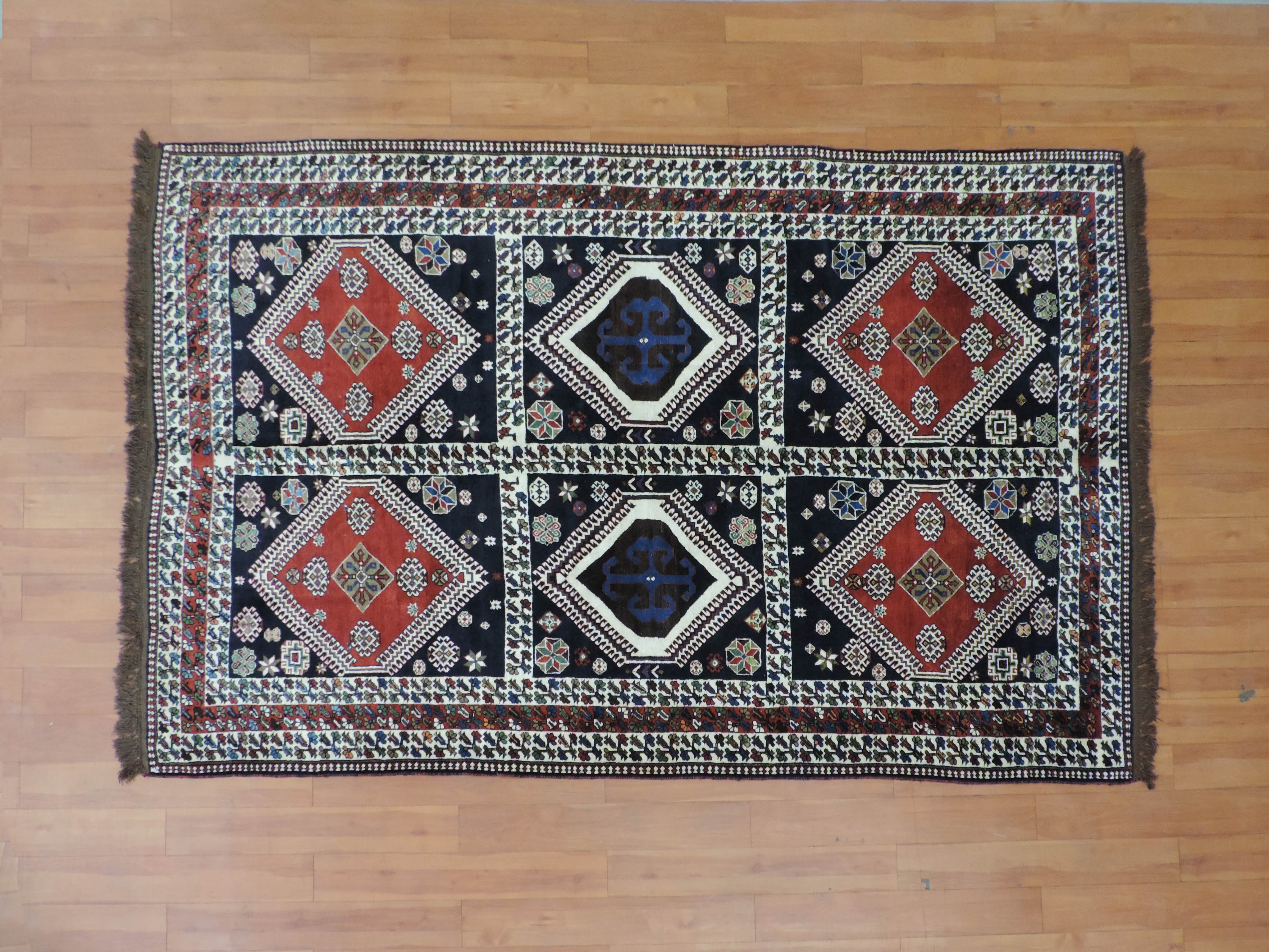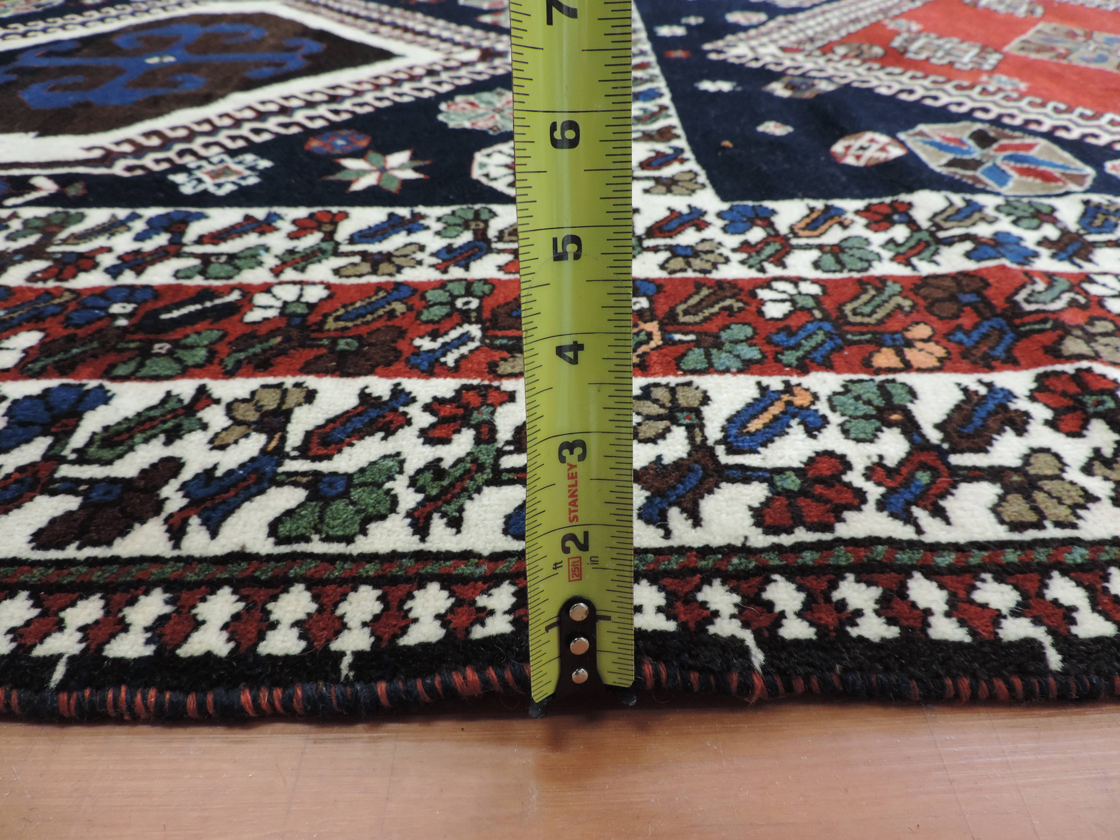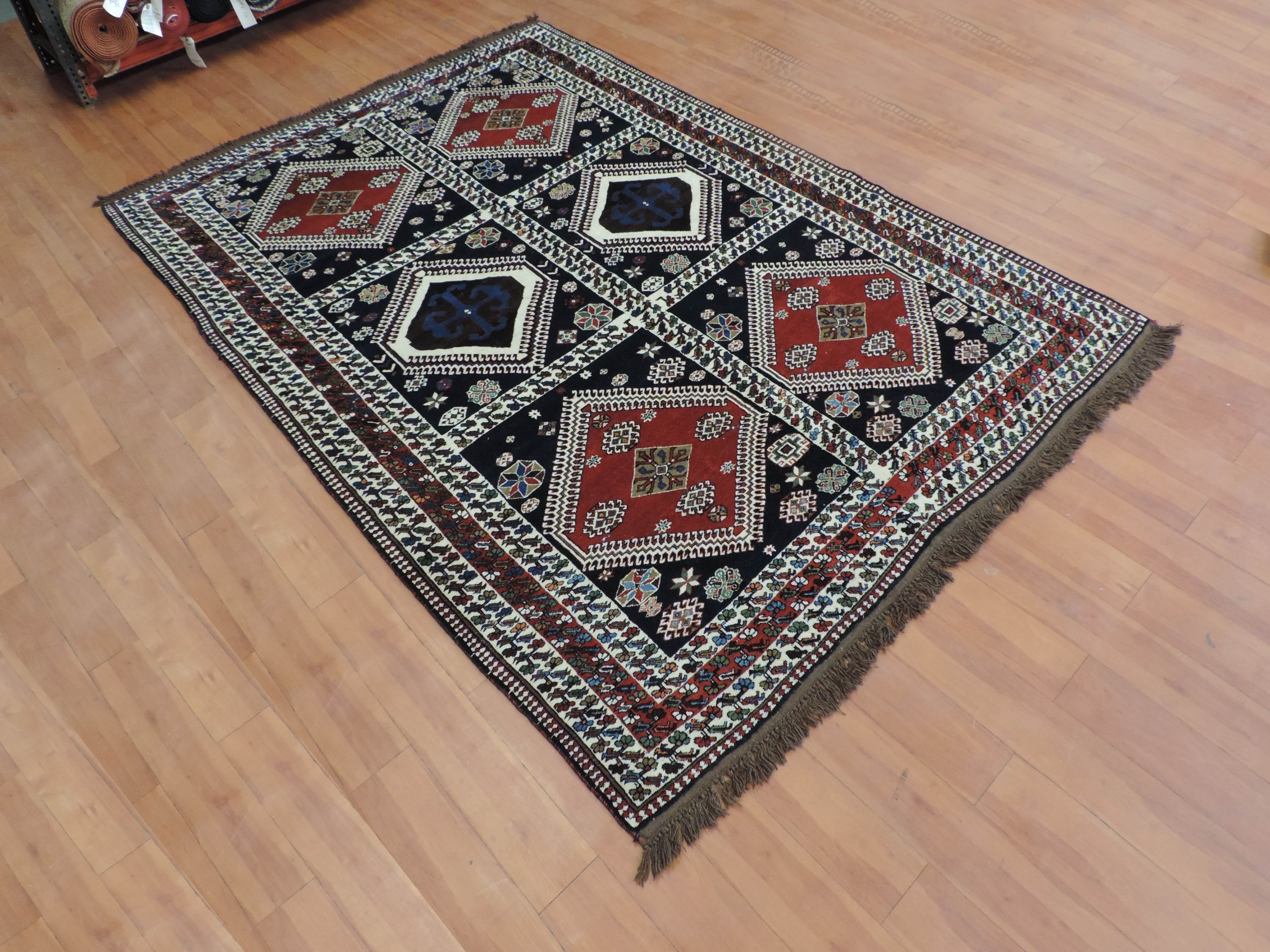 Add a touch of vintage elegance to your home with our exquisite Yalemeh rug (koko-350). This hand-knotted wool masterpiece, originating from Iran, boasts a bold geometric design rendered in a striking black color that will instantly elevate any living space. At a significantly reduced price, this rare 1970's rectangular rug, measuring 7.0ft wide and 10.9ft long, offers both unmatched quality and style.
