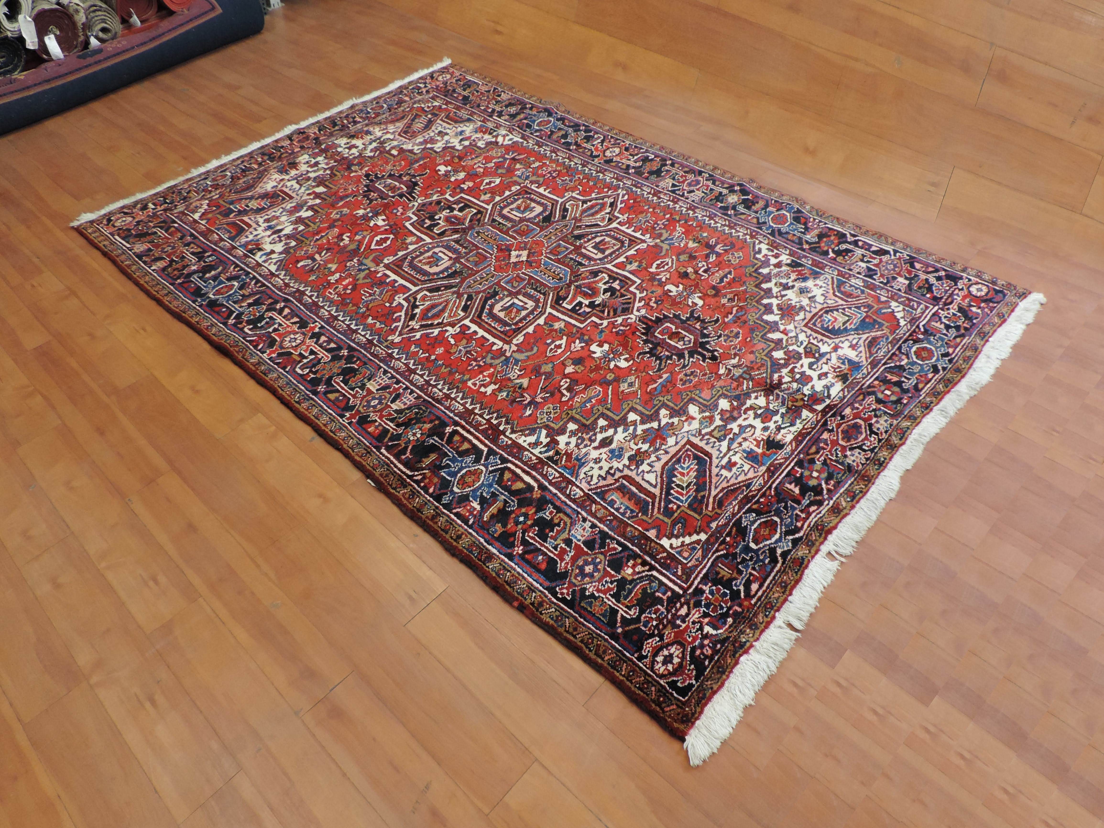 Presenting the koko-357, a rare antique Herez rug hailing from Iran. This hand-knotted gem, crafted from wool with a cotton foundation, features a captivating geometric design set against a vibrant red backdrop. At a generous 7.0 x 10.0 size, it will make a striking statement in any space. Now available at a once-in-a-lifetime price, this rectangular beauty effortlessly blends traditional craftsmanship with timeless style.
