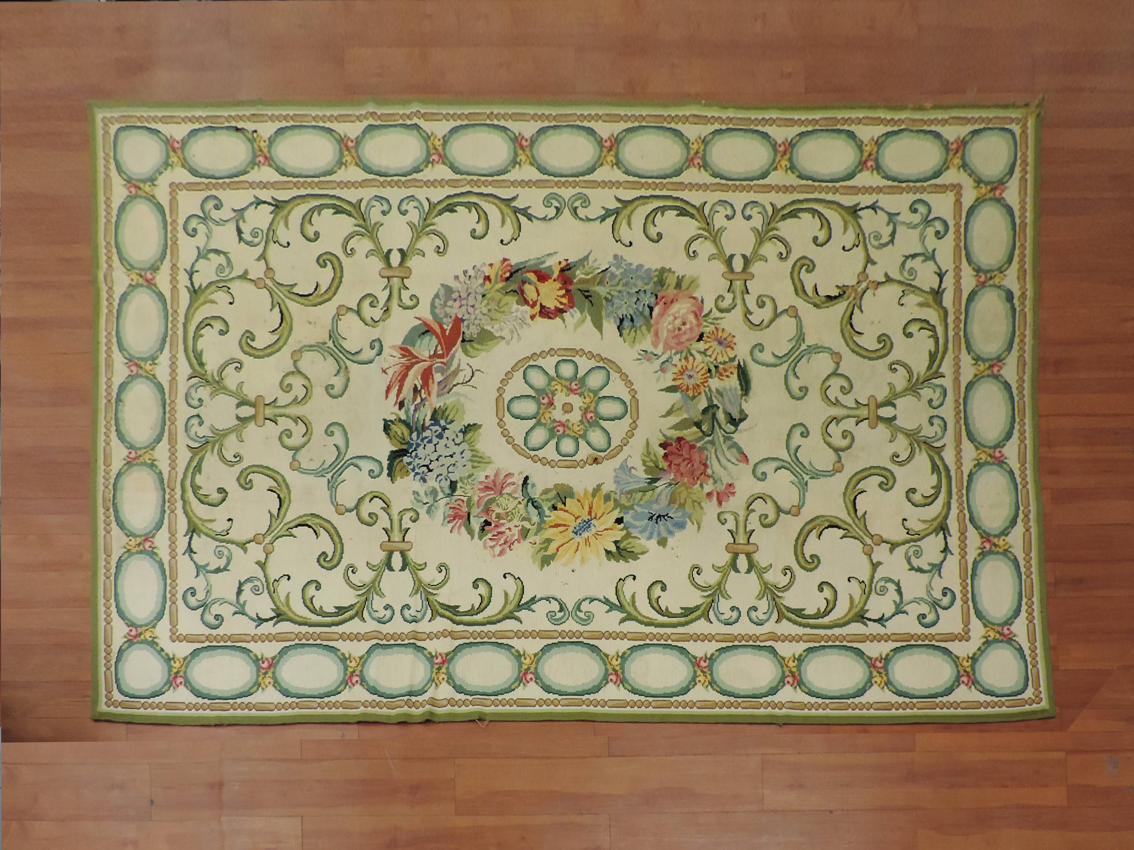 Immerse yourself in the timeless elegance of our koko-369 floral rug. Expertly hand-knotted in Portugal from soft, durable wool, this antique rug boasts a gorgeous ivory color and intricate floral design that exudes classic European charm. Offering a spectacular 50% off, this exquisite 8.6x12.3 ft rectangular masterpiece is an exclusive addition to any decor.