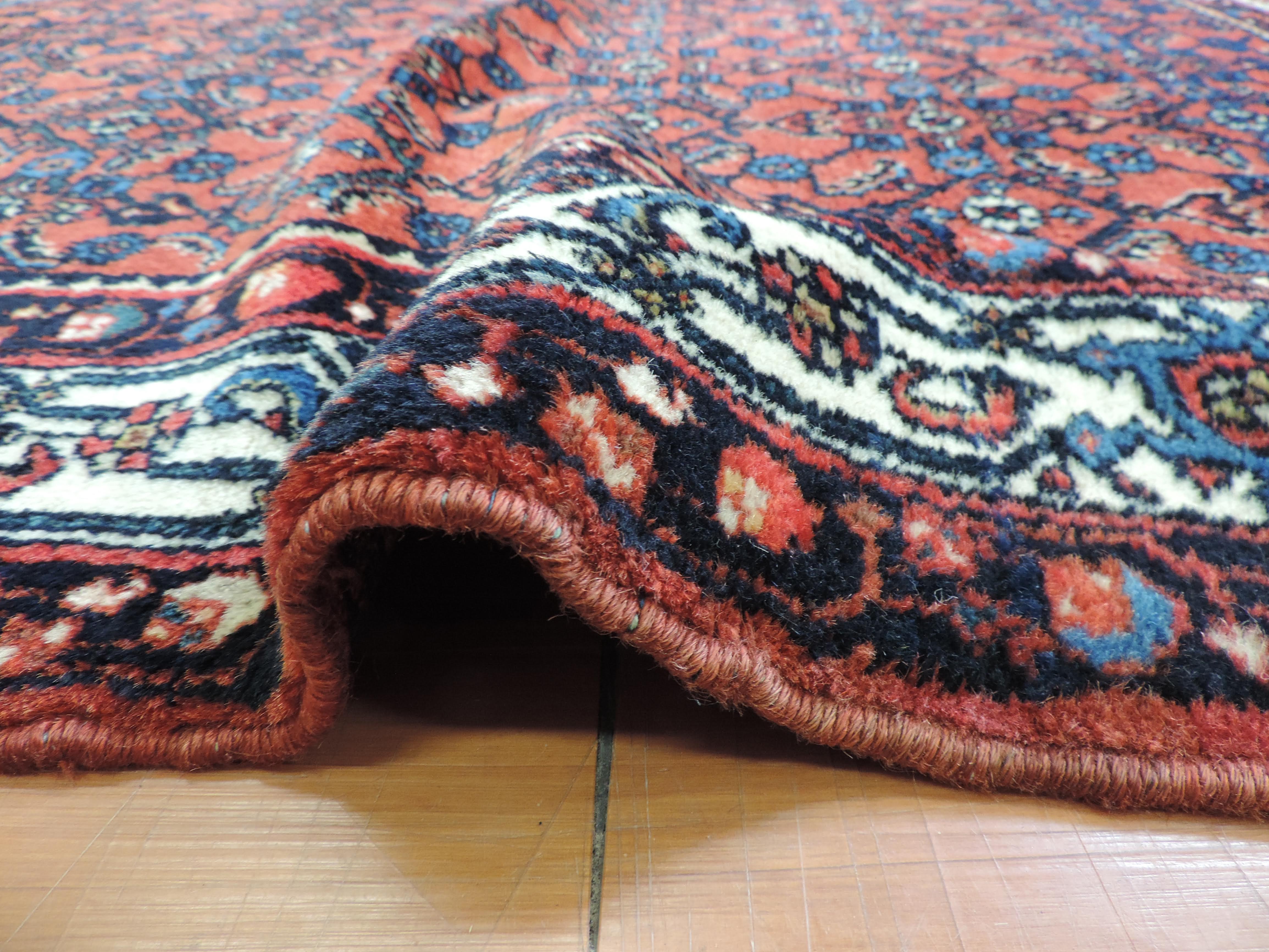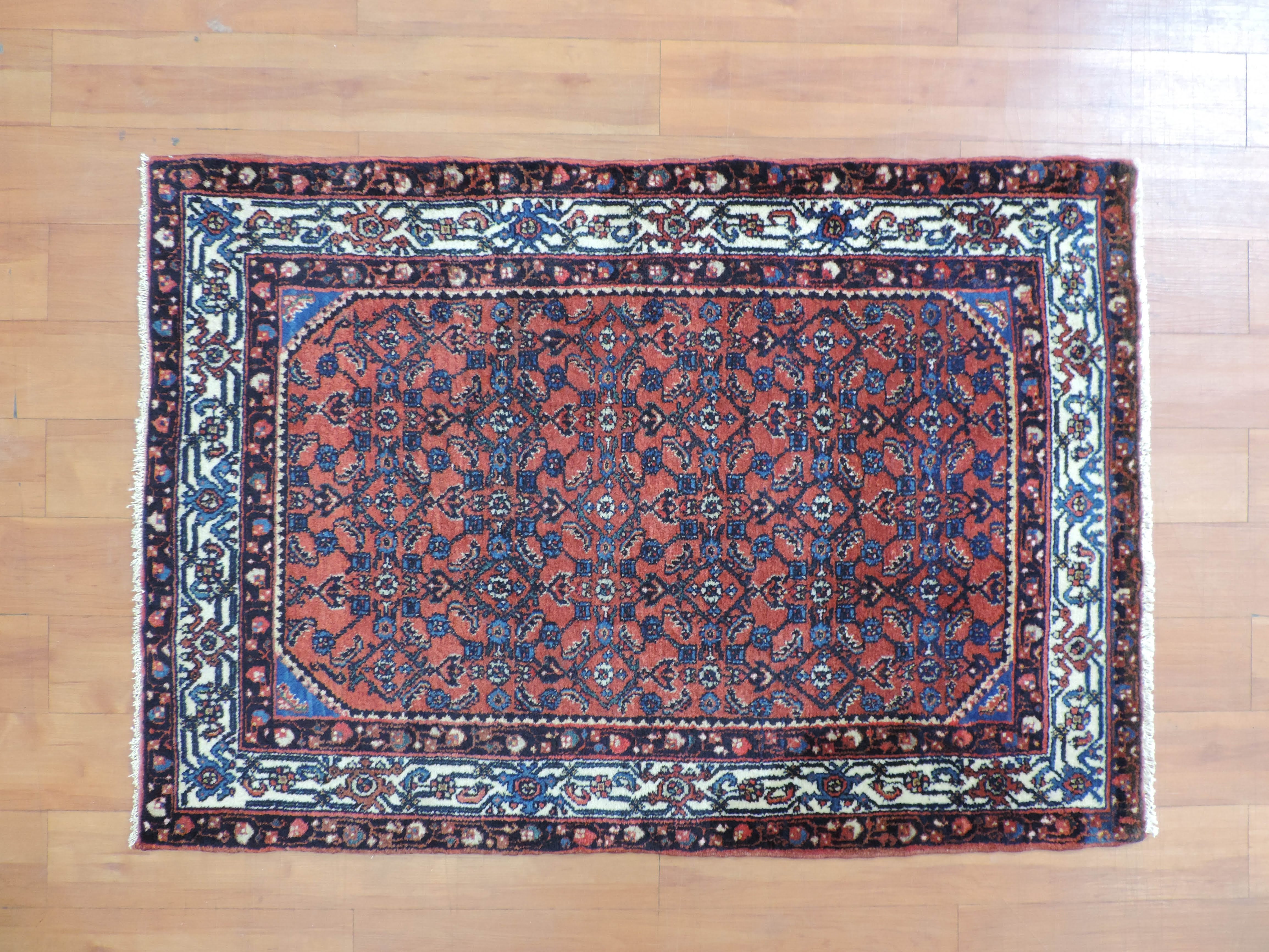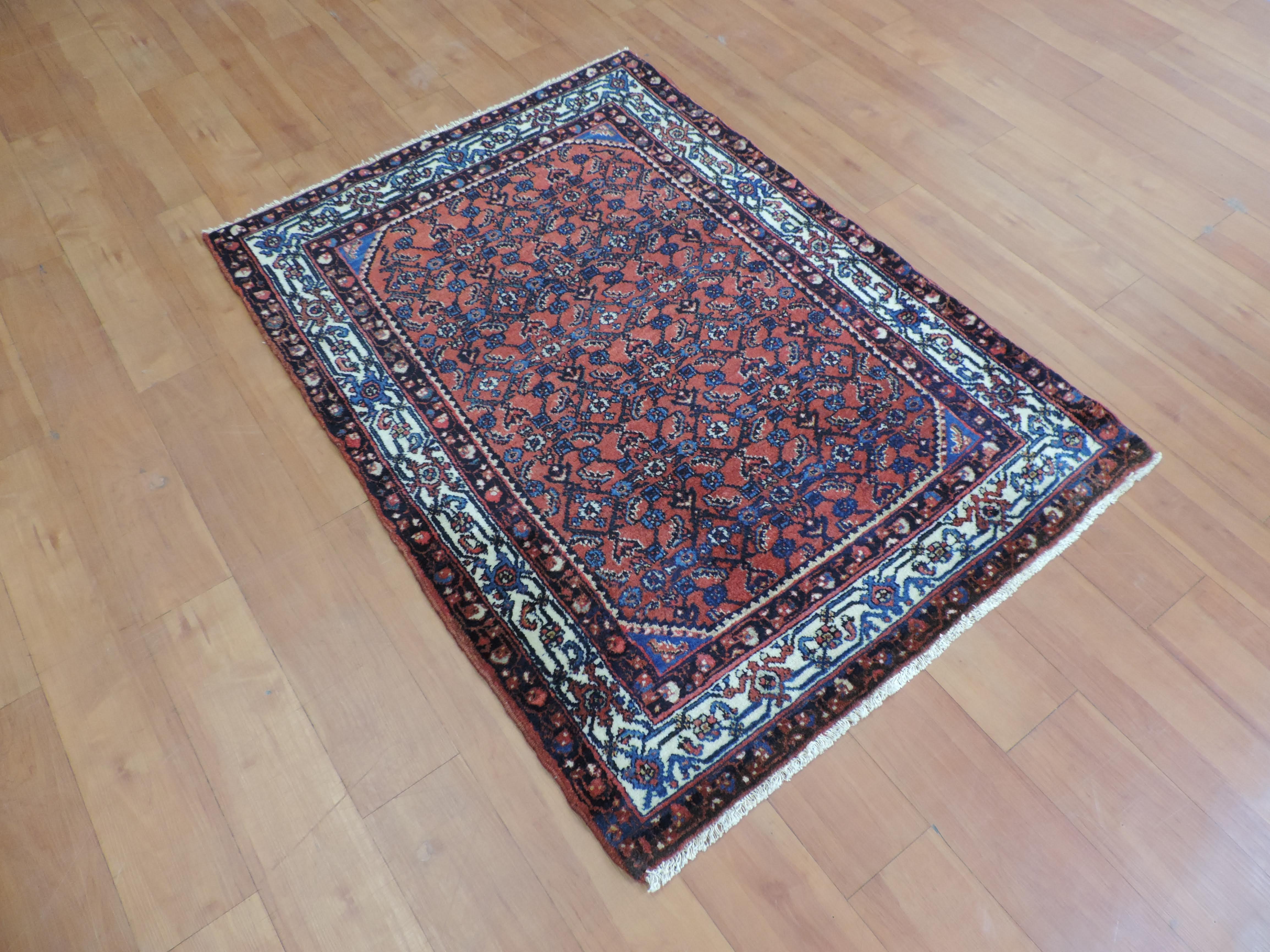 Step back in time with the captivating beauty of this Engeles oriental rug. Hand-knotted in Iran from wool with a cotton foundation, this antique piece exudes timeless elegance with its geometric design in a warm, rust hue. Now available at a special price, this rectangular heirloom, dating back to 1930, offers an exotic touch of history and allure to any space.