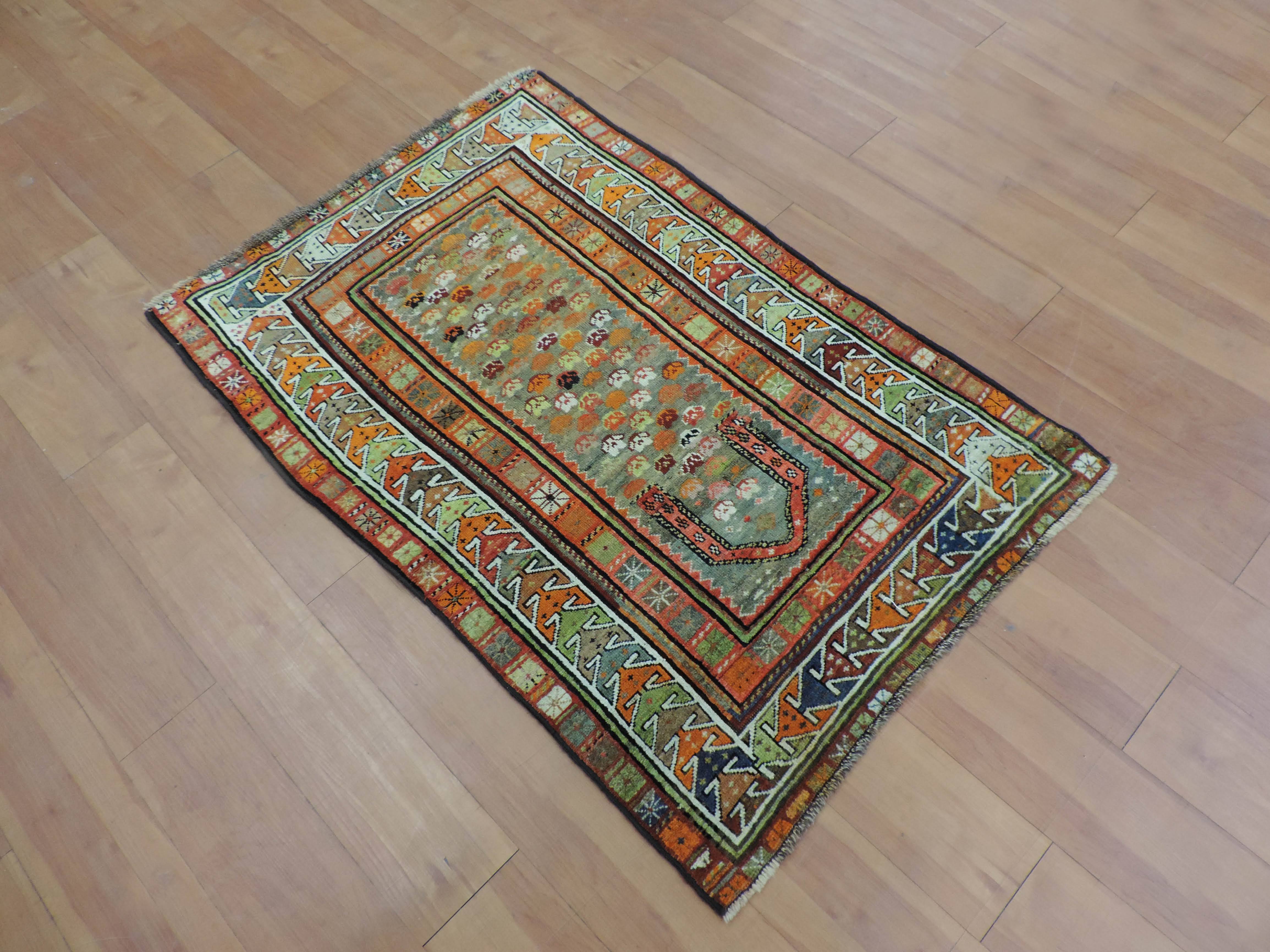 Indulge in the grandeur of the past with this exquisite antique Prayer rug (koko-499), hand-knotted in the Caucasus and expertly crafted from high-quality wool. Its captivating geometric design complements its versatile gray hues, while its rectangular shape adds a touch of classic elegance. Now available at a special sale price, this one-of-a-kind piece is ready to elevate your space and become a cherished part of your home.