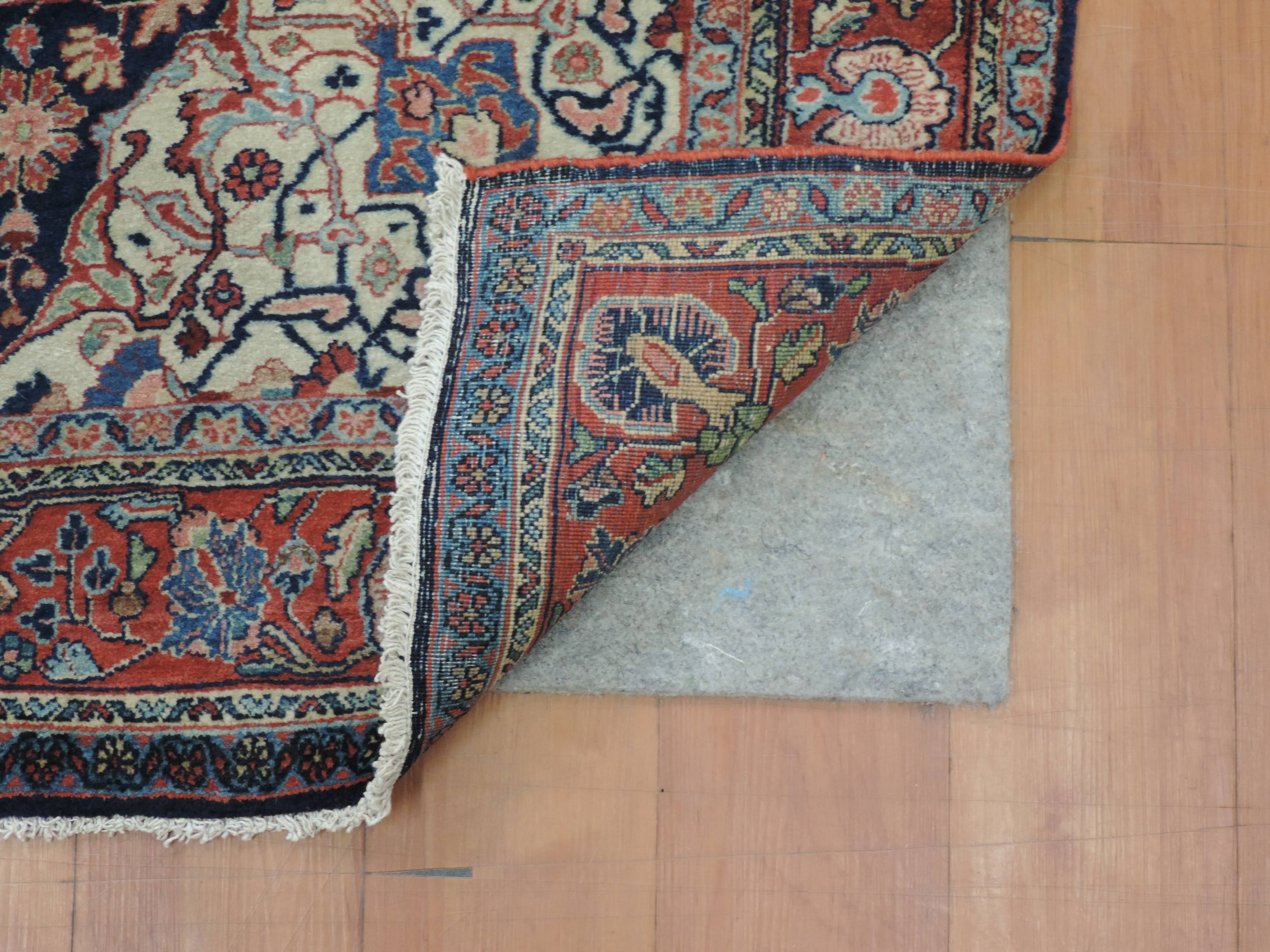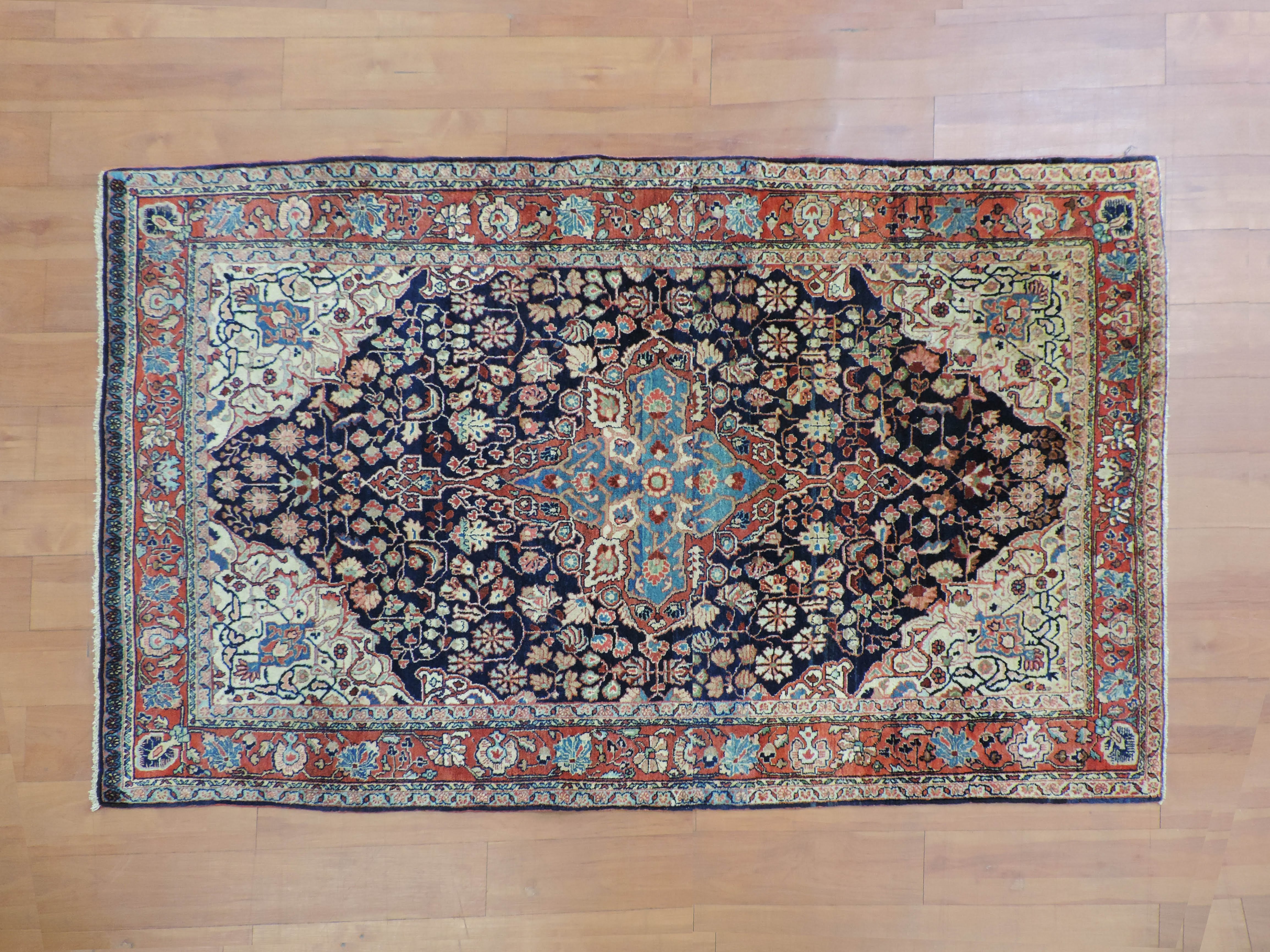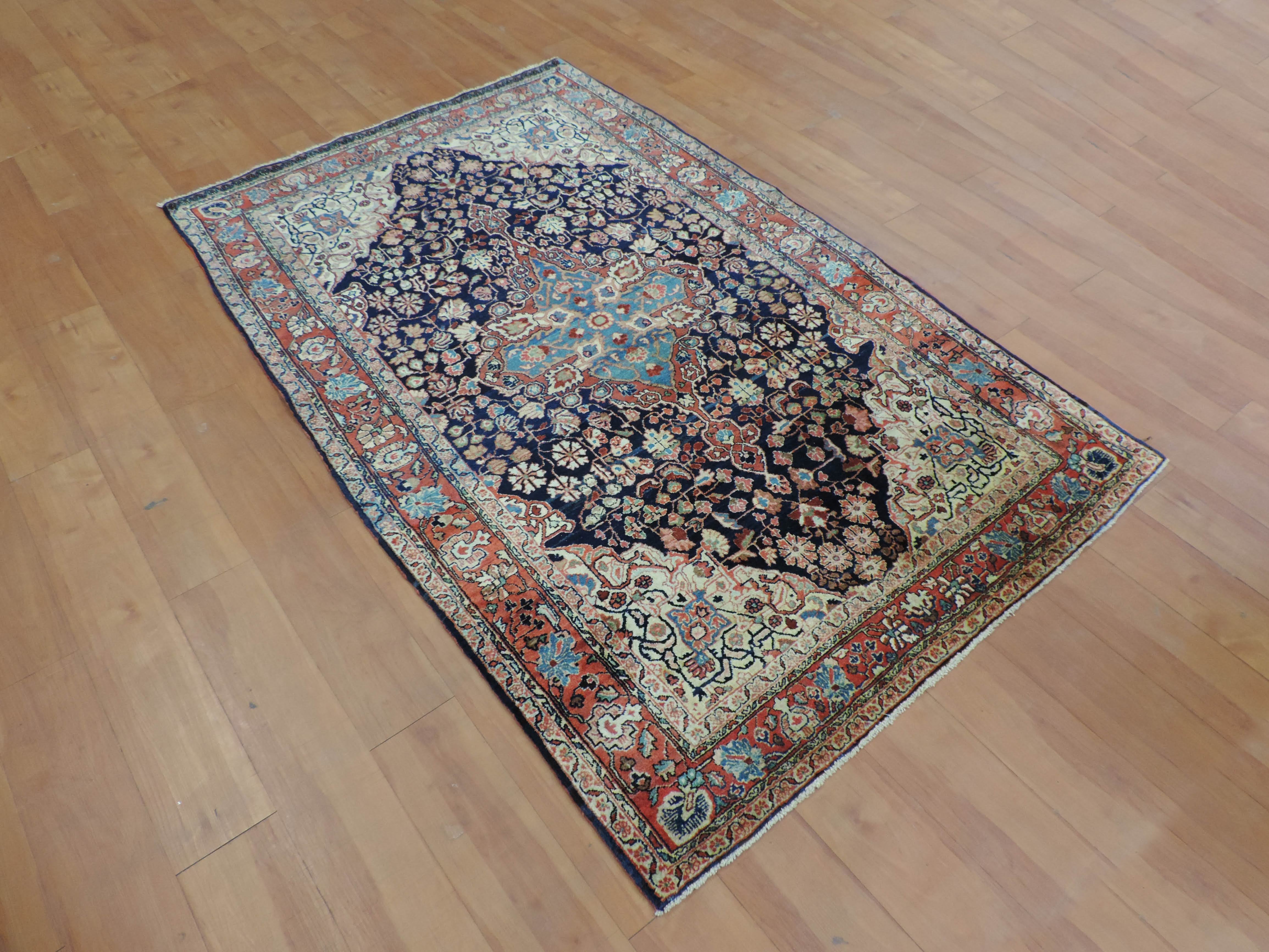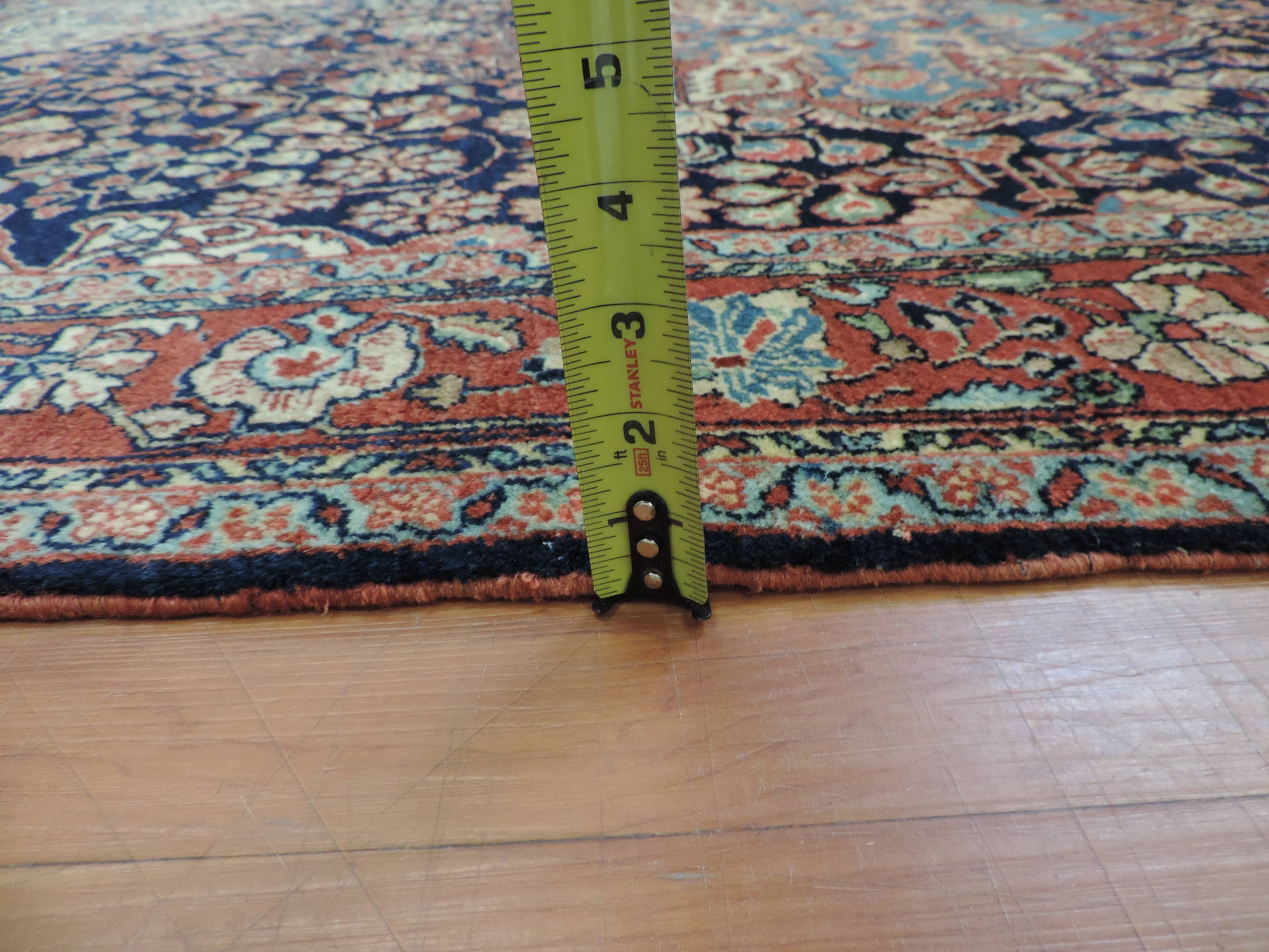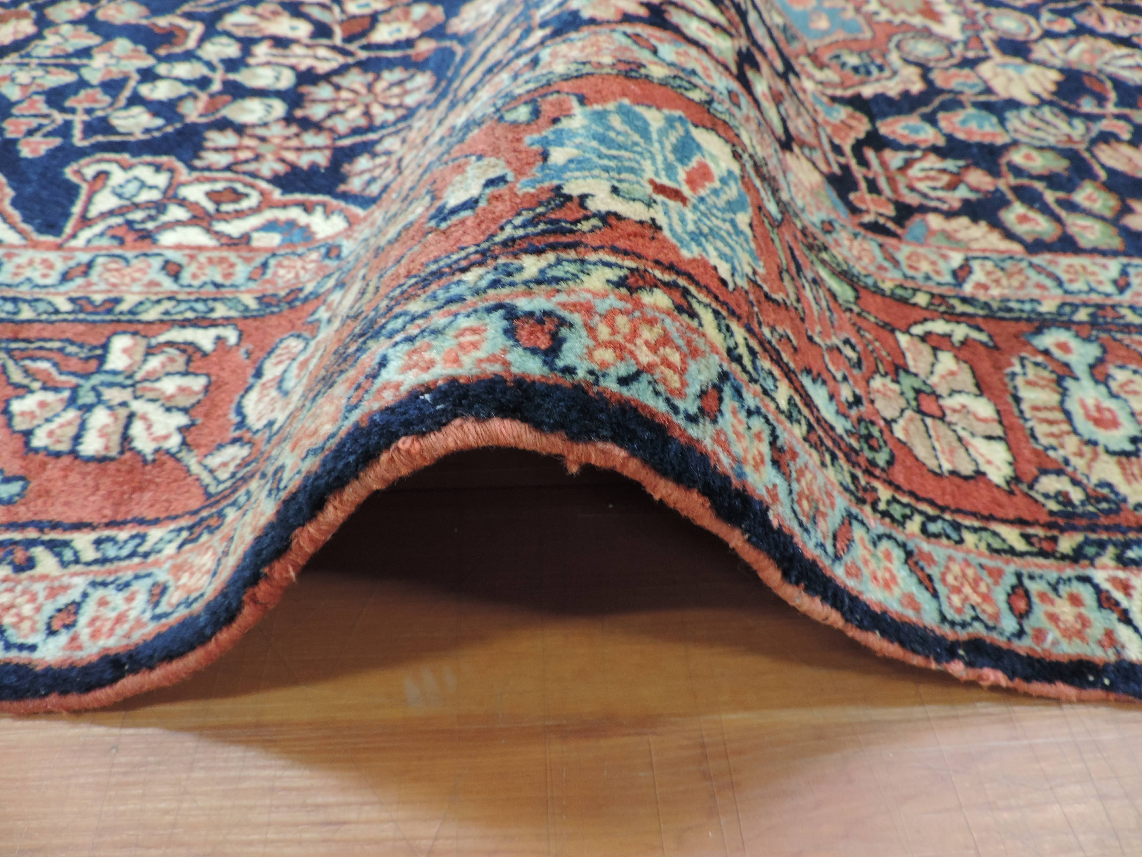 Experience the vintage charm and timeless elegance of our Antique Jozan Rug, code koko-508. Hand-knotted in Iran using quality wool, this stunning rug features intricate floral designs on a captivating navy backdrop, promising to transform any space into an oriental wonderland. Featuring a sale price of $3050, secure this one-of-a-kind piece today and revel in its rich heritage and exquisite craftsmanship.