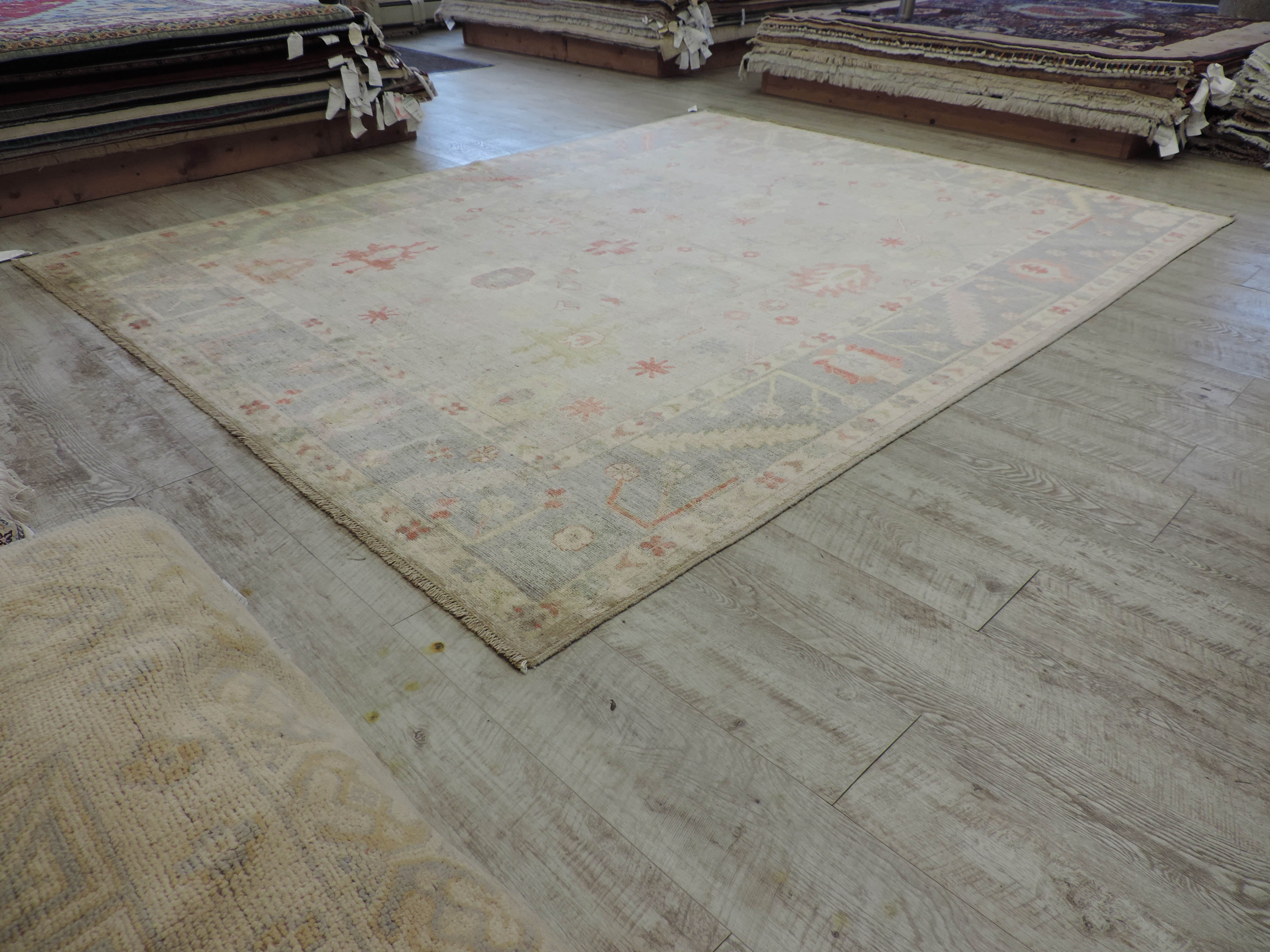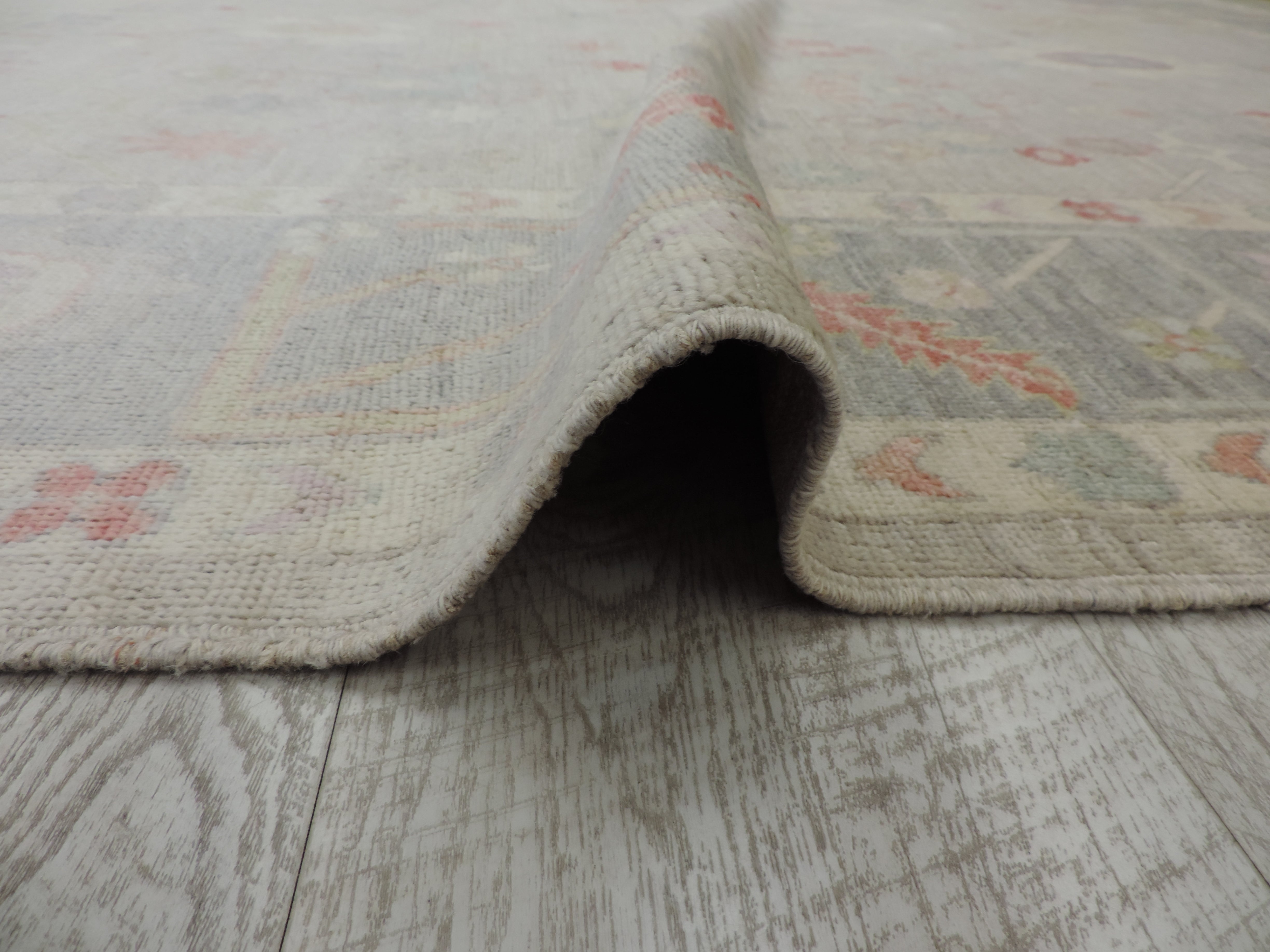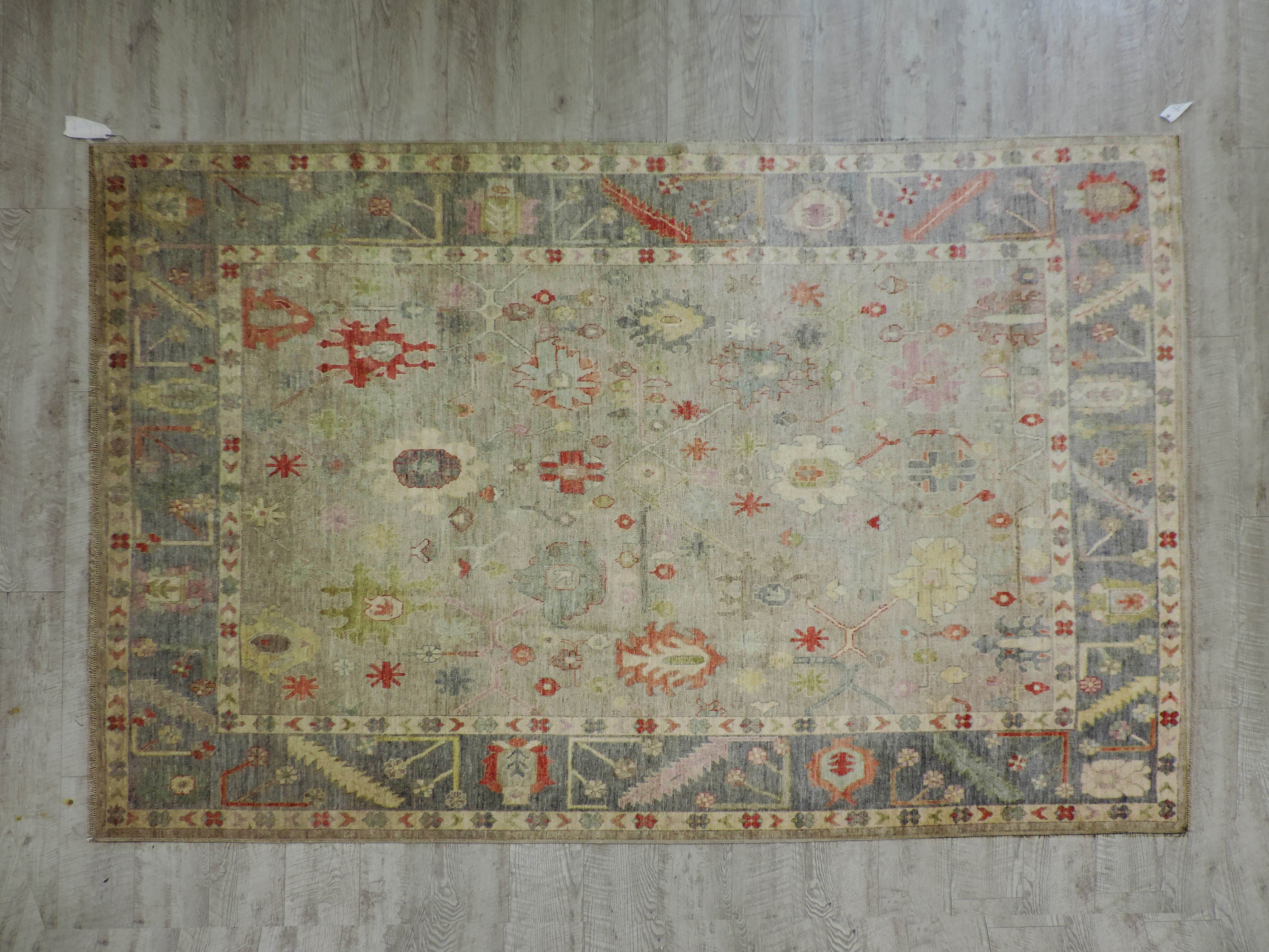 Experience the fusion of luxury and style with our KOKO-54534 Oushak rug. Hand-knotted from high-quality wool, this rug boasts an intricate geometric pattern set against a soothing gray base, offering a modern twist to a classic Oriental design. With its generous dimensions and exceptional craftsmanship, it's more than just a rug—it's a conversation starter, now at an unbeatable sale price.