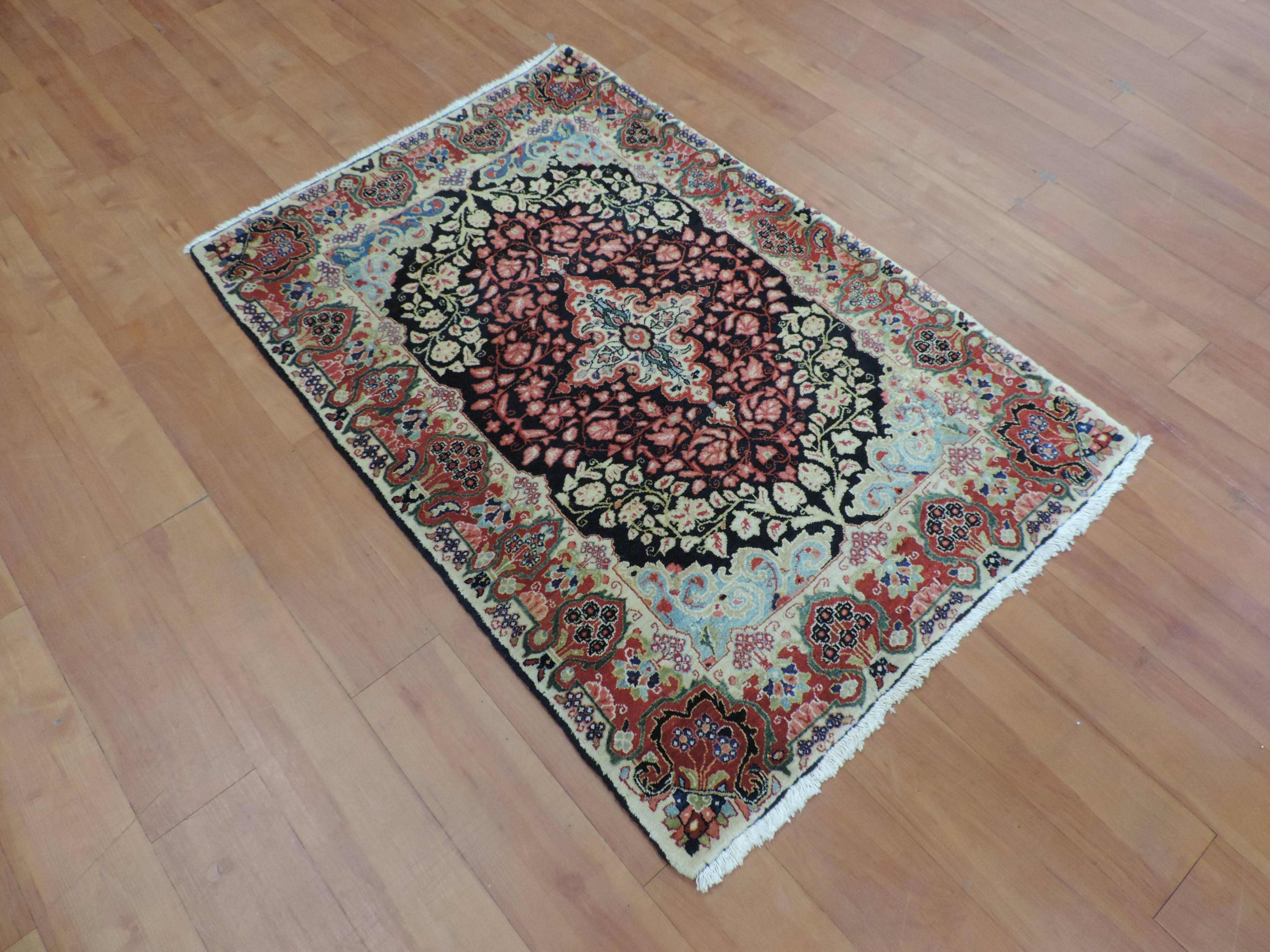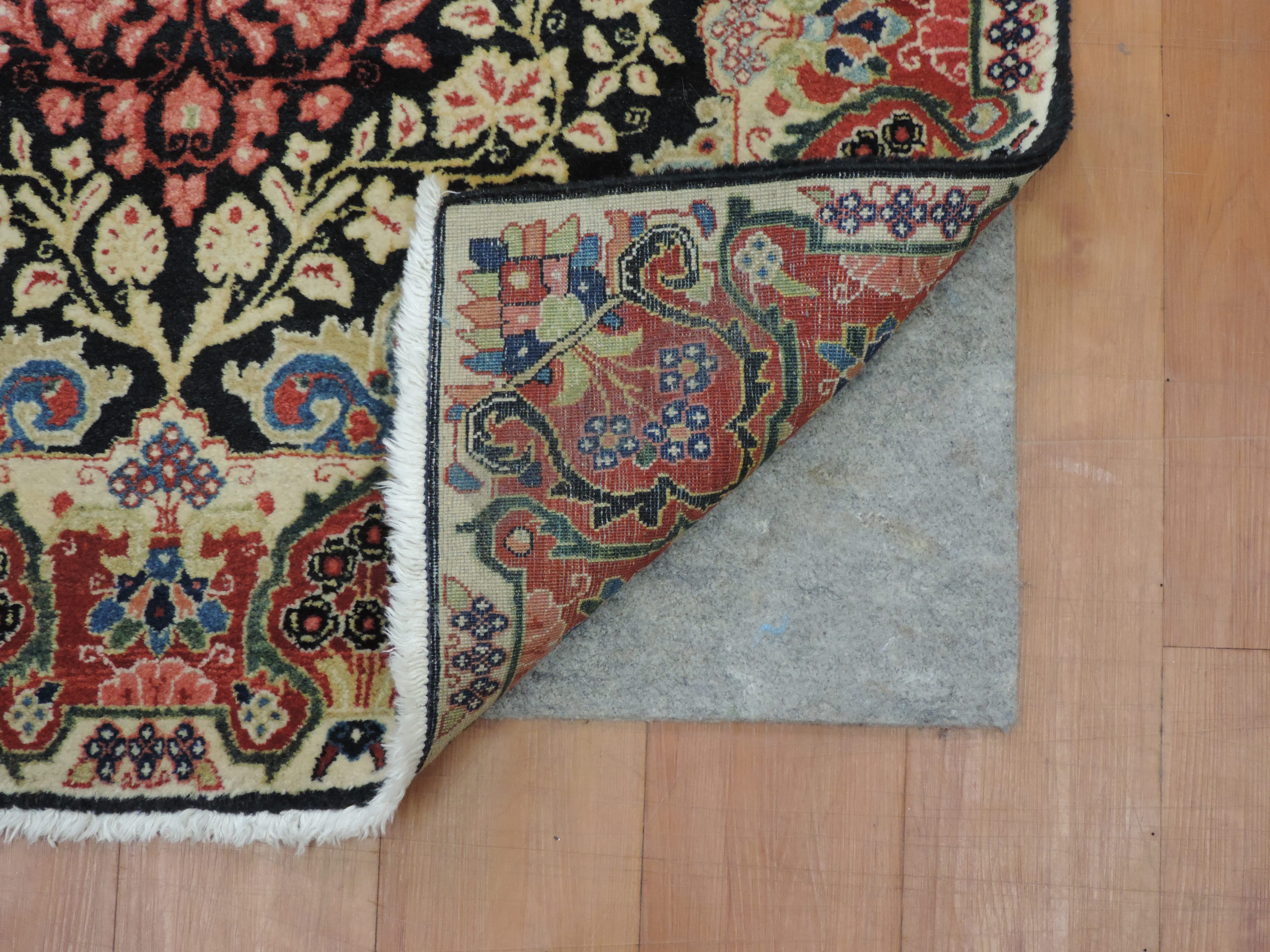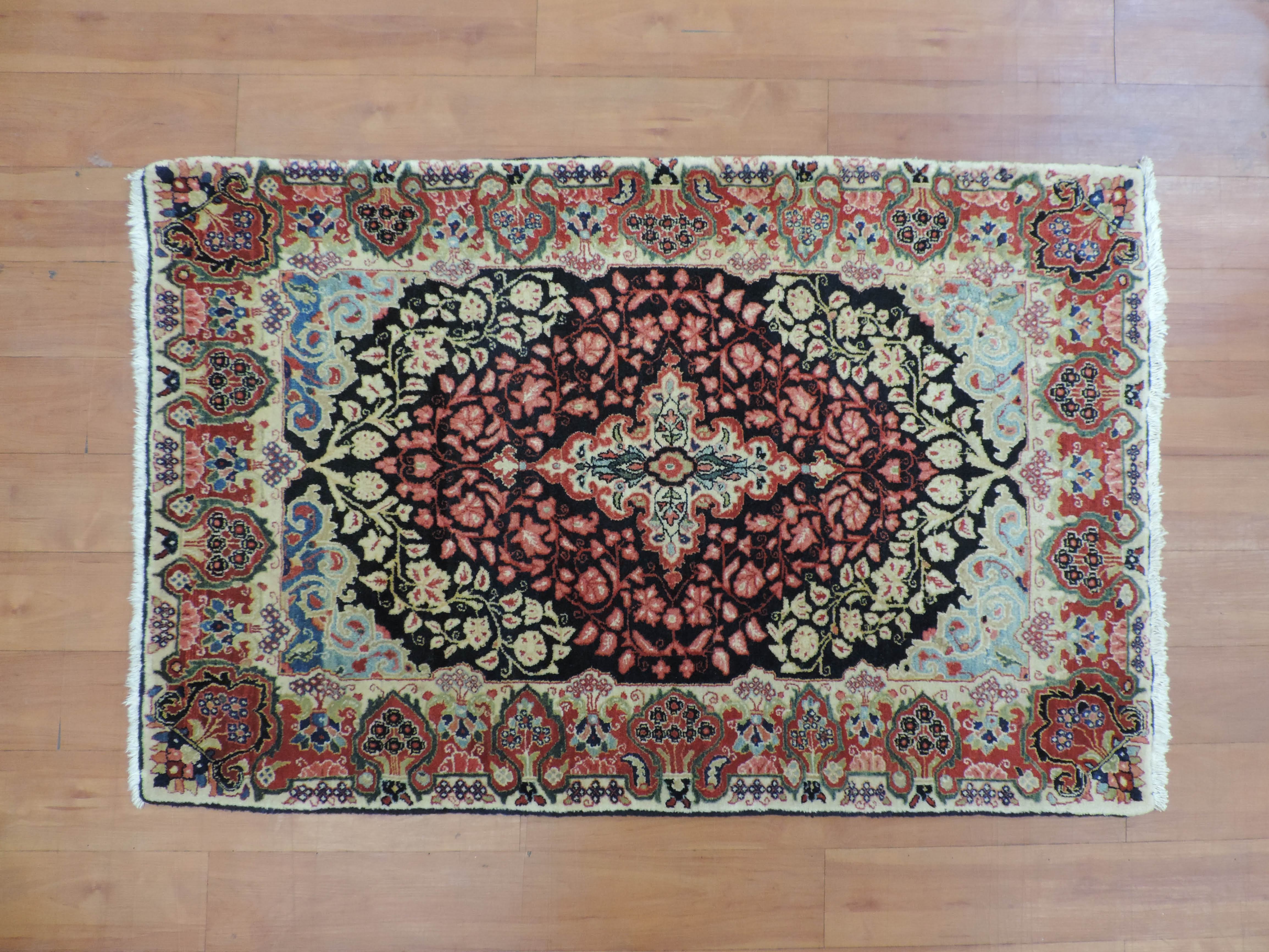 Experience a timeless piece of ancient art with our antique Sarouk rug, code koko-553. Hand-knotted in Iran in 1930 and crafted from the finest wool on a sturdy cotton foundation, this exquisite piece features a mesmerizing floral design set against a rich black backdrop. At a generous 3.5 by 5.3 feet, it's a captivating statement piece now available at an unbeatable sale price. Bring home this emblem of oriental elegance today!