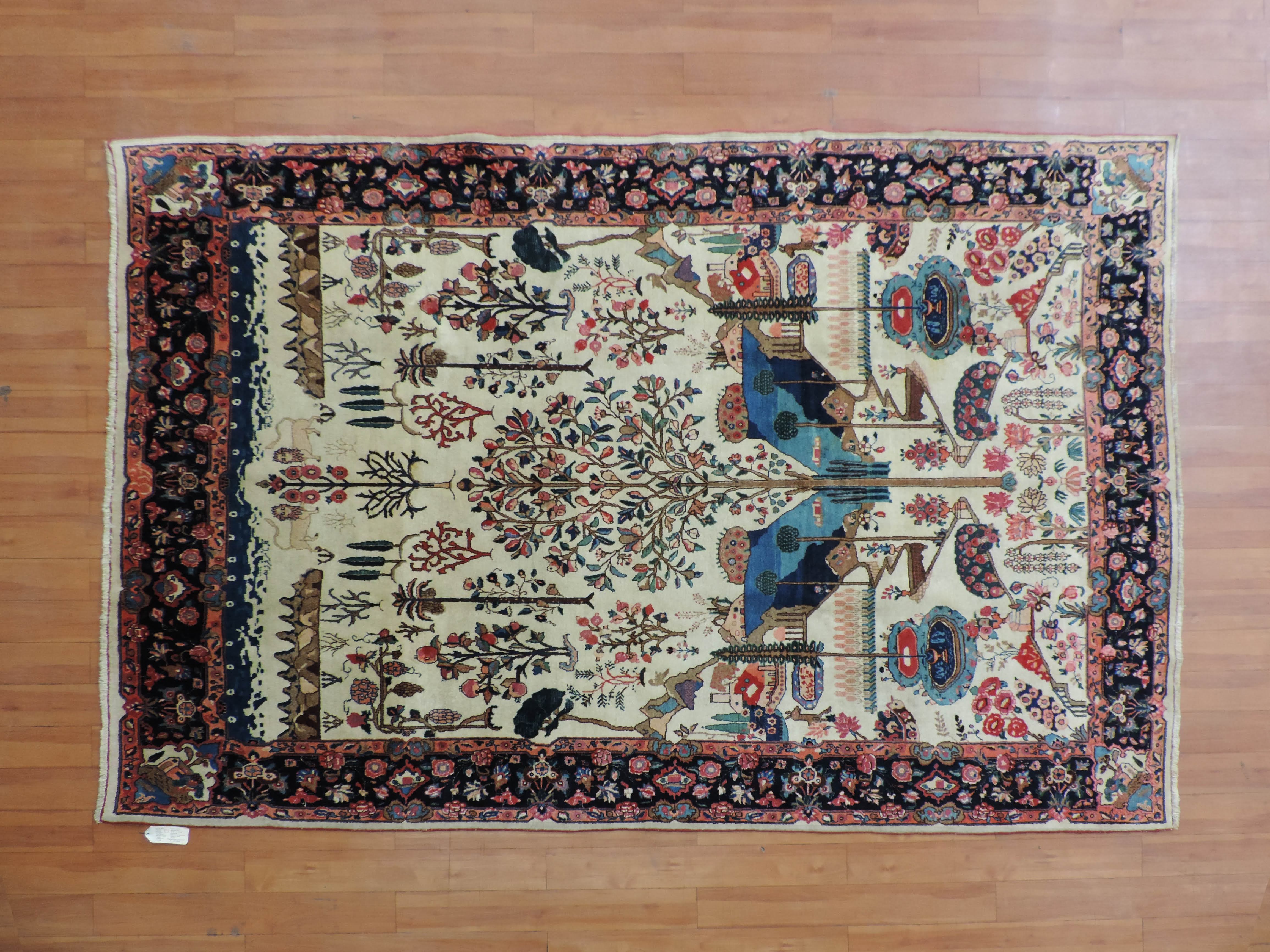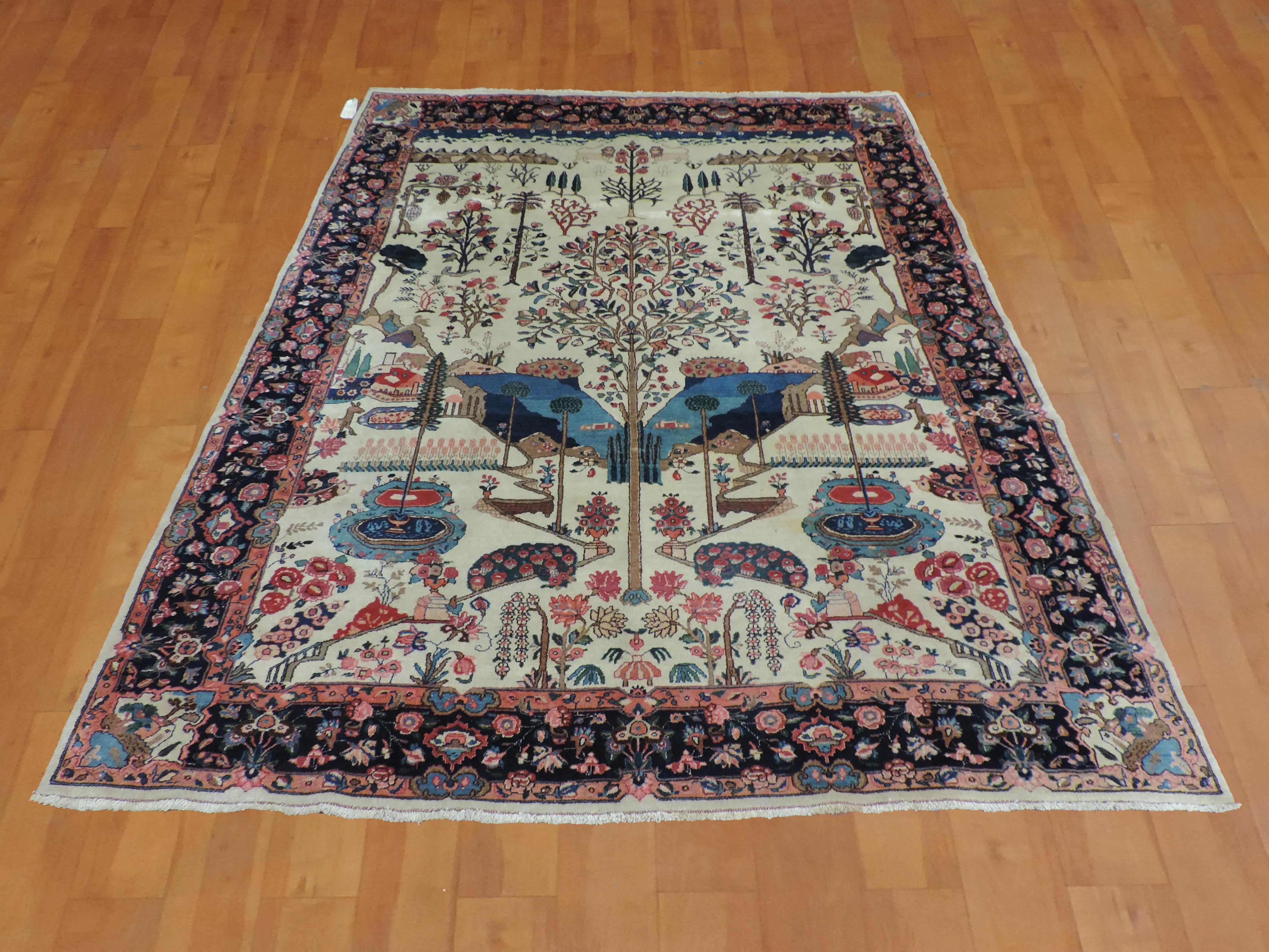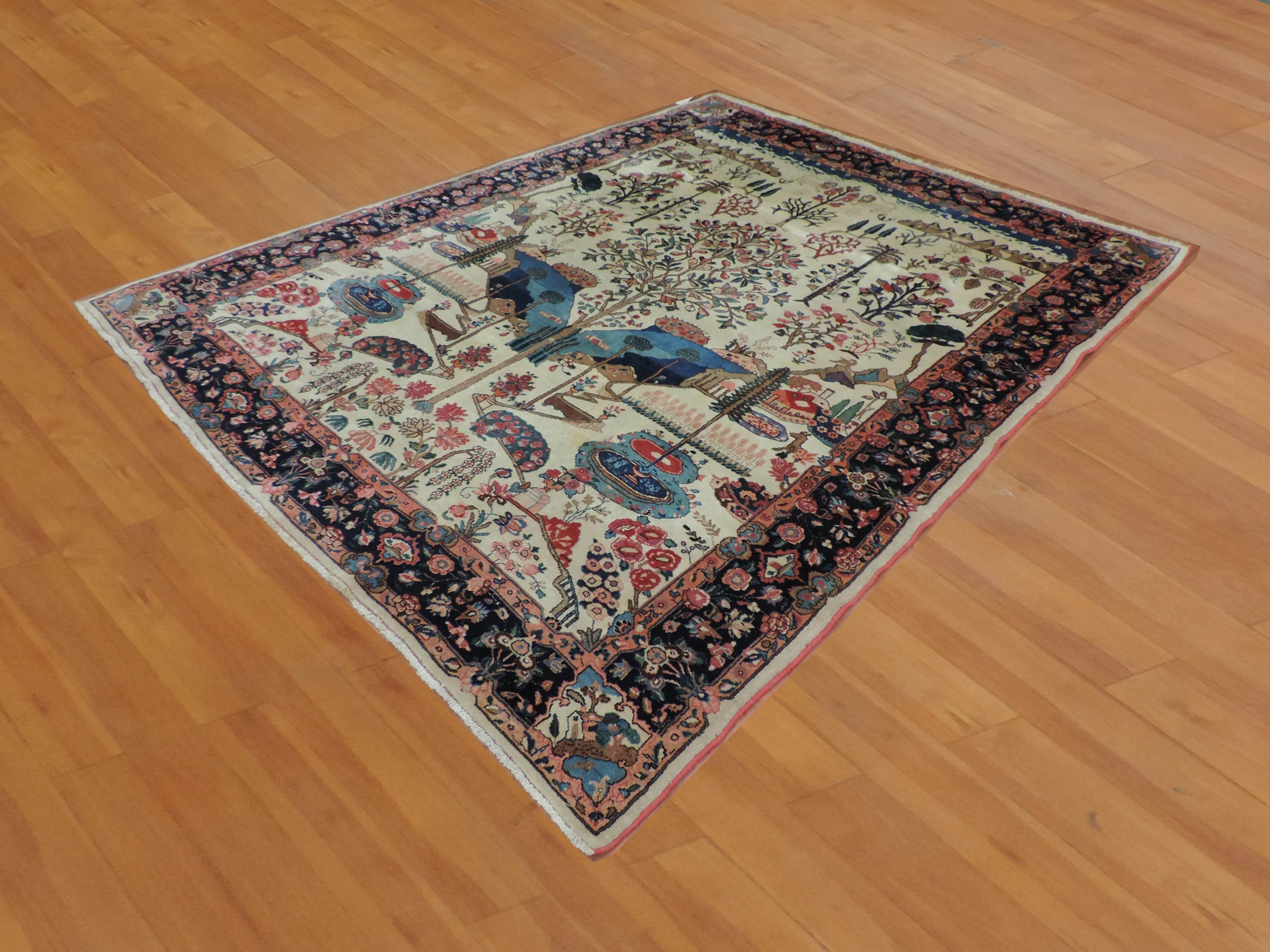 Immerse your living space in a timeless allure with our Antique Meshad rug (koko-656). Hand-knotted in the traditional workshops of Iran, this 1930's masterpiece showcases an exquisite Paradise design set against an elegant ivory backdrop. With an exceptional wool on cotton foundation, its enduring charm is offered at a fantastic sale price, making it a stellar addition to any sophisticated decor.