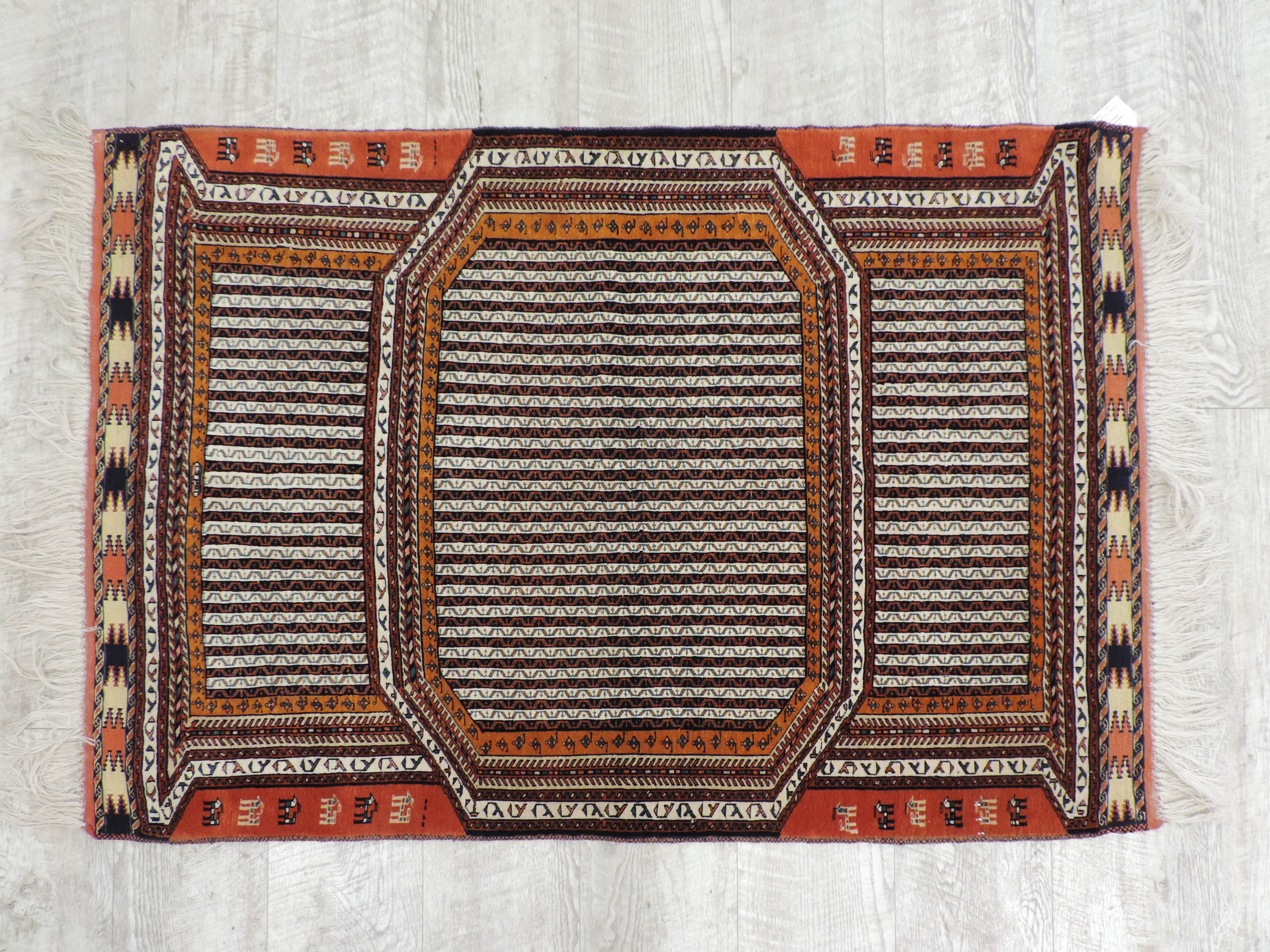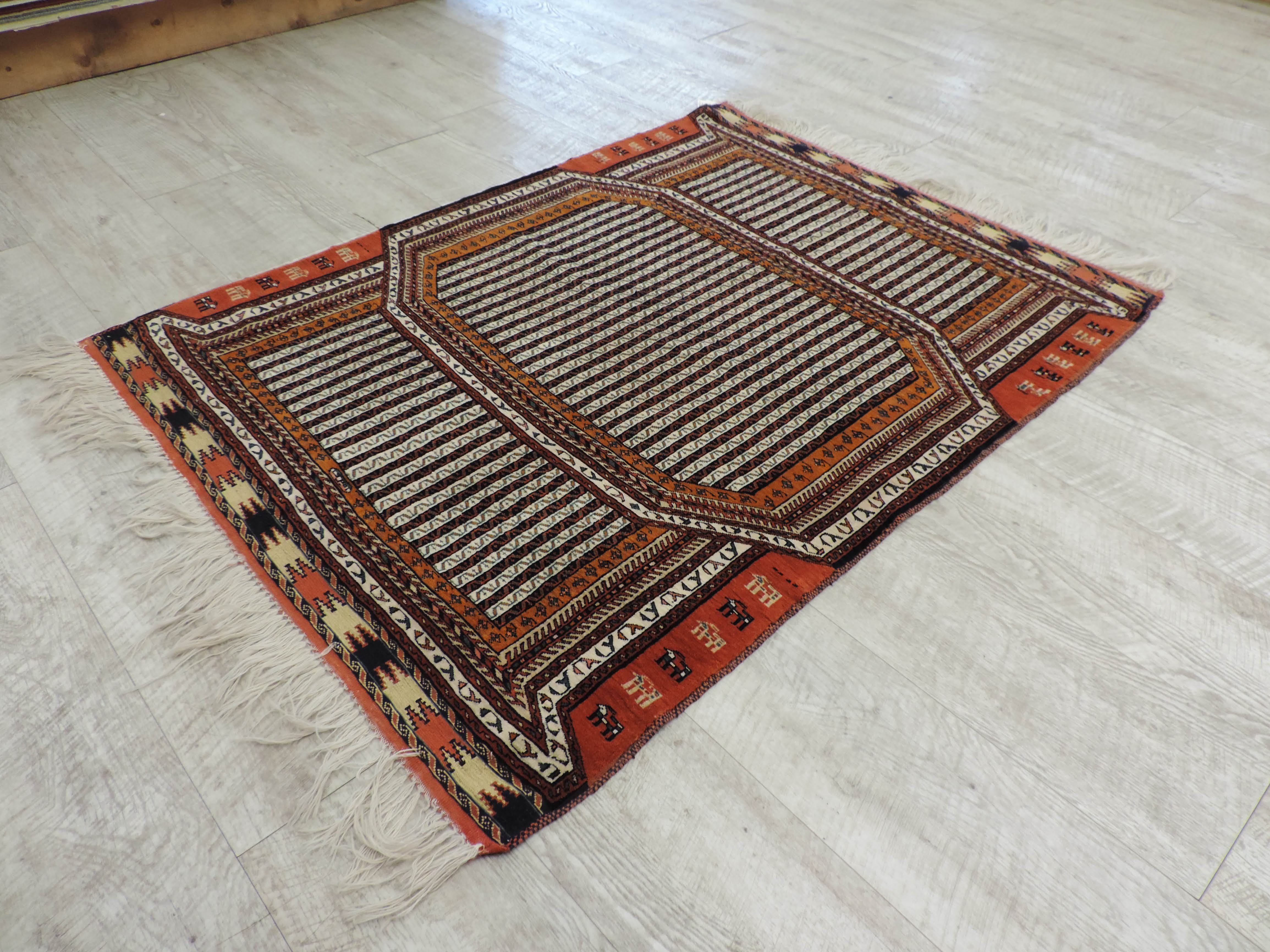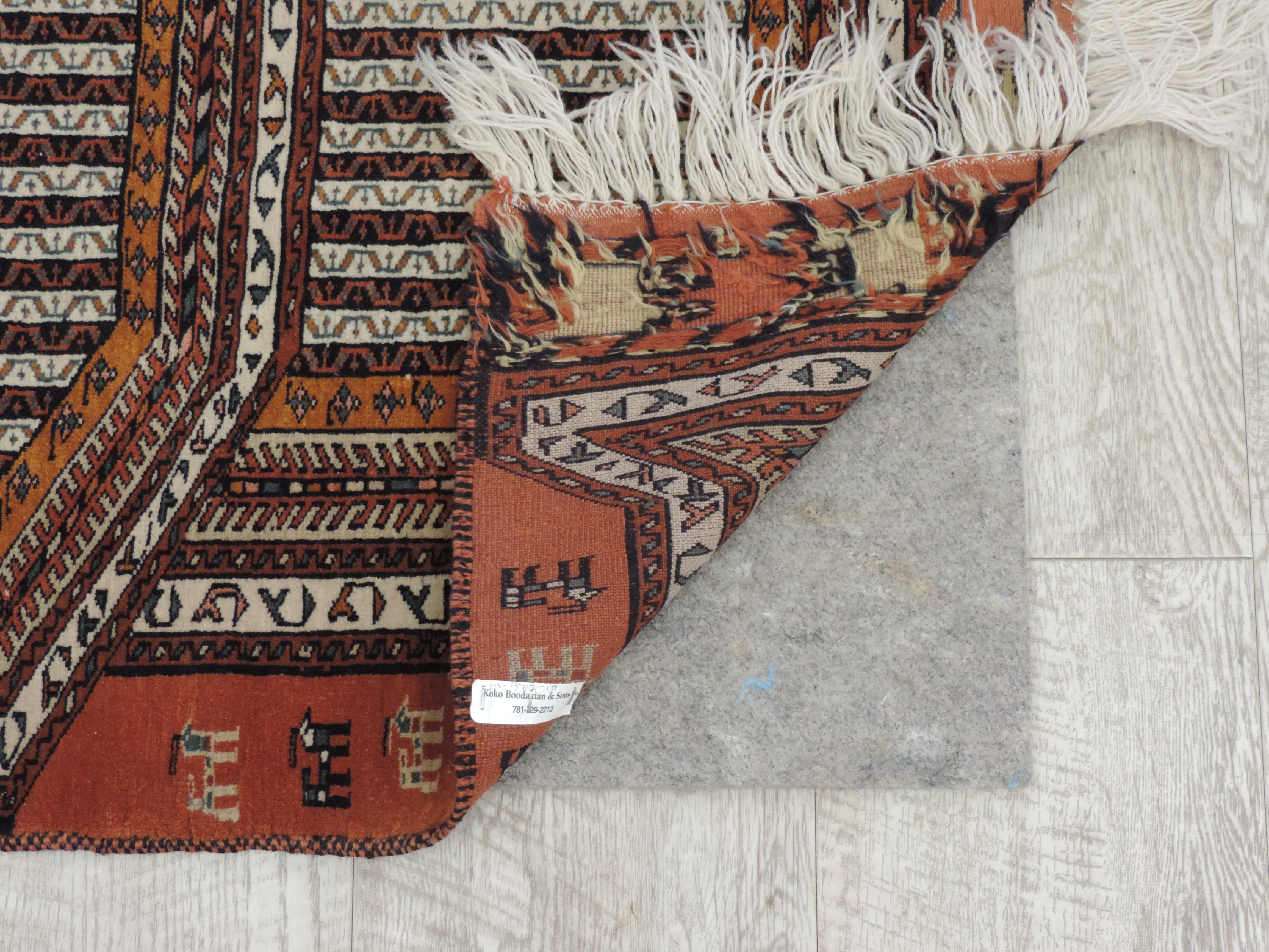 Step into the world of geometric beauty with our Turkman Horse Rug, delicately hand-knotted from high-quality wool that guarantees robustness and longevity. Boasting a stunning ivory hue and an intricate geometric design, this rectangular, Afghan-origin rug transforms any room into an exquisite haven of elegance. Now available at a steal price, it's time to infuse a touch of oriental charm into your living space.
