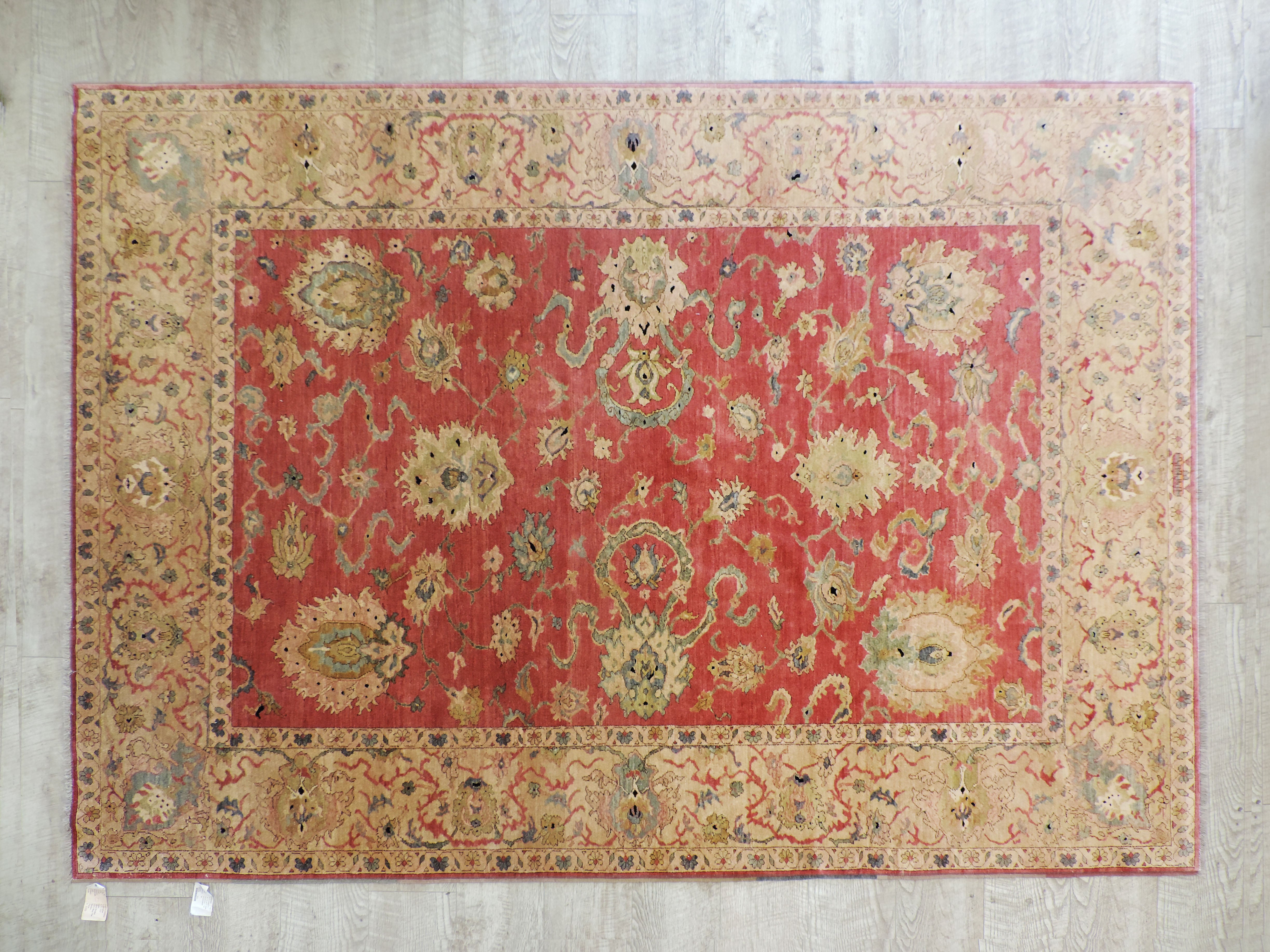 Indulge in the opulence of this Sultanabad-style oriental rug (code: koko-m-0008902) hand-knotted from pure wool with a sturdy cotton foundation. This Egyptian masterpiece, featuring a vibrant floral design in a primary red color, measures a generous 8.3 by 10.3 feet, perfect for creating an inviting and luxurious focal point in any room. Now available at a sale price, this brand new, rectangular rug is a unique and valuable addition to any home decor collection.