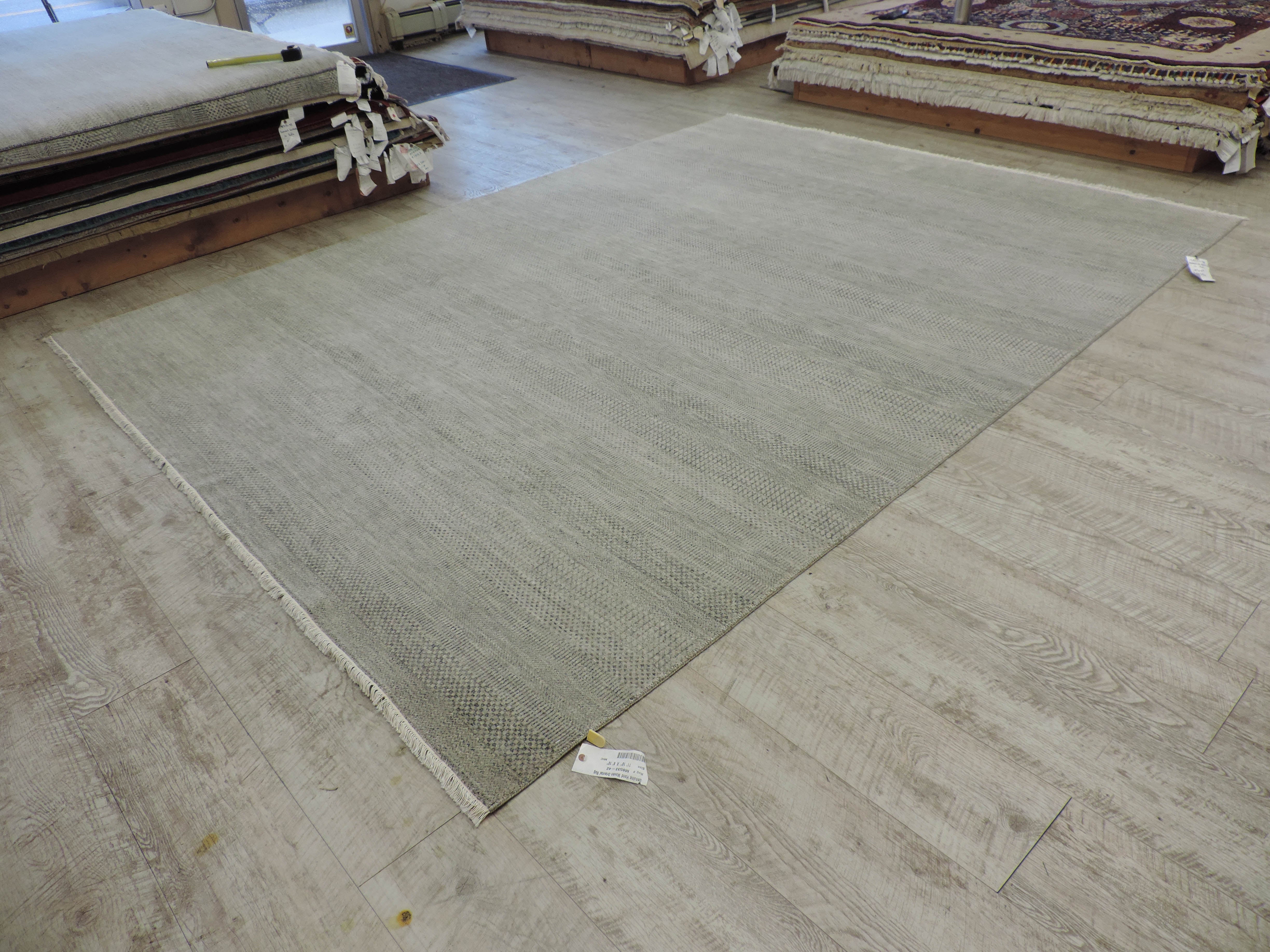 Elevate your interiors to a new level of sophistication with our Savannah M8533-42 oriental rug. Hand-knotted in India using premium wool and a sturdy cotton foundation, this rectangular rug showcases a beautiful geometric design in shades of gray. This brand-new showstopper, available for the exclusive sale price of $4300, promises to bring an unparalleled touch of elegance to any space.