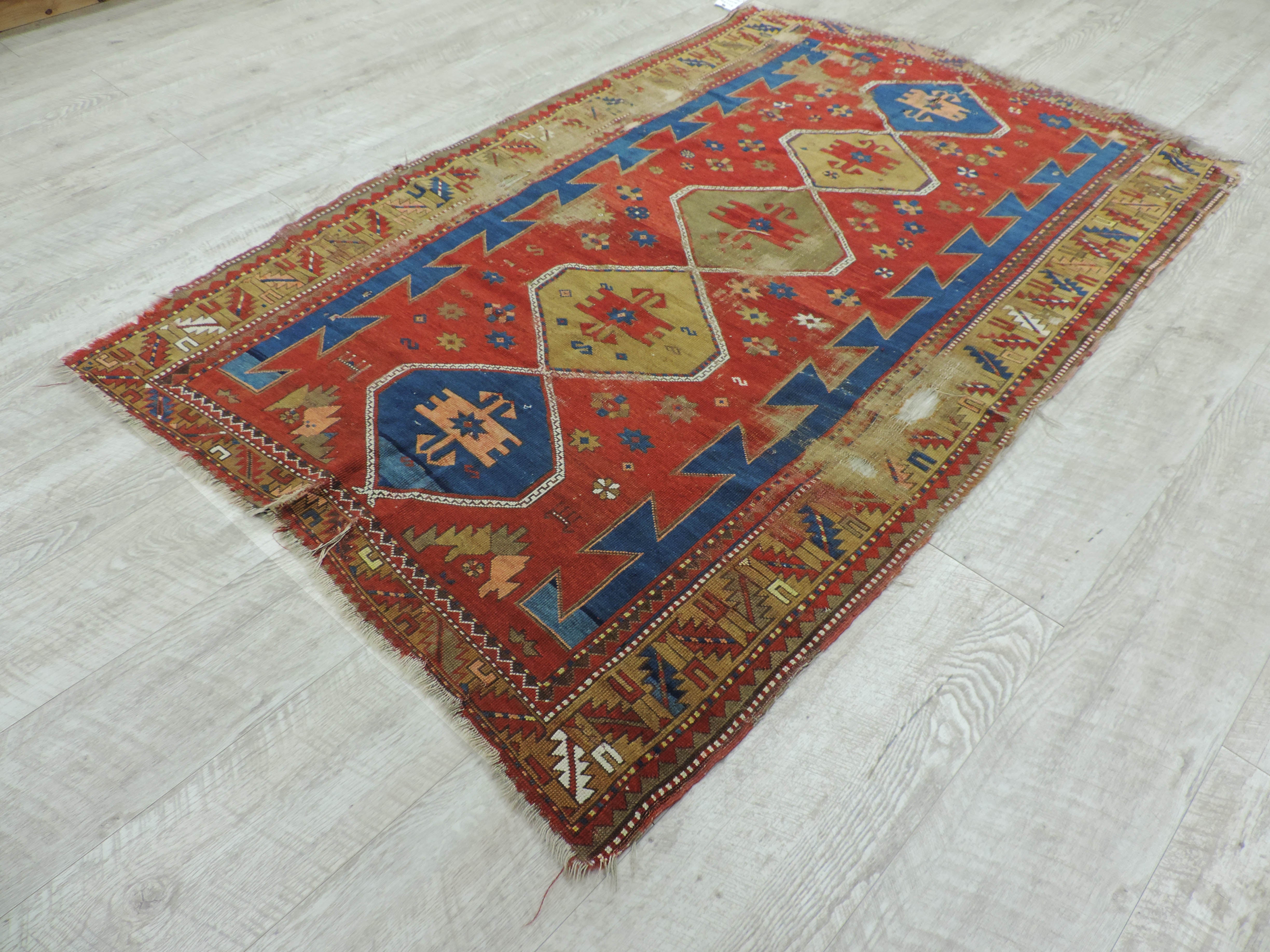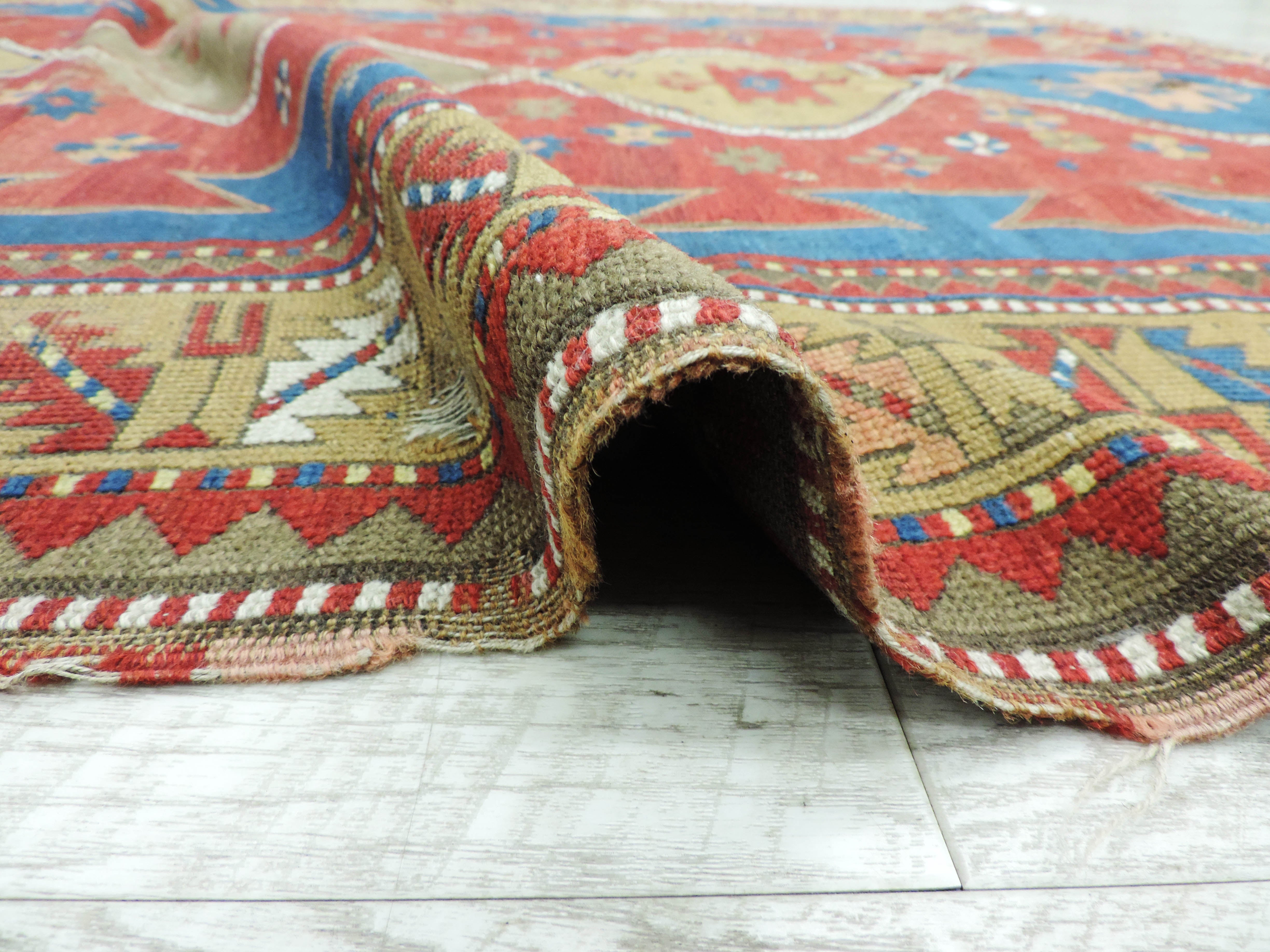 Step into the world of vintage charm with our hand-knotted, antique Shirvan rug. This unique piece, woven from pure wool on a cotton foundation, showcases a rich red hue with a captivating geometric design. Originating from Russia in the 1920s, it's not just a rug – it's a piece of history currently available at a fantastic sale price. Add a touch of timeless elegance to your space now!