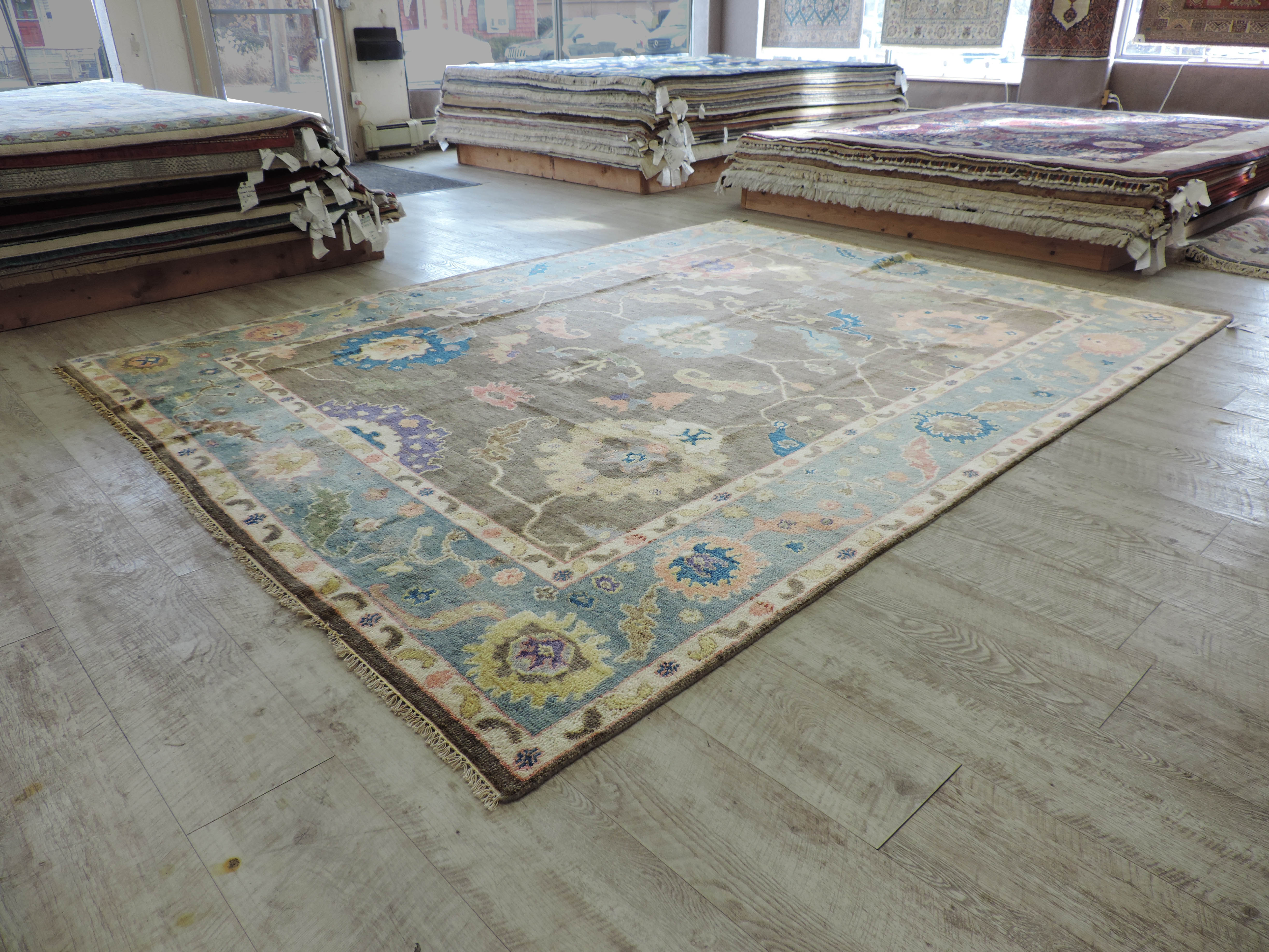 Add an exquisite touch to your living space with our S-426 Oushak Rug, hand-knotted in India from wool with a sturdy cotton foundation. Its geometric design in warm brown hues creates an appealing contrast, making it a striking centerpiece for any room. Now available at a spectacular sale price, this luxurious, uniquely designed oriental rug is a perfect blend of tradition and style, waiting to enhance your home décor.